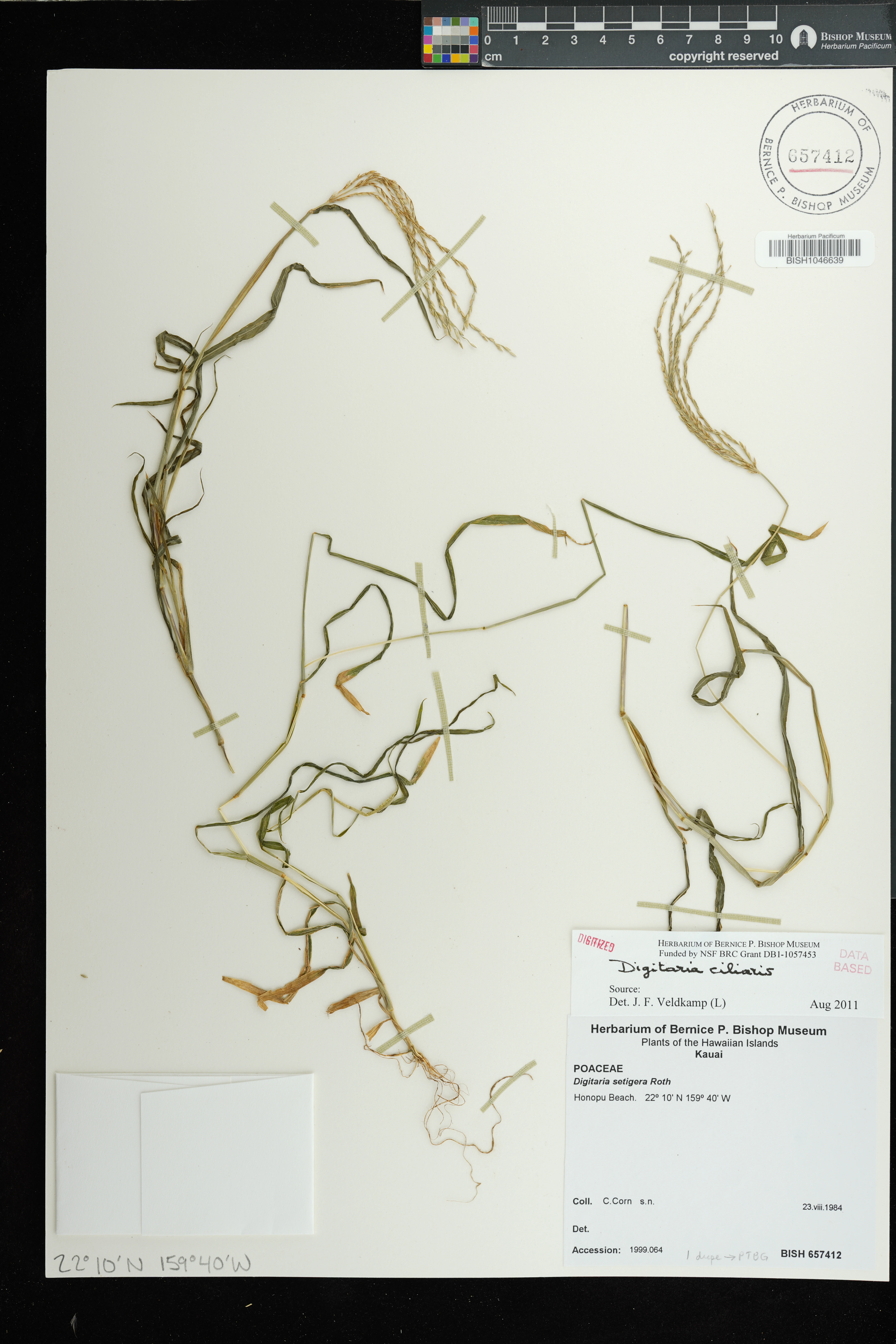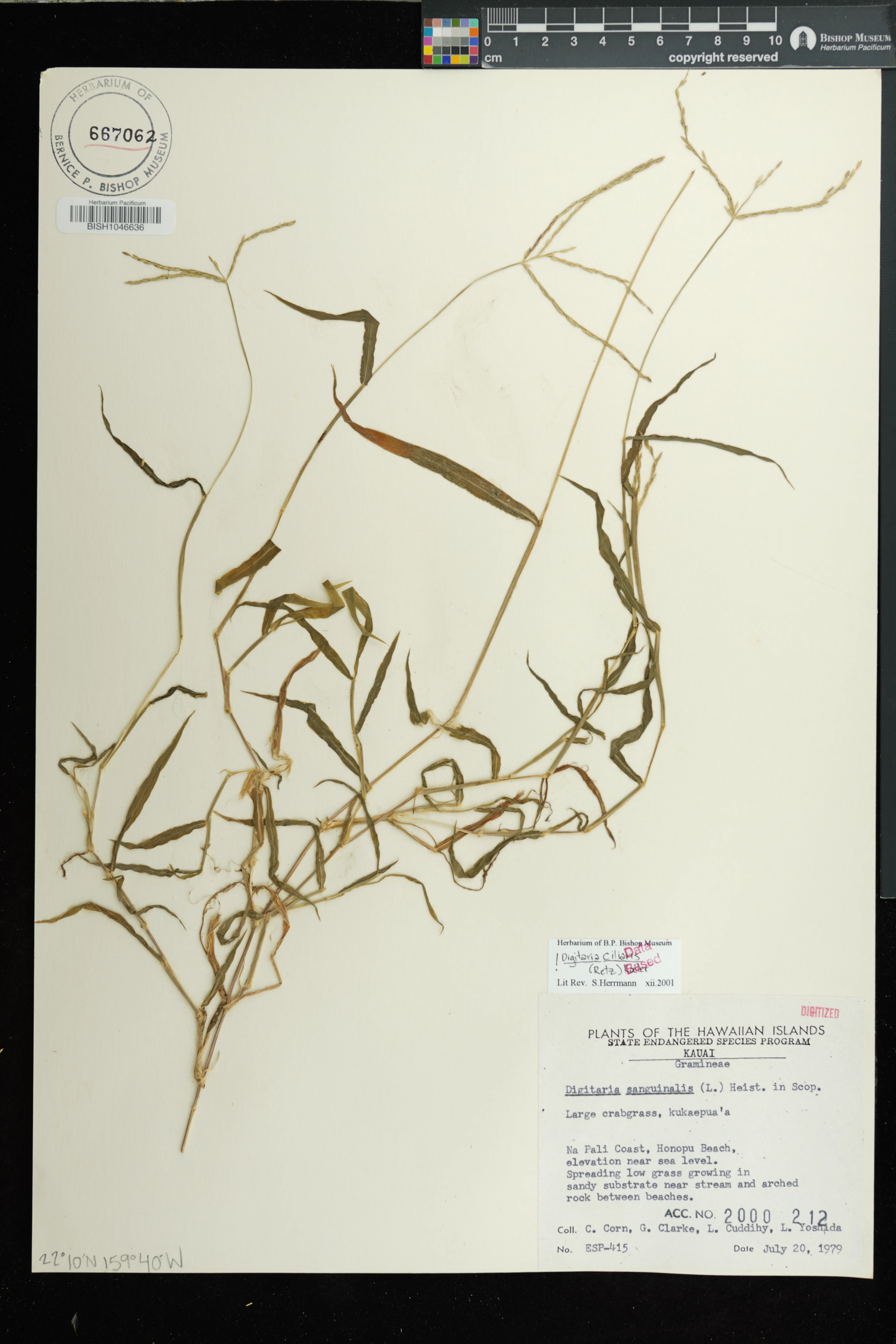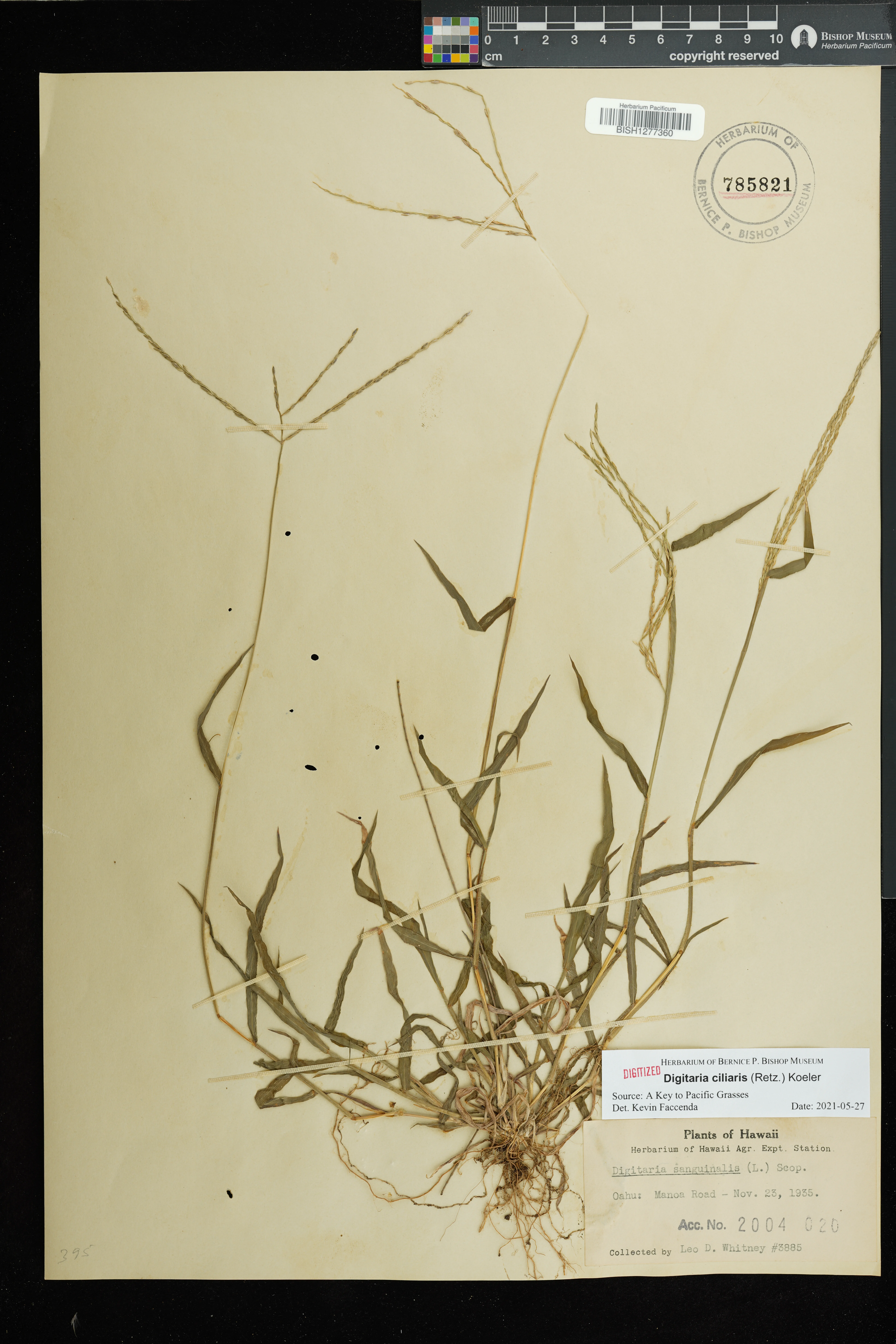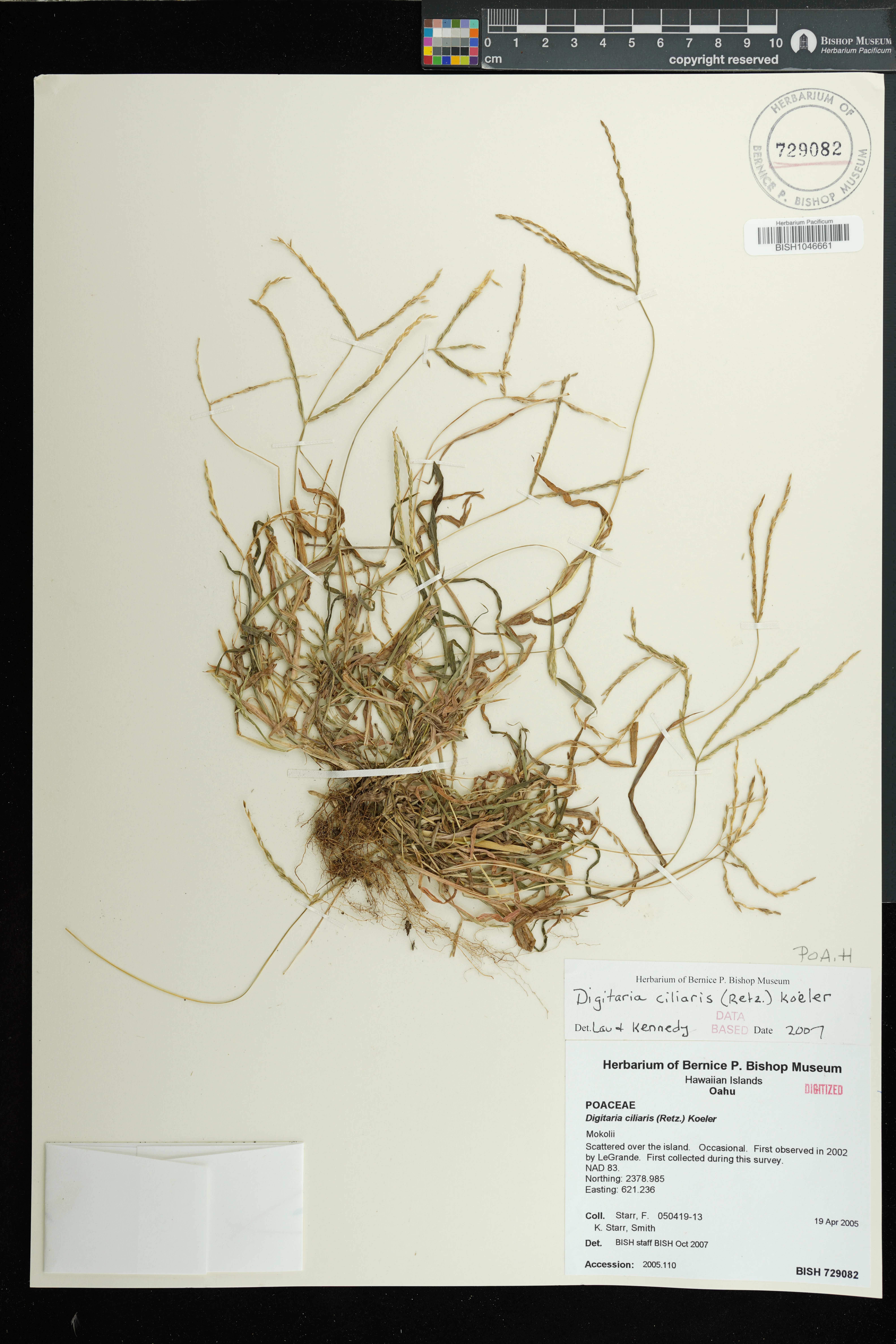 at edge of grassy swale planted with Brachiaria mutica between pineapple fields, with Digitaria ciliaris, Sonchus oleraceus, Emilia sonchifolia, Emilia fosbergii, Anagallis arvensis, Oxalis corniculata, Eragrostis pectinacea, Eleusine indica, Digitaria insularis, Melinis repens, Paspalum urvillei, Cynodon dactylon. |