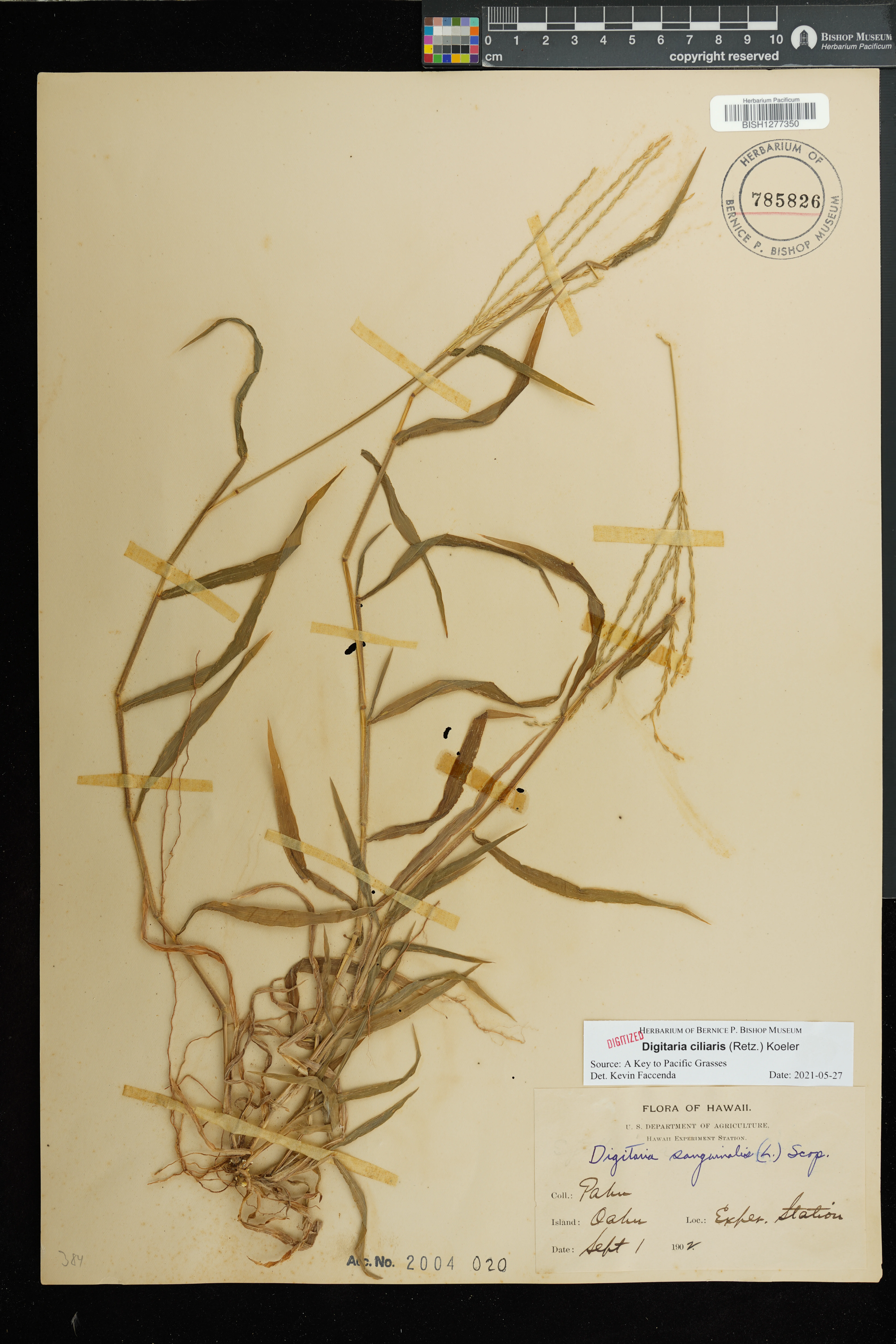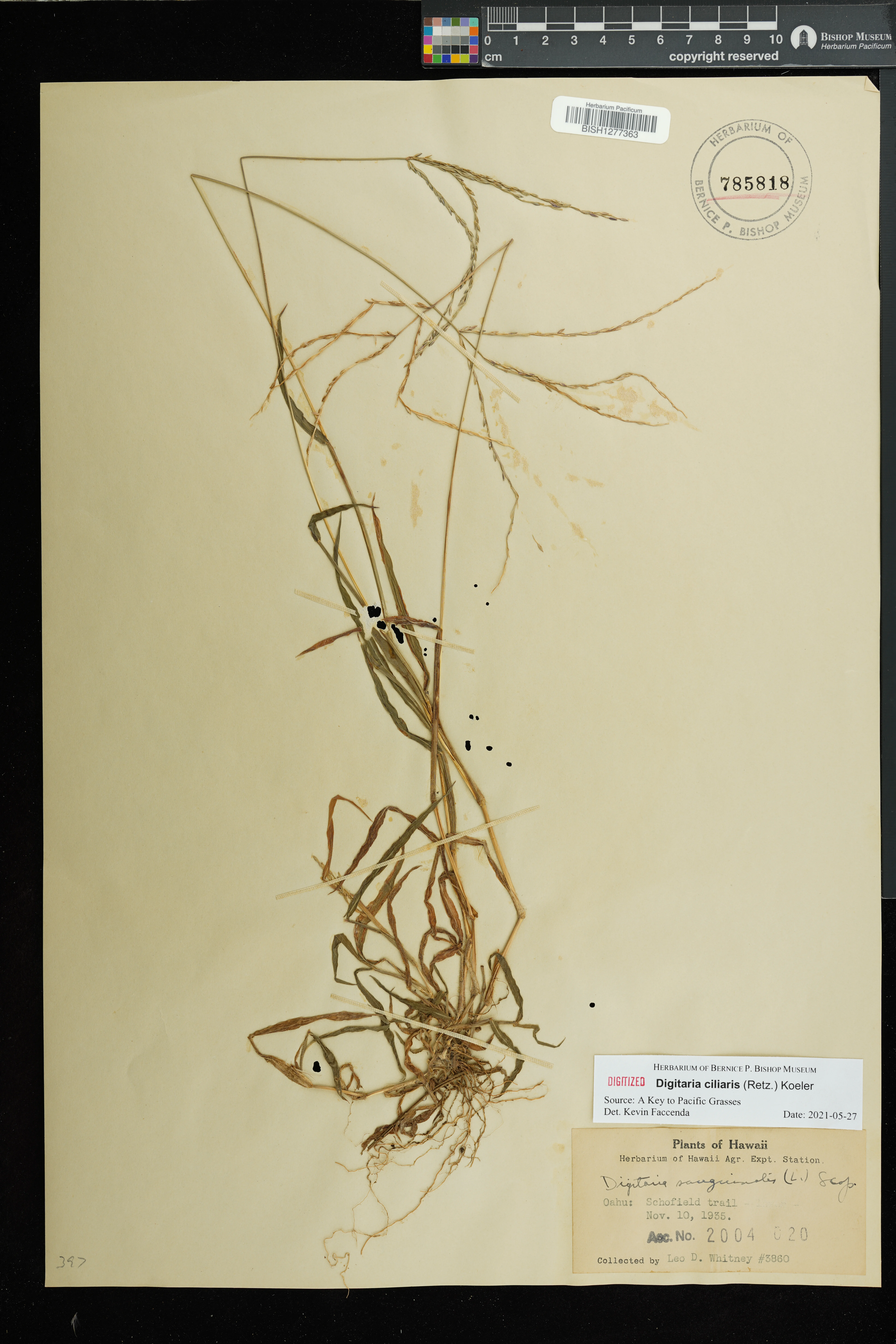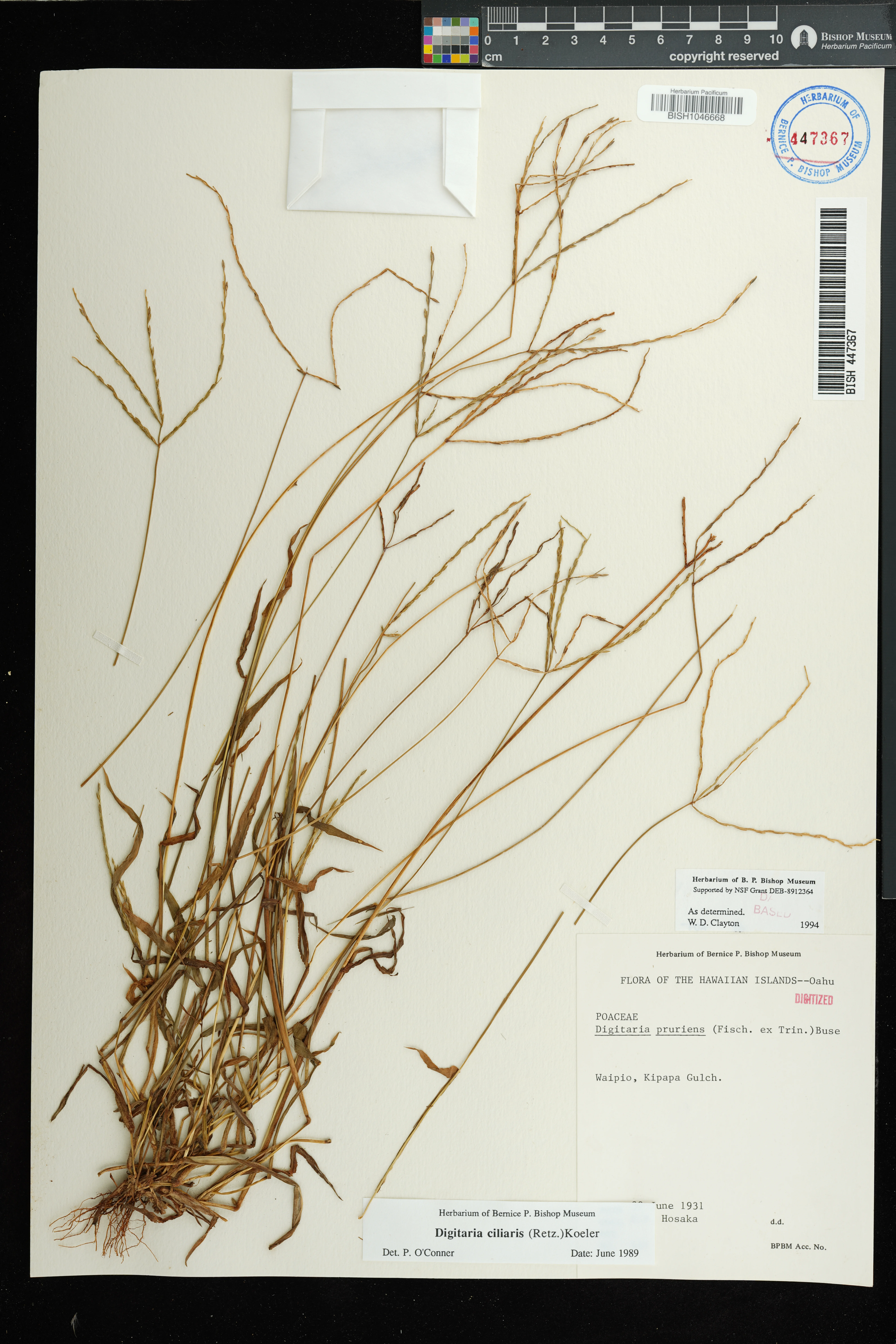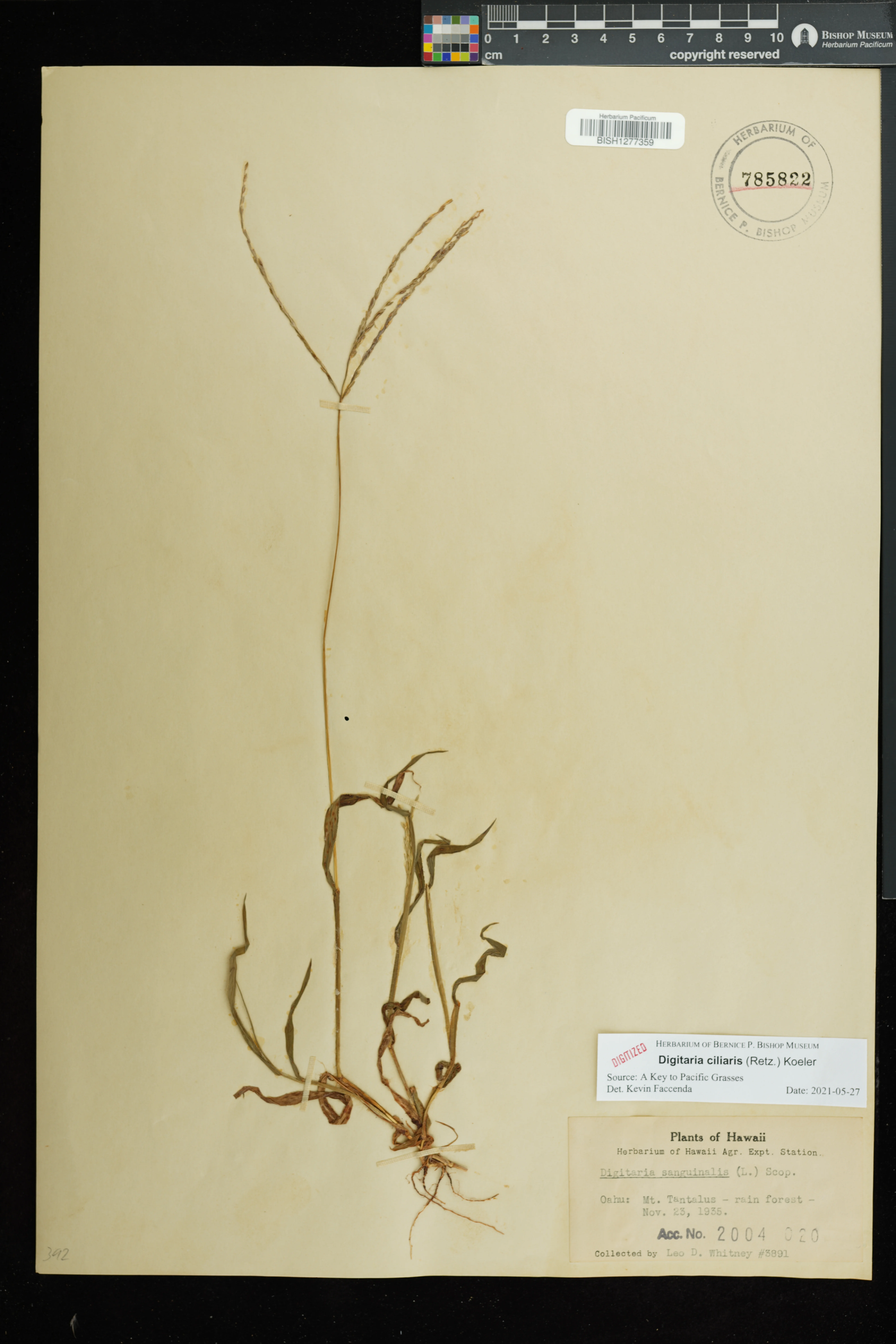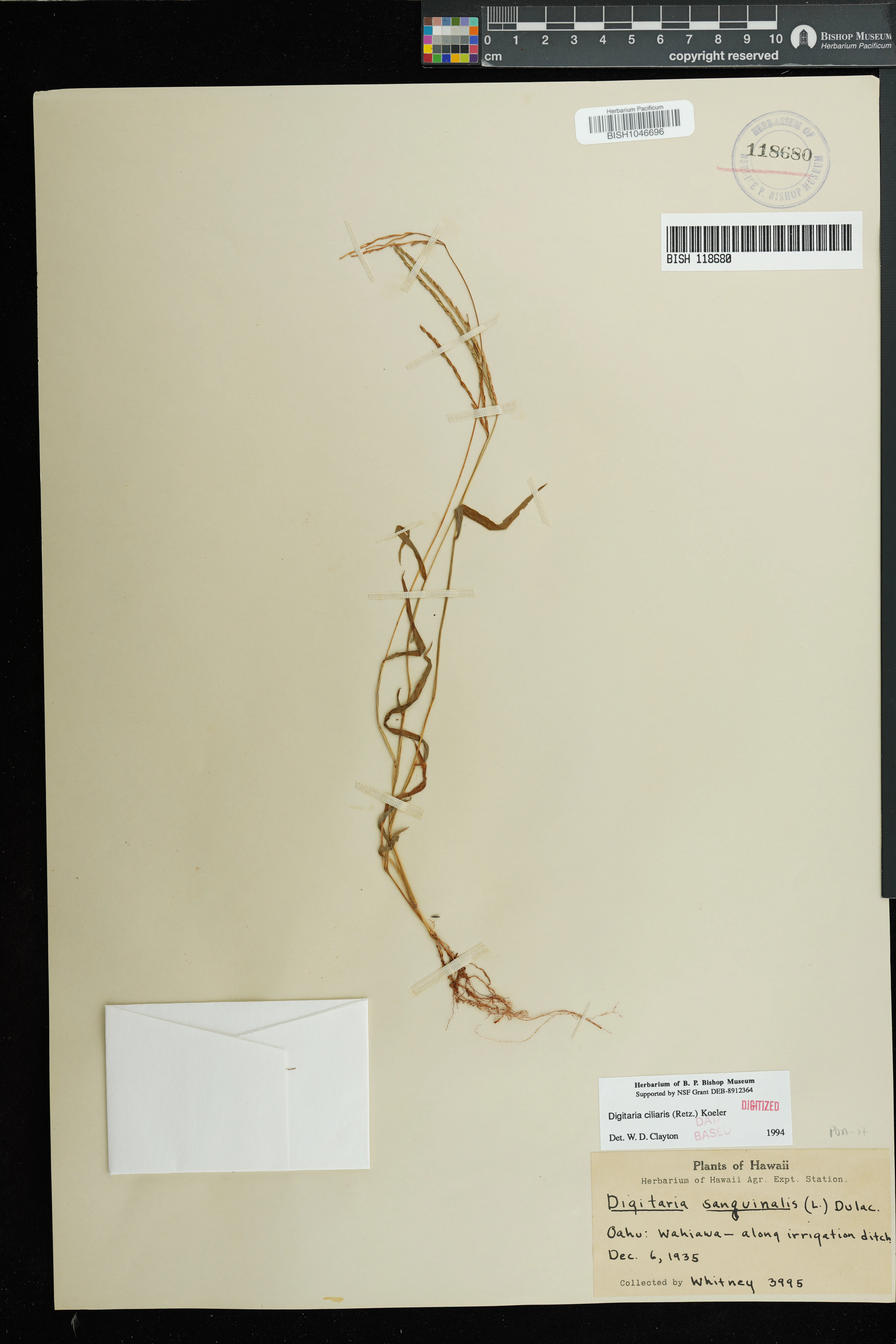 at edge of grassy swale planted with Brachiaria mutica between pineapple fields, with Digitaria ciliaris, Sonchus oleraceus, Emilia sonchifolia, Emilia fosbergii, Anagallis arvensis, Oxalis corniculata, Eragrostis pectinacea, Eleusine indica, Digitaria insularis, Melinis repens, Paspalum urvillei, Cynodon dactylon. |