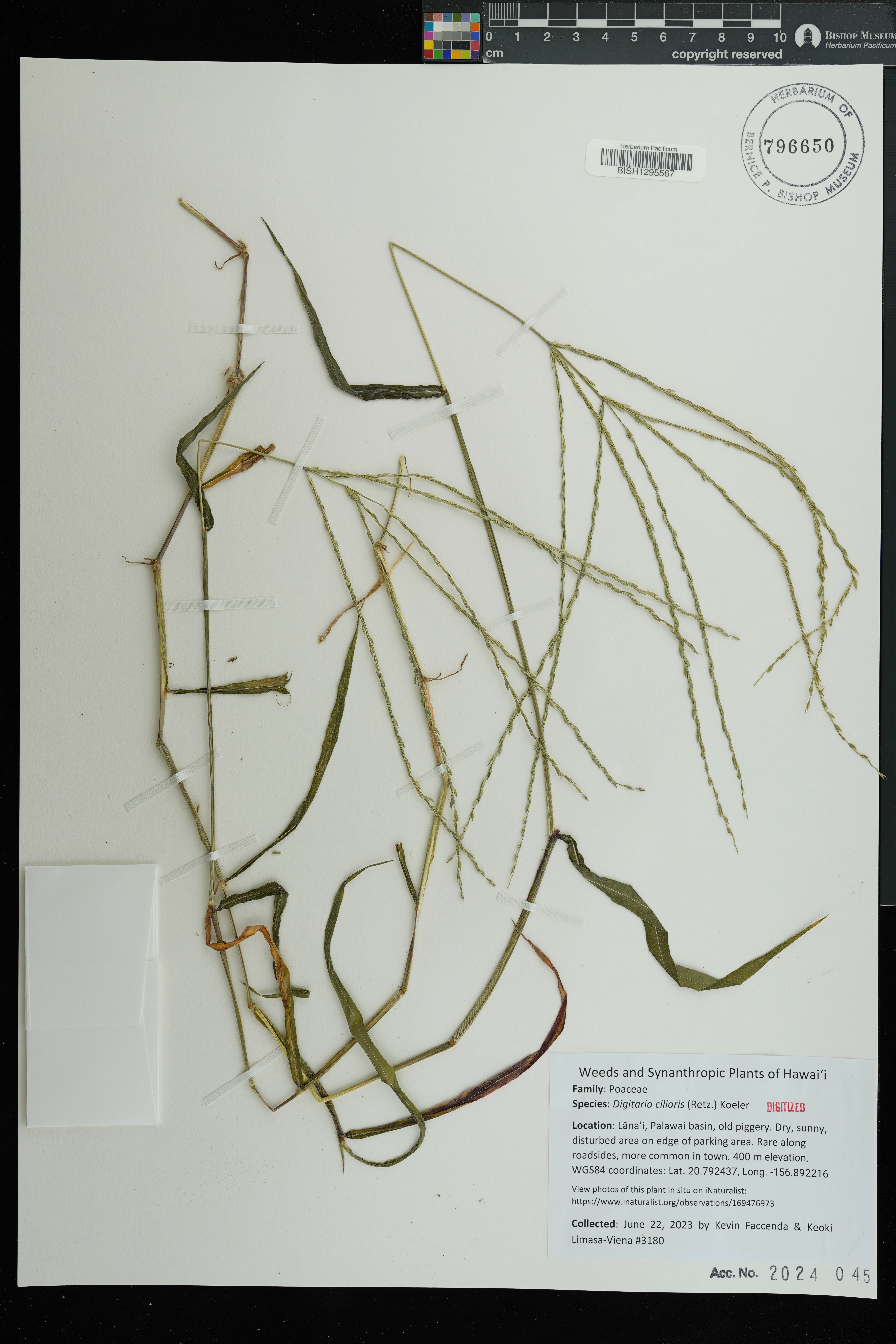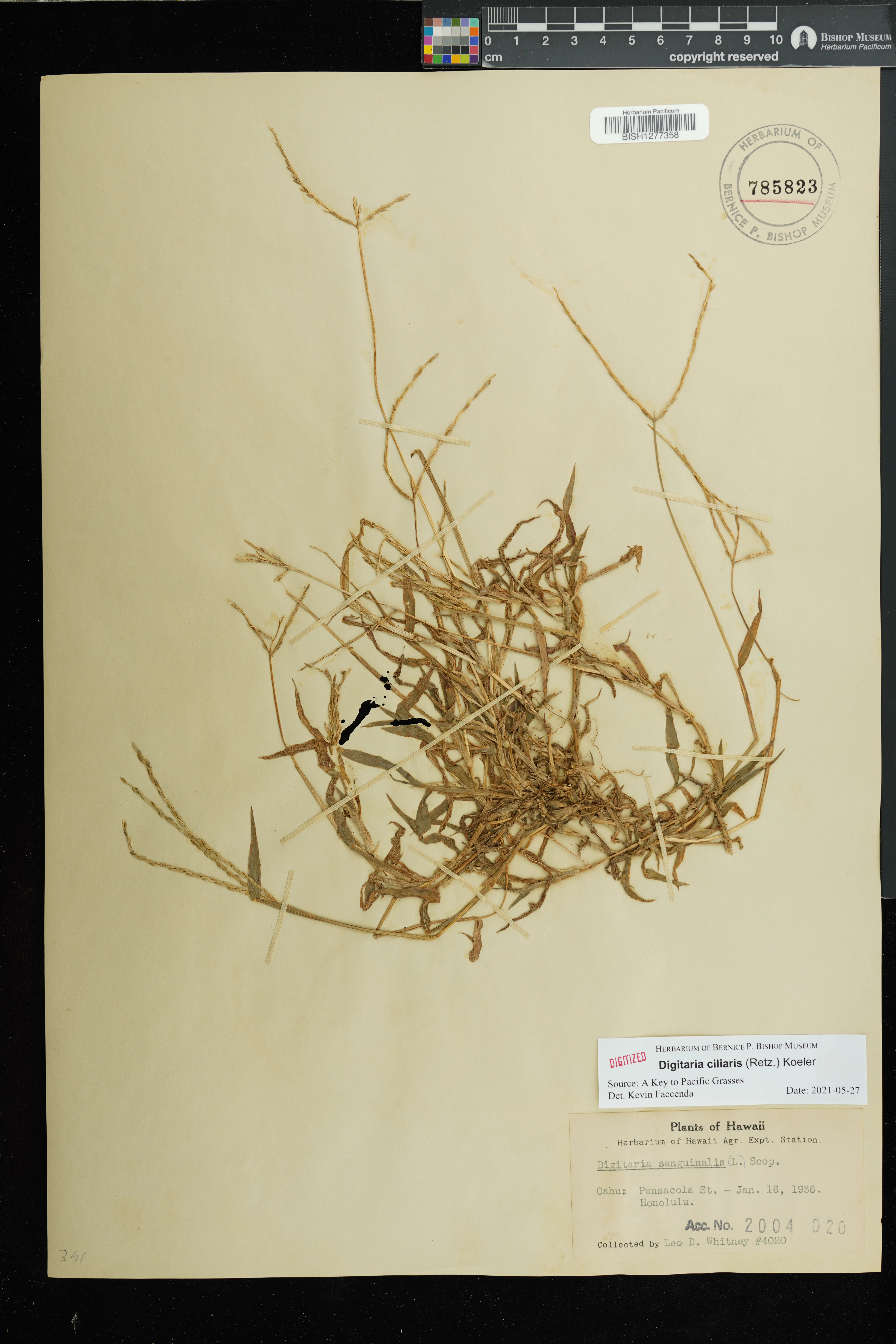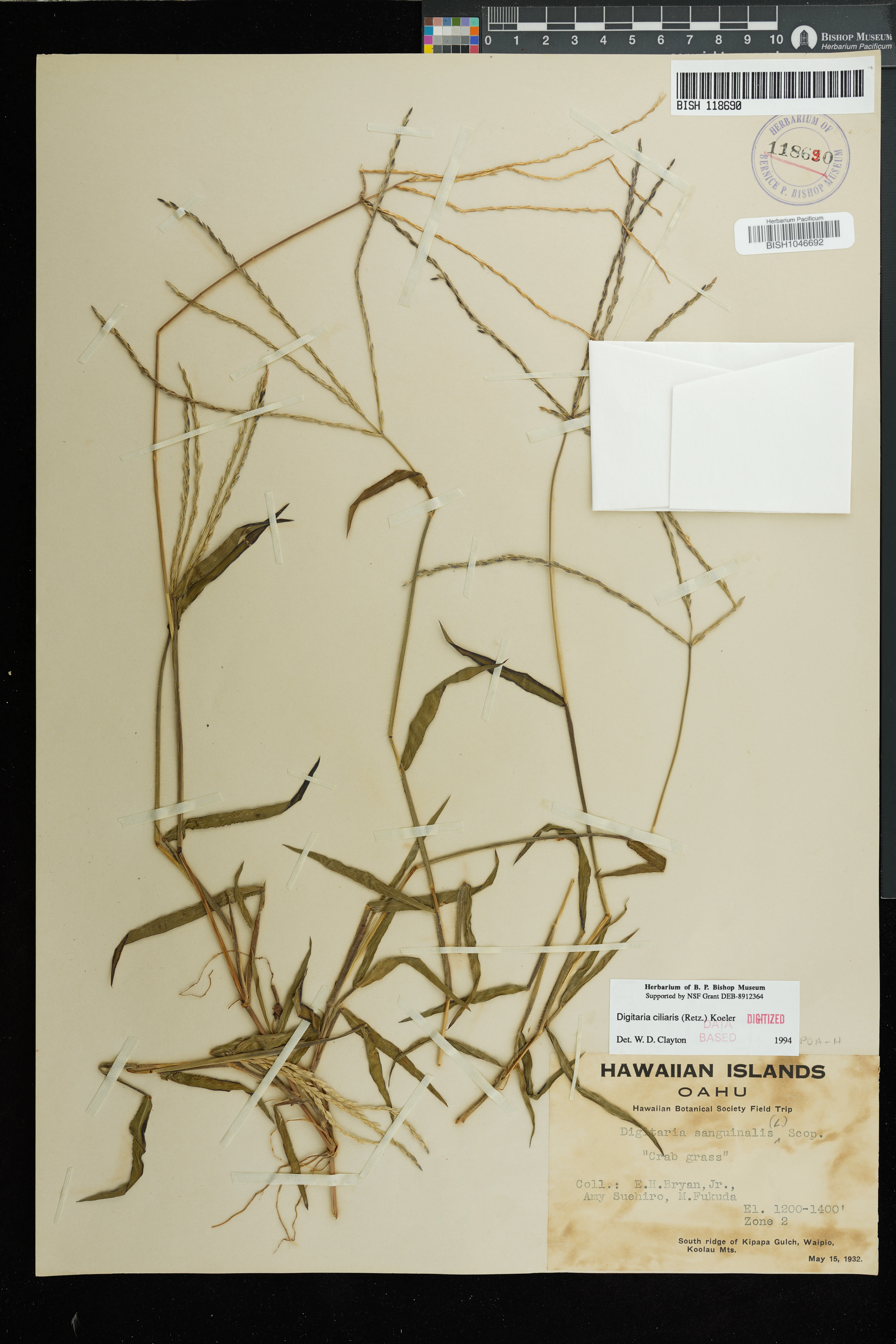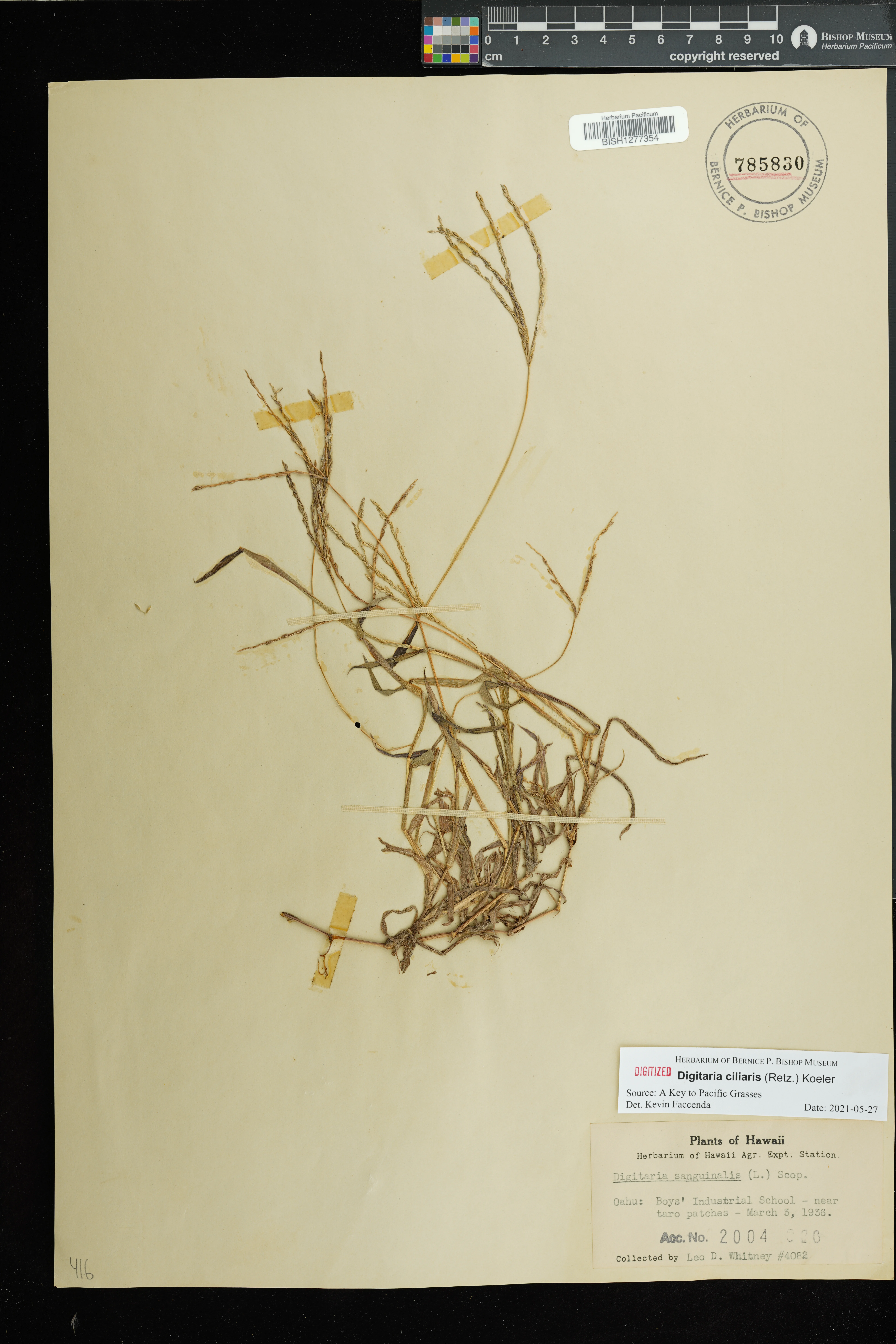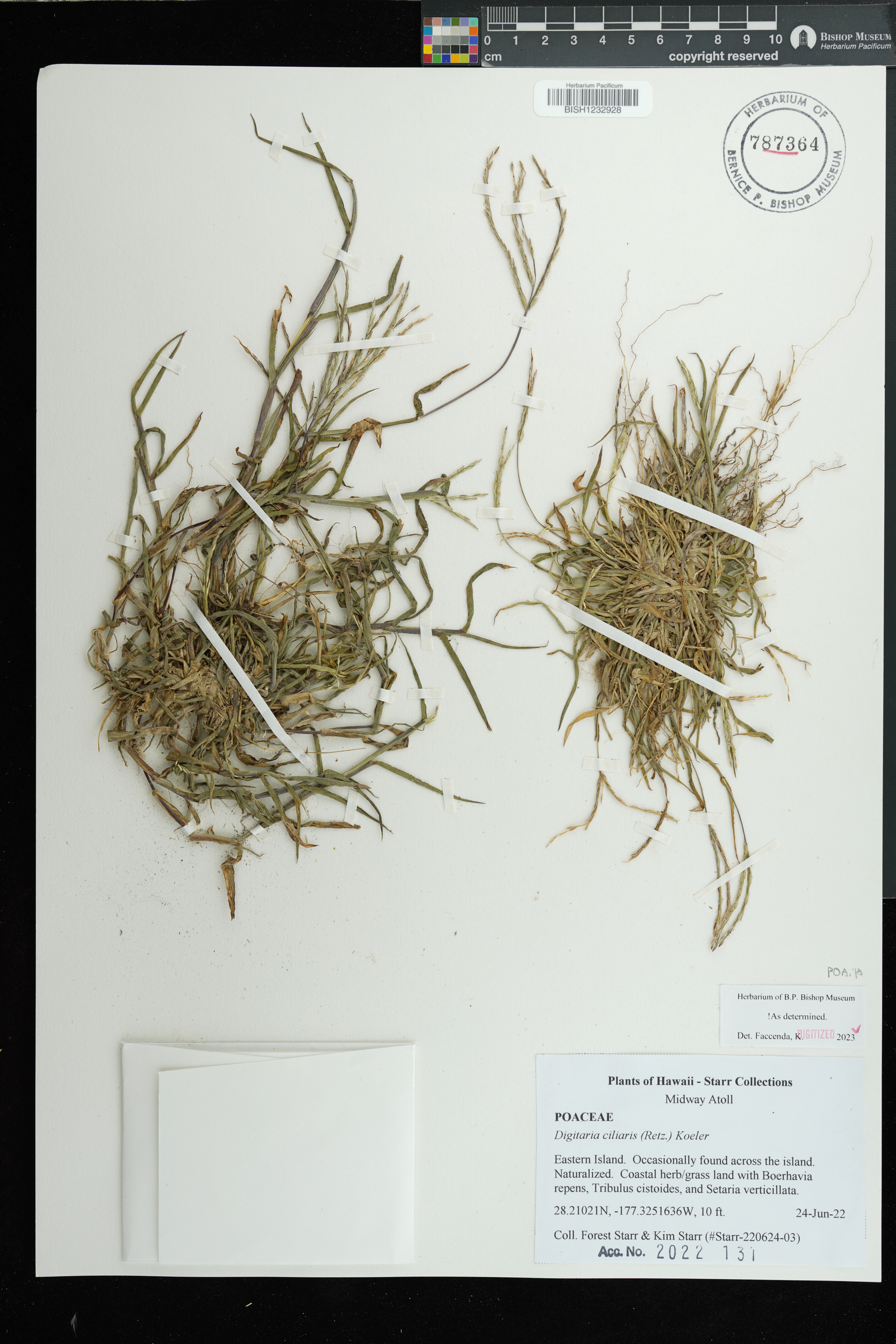 at edge of grassy swale planted with Brachiaria mutica between pineapple fields, with Digitaria ciliaris, Sonchus oleraceus, Emilia sonchifolia, Emilia fosbergii, Anagallis arvensis, Oxalis corniculata, Eragrostis pectinacea, Eleusine indica, Digitaria insularis, Melinis repens, Paspalum urvillei, Cynodon dactylon. |