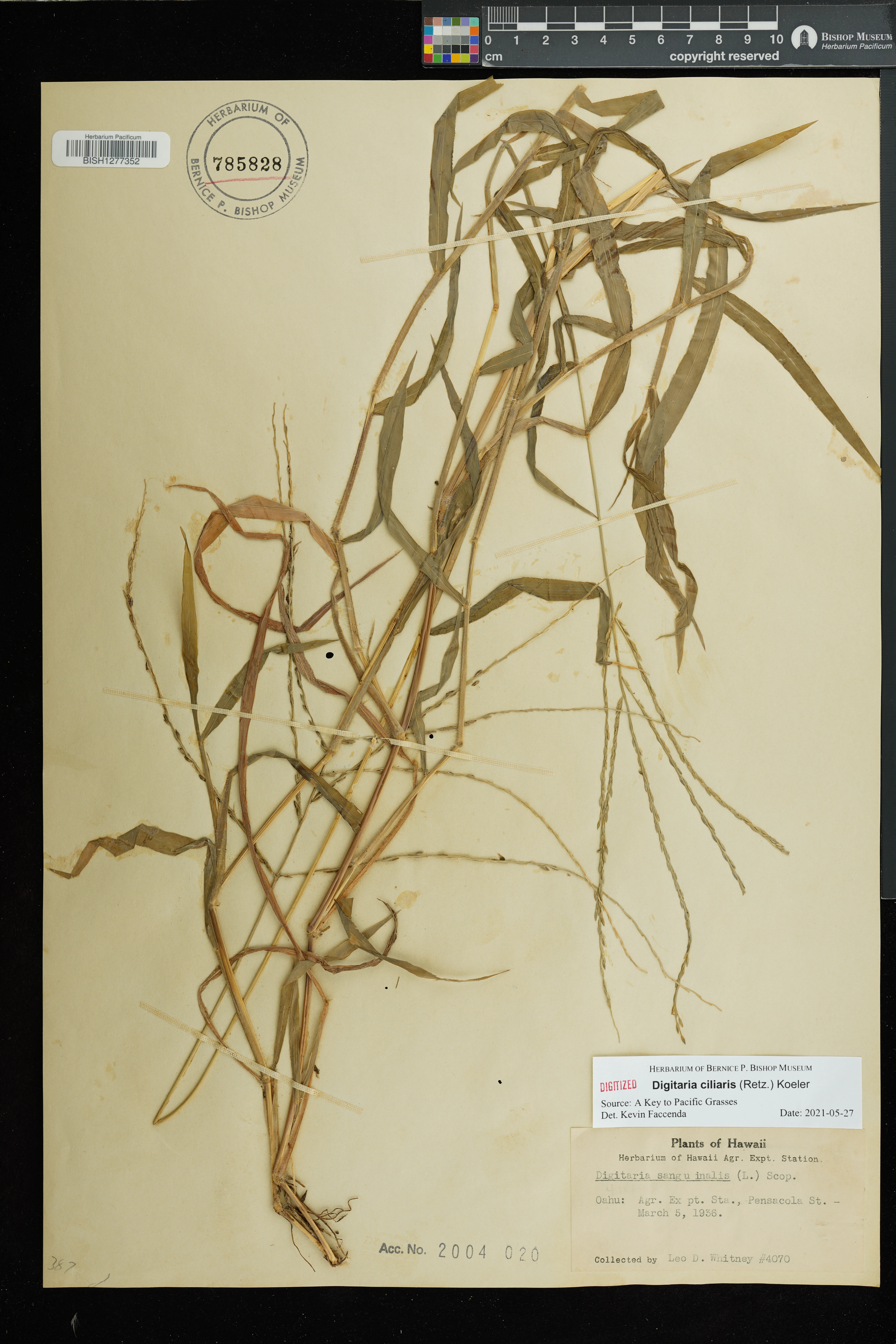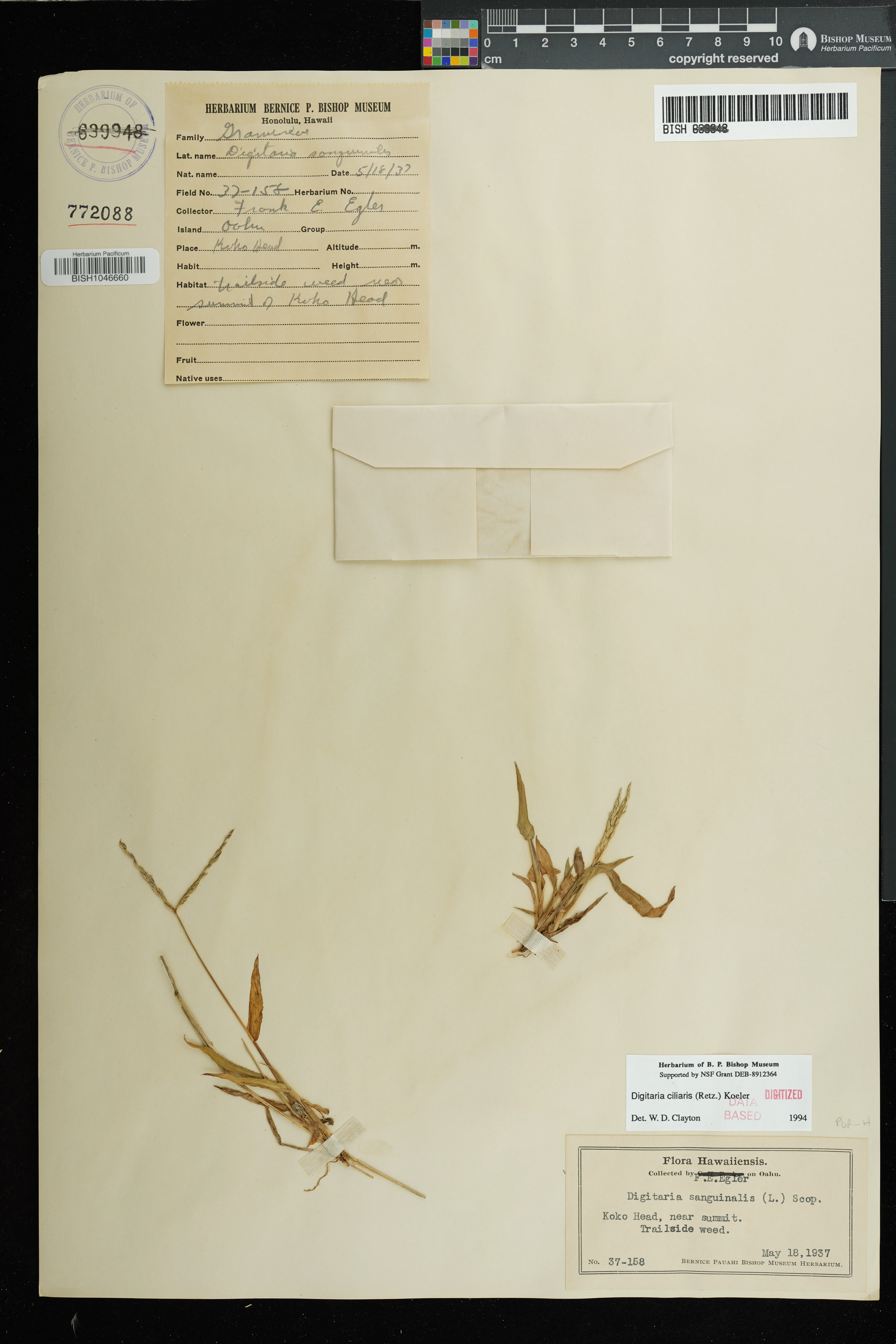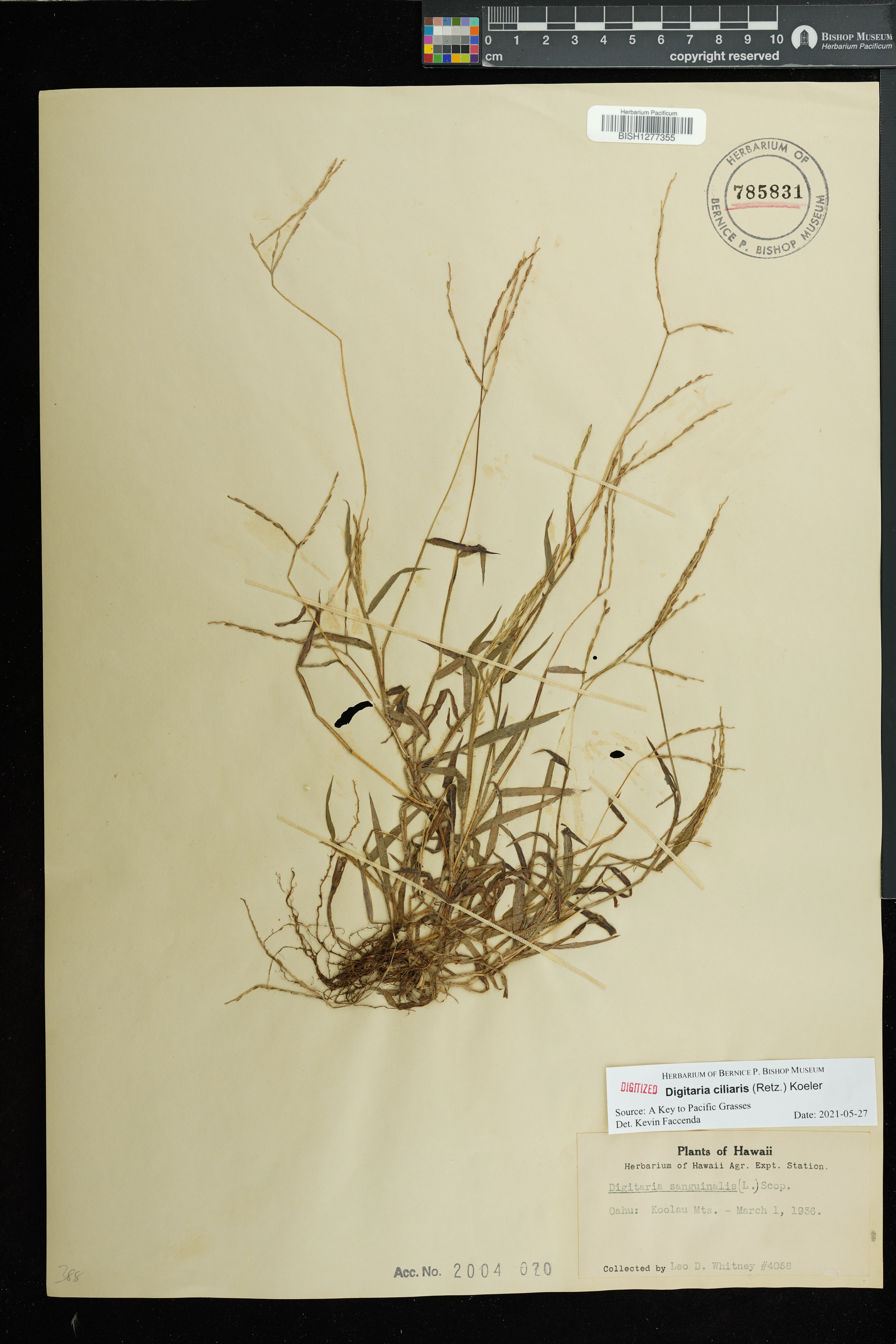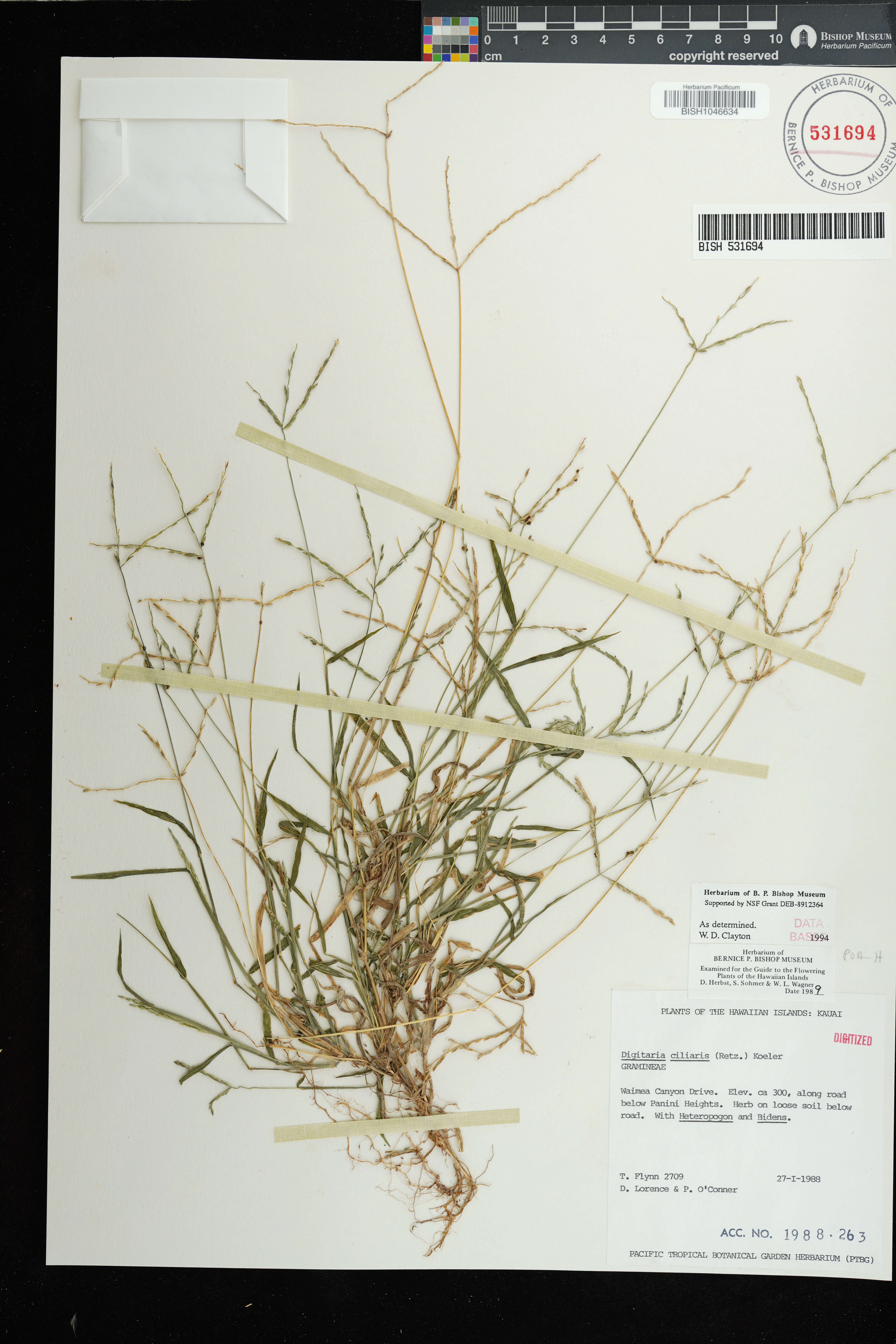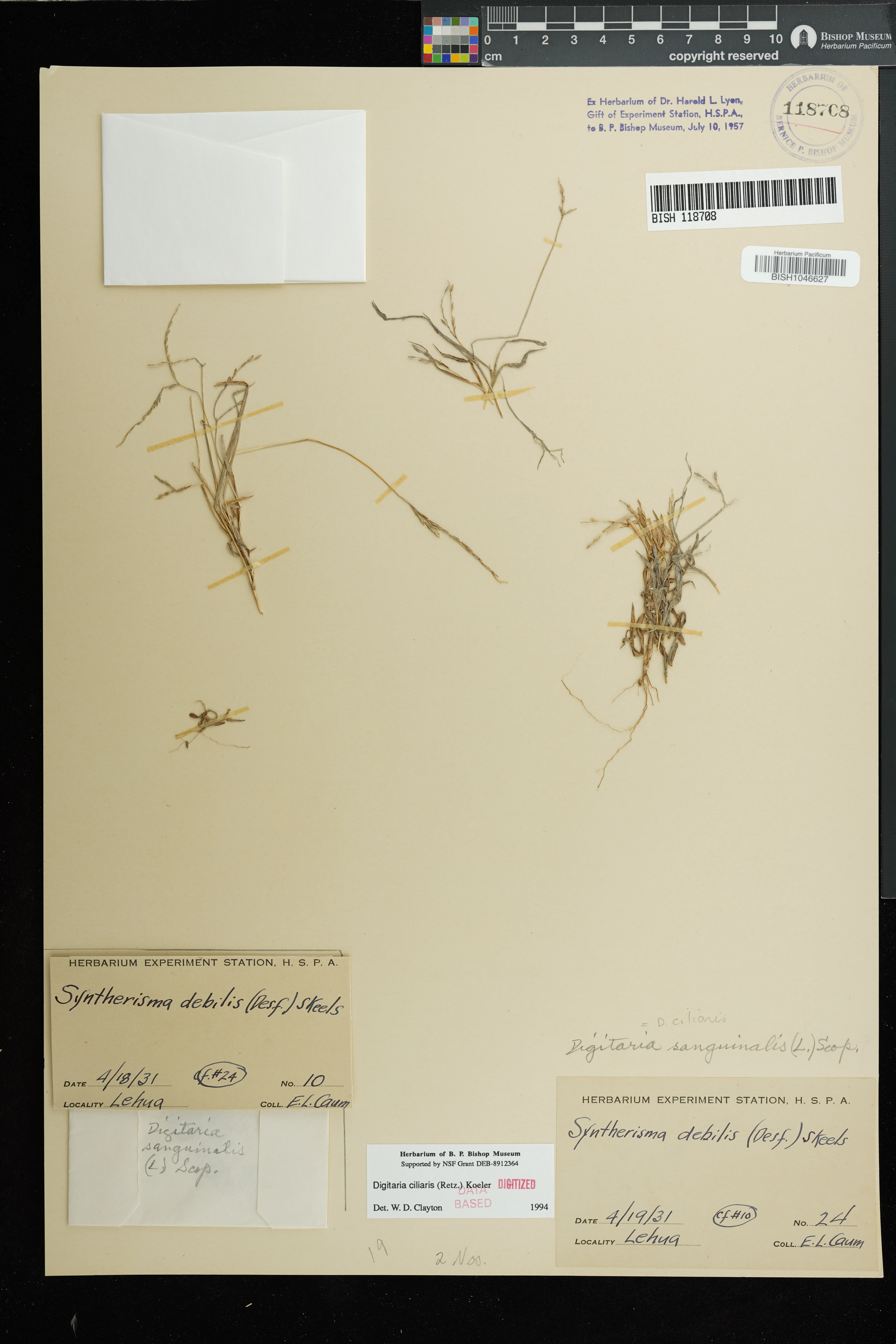 at edge of grassy swale planted with Brachiaria mutica between pineapple fields, with Digitaria ciliaris, Sonchus oleraceus, Emilia sonchifolia, Emilia fosbergii, Anagallis arvensis, Oxalis corniculata, Eragrostis pectinacea, Eleusine indica, Digitaria insularis, Melinis repens, Paspalum urvillei, Cynodon dactylon. |