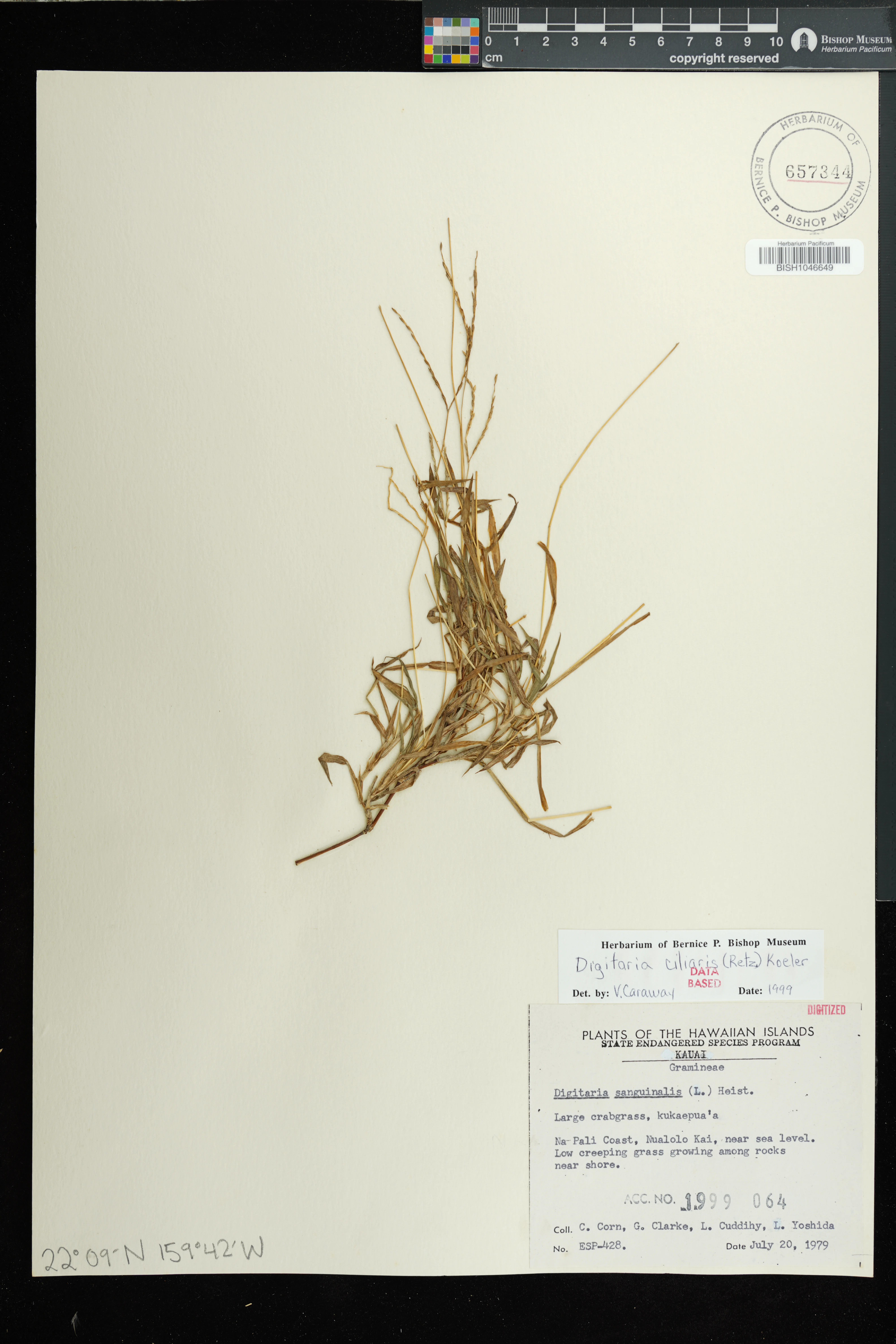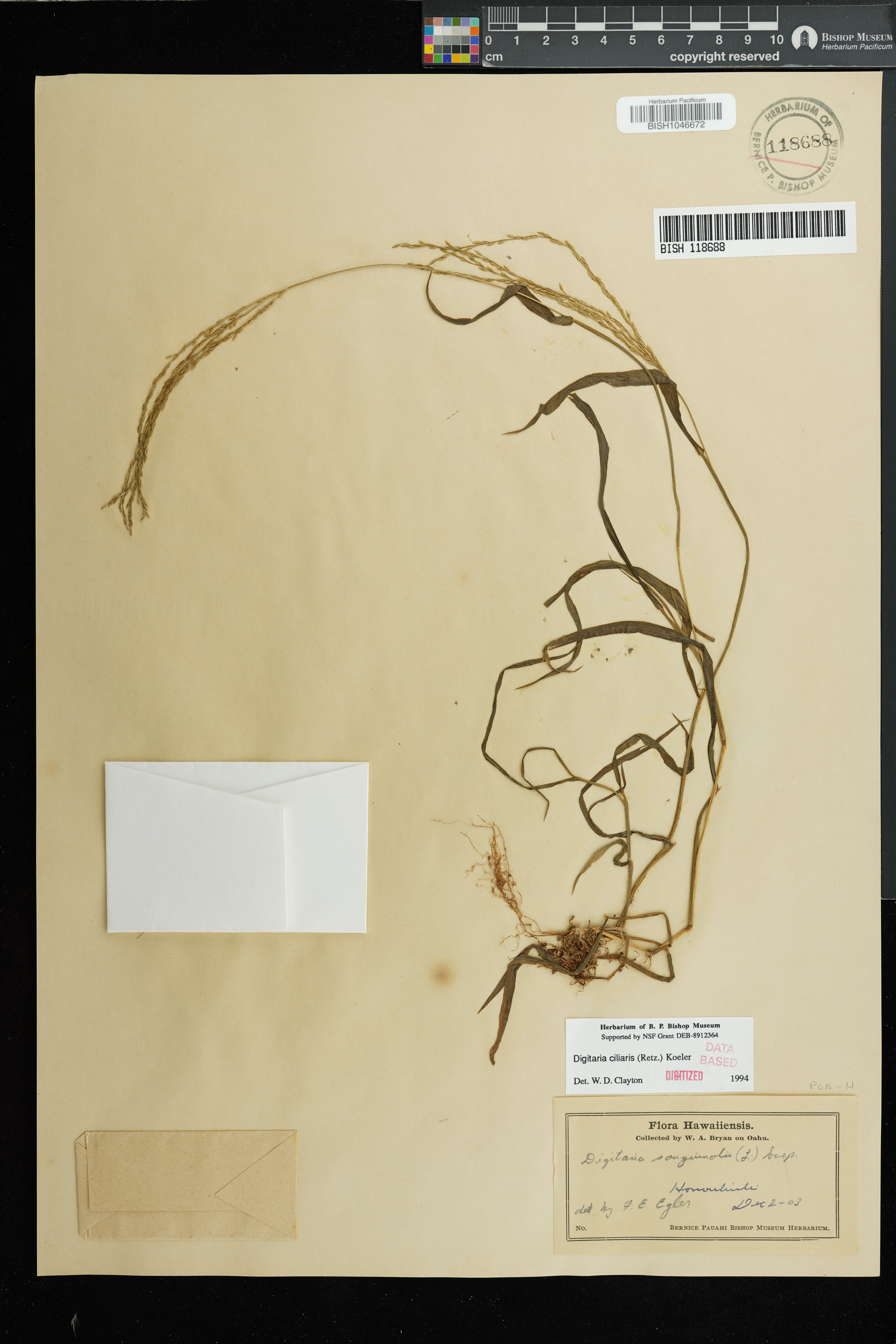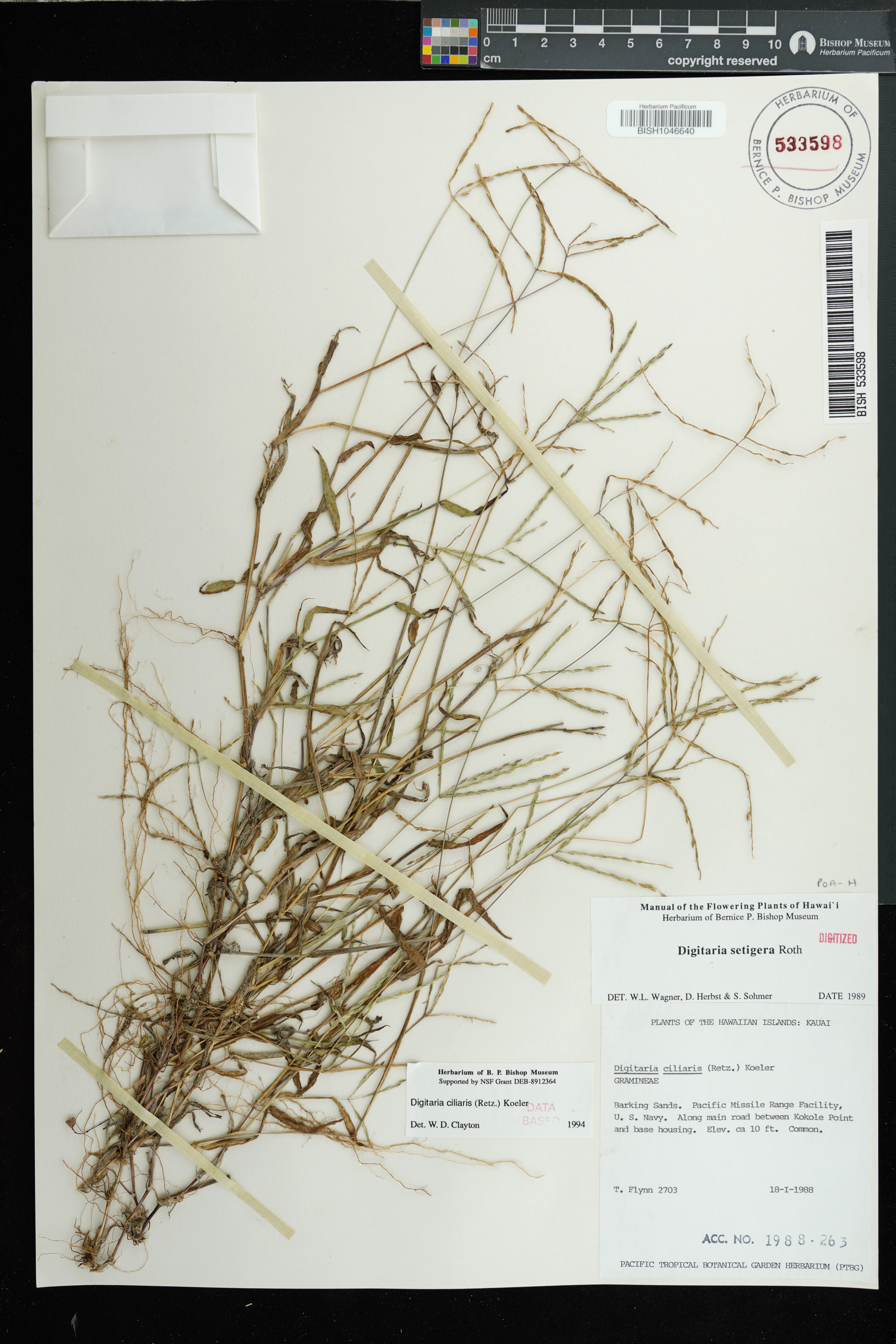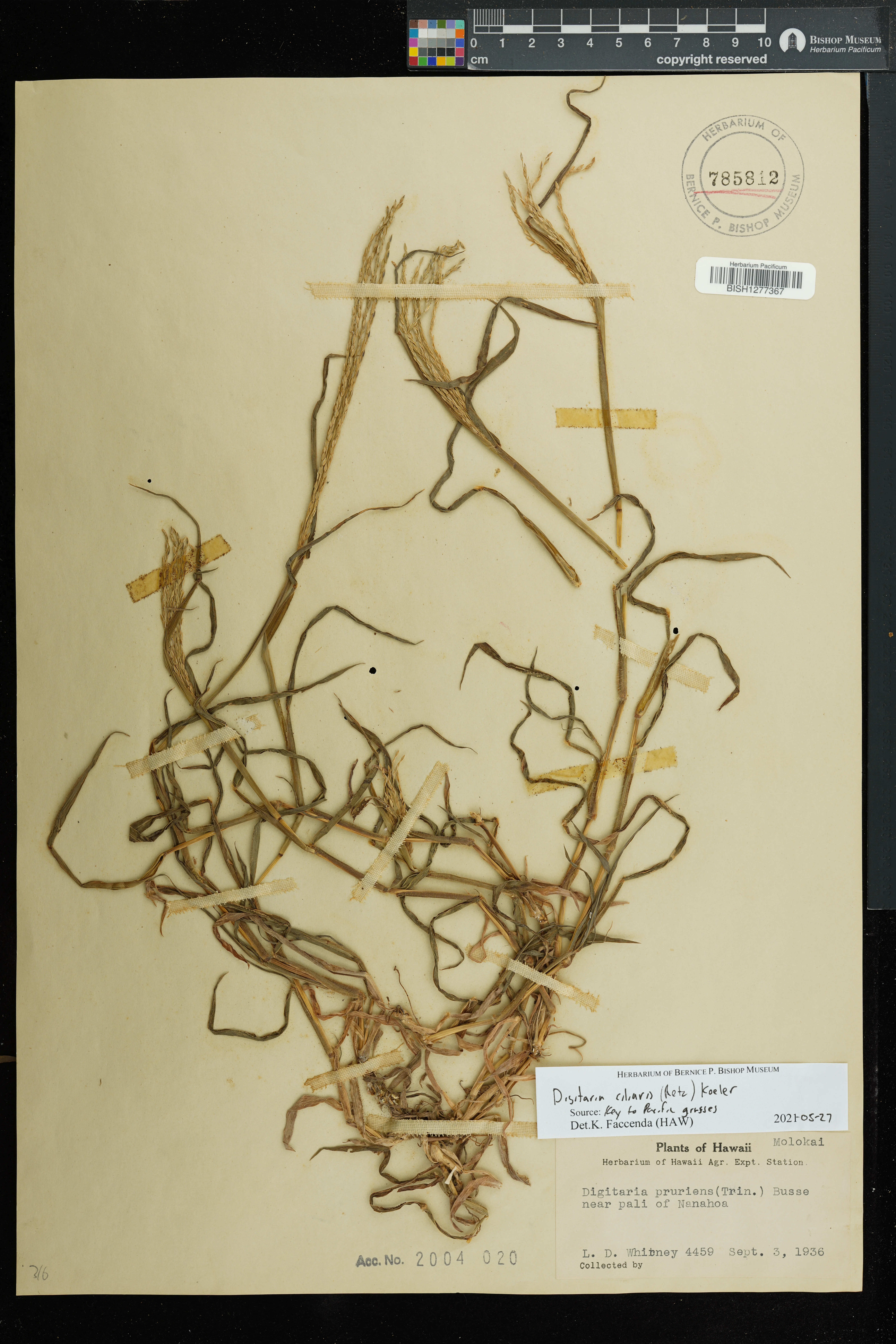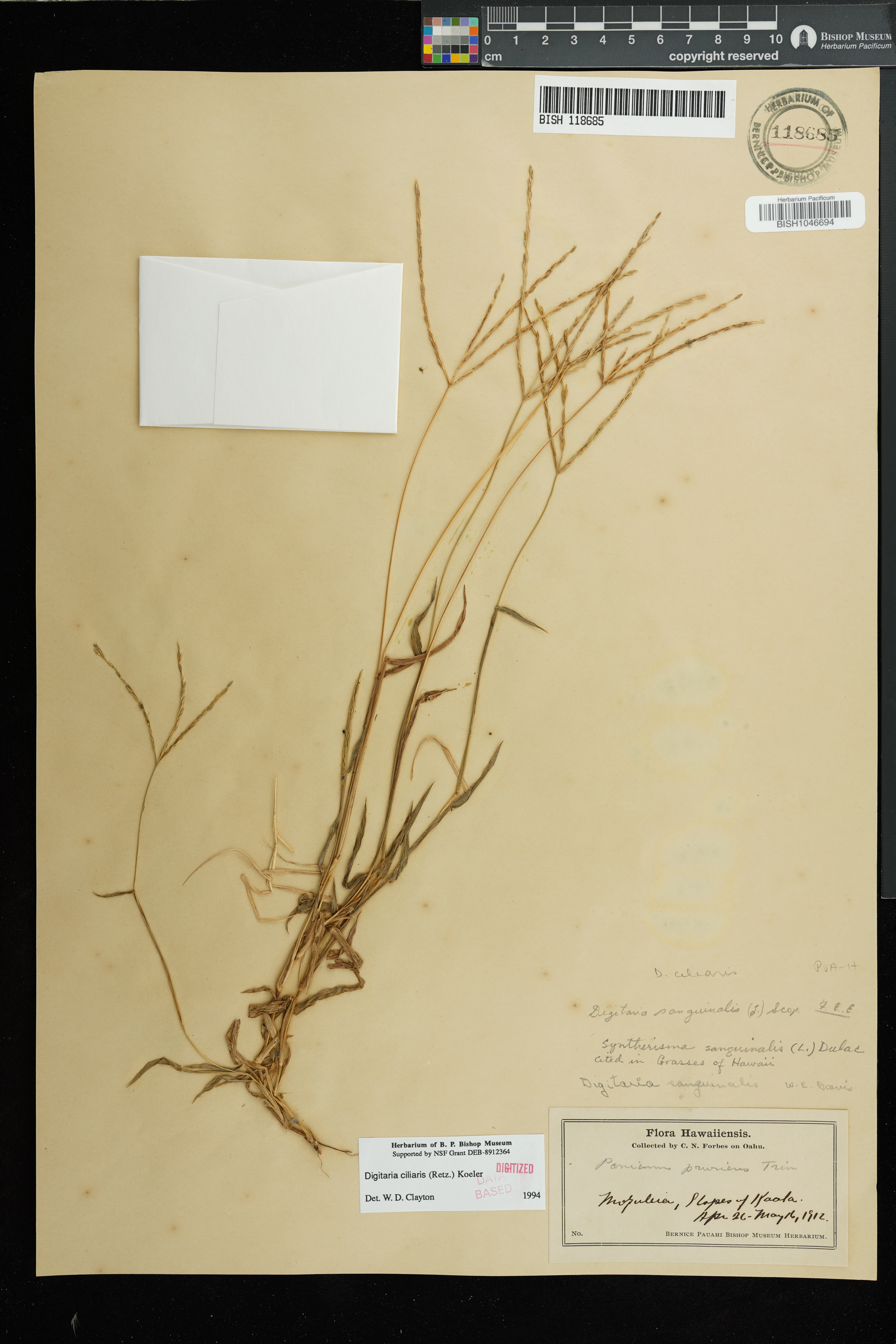 at edge of grassy swale planted with Brachiaria mutica between pineapple fields, with Digitaria ciliaris, Sonchus oleraceus, Emilia sonchifolia, Emilia fosbergii, Anagallis arvensis, Oxalis corniculata, Eragrostis pectinacea, Eleusine indica, Digitaria insularis, Melinis repens, Paspalum urvillei, Cynodon dactylon. |