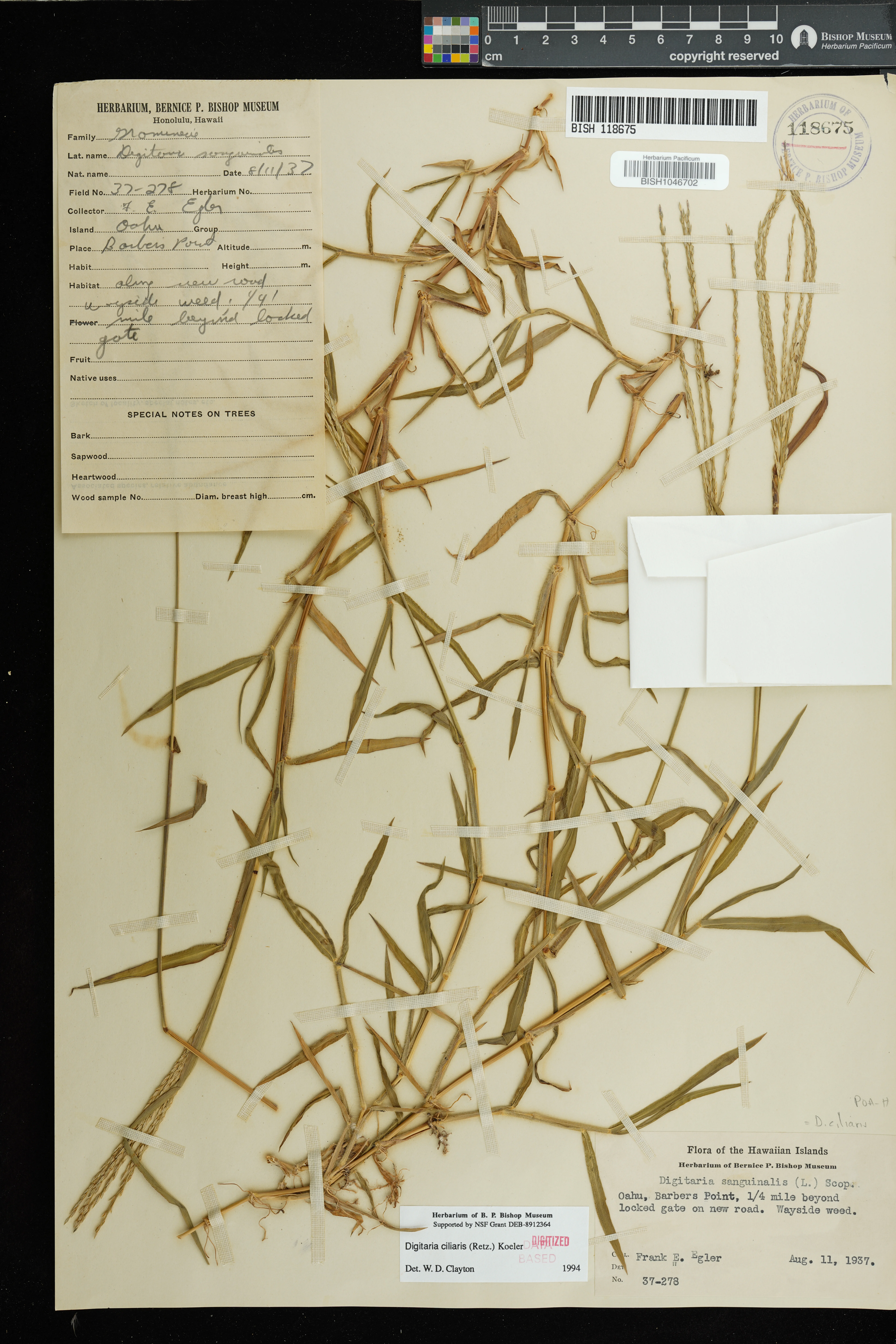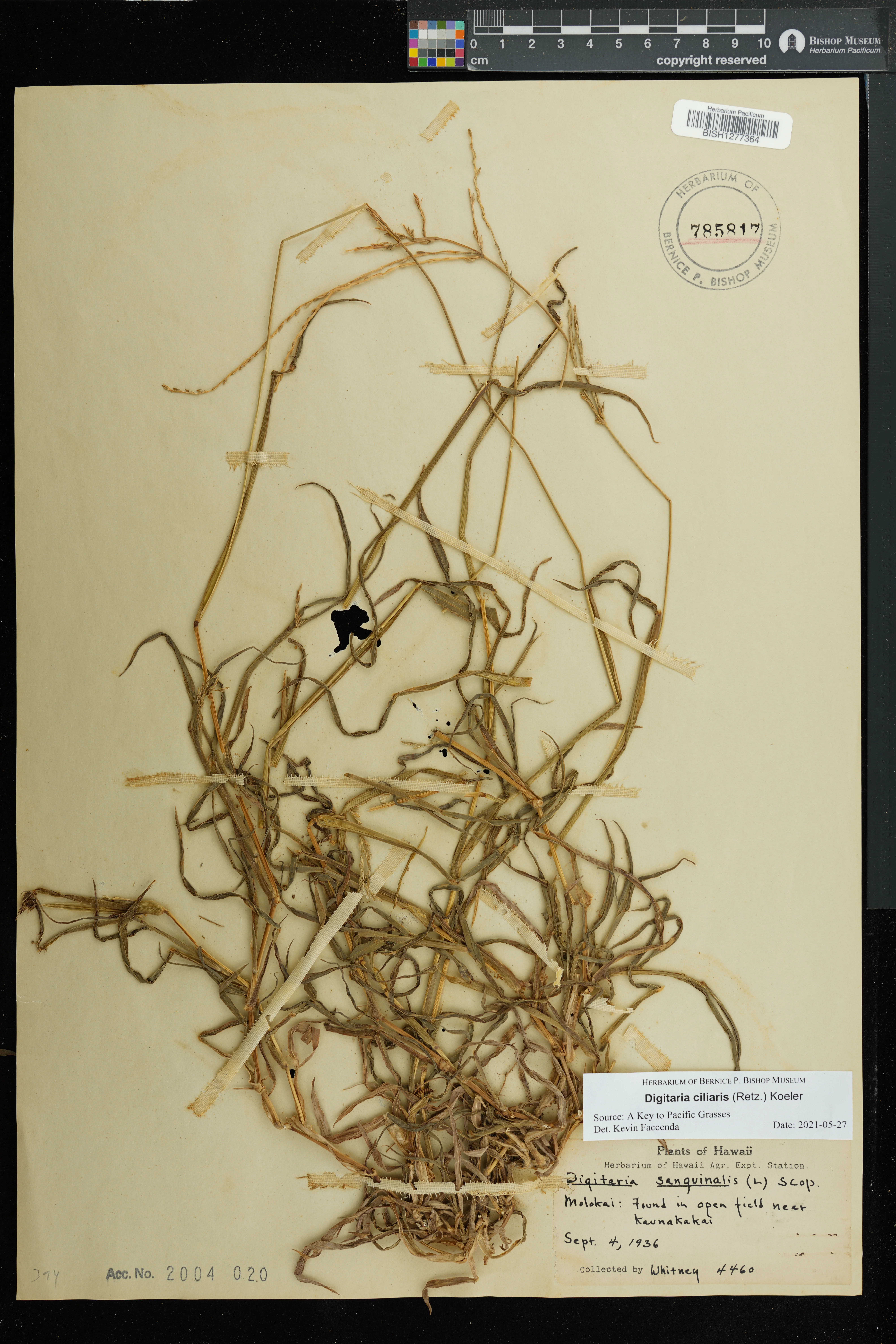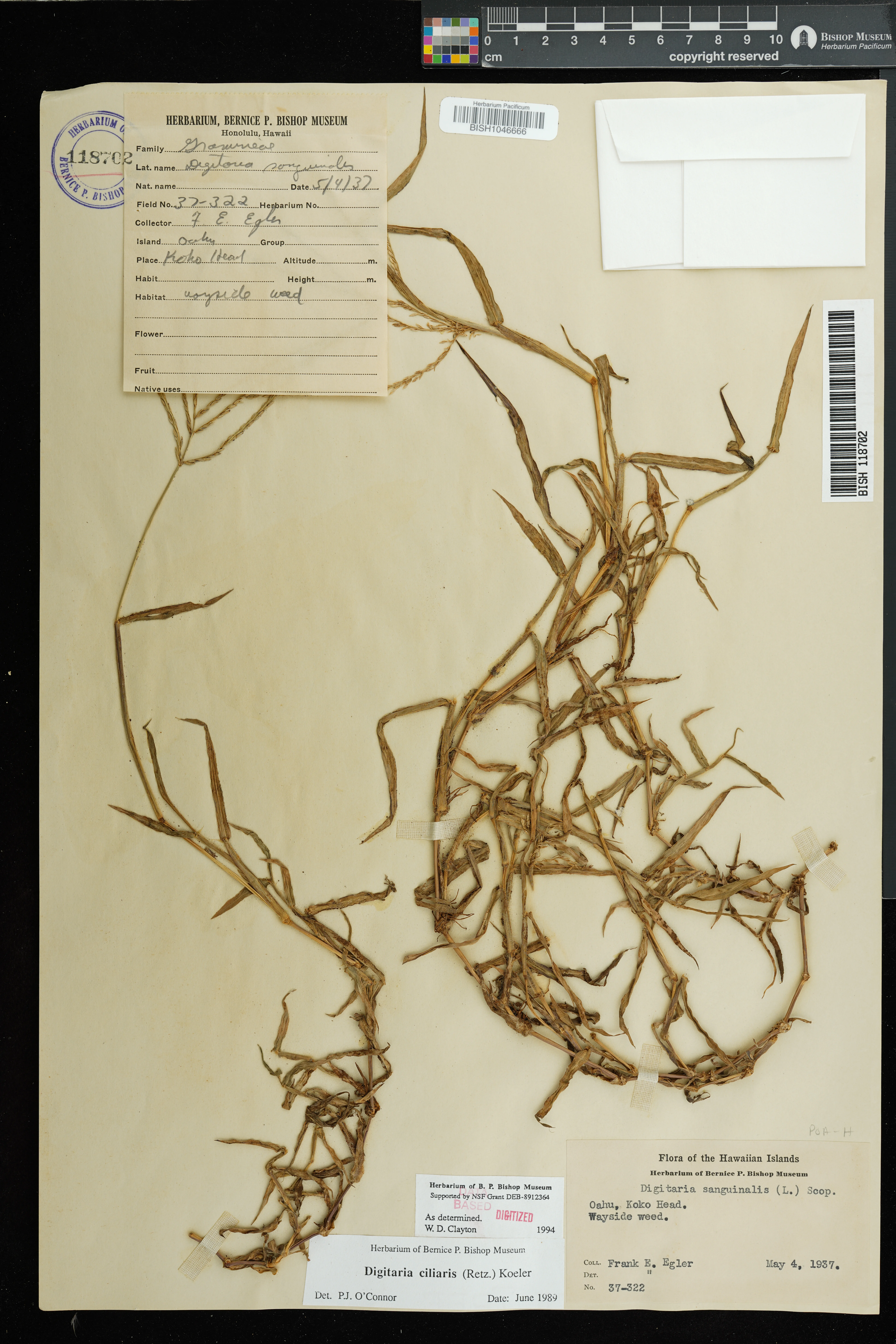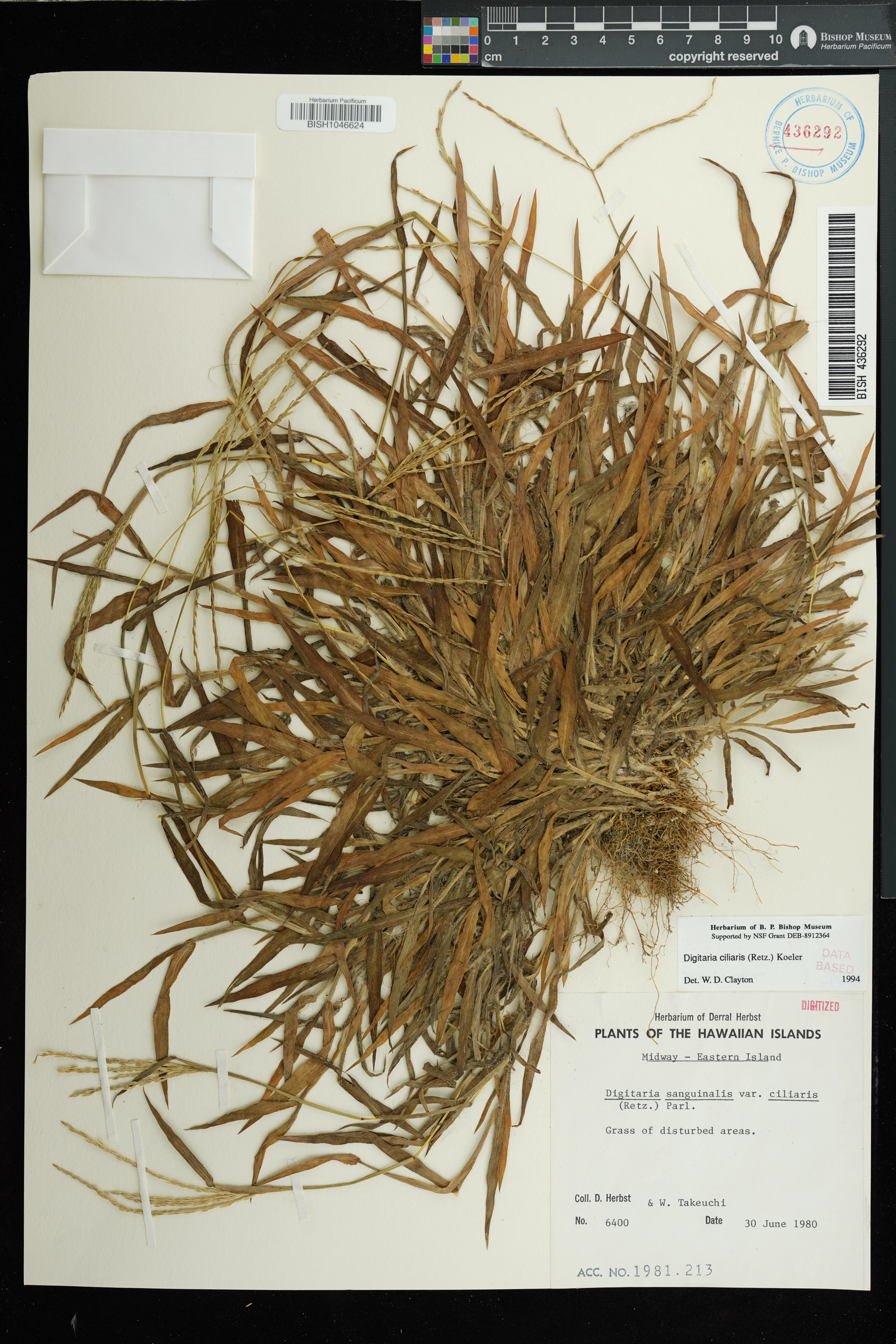 at edge of grassy swale planted with Brachiaria mutica between pineapple fields, with Digitaria ciliaris, Sonchus oleraceus, Emilia sonchifolia, Emilia fosbergii, Anagallis arvensis, Oxalis corniculata, Eragrostis pectinacea, Eleusine indica, Digitaria insularis, Melinis repens, Paspalum urvillei, Cynodon dactylon. |