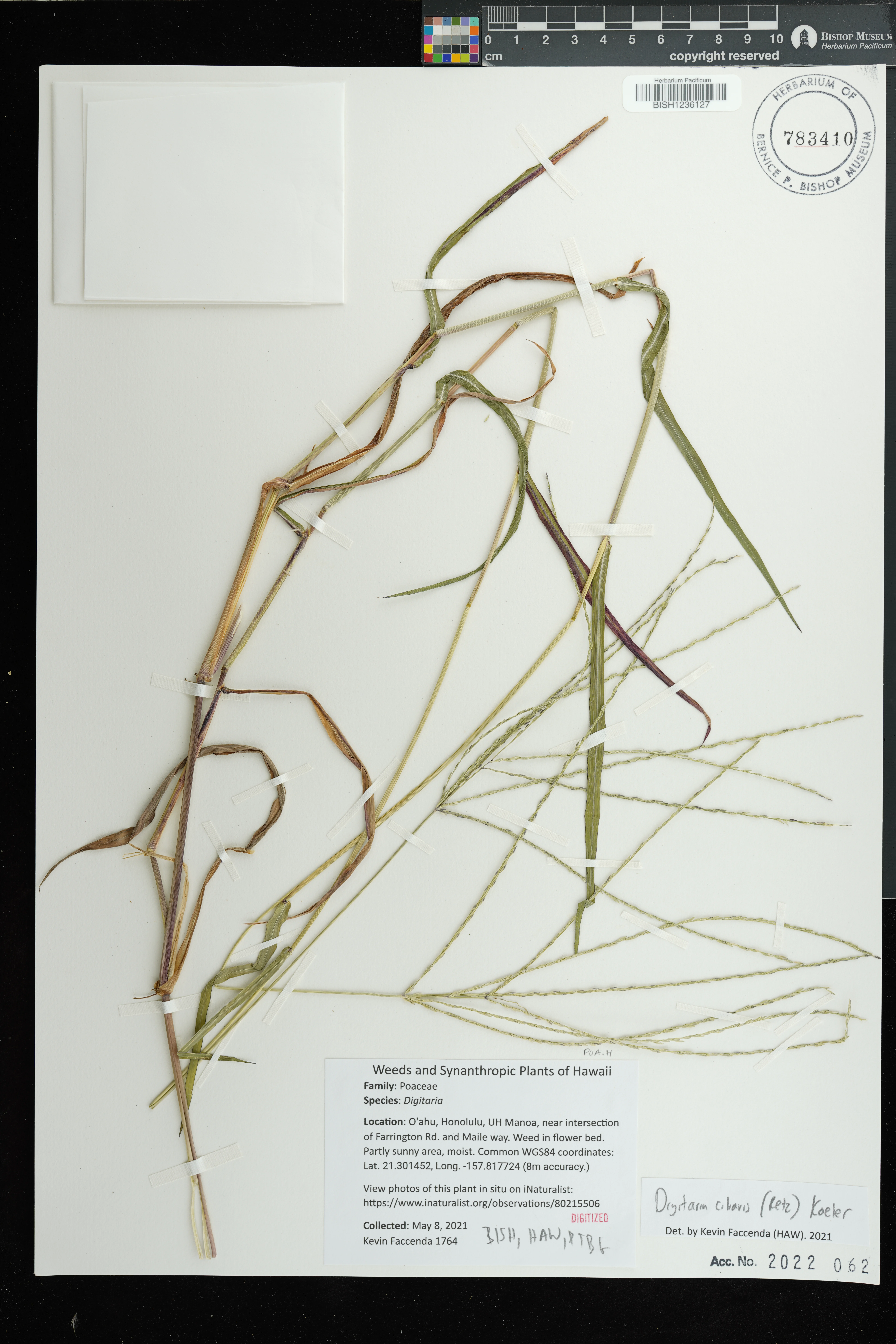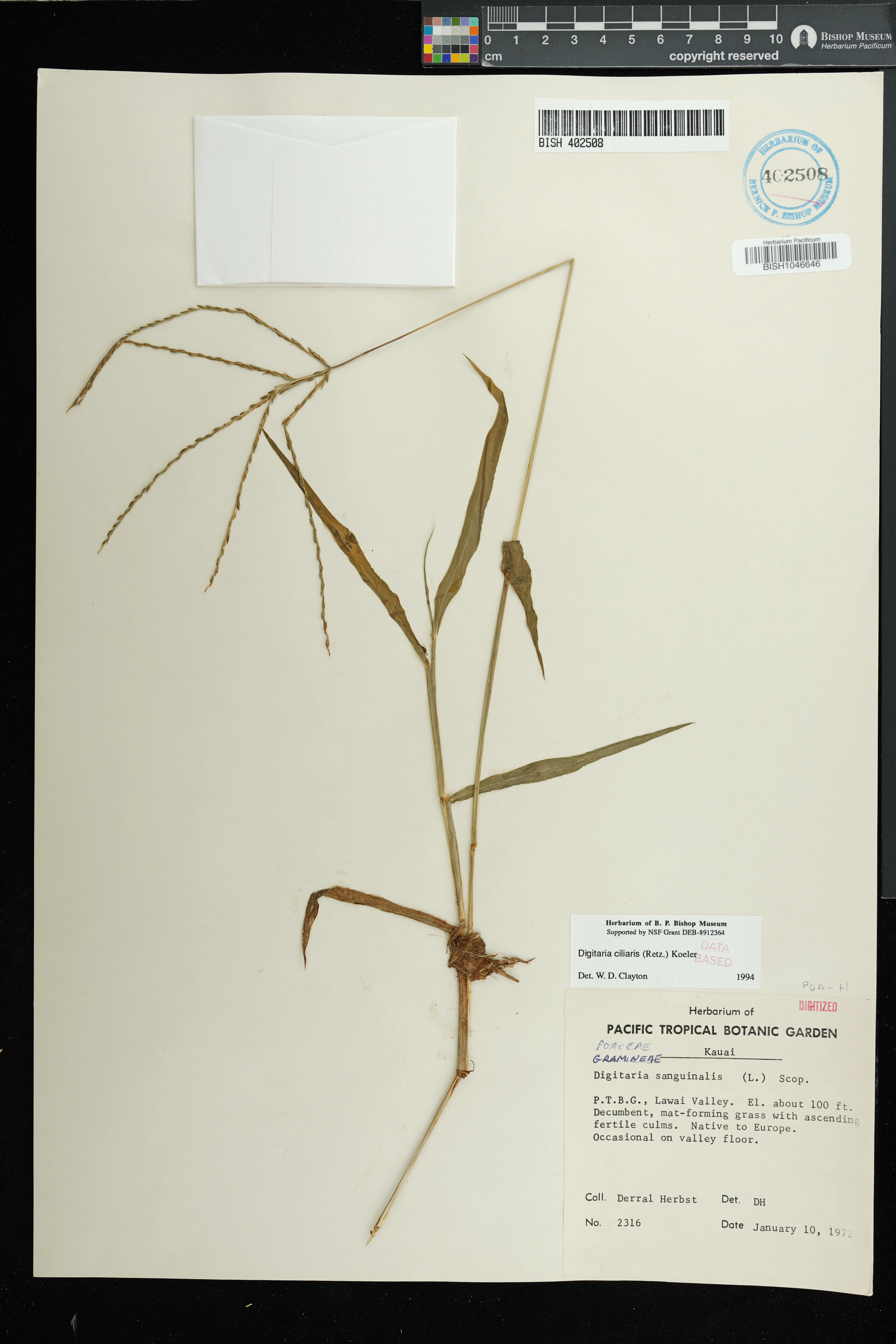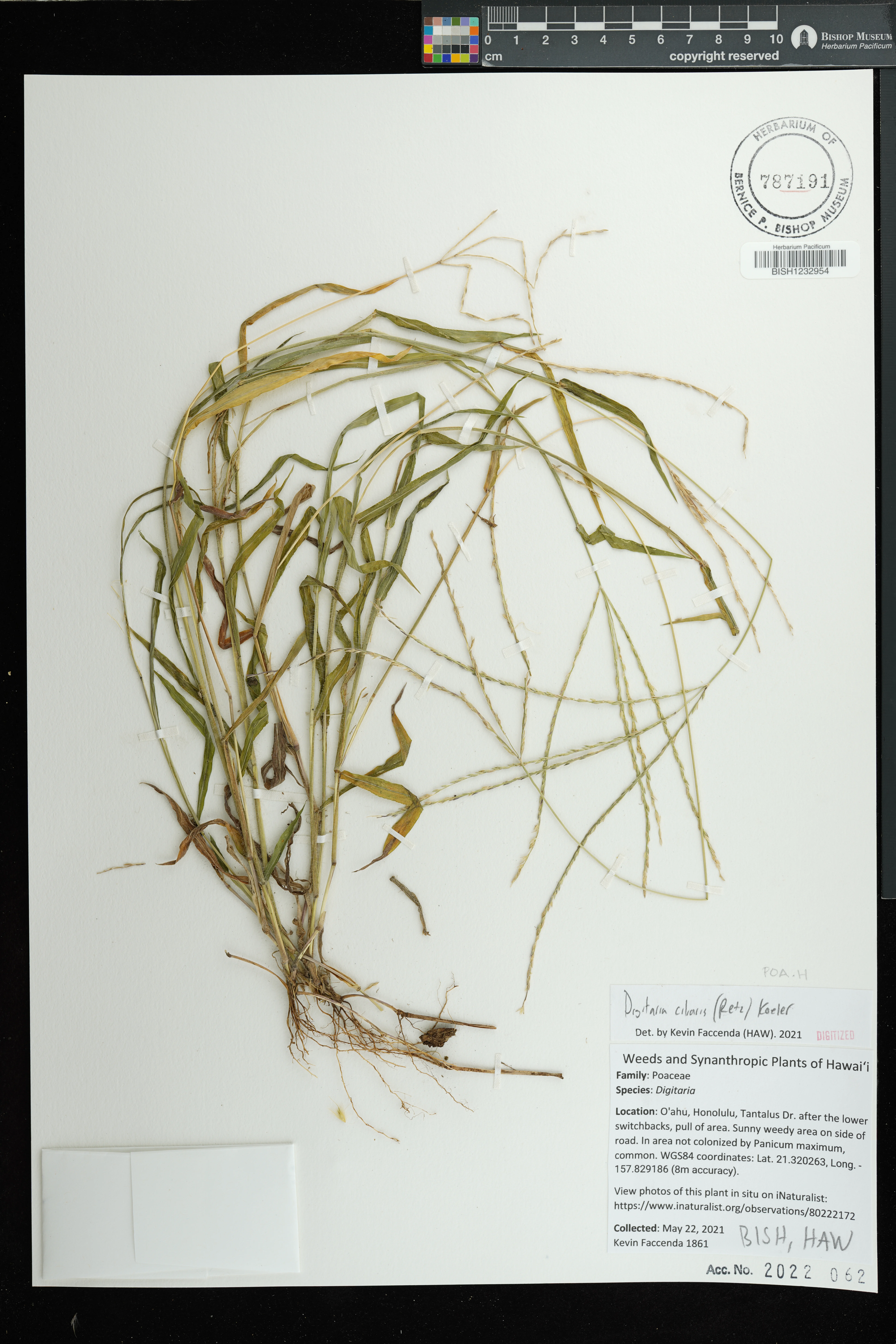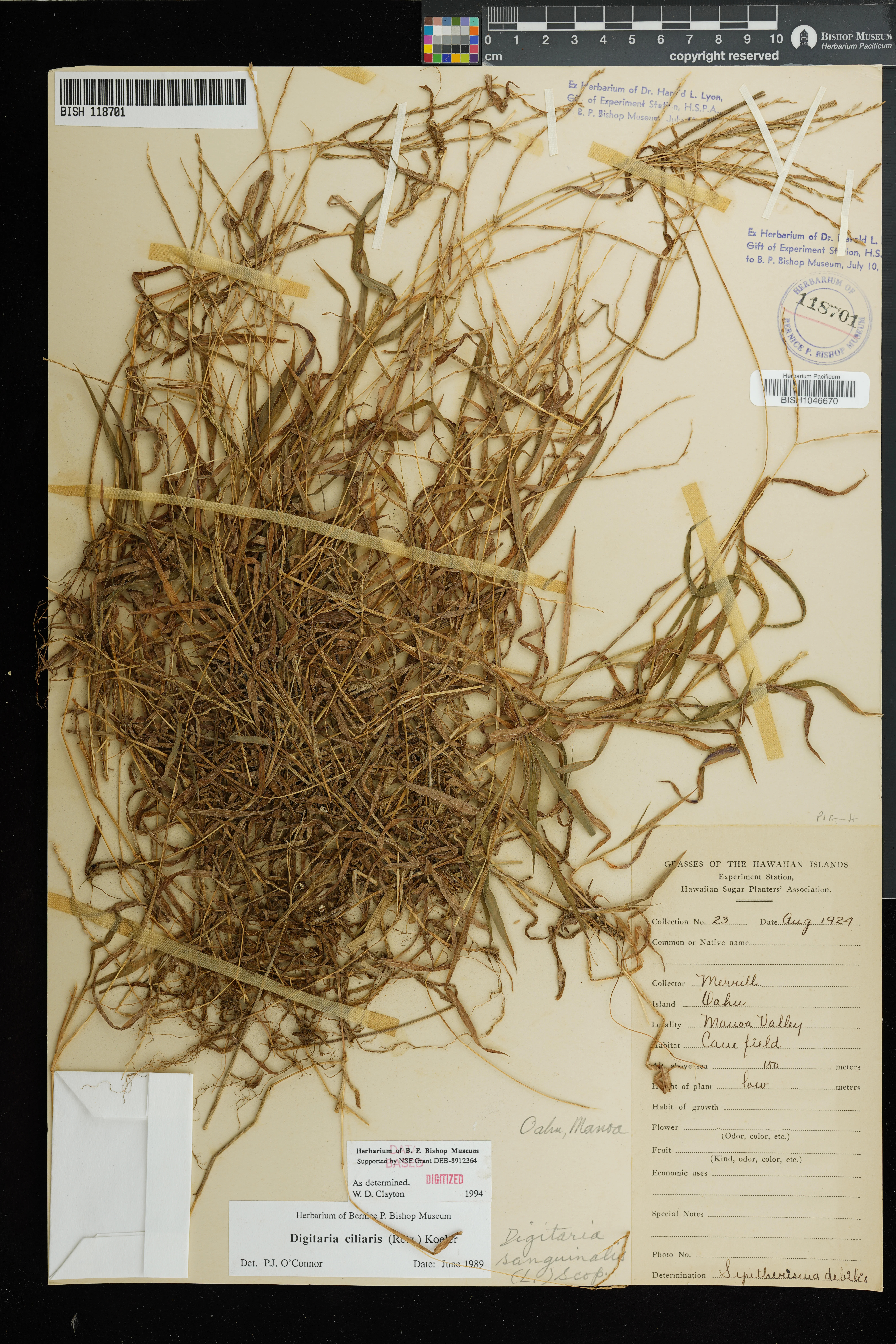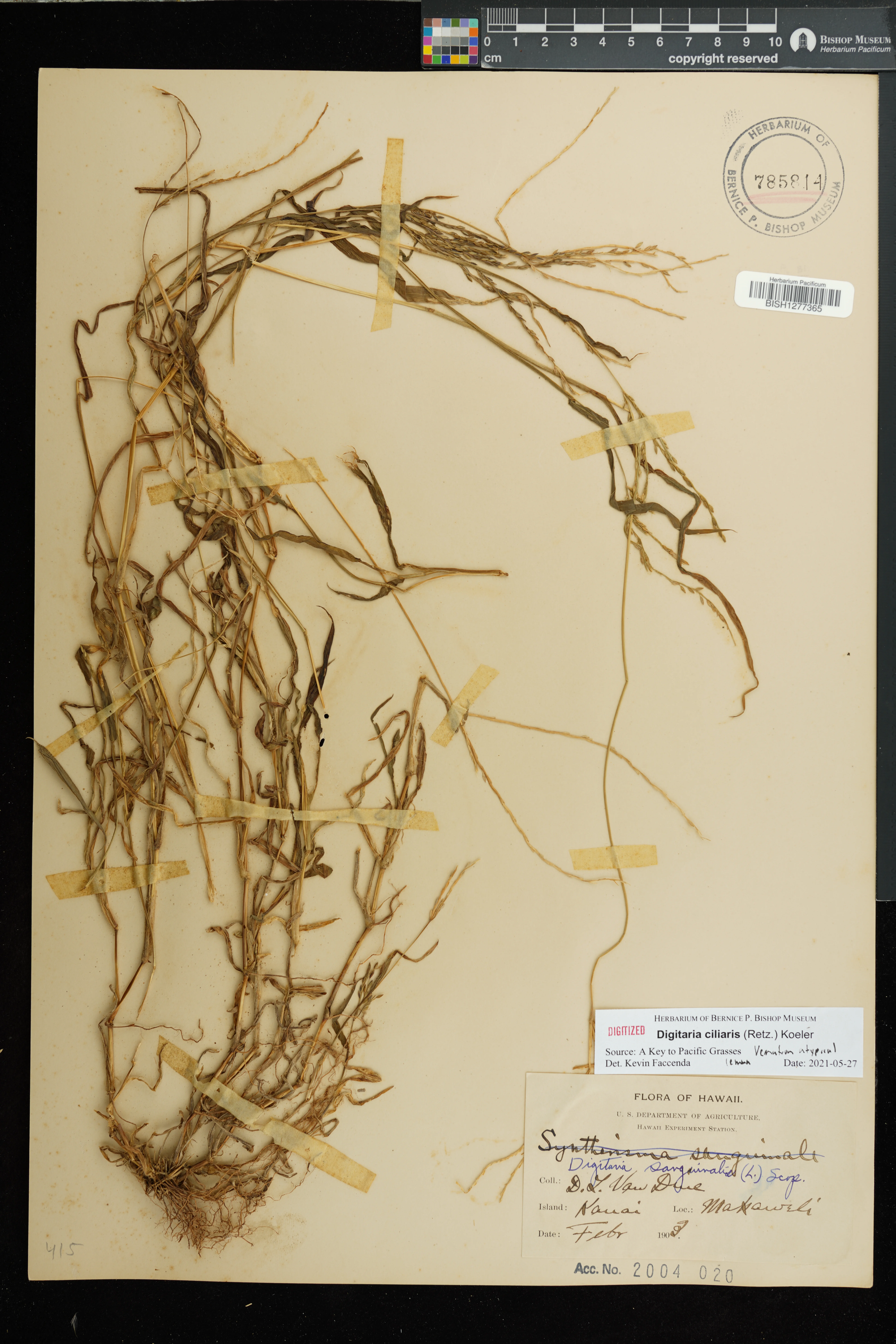 at edge of grassy swale planted with Brachiaria mutica between pineapple fields, with Digitaria ciliaris, Sonchus oleraceus, Emilia sonchifolia, Emilia fosbergii, Anagallis arvensis, Oxalis corniculata, Eragrostis pectinacea, Eleusine indica, Digitaria insularis, Melinis repens, Paspalum urvillei, Cynodon dactylon. |