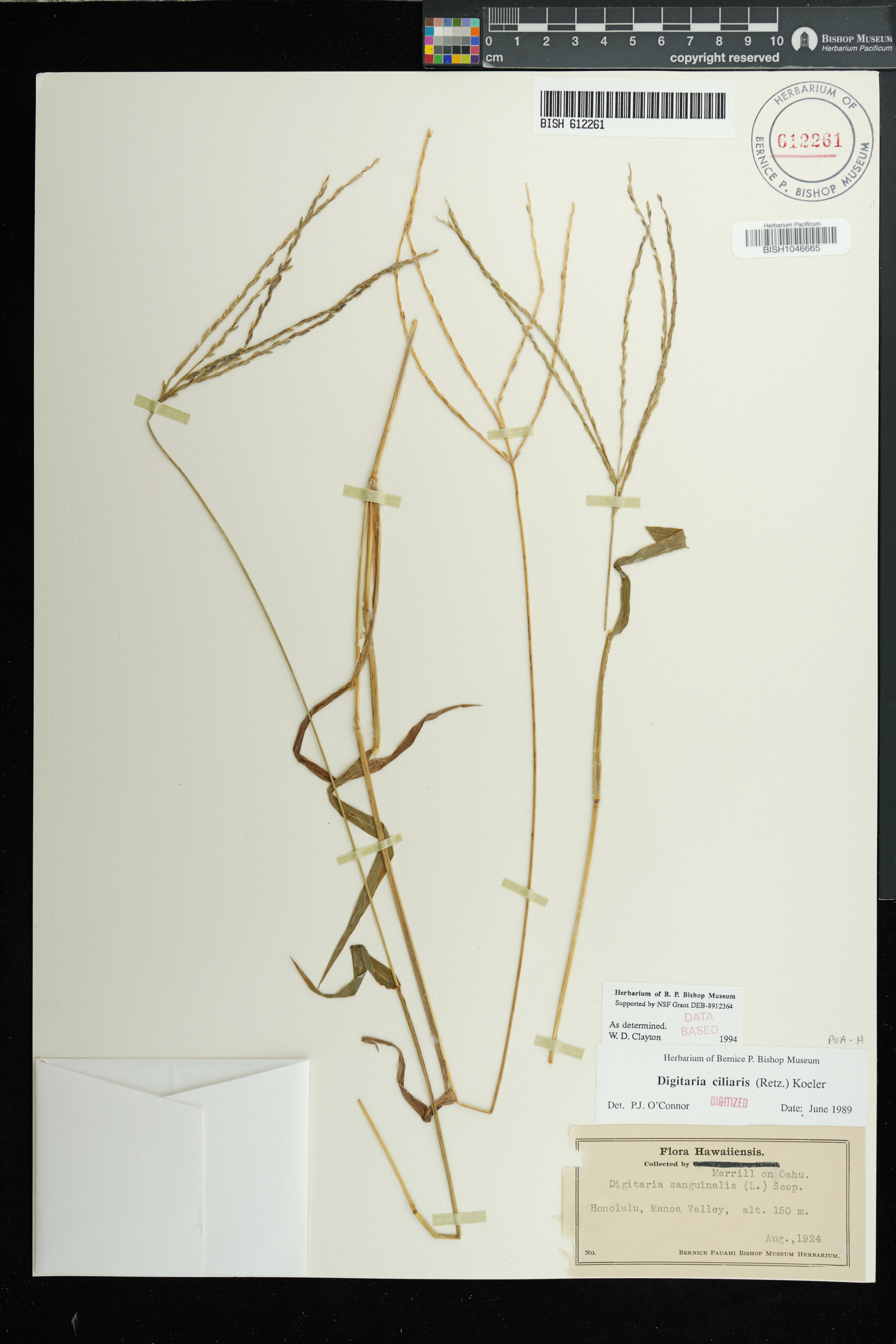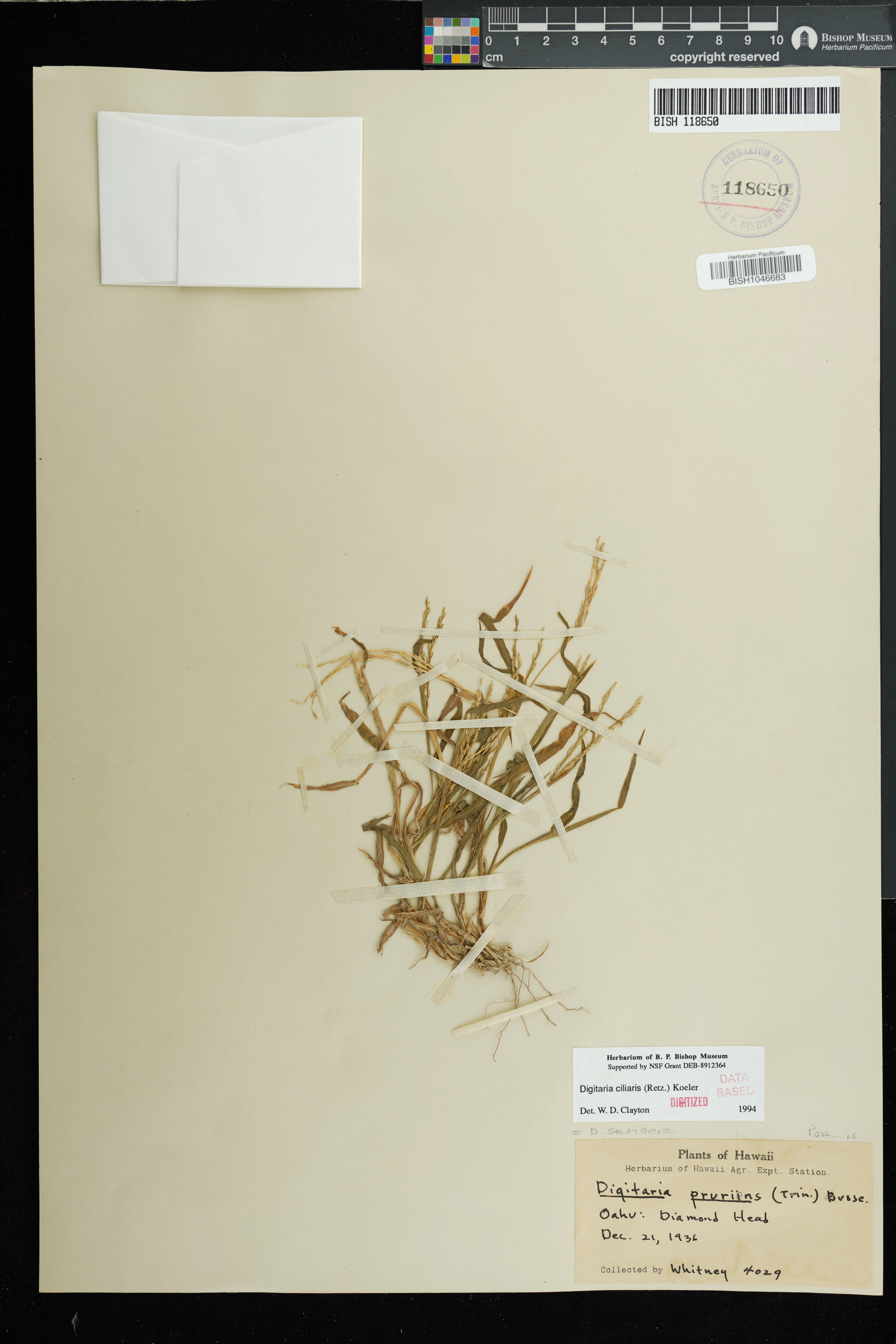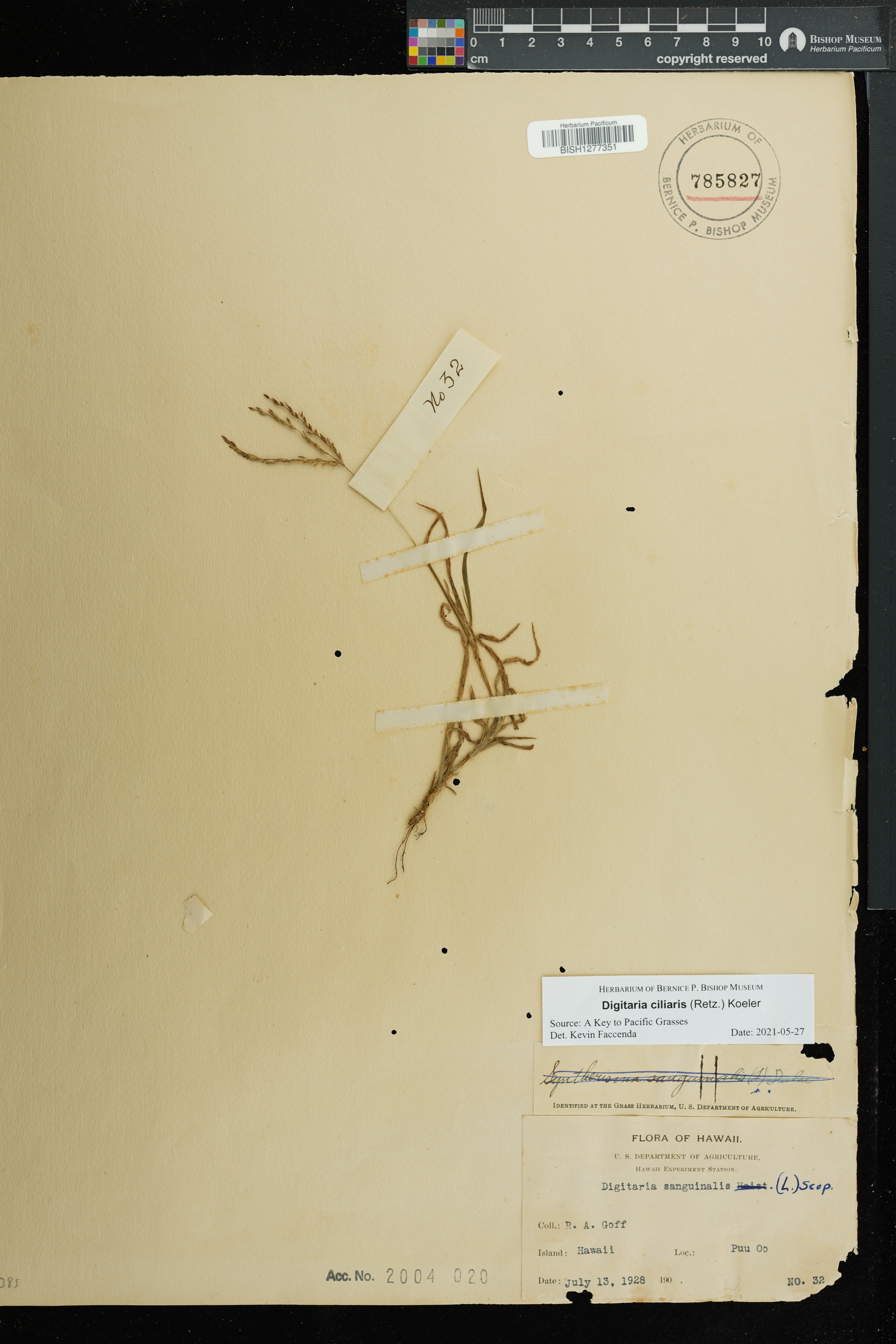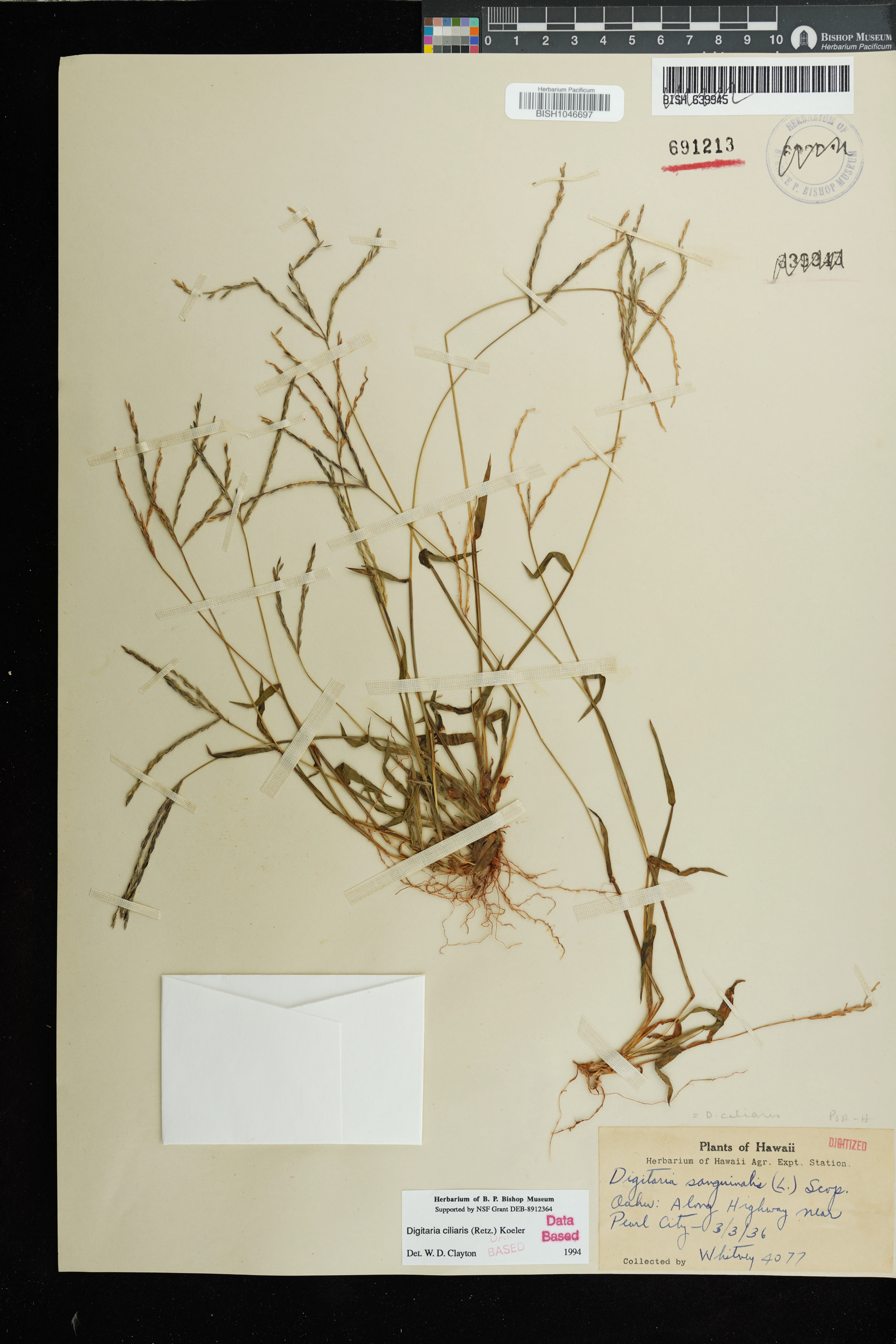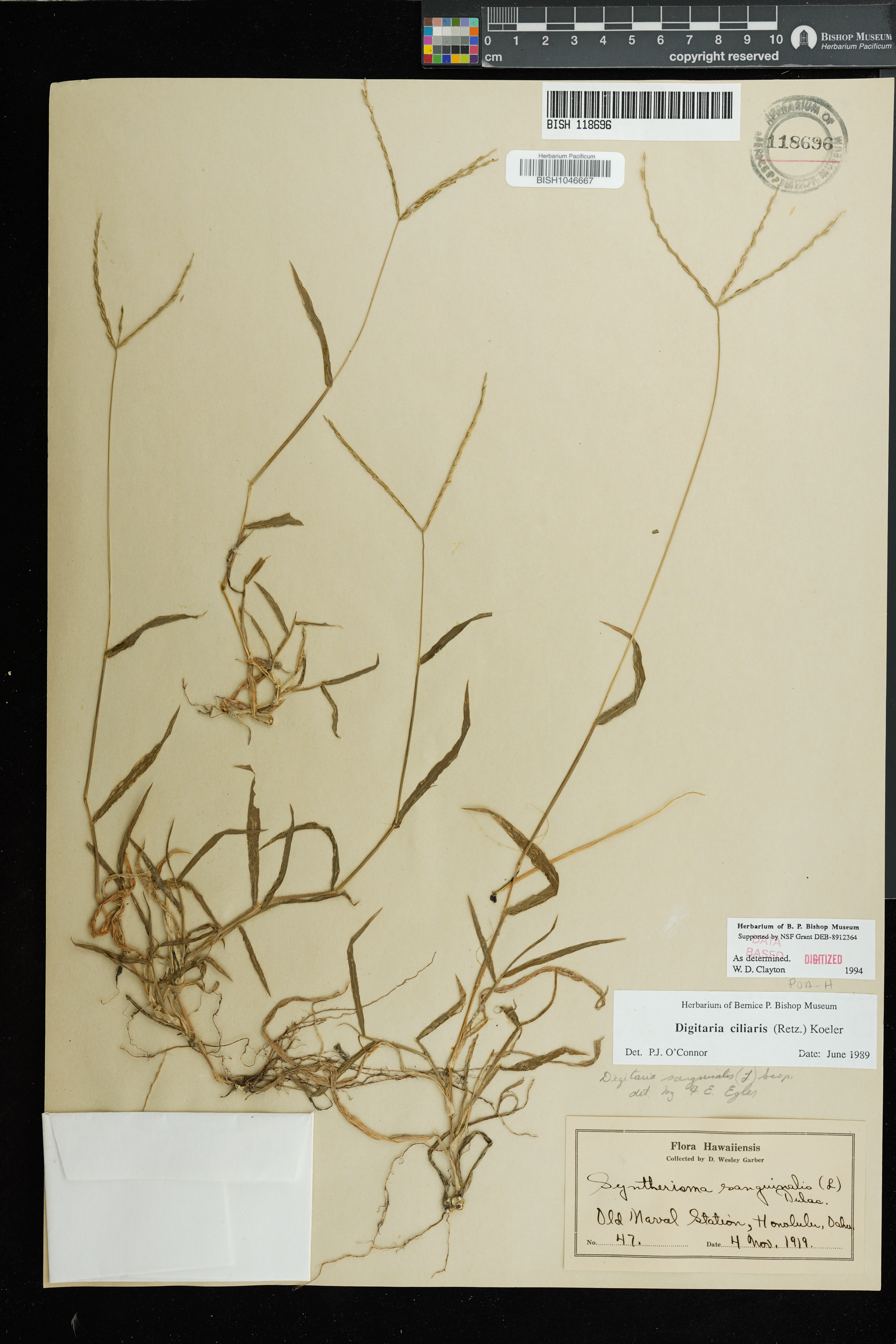 at edge of grassy swale planted with Brachiaria mutica between pineapple fields, with Digitaria ciliaris, Sonchus oleraceus, Emilia sonchifolia, Emilia fosbergii, Anagallis arvensis, Oxalis corniculata, Eragrostis pectinacea, Eleusine indica, Digitaria insularis, Melinis repens, Paspalum urvillei, Cynodon dactylon. |