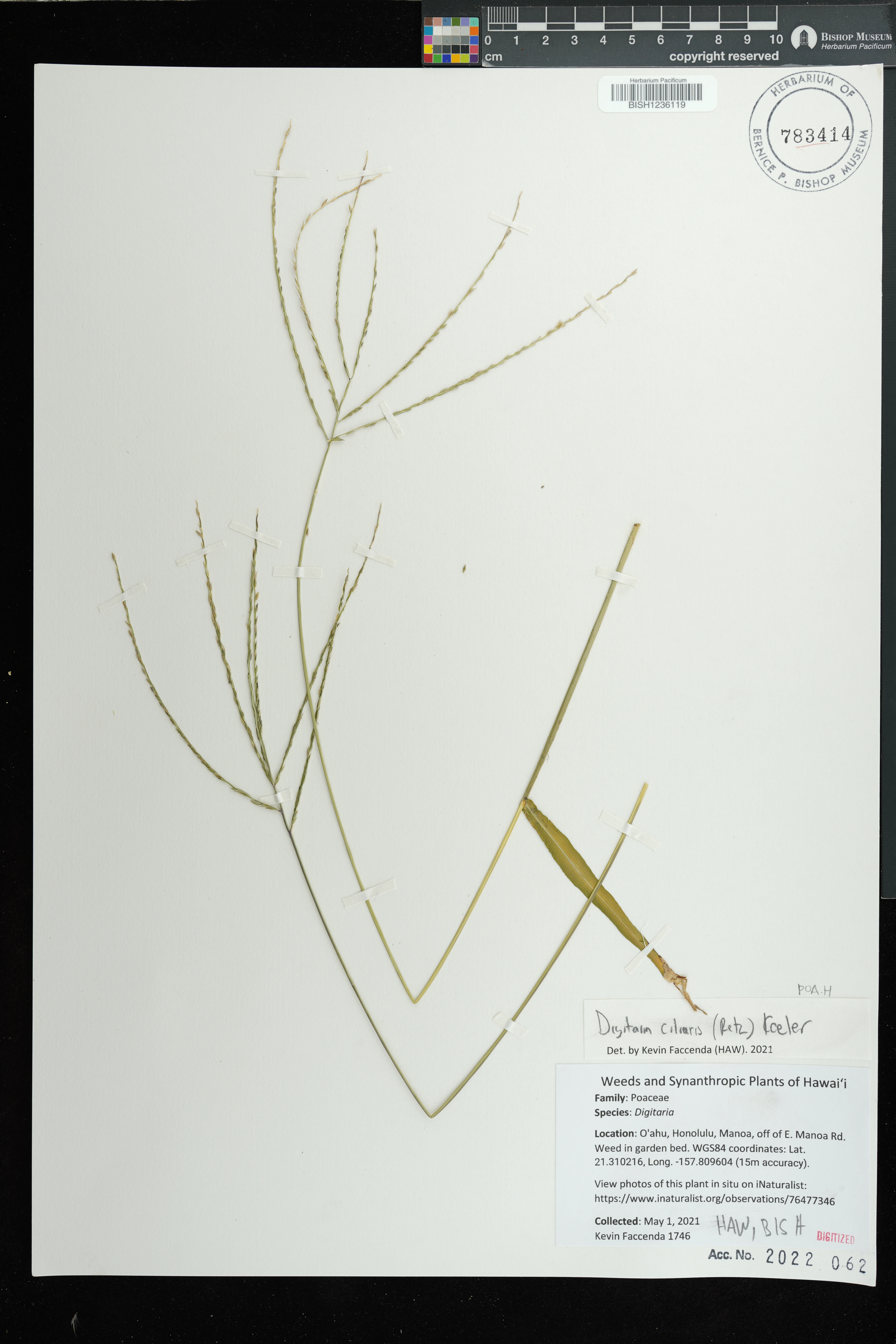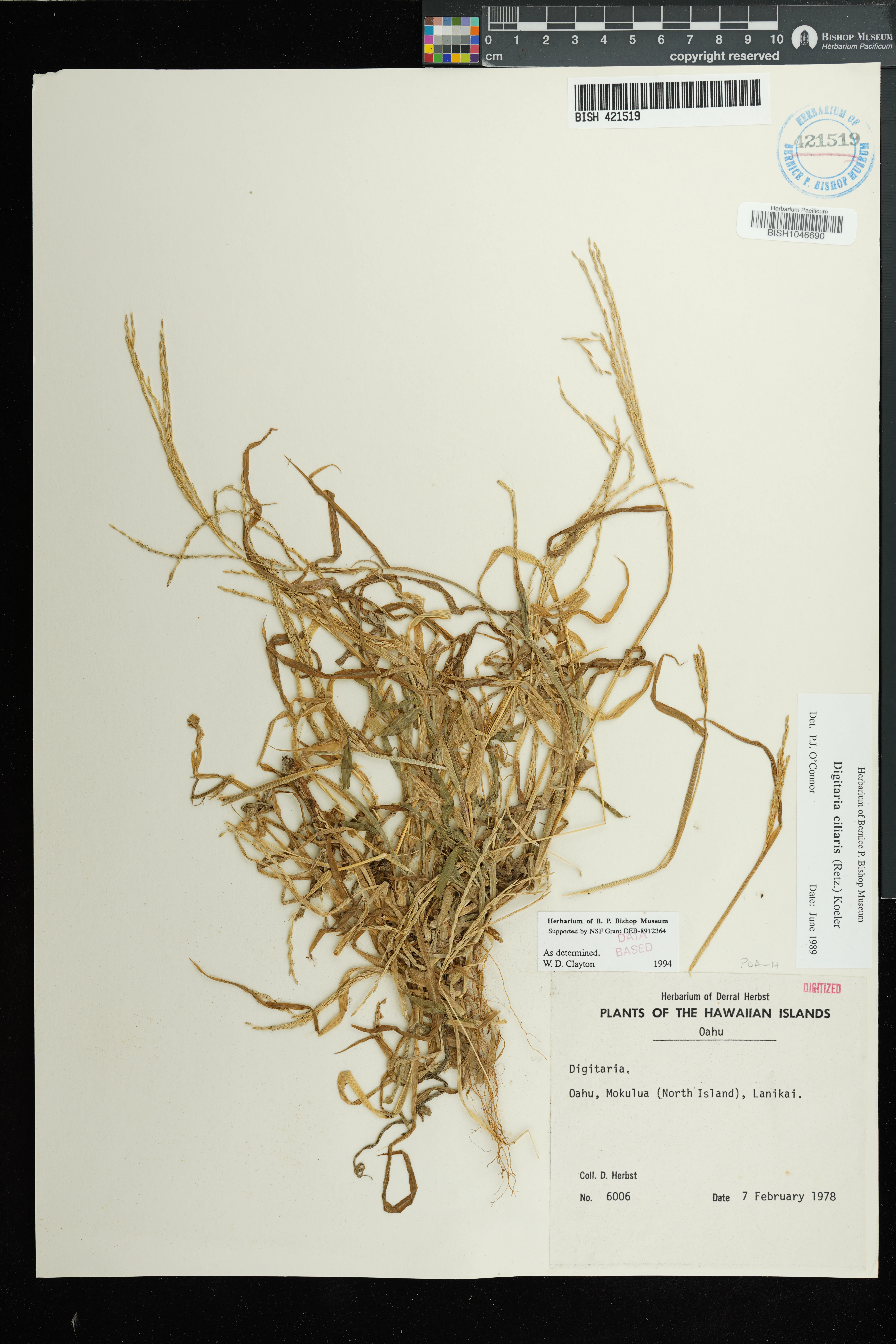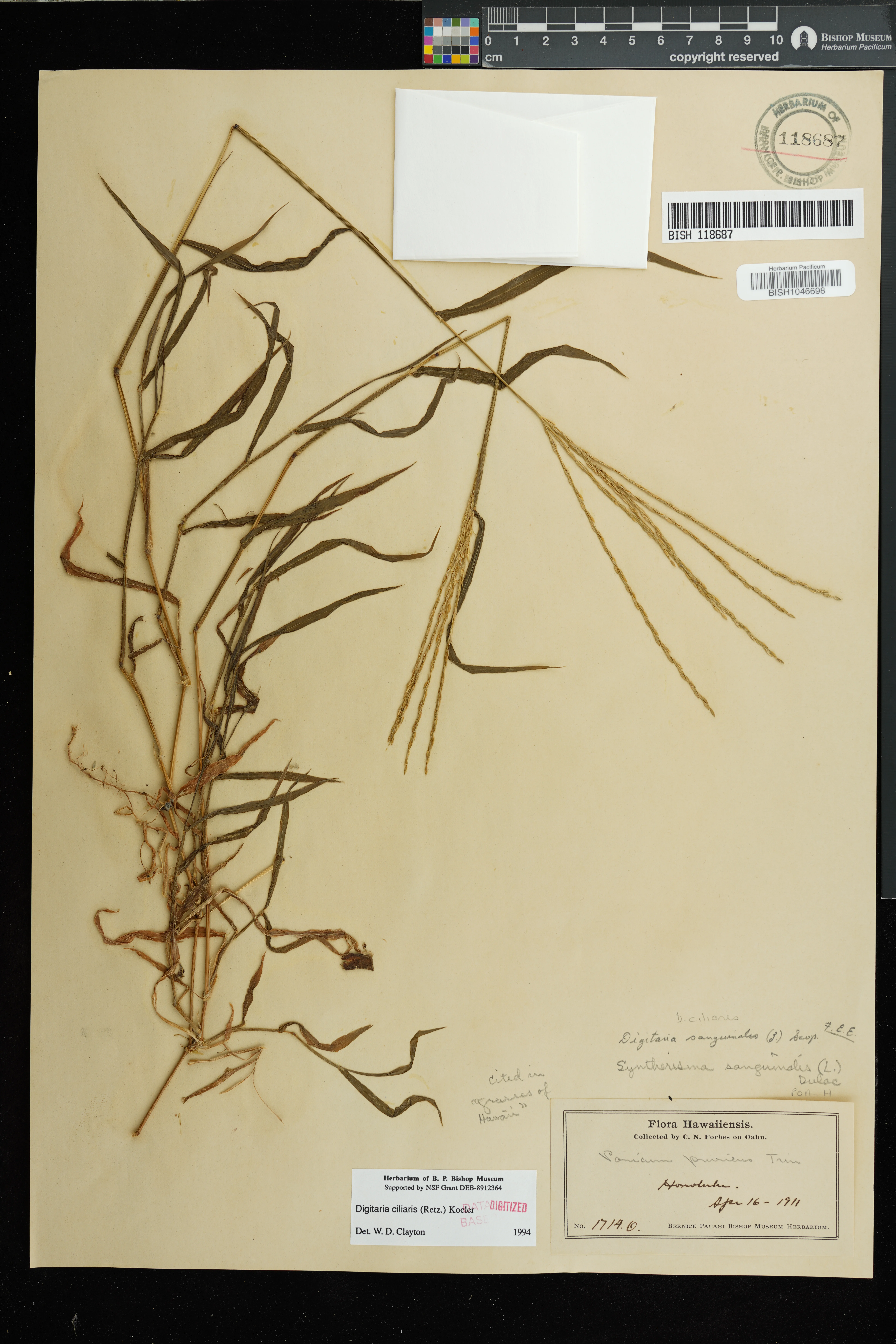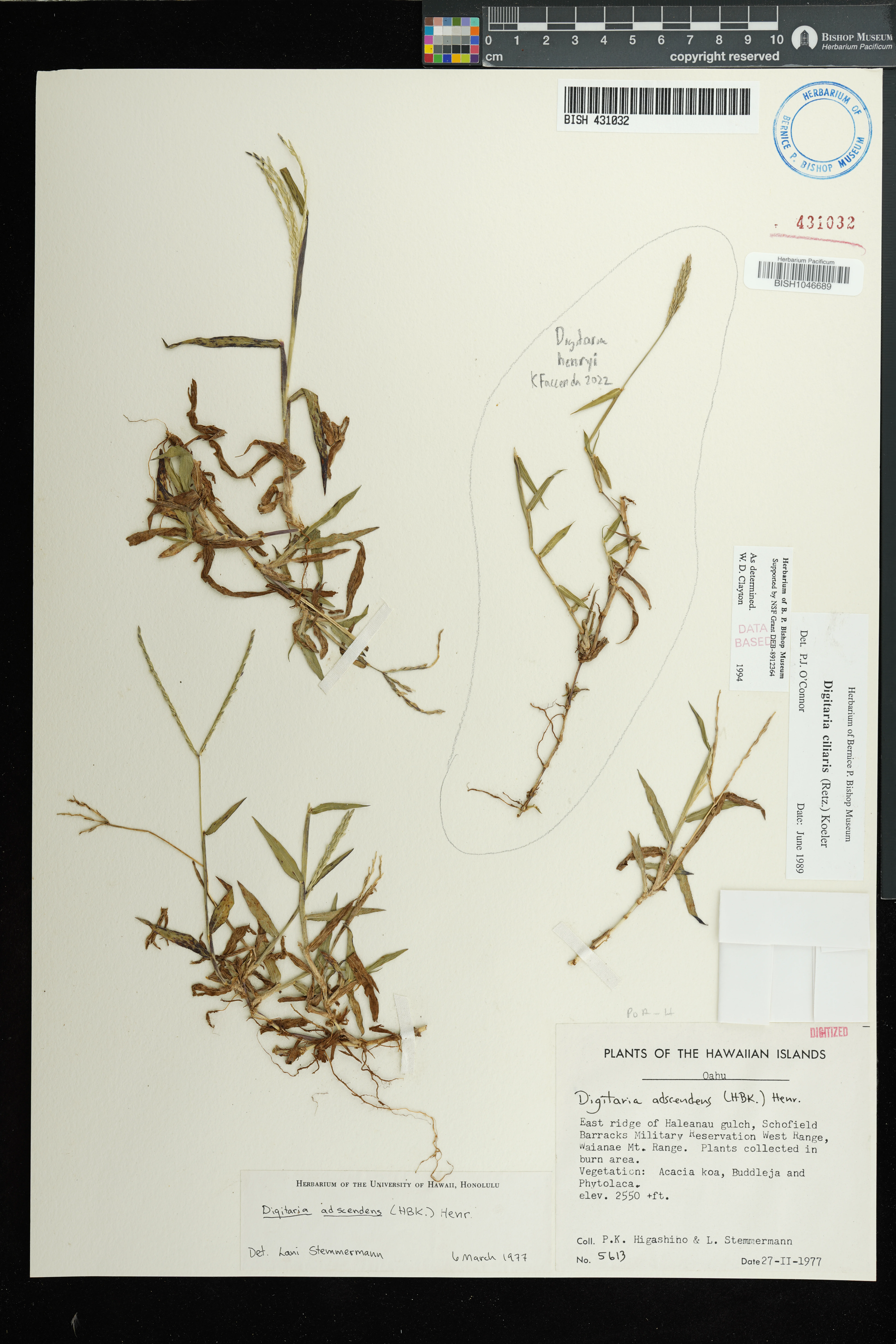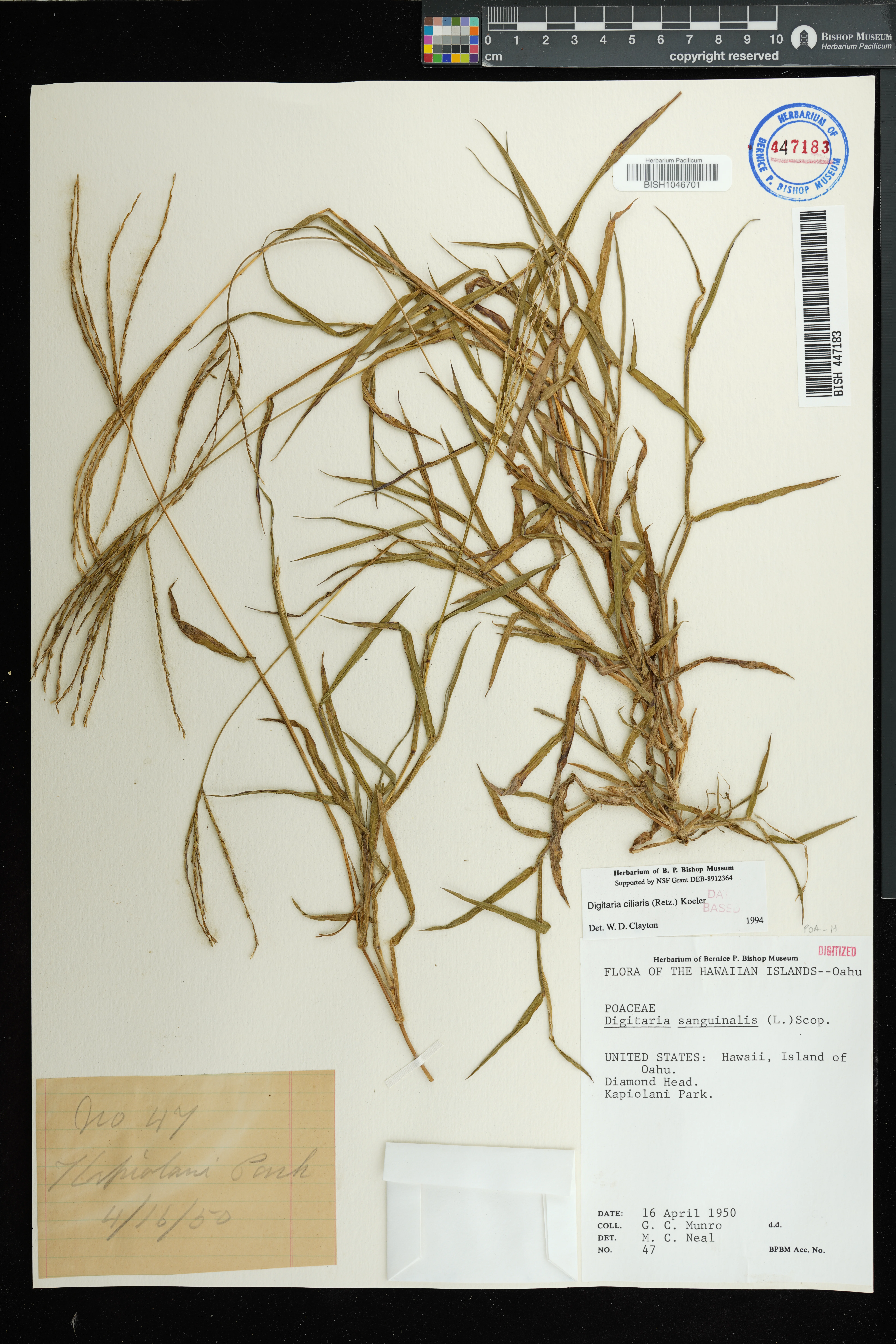 at edge of grassy swale planted with Brachiaria mutica between pineapple fields, with Digitaria ciliaris, Sonchus oleraceus, Emilia sonchifolia, Emilia fosbergii, Anagallis arvensis, Oxalis corniculata, Eragrostis pectinacea, Eleusine indica, Digitaria insularis, Melinis repens, Paspalum urvillei, Cynodon dactylon. |