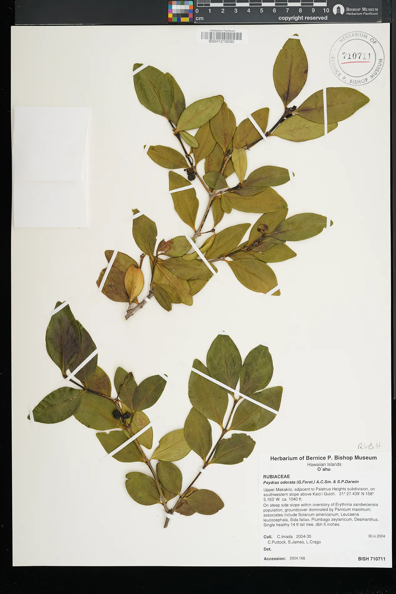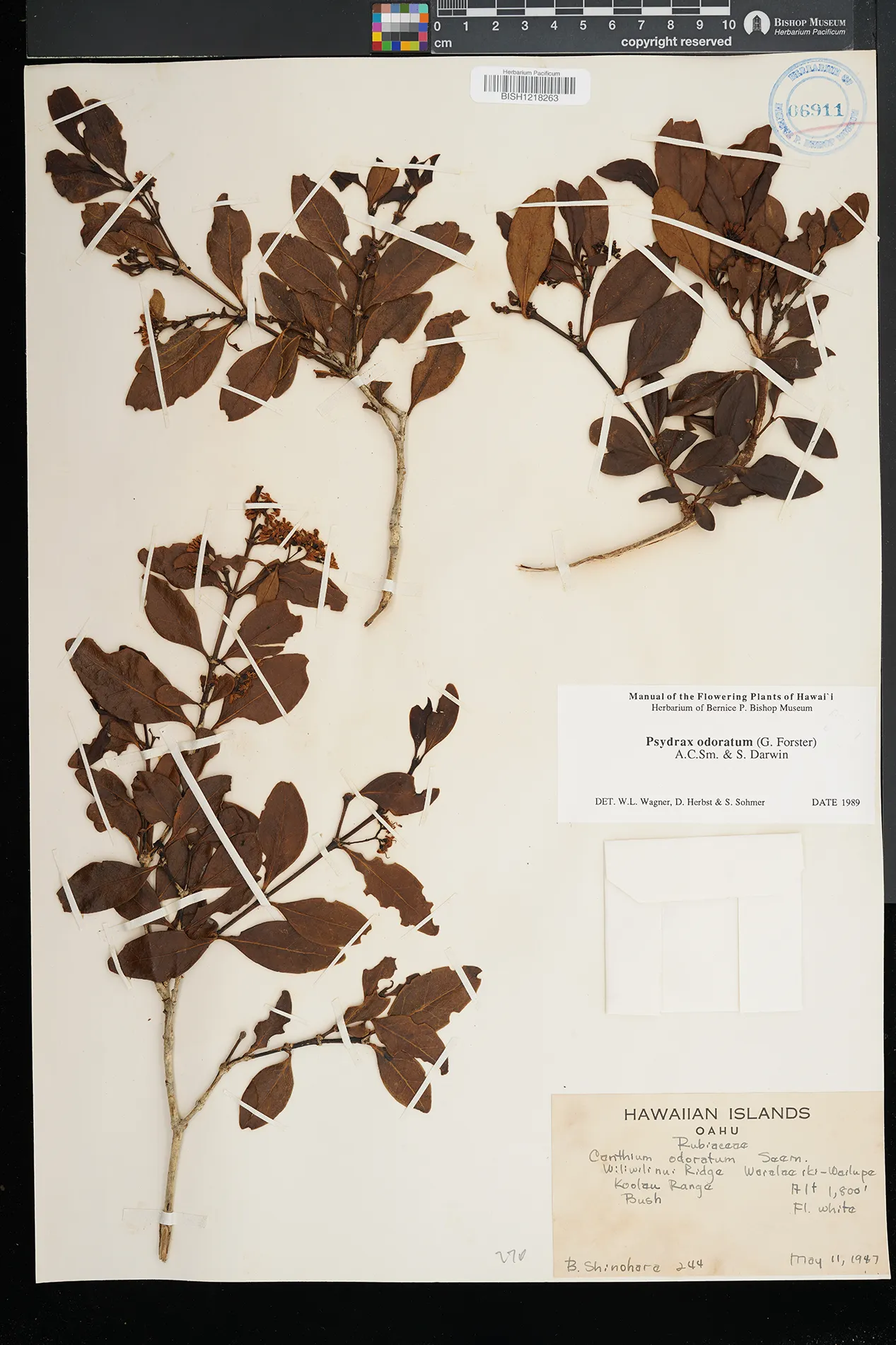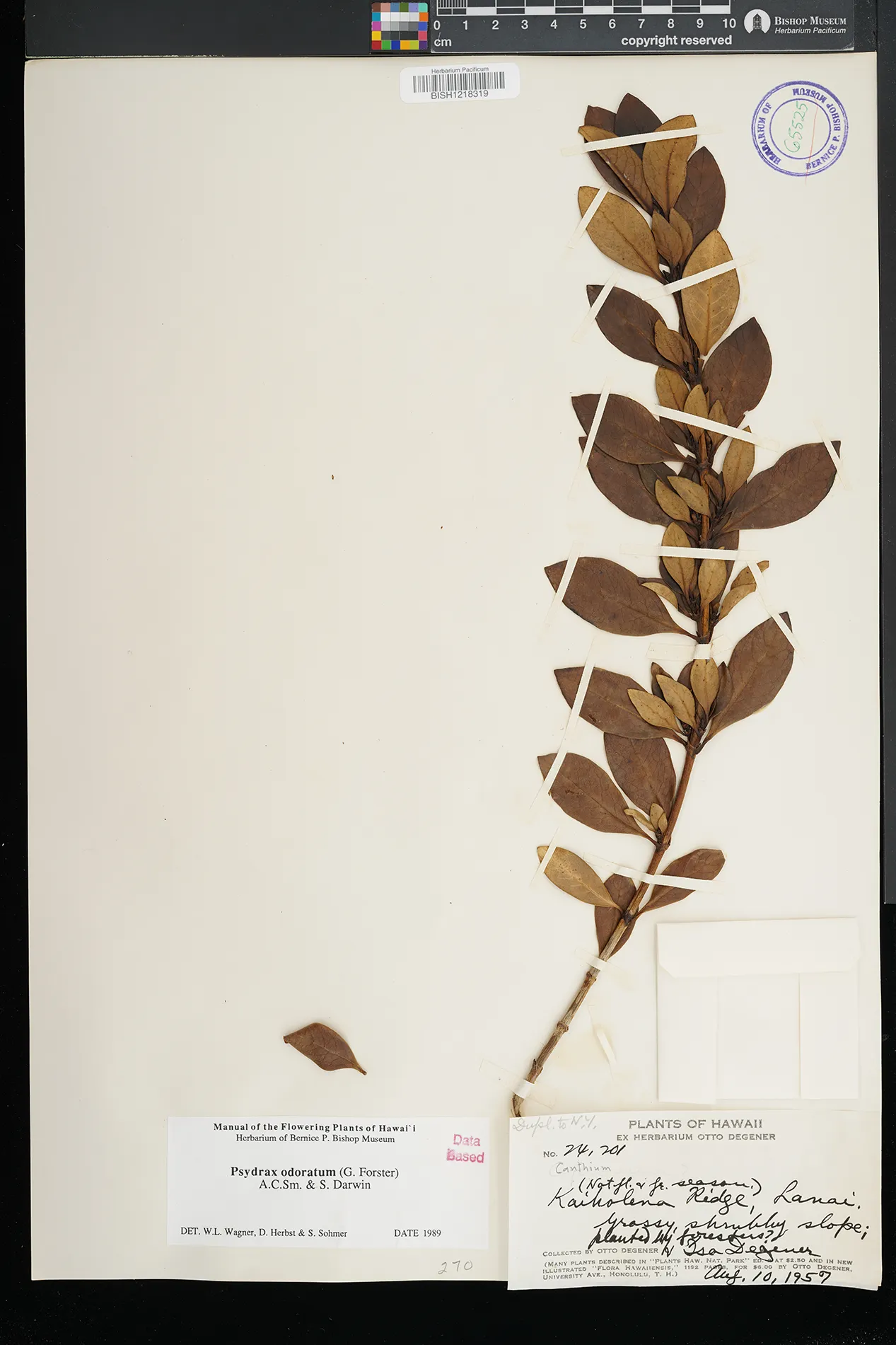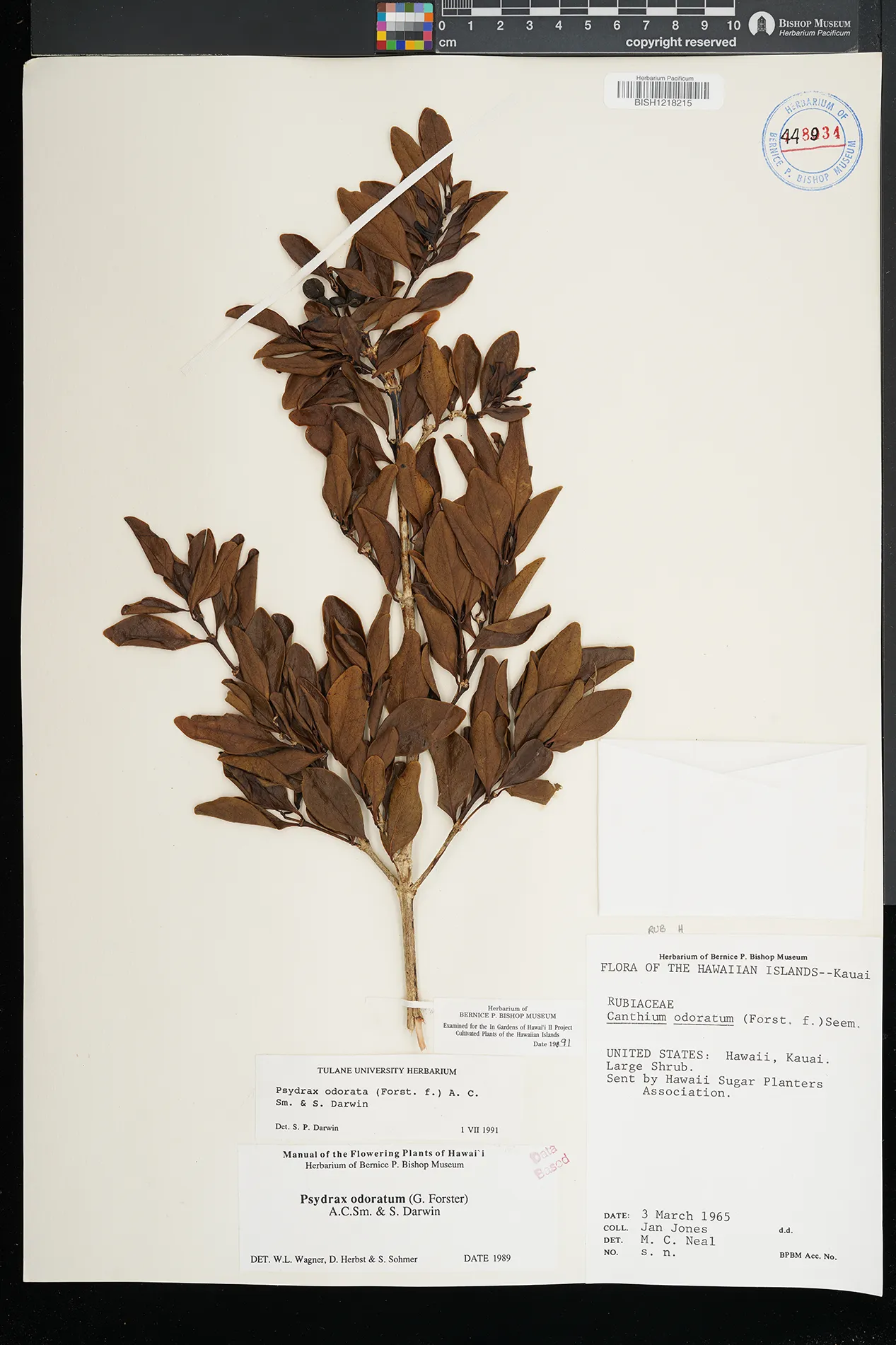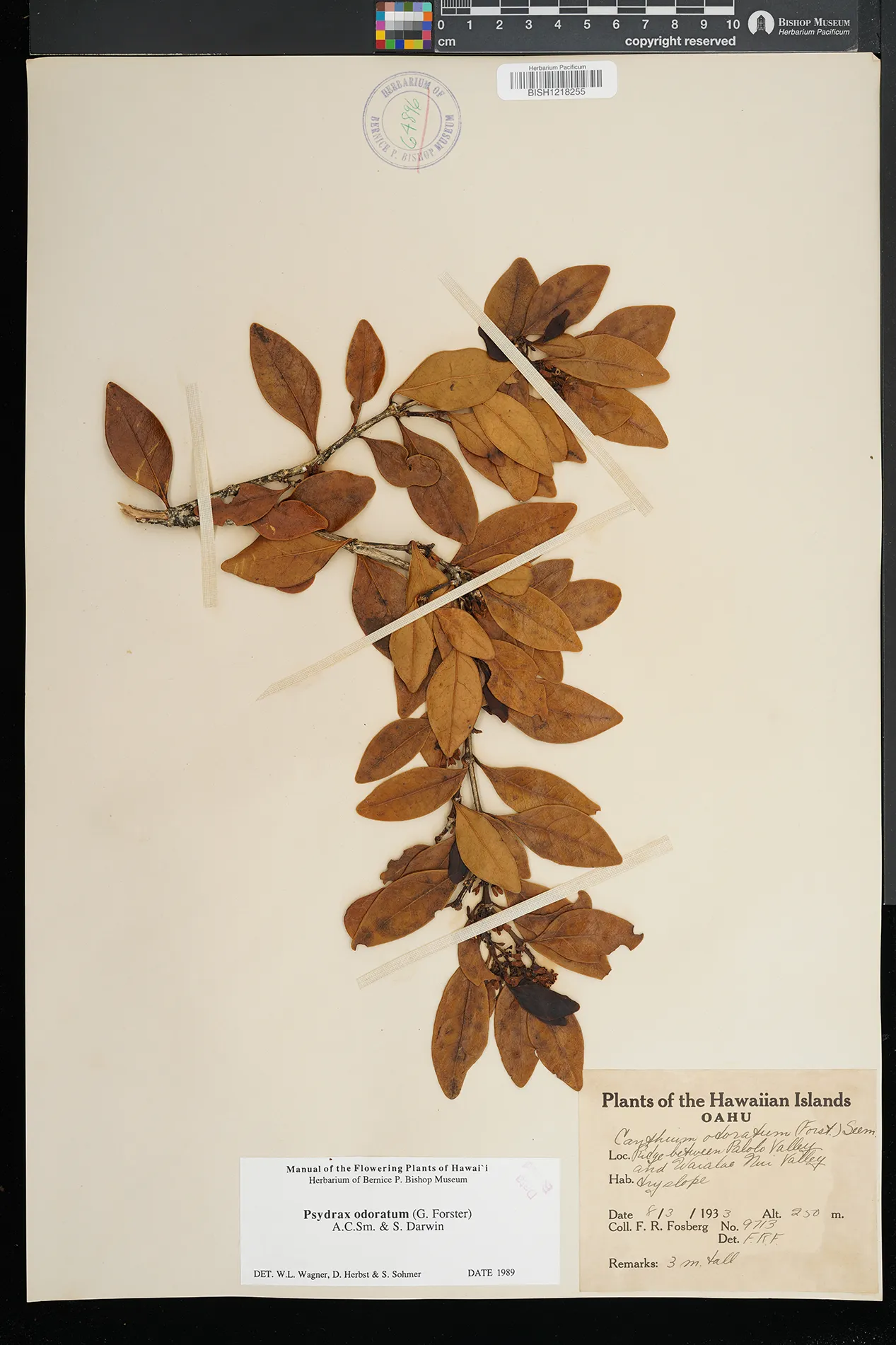 Wagner et al. 1990:1119 (K, O, Mo, L, M, H [as Canthium odoratum]); Smith 1988:230/Herbst & Wagner 1999:31 (COMBNOV, Syn. C. odoratum = P. odorata); Staples & Herbst 2005:484 (KEY), 499 (DESCR)