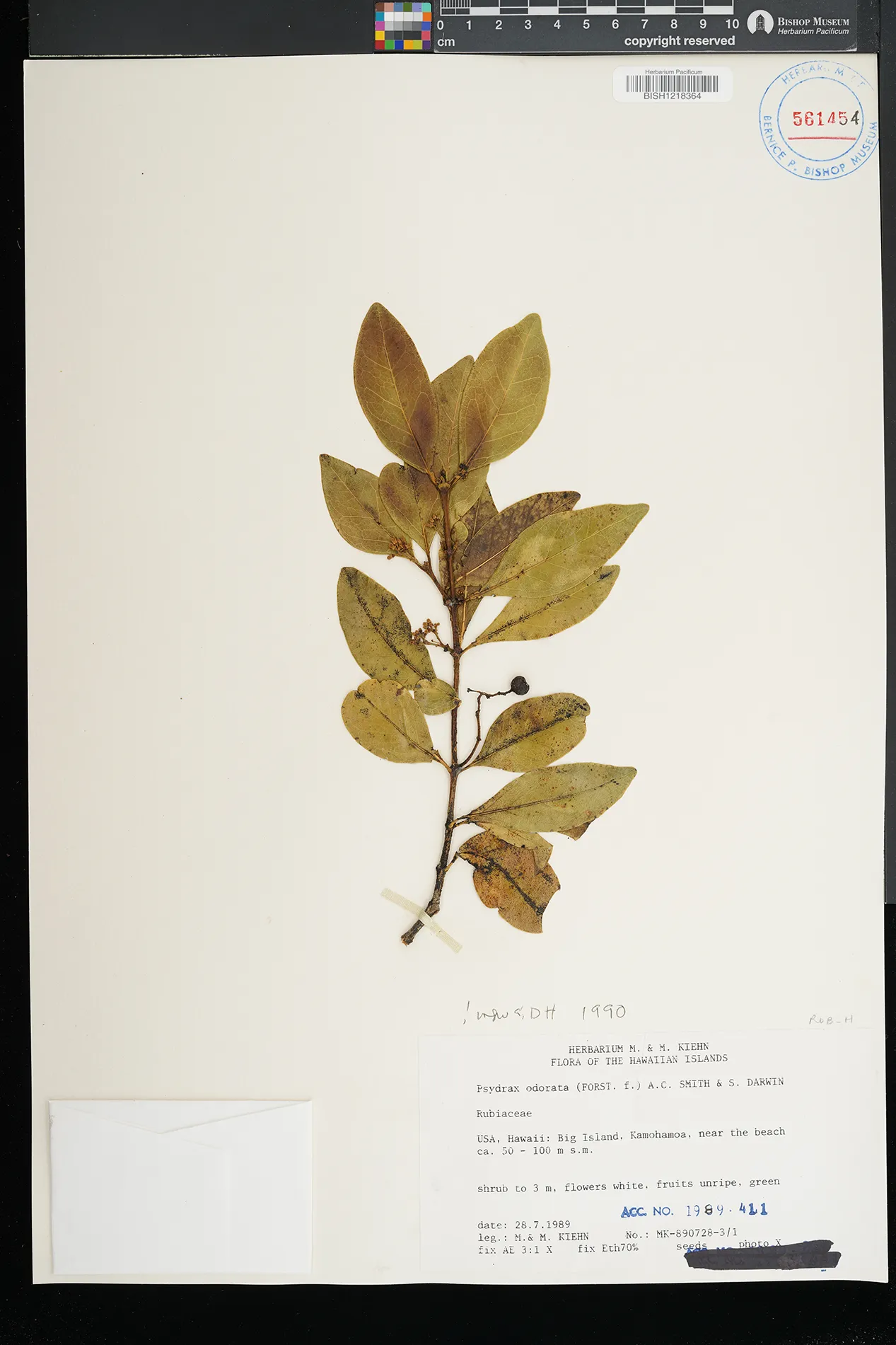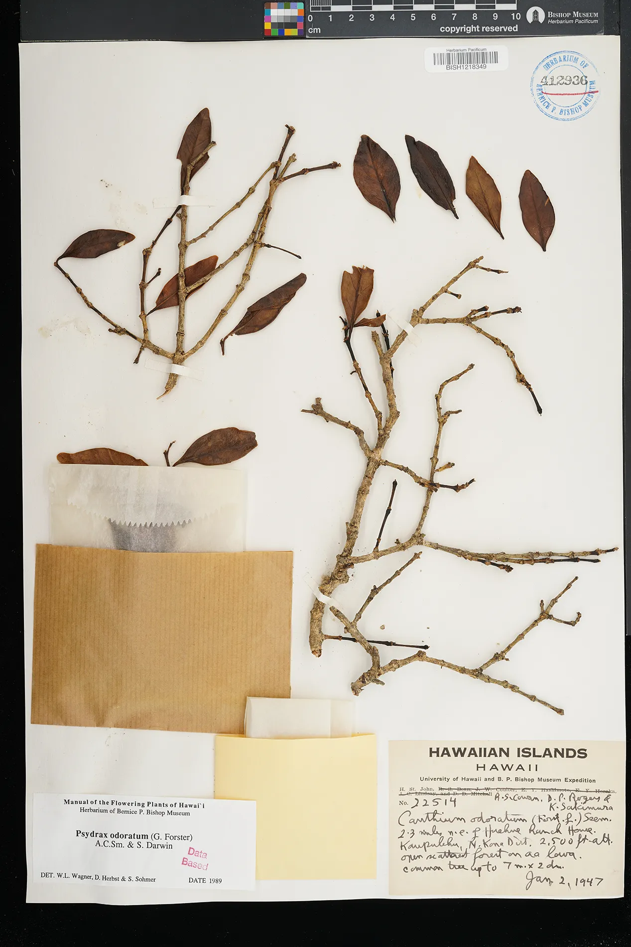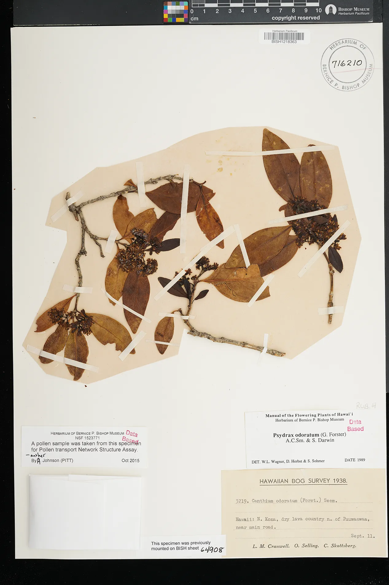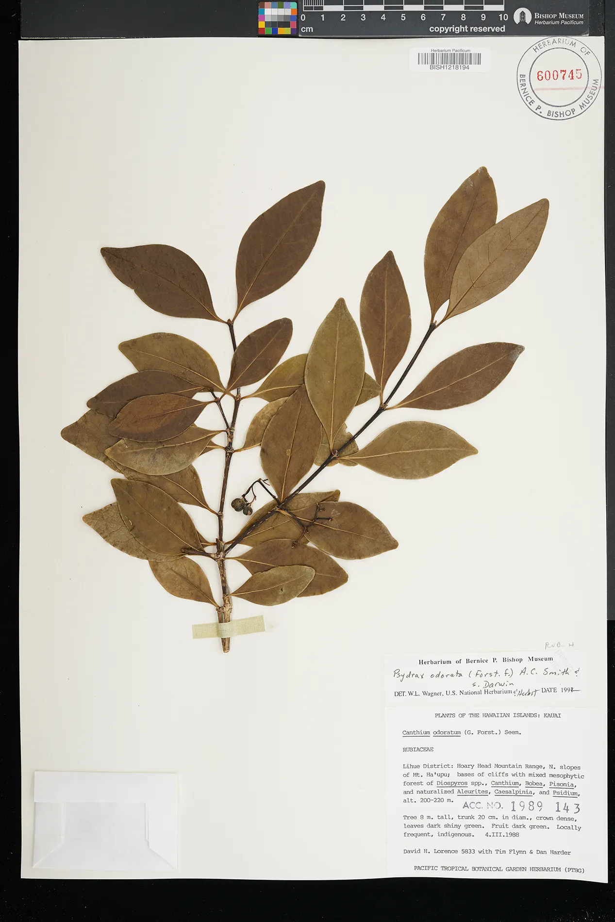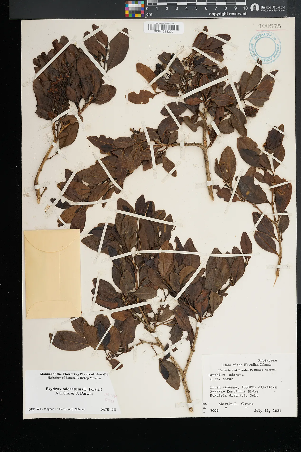 Wagner et al. 1990:1119 (K, O, Mo, L, M, H [as Canthium odoratum]); Smith 1988:230/Herbst & Wagner 1999:31 (COMBNOV, Syn. C. odoratum = P. odorata); Staples & Herbst 2005:484 (KEY), 499 (DESCR)