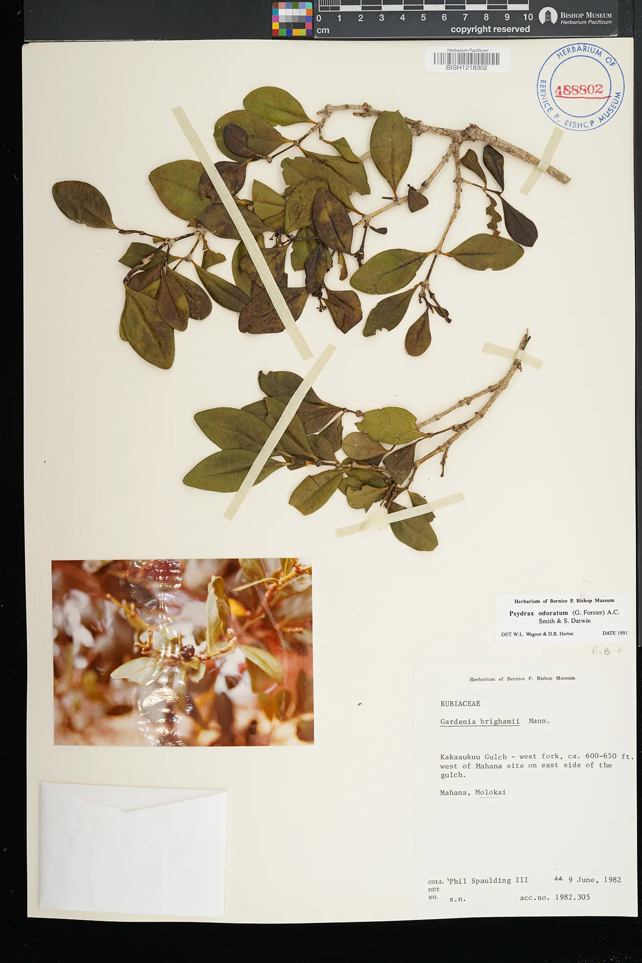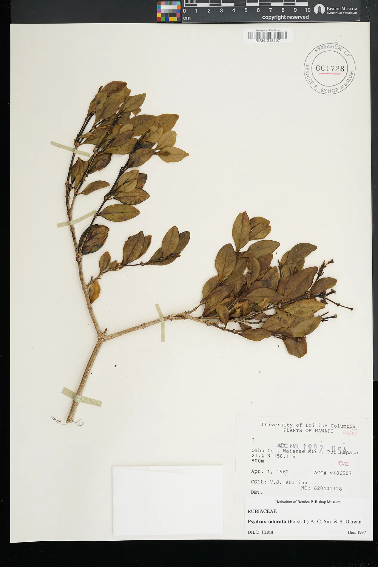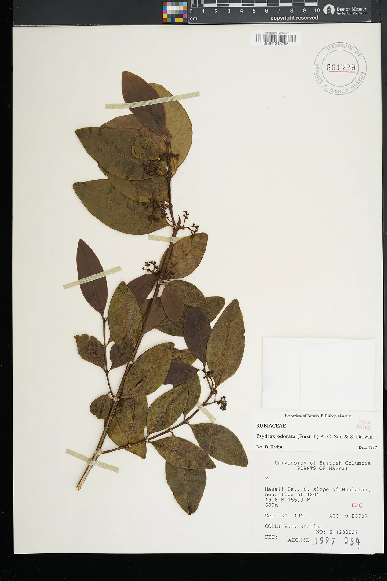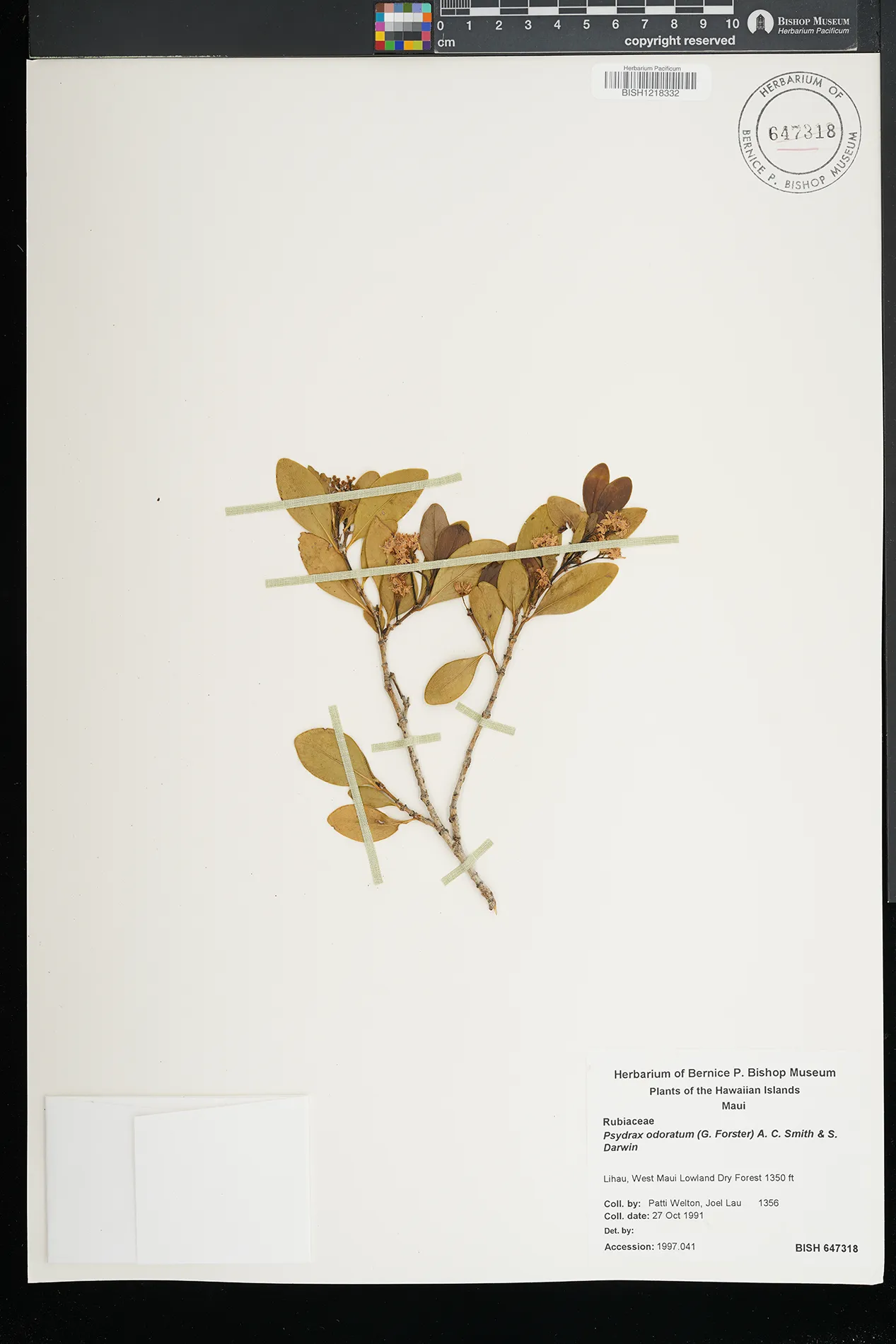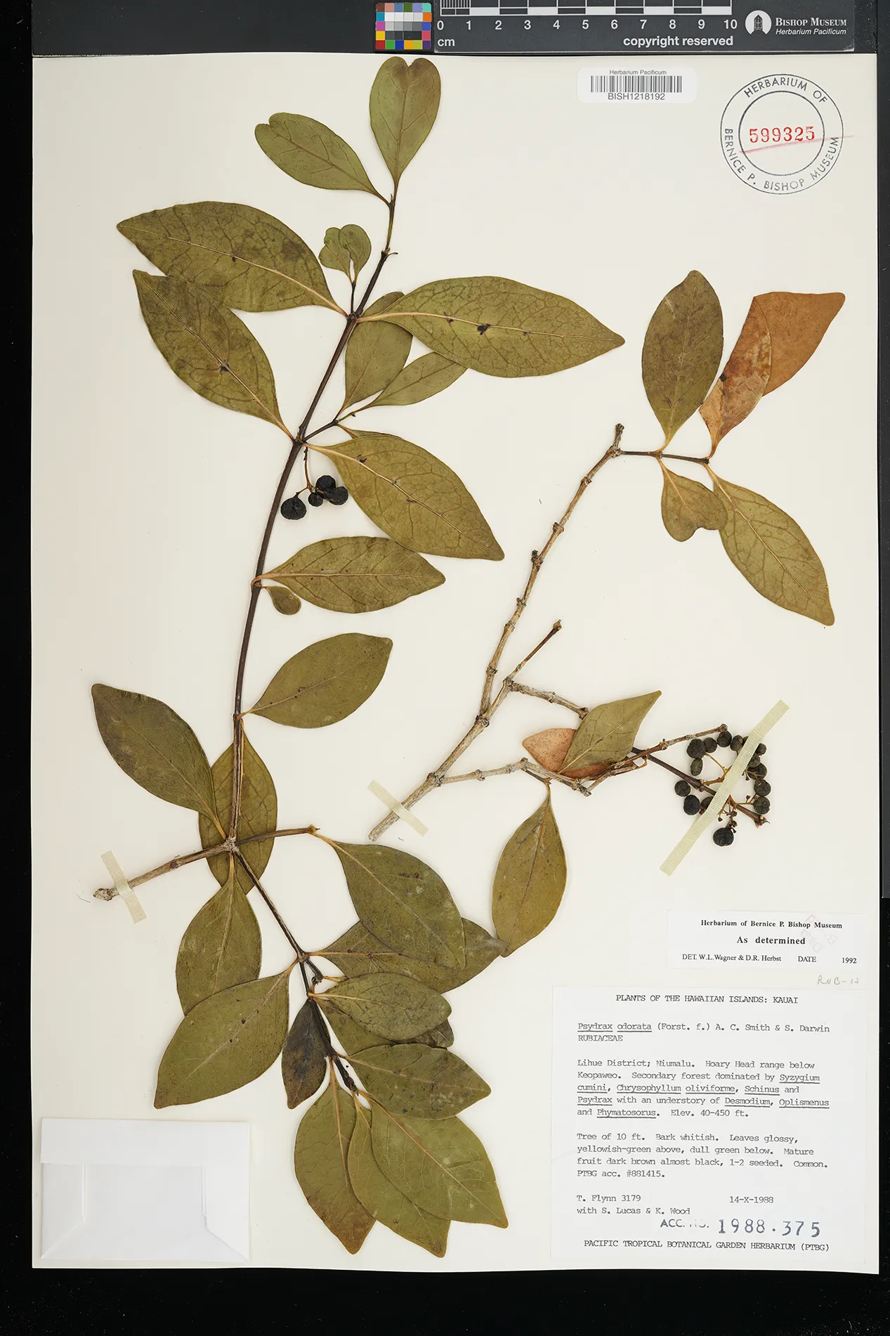 Wagner et al. 1990:1119 (K, O, Mo, L, M, H [as Canthium odoratum]); Smith 1988:230/Herbst & Wagner 1999:31 (COMBNOV, Syn. C. odoratum = P. odorata); Staples & Herbst 2005:484 (KEY), 499 (DESCR)