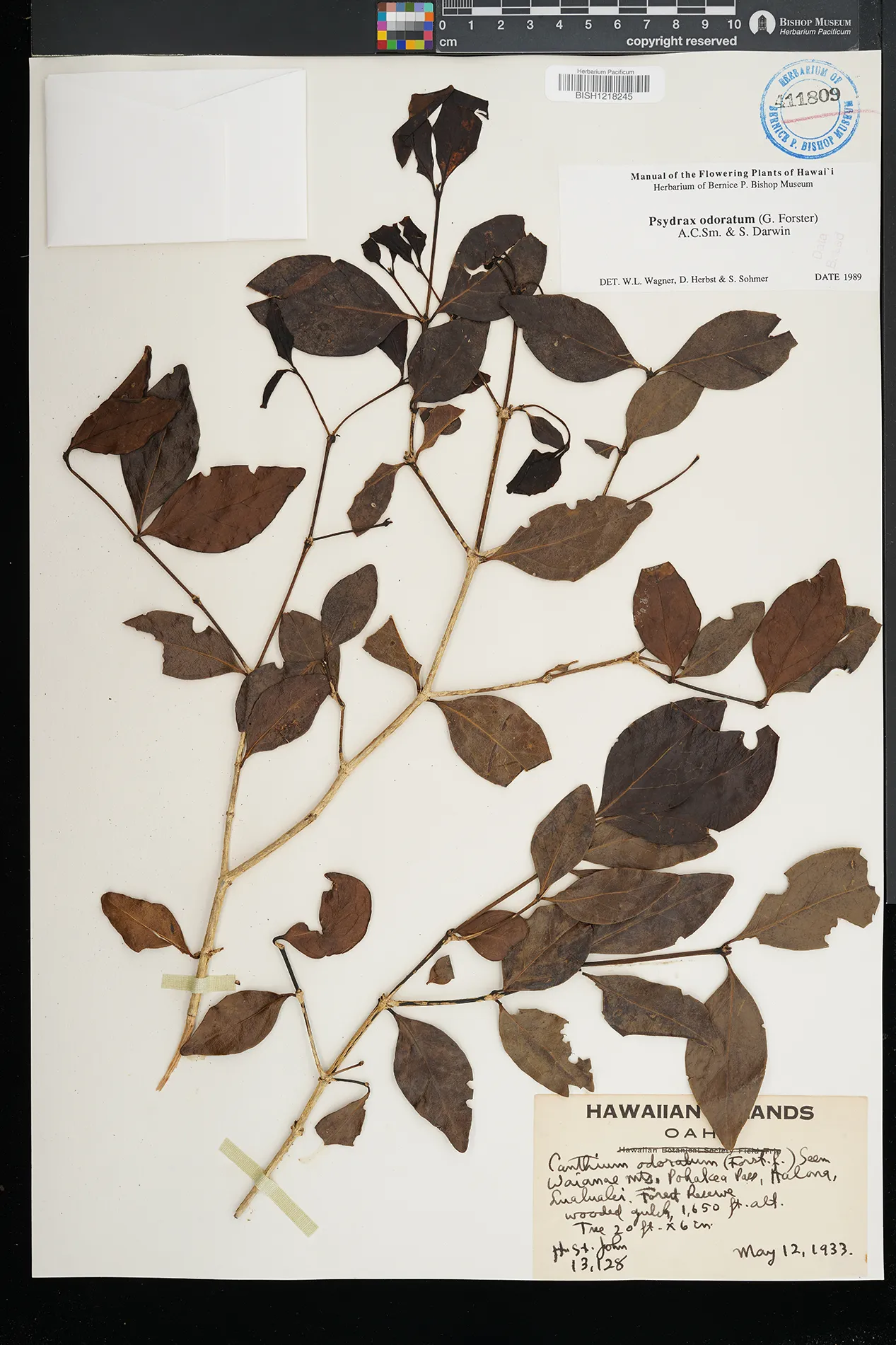 • Successful techniques for propagating Psydrax odorata from air layers have not yet been developed. (Bornhorst 1996; NTBG 1992) [Data from Herring, E. C., & Criley, R. A. (2003). The Hawaiian Native Plant Propagation Web Site: Developing a Webbased Information Resource. HortTechnology, 13(3), 545-548. https://www.ctahr.hawaii.edu/hawnprop/]