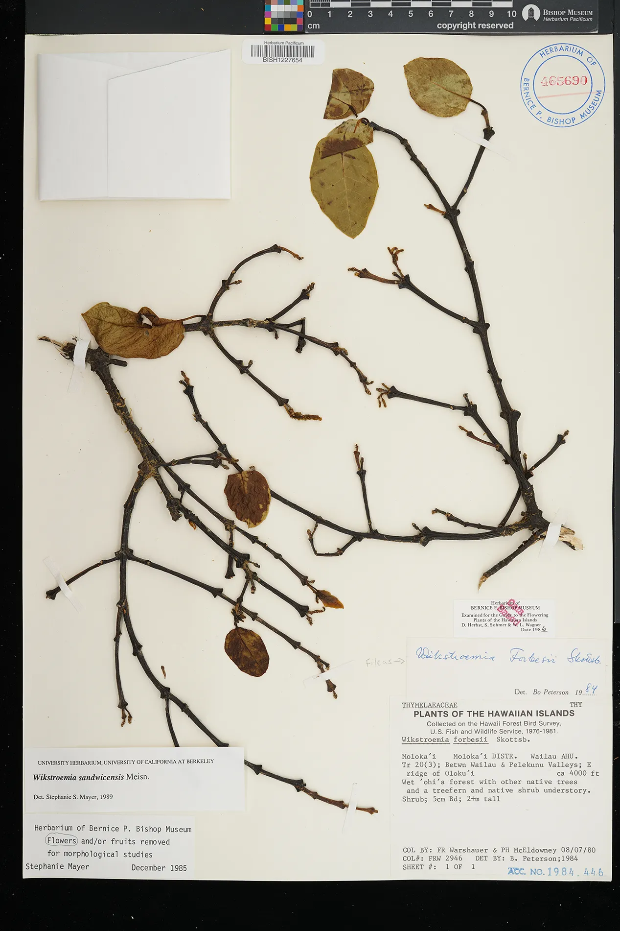 Metrosideros rugosa, Cibotium, Phyllostegia grandiflora, Clidemia |