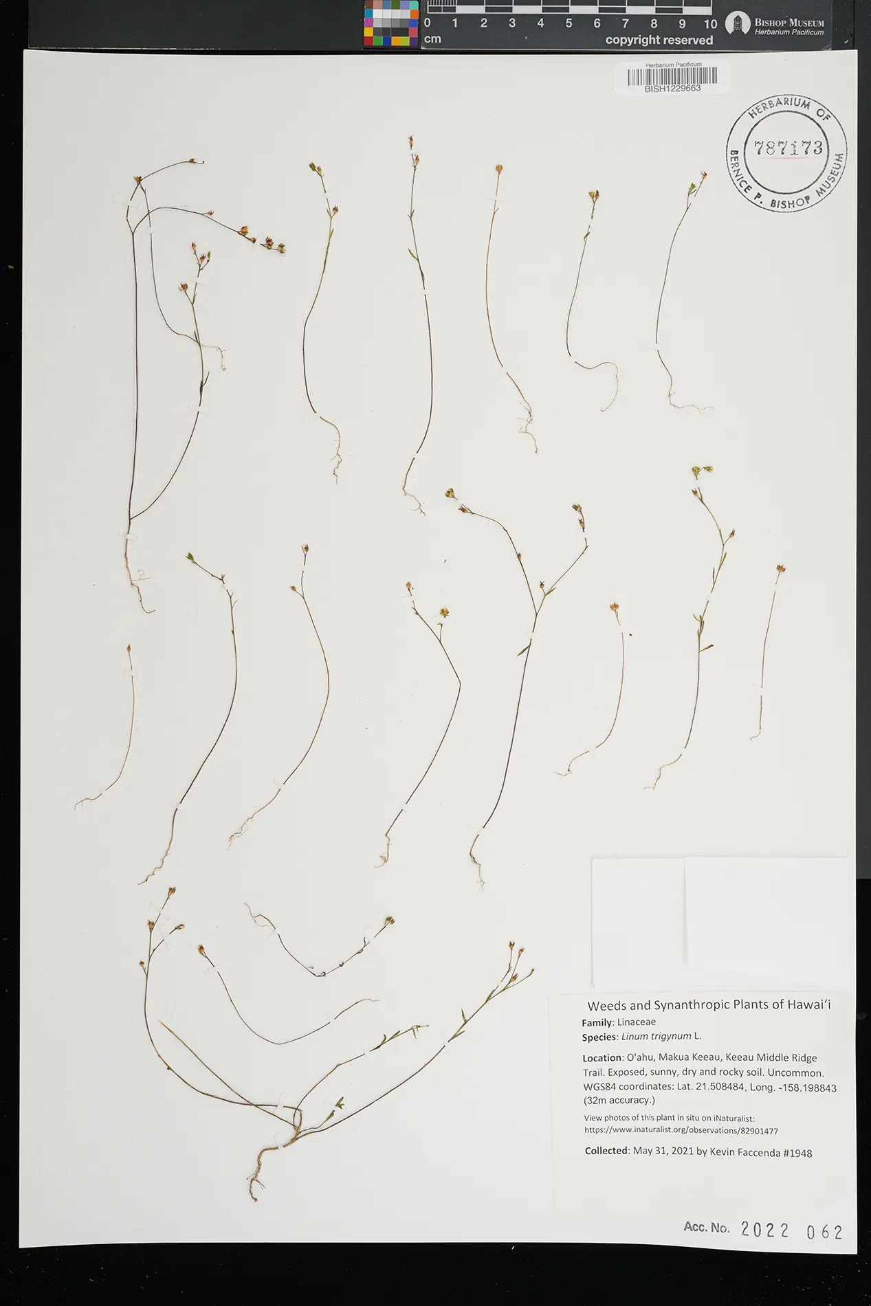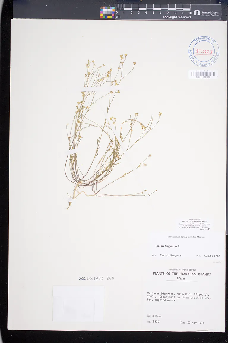naturalized on dry ridges; ʻOhikilolo Ridge and Mokuleʻia Valley; Waiʻanae Mountains; Oʻahu.