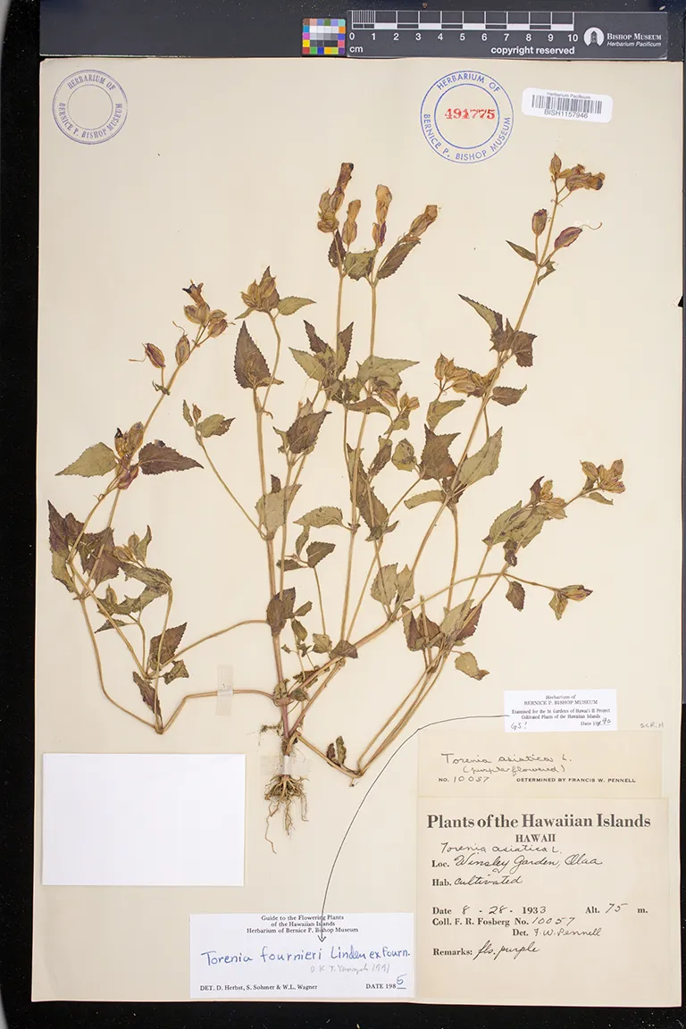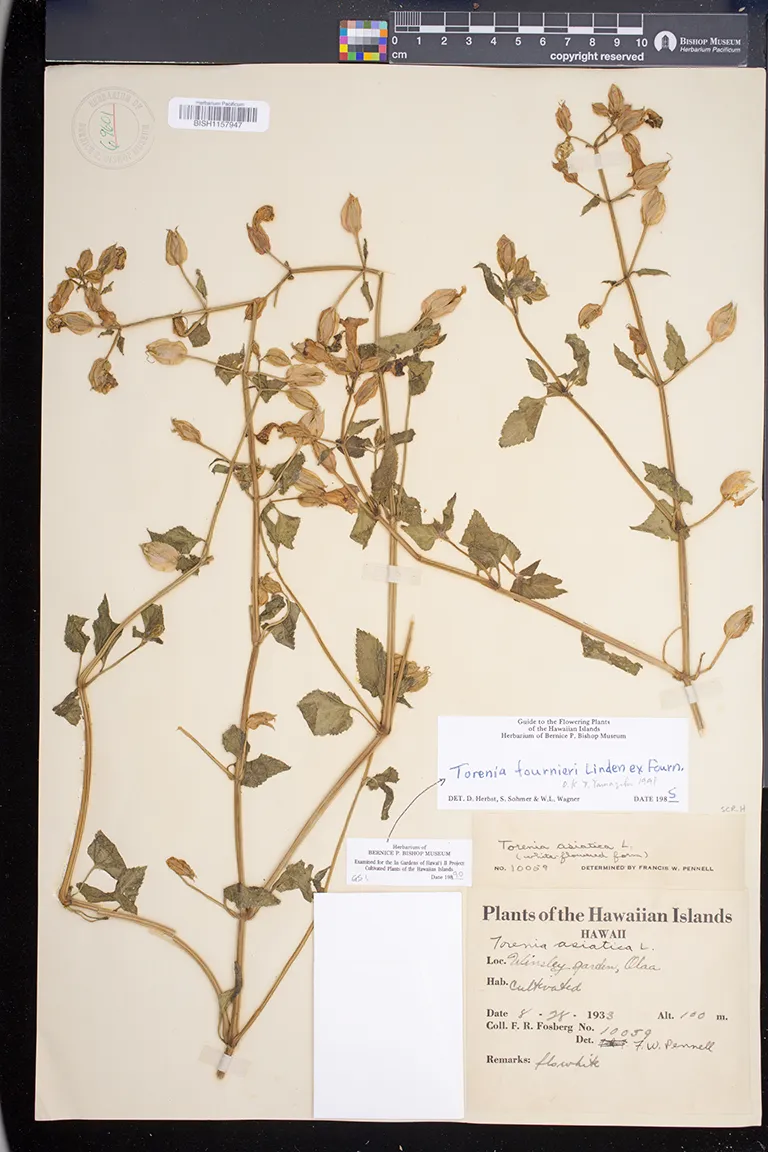 | 7 | Torenia fournieri | Linden ex E.Fourn. | winsley garden, olaa | PRESERVED_SPECIMEN | fosberg, f.r. | collector number: 10059 | Oahu | BISH | 8/28/1933 | |