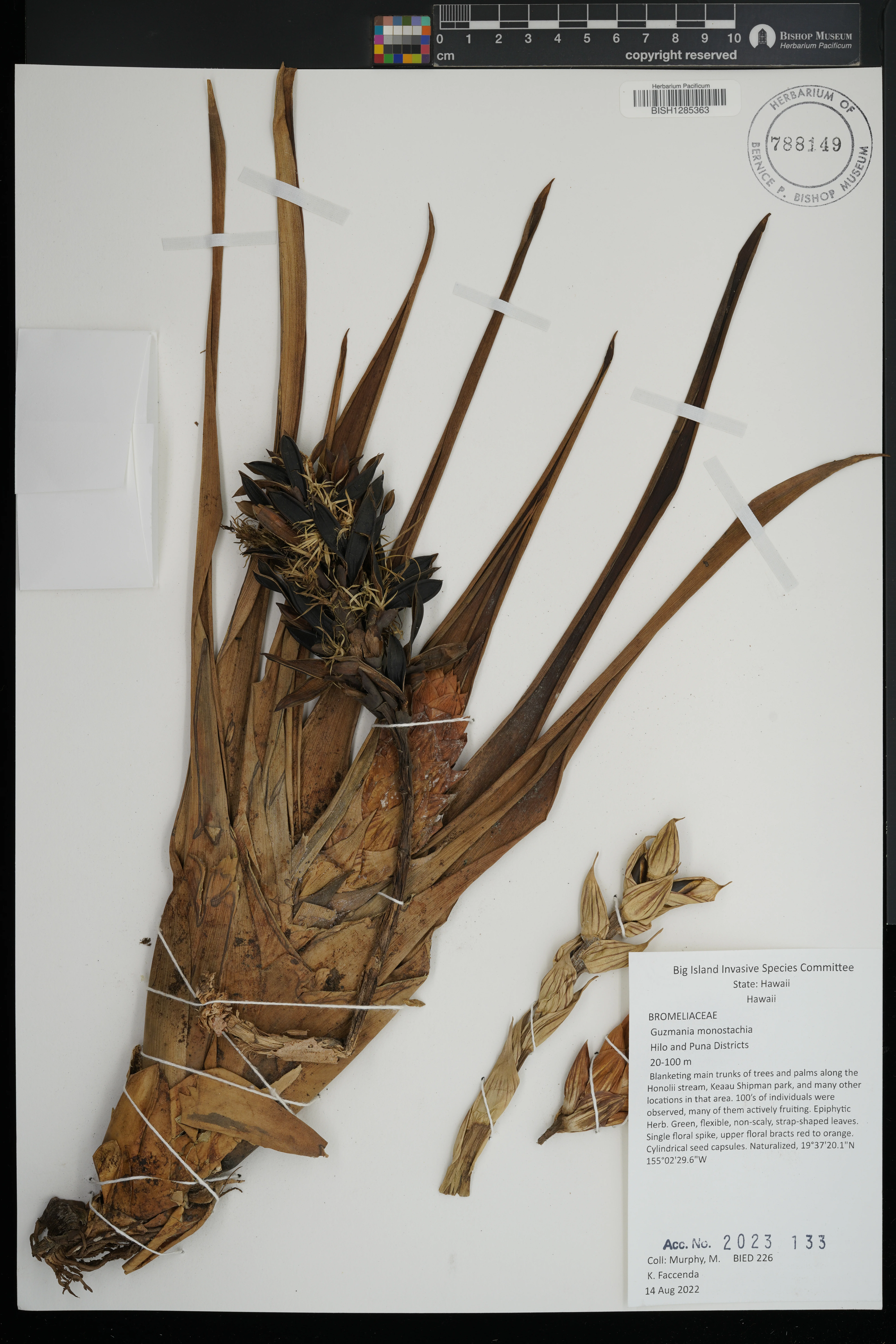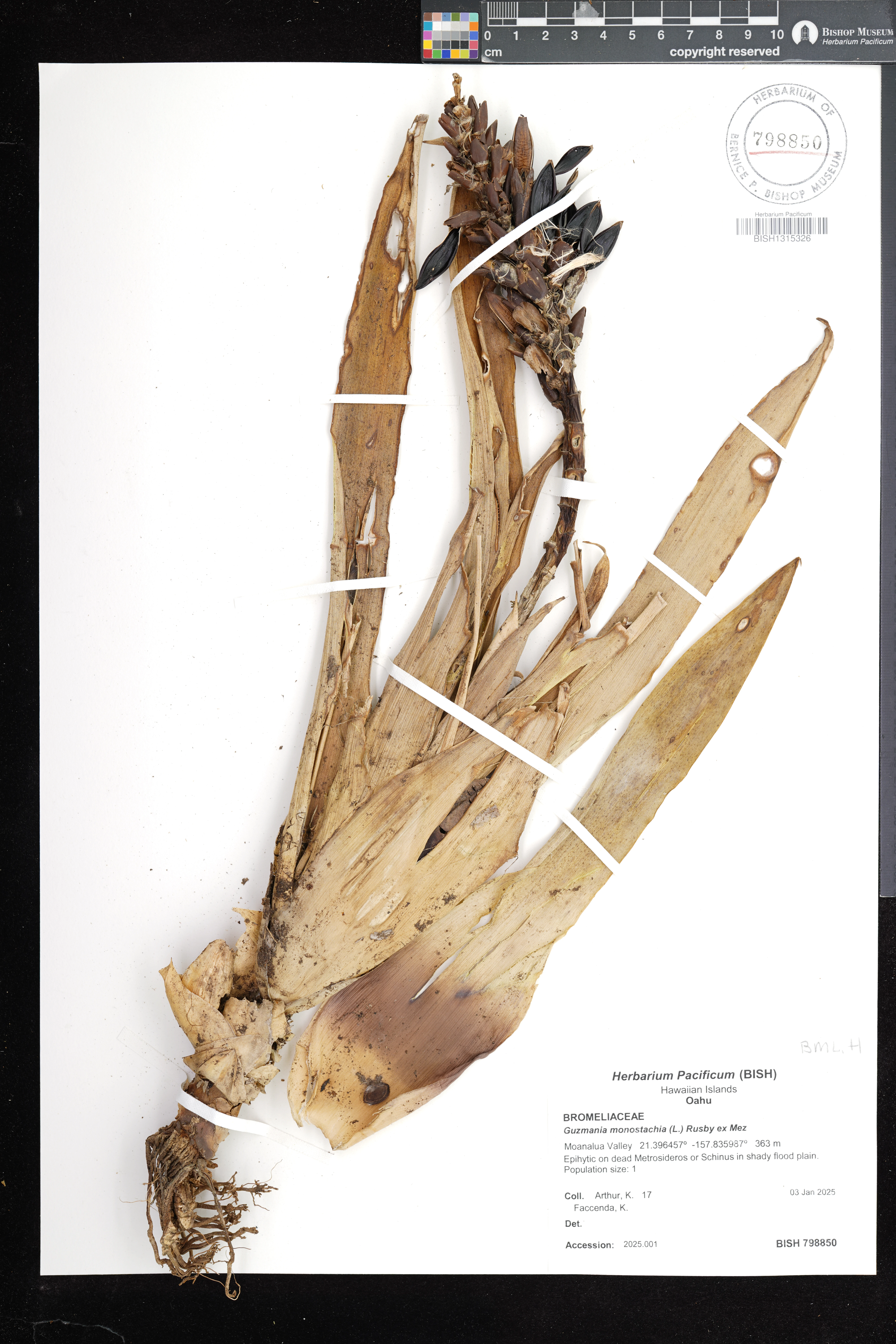 Flowers in inflorescences: scape central, erect, shorter than leaves; bracts imbricate, erect; inflorescences densely many–flowered, erect, simple, cylindric, to 15 cm; floral bracts imbricate, most proximal bracts (fertile) pale green, striped dark green or reddish, distal bracts (mostly sterile) rose, salmon or nearly white [red or orange in tropical america], ovate, to 2.5 cm, acute.