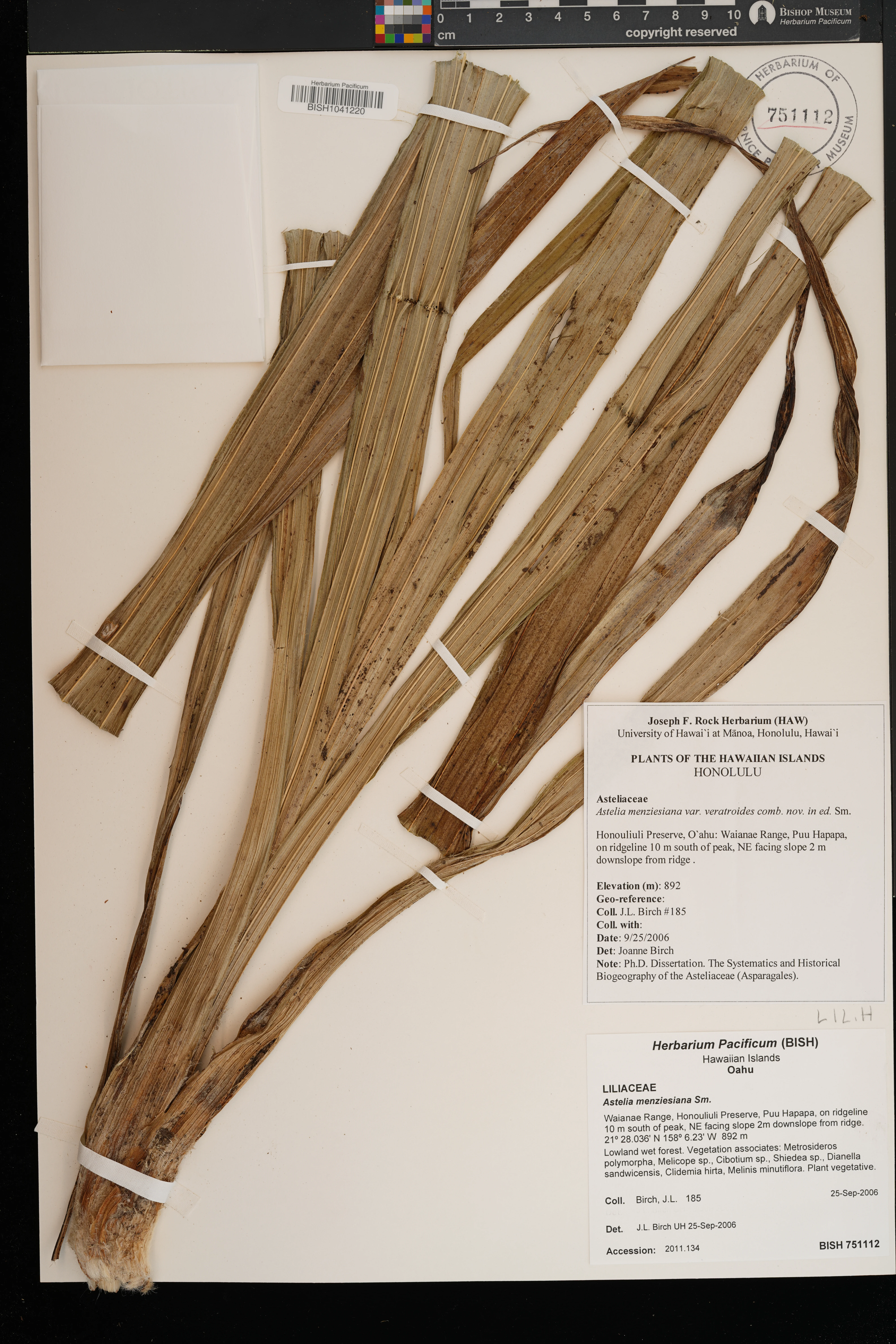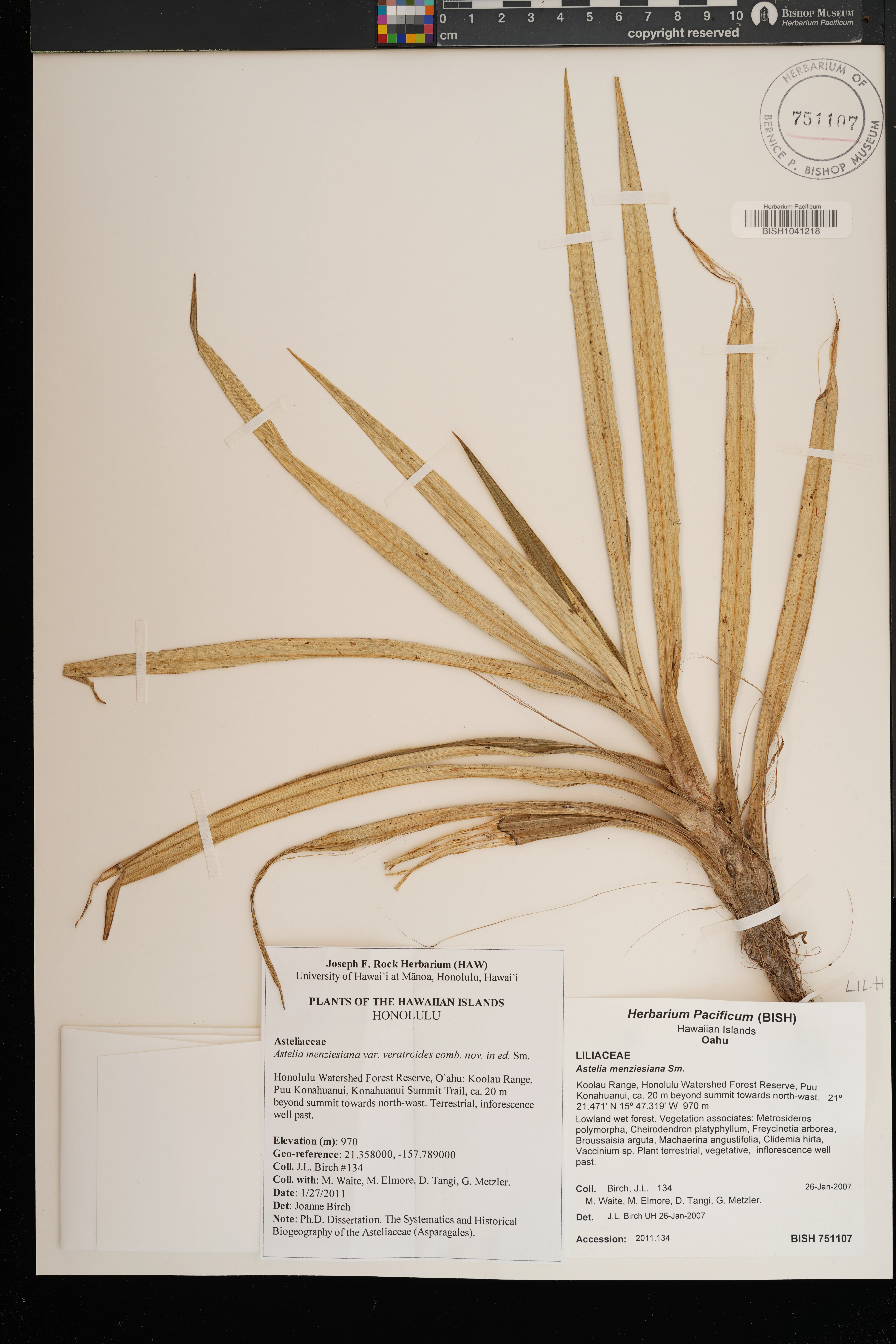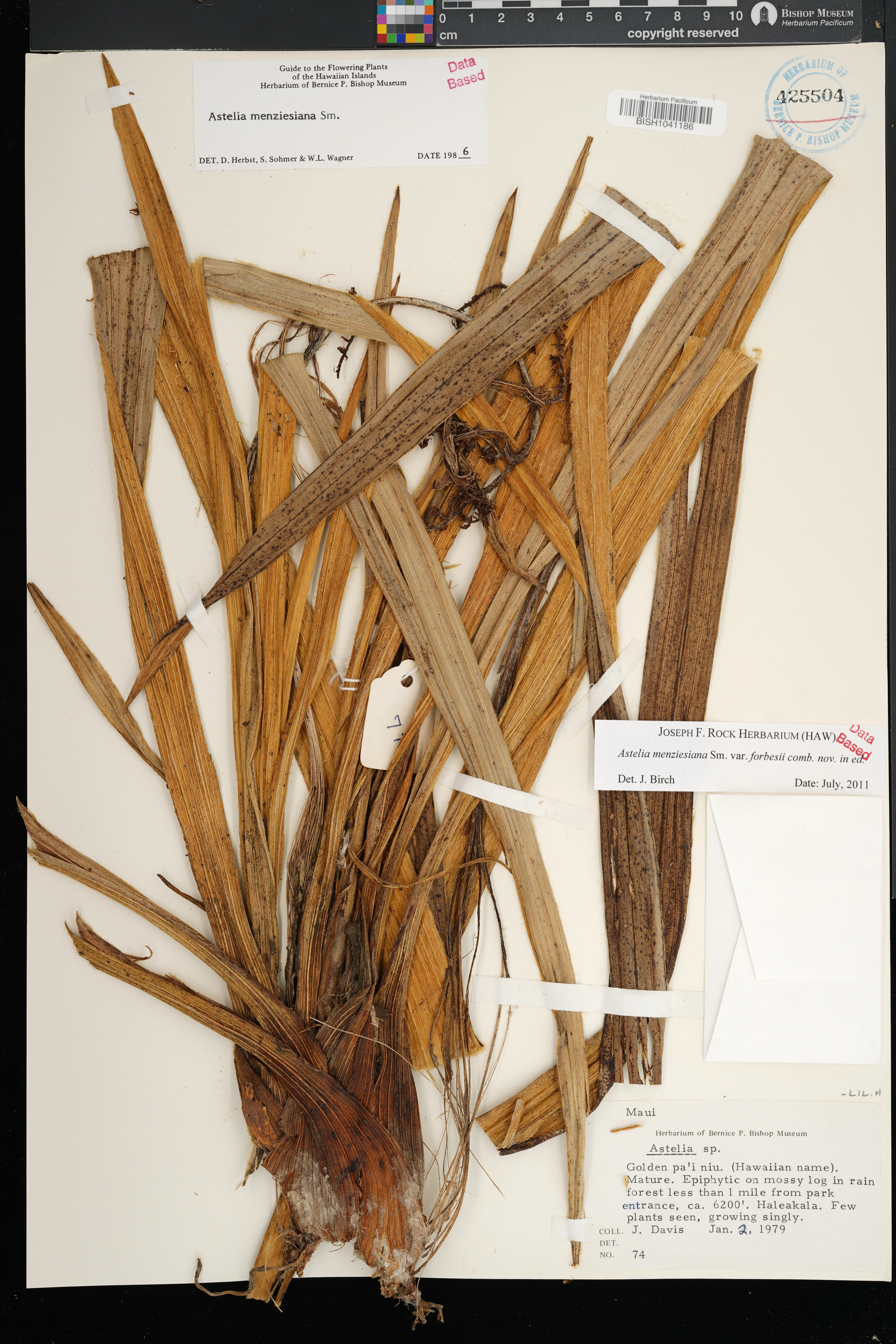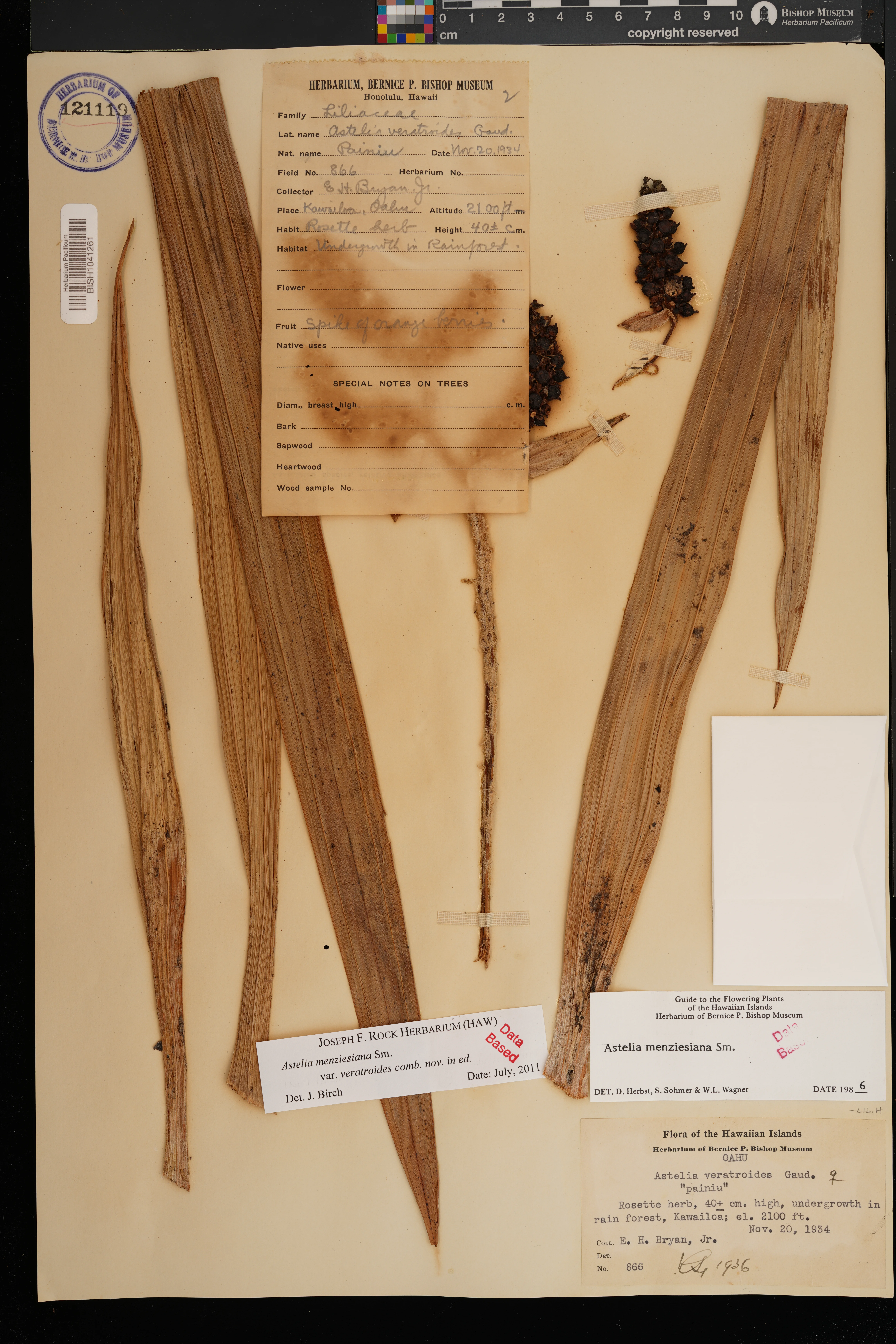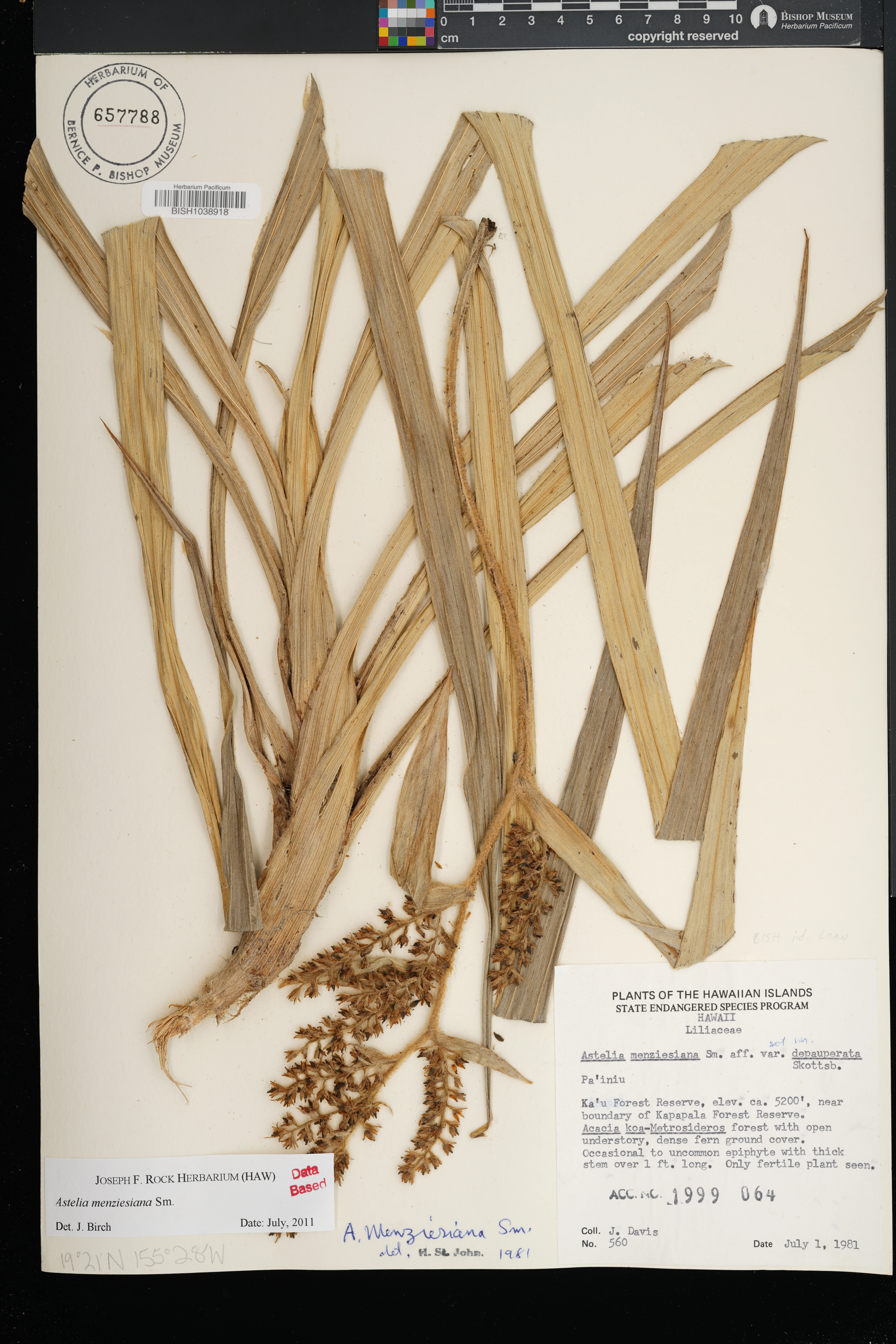 Lowland wet forest. Vegetation associates: Metrosideros polymorpha, Cheirodendron platyphyllum, Freycinetia arborea, Broussaisia arguta, Machaerina angustifolia, Clidemia hirta, Vaccinium sp. |