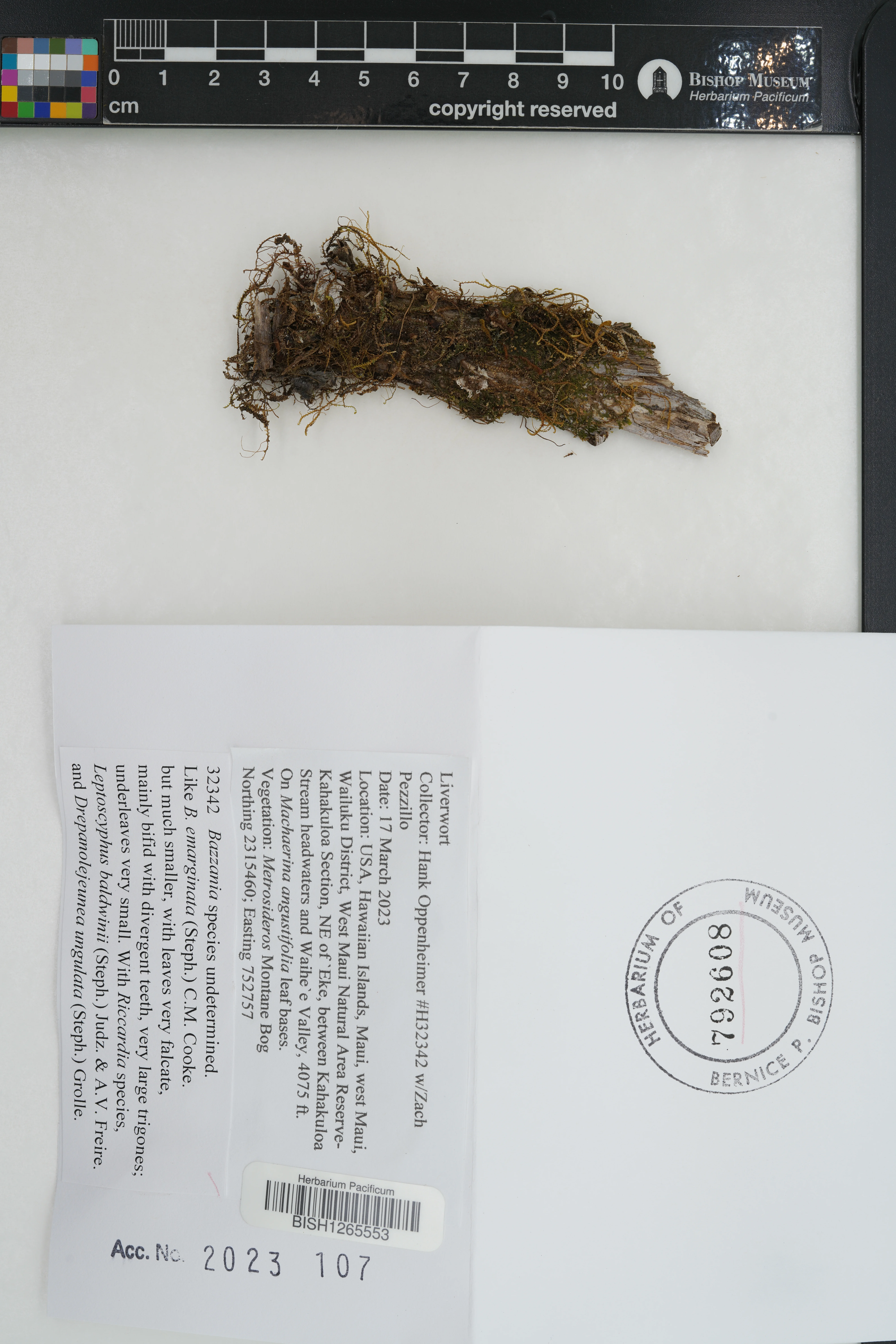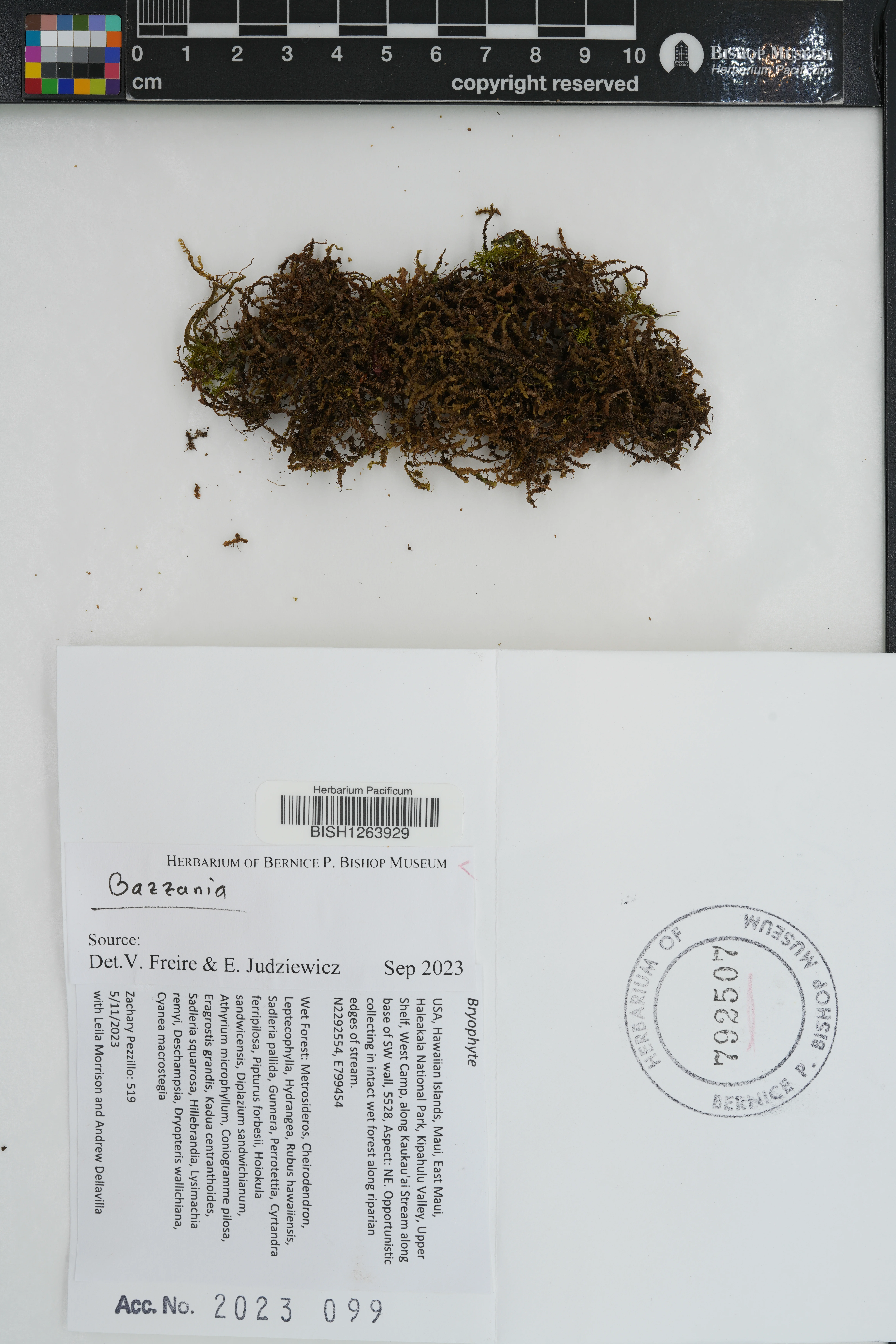 Kingdom: Viridiplantae Phylum: Marchantiophyta Class/Clade: Jungermanniopsida Order: Jungermanniales Family: Lepidoziaceae Genus: Bazzania