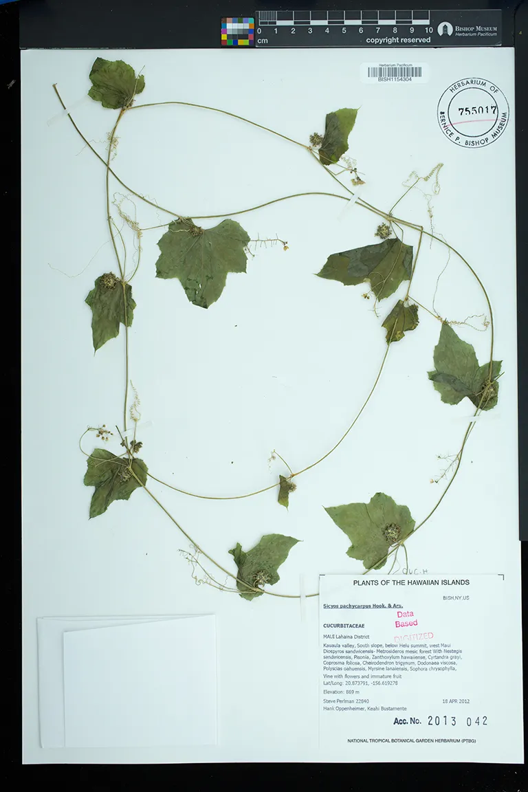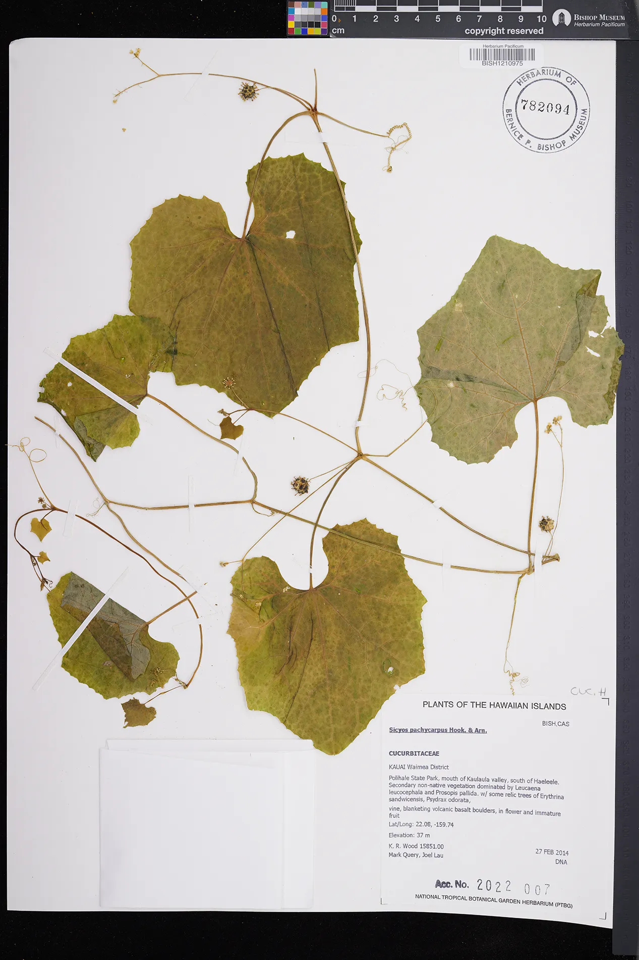 Climbing adjacent vegetation in open areas of Mesic Forest & Shrubland. Vegetation: Metrosideros, Diospyros, Myrsine, Pleomele, Alyxia, Dodonaea, Wikstroemia, Leptecophylla, Dryopteris, Doryopteris, Doodia, Microlepia, Asplenium, Smilax, Bidens, Eragrostis, Carex, Cenchrus, Panicum, Luzula, Erigeron, Adiantum, Ageratina, Lantana. |