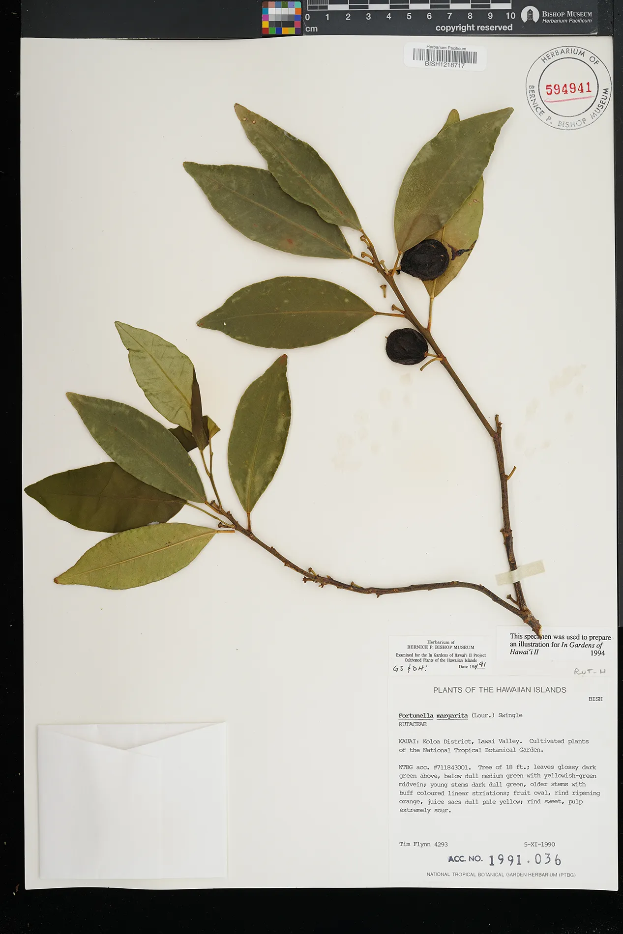 | 7 | Citrus japonica | Thunb. | Koloa District, Lawai Valley; National Tropical Botanical Garden | PRESERVED_SPECIMEN | Flynn, T. | 4293 | Kauai | BISH | 11/5/1990 |