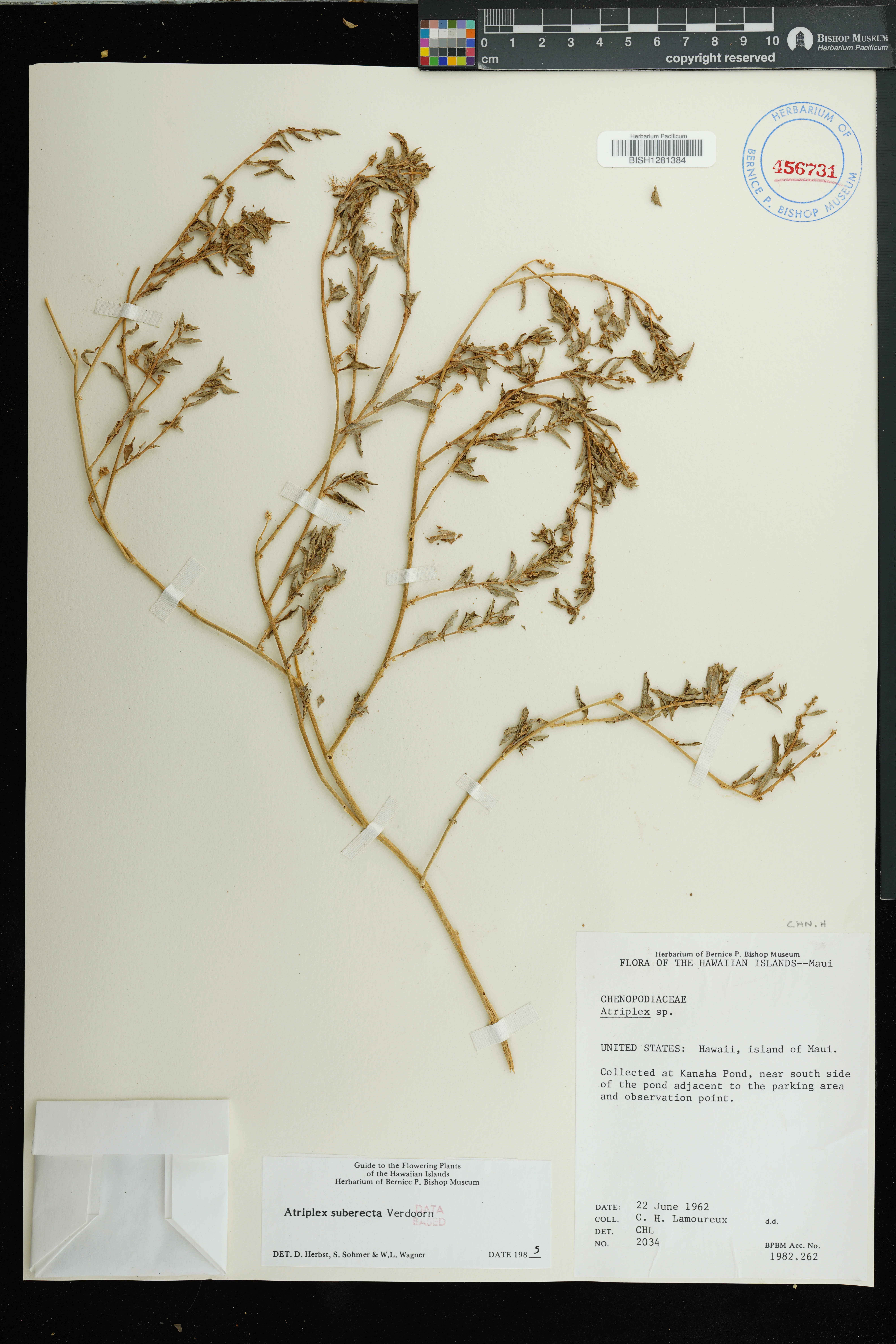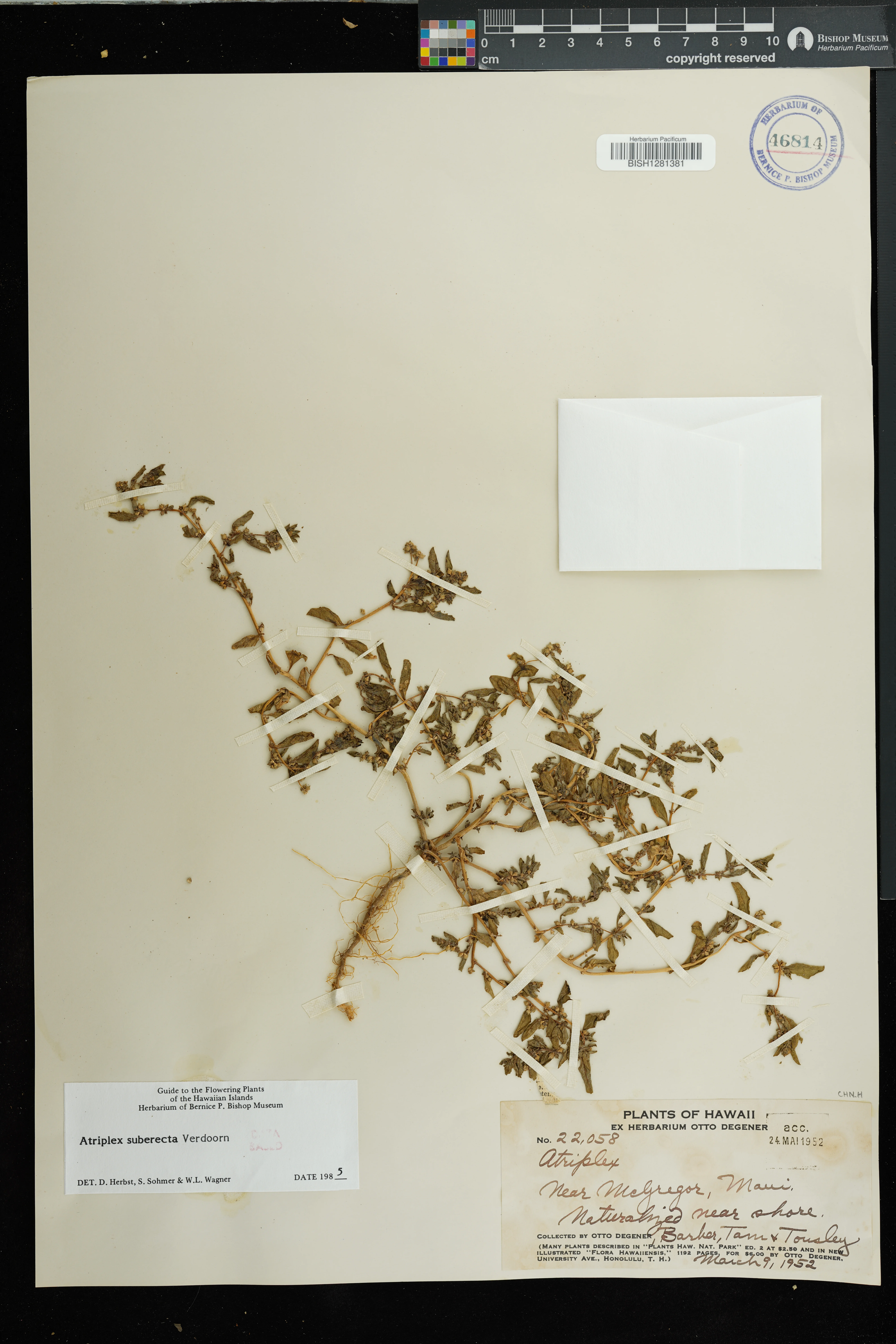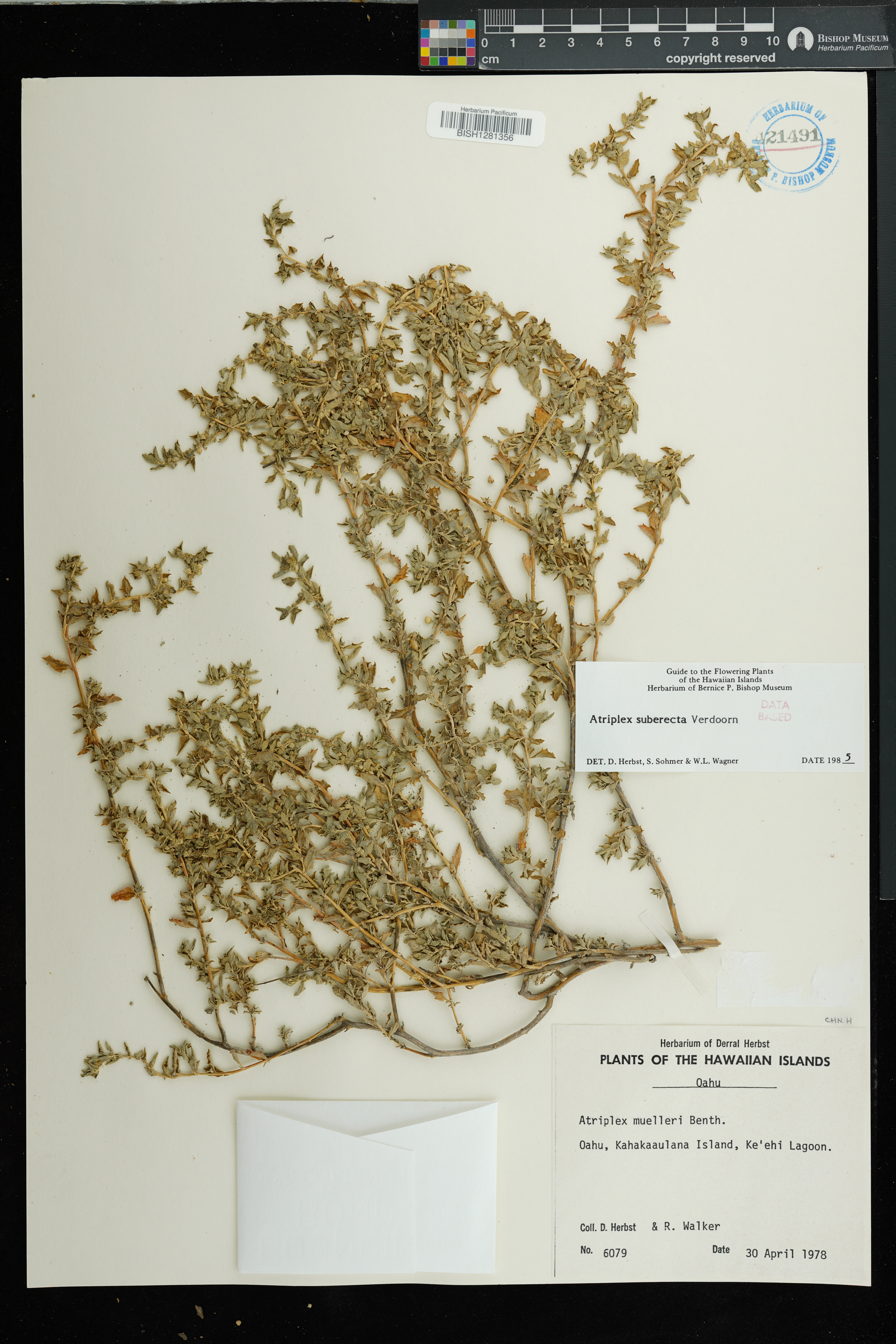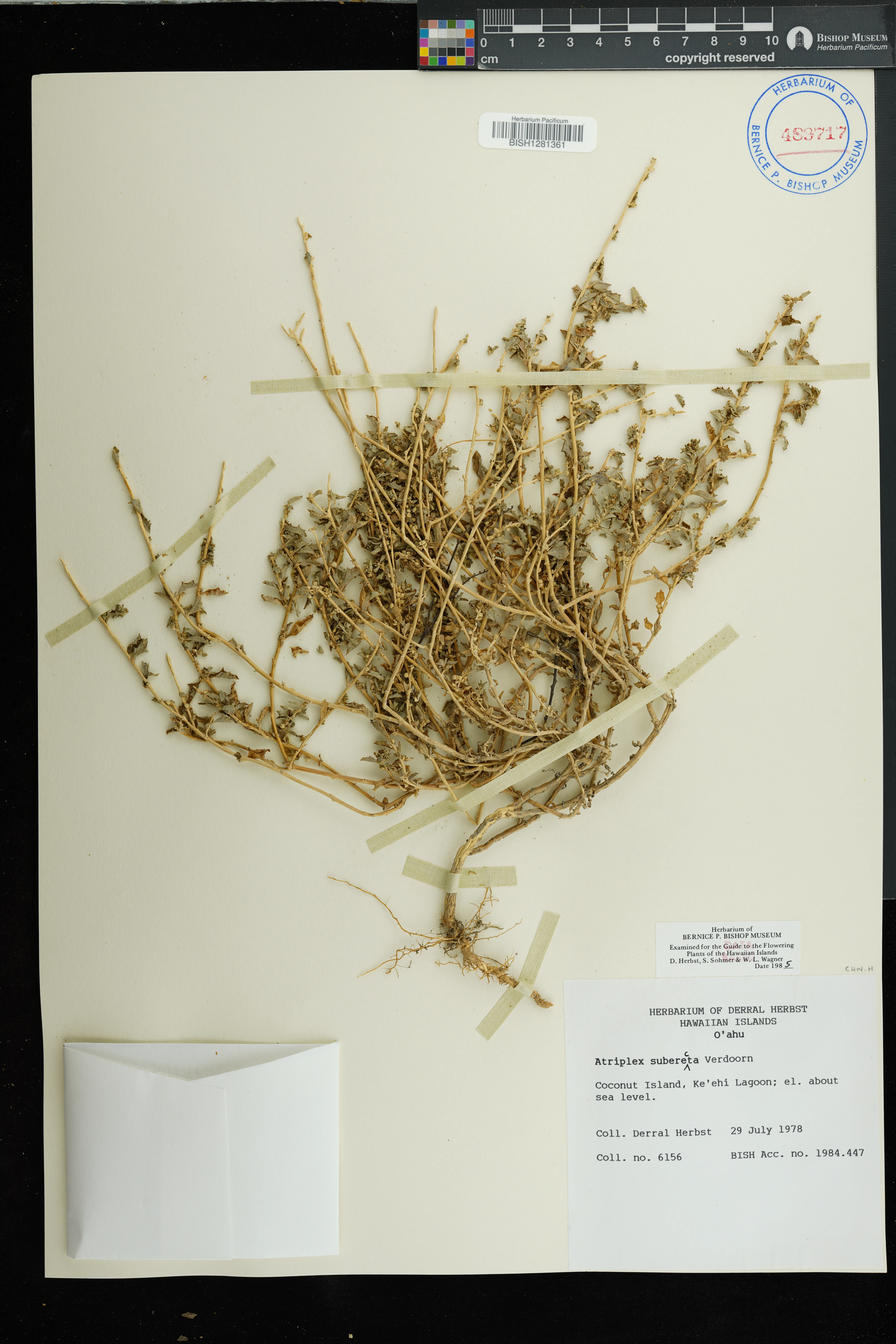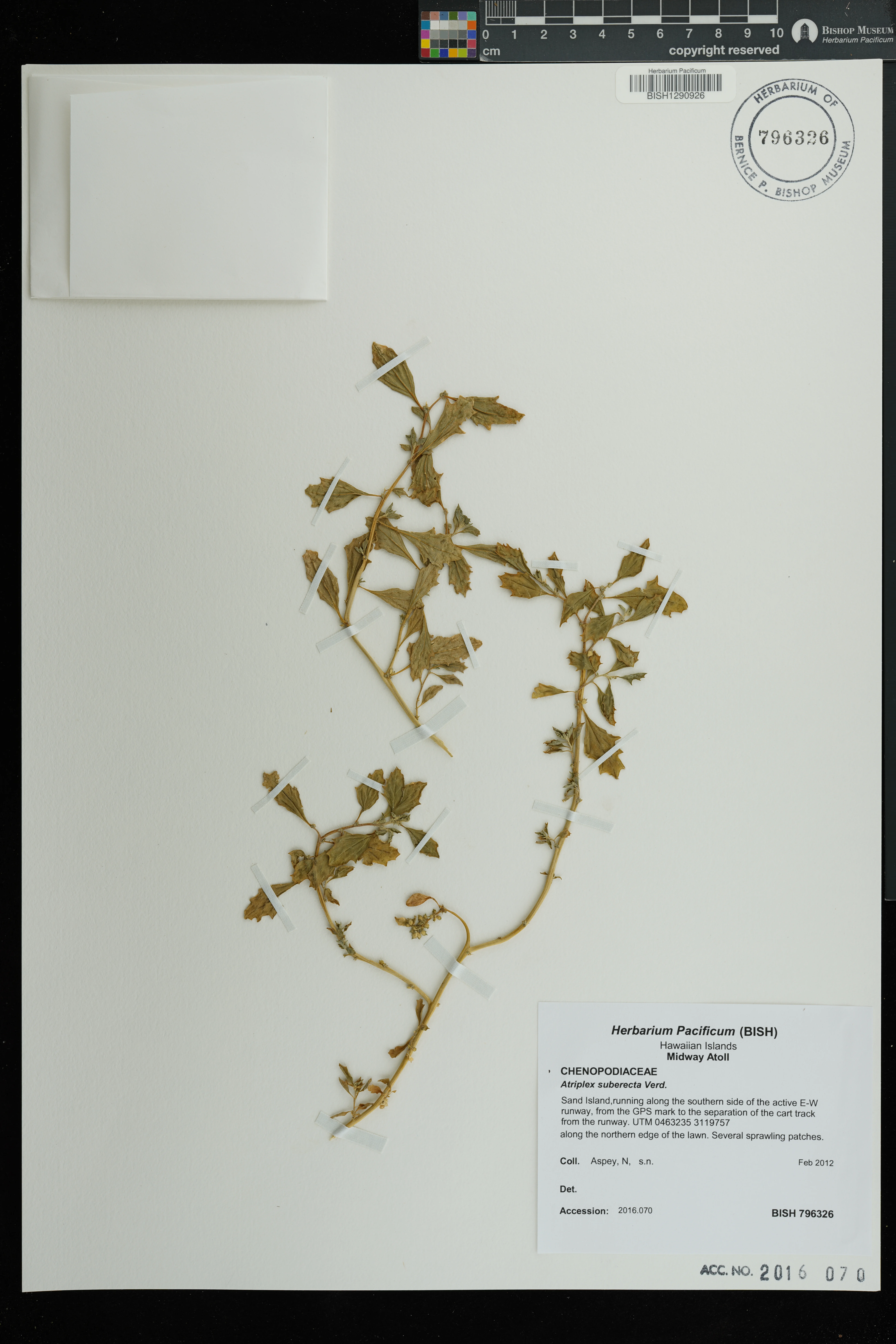 Naturalized small shrub, patchy in this area. Associated vegetation: Chenopodium oahuense, Ipomoea pes-caprae, Cocos nucifera, Tournefortia argentea, Chenopodium murale. |