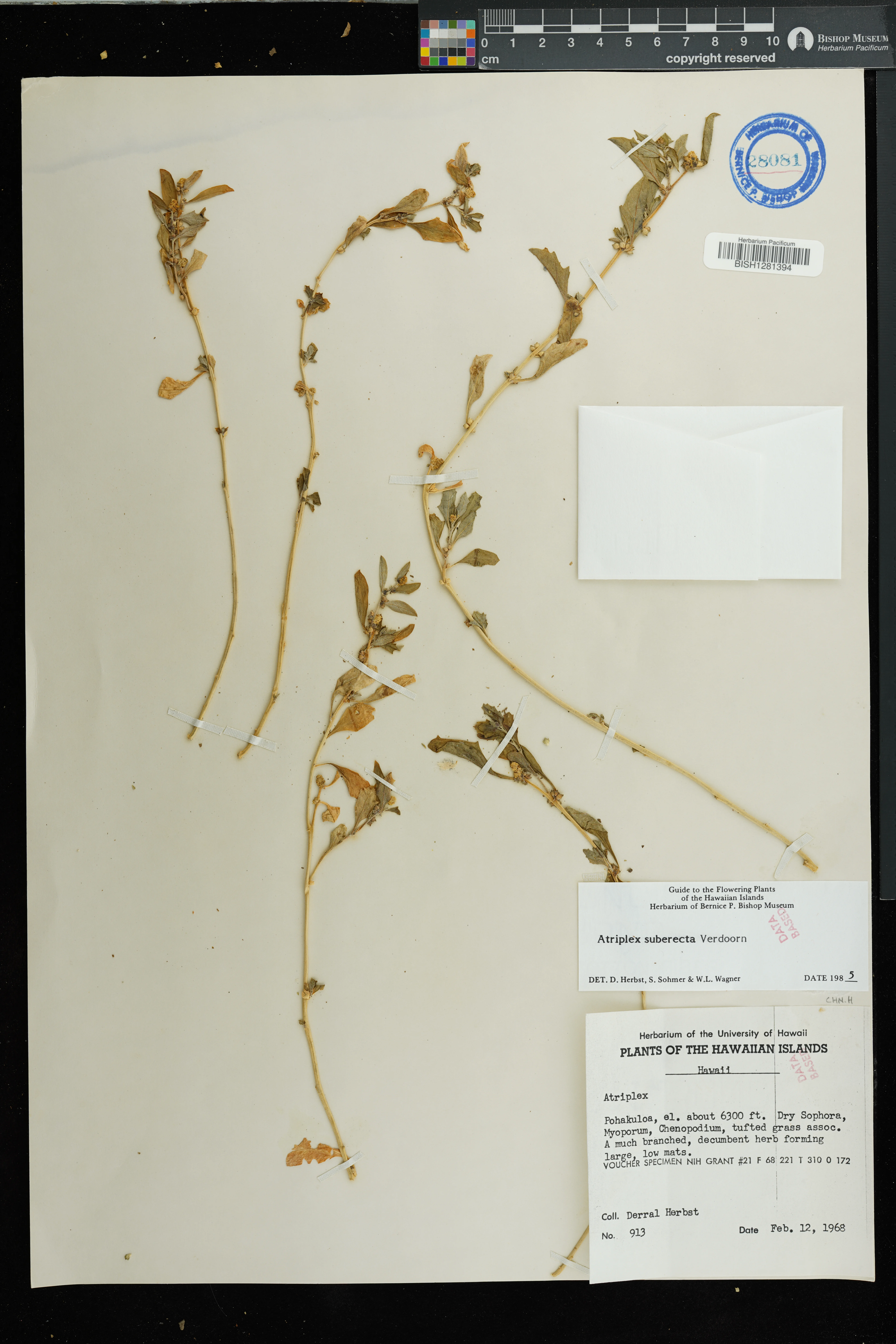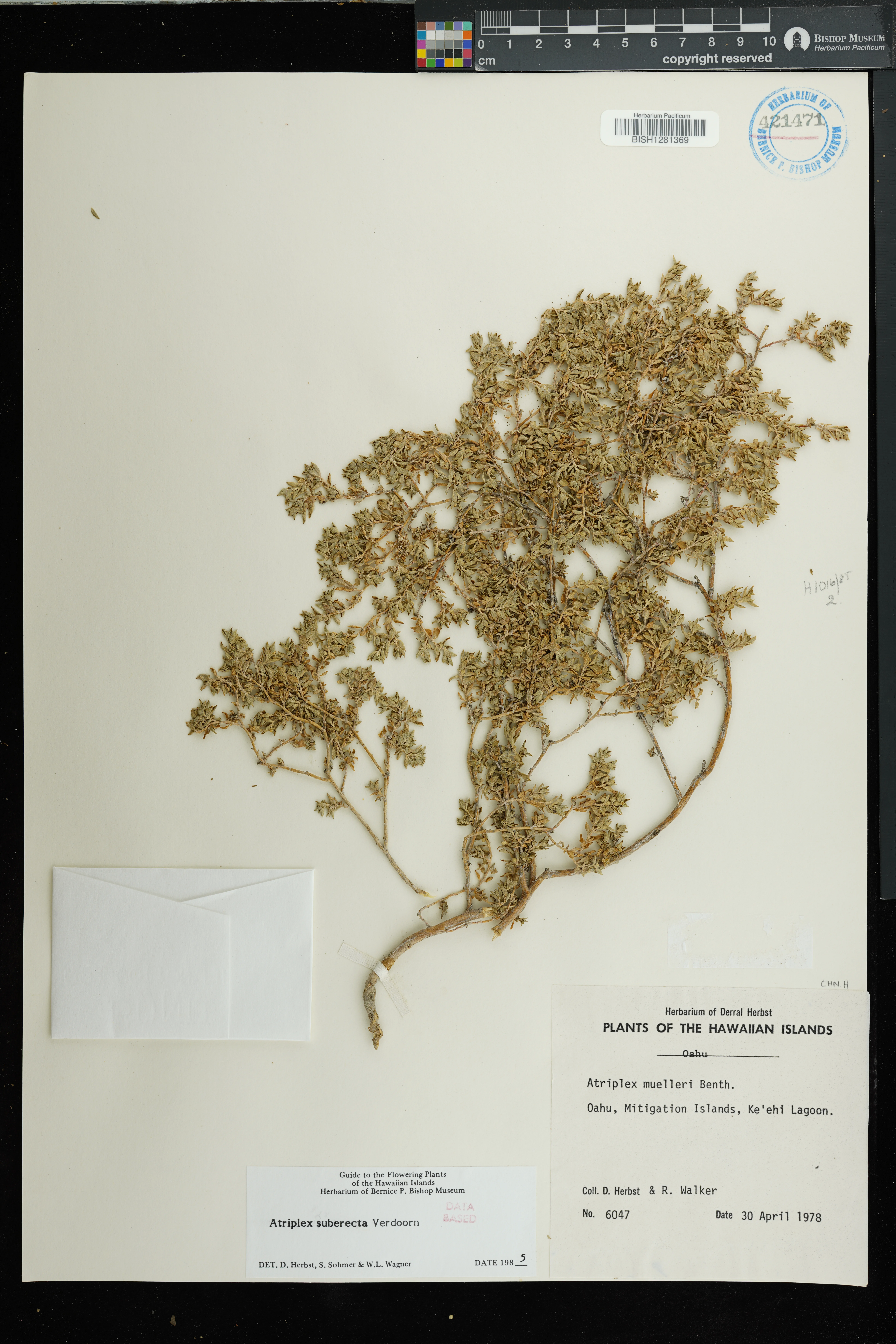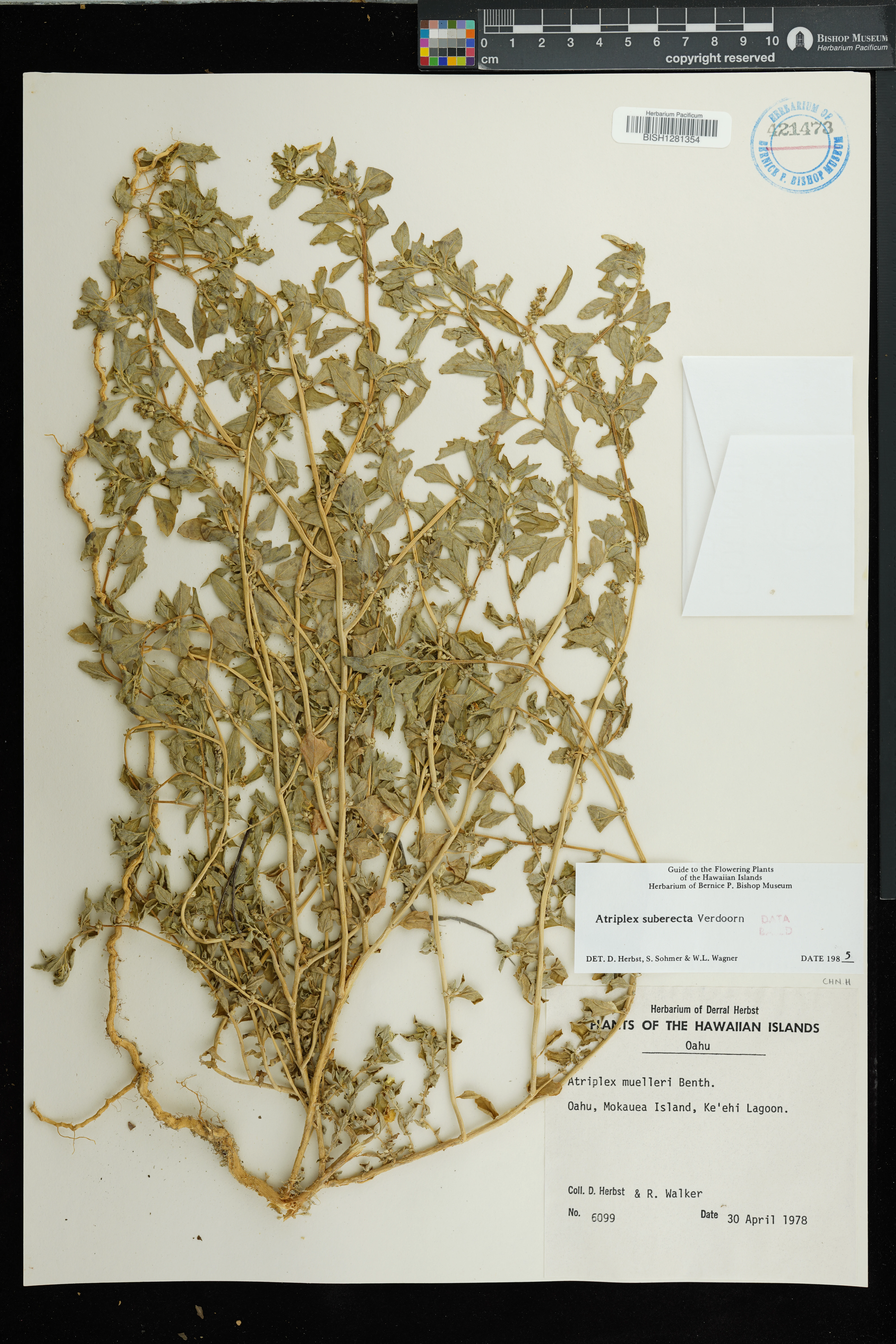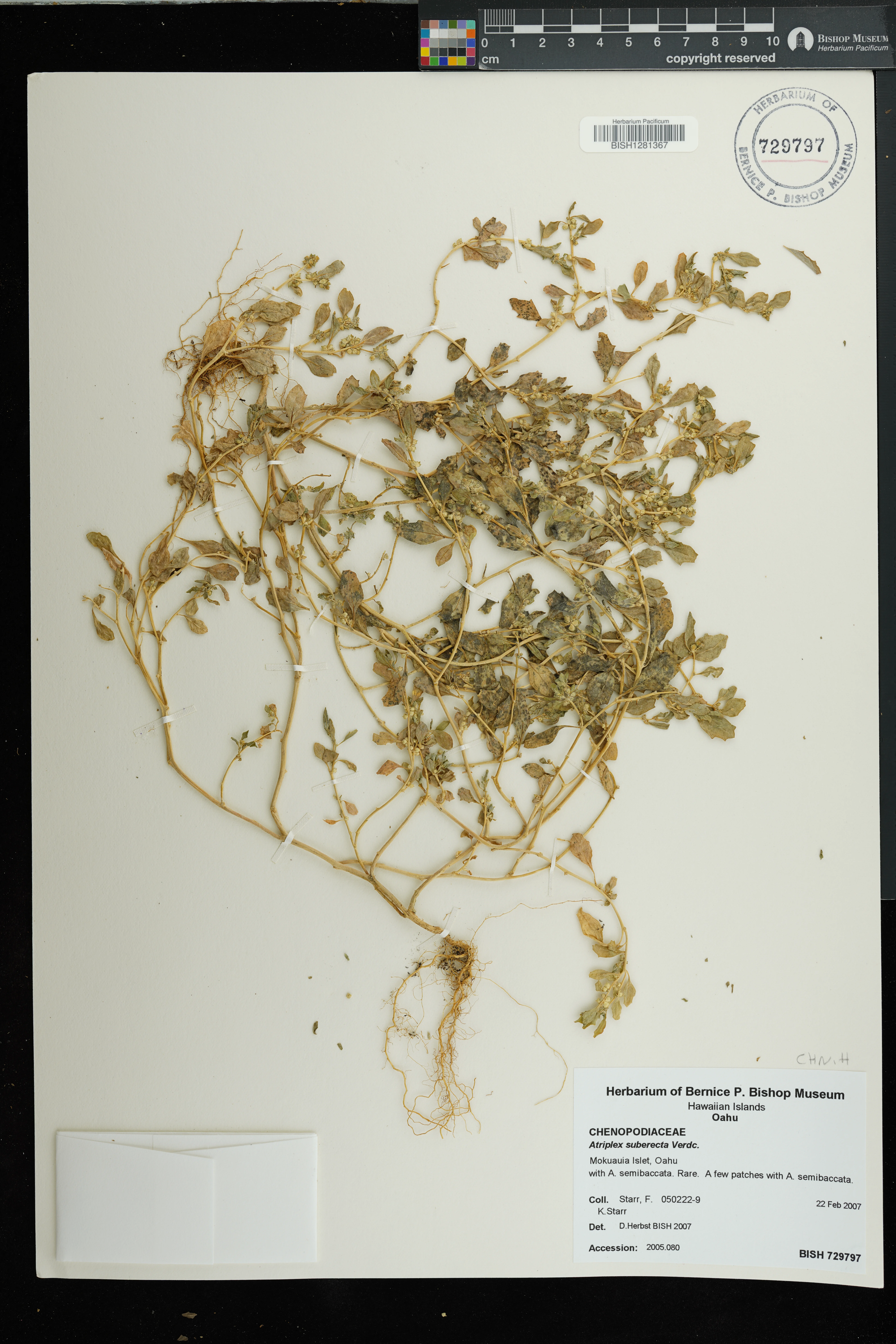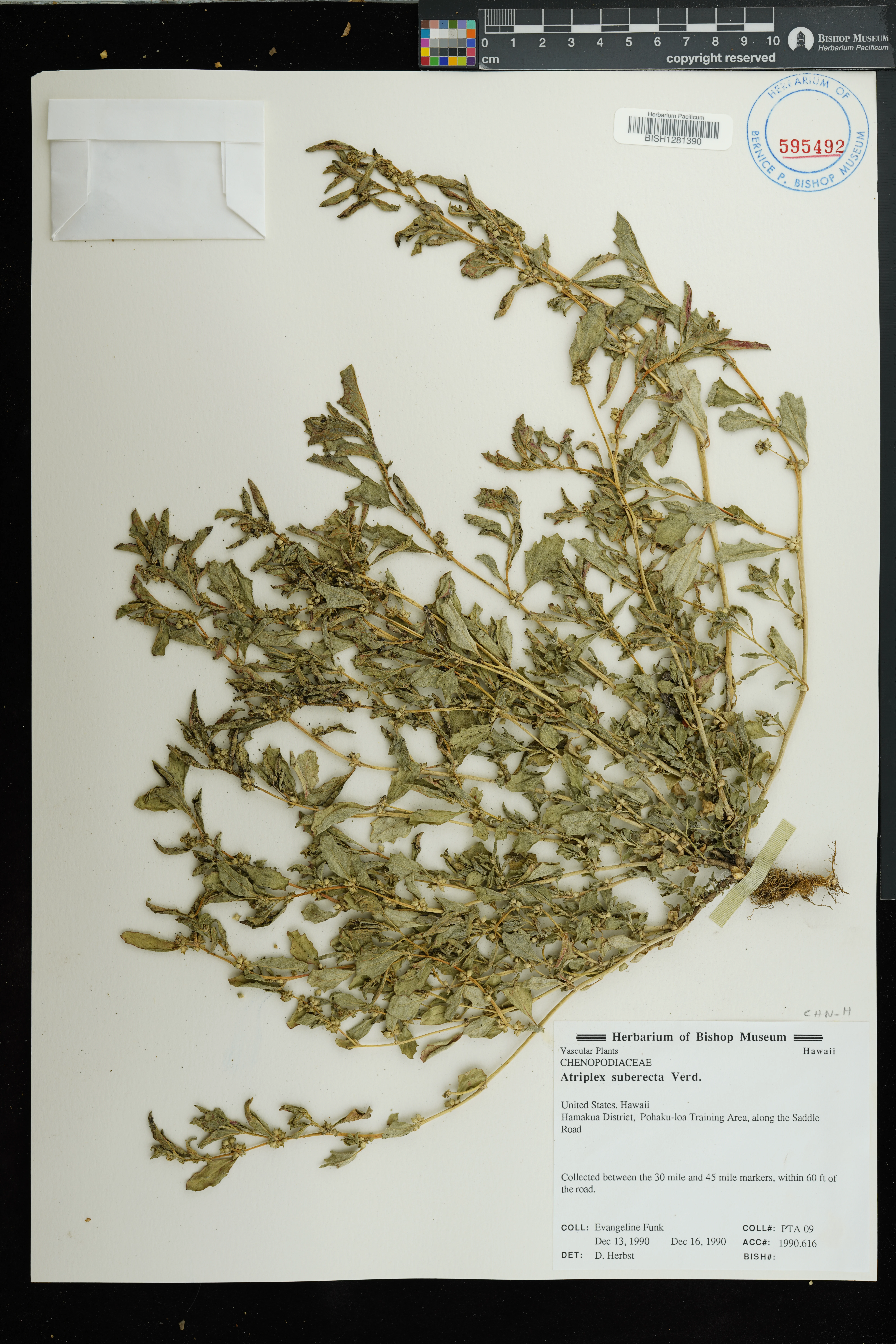 Naturalized small shrub, patchy in this area. Associated vegetation: Chenopodium oahuense, Ipomoea pes-caprae, Cocos nucifera, Tournefortia argentea, Chenopodium murale. |