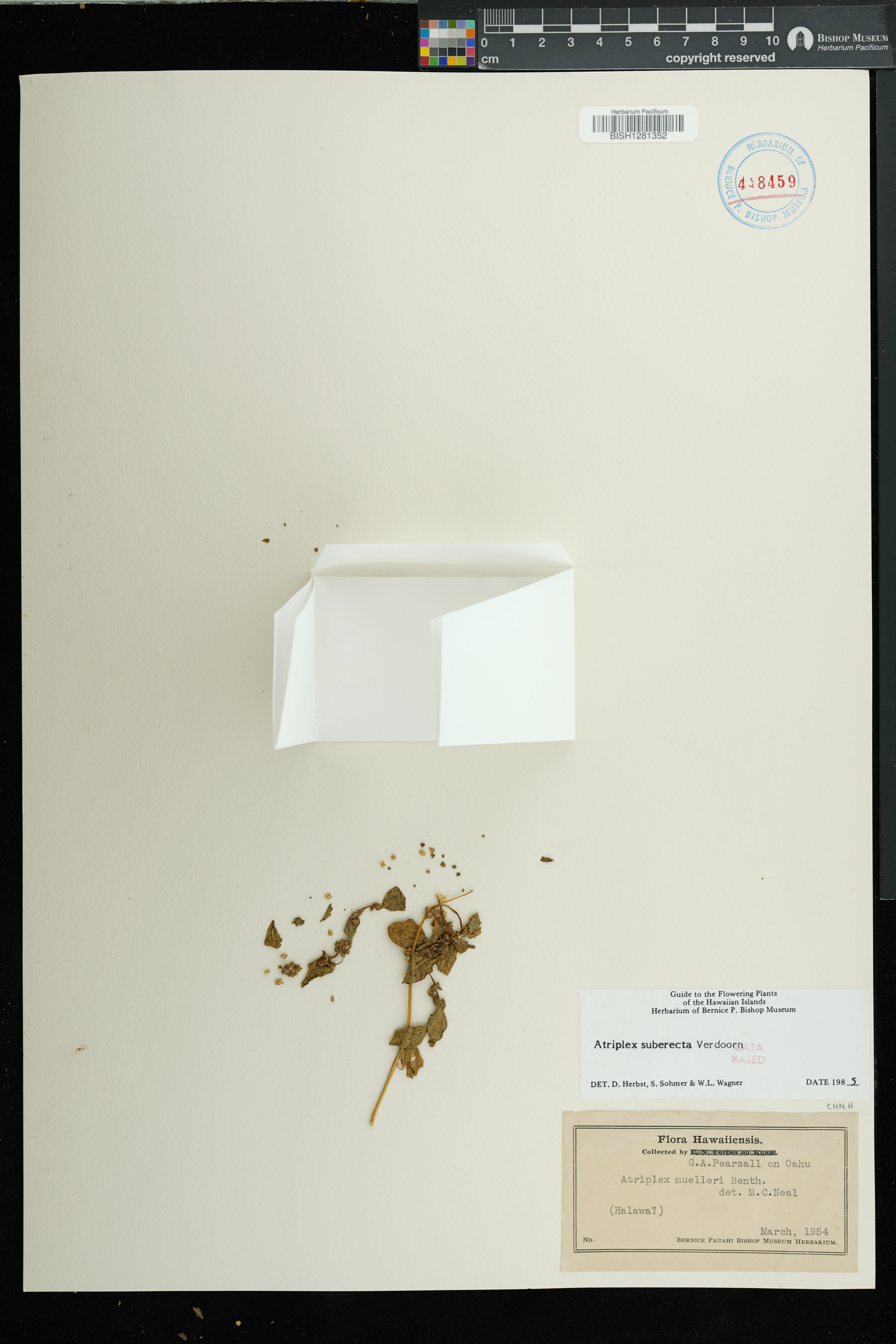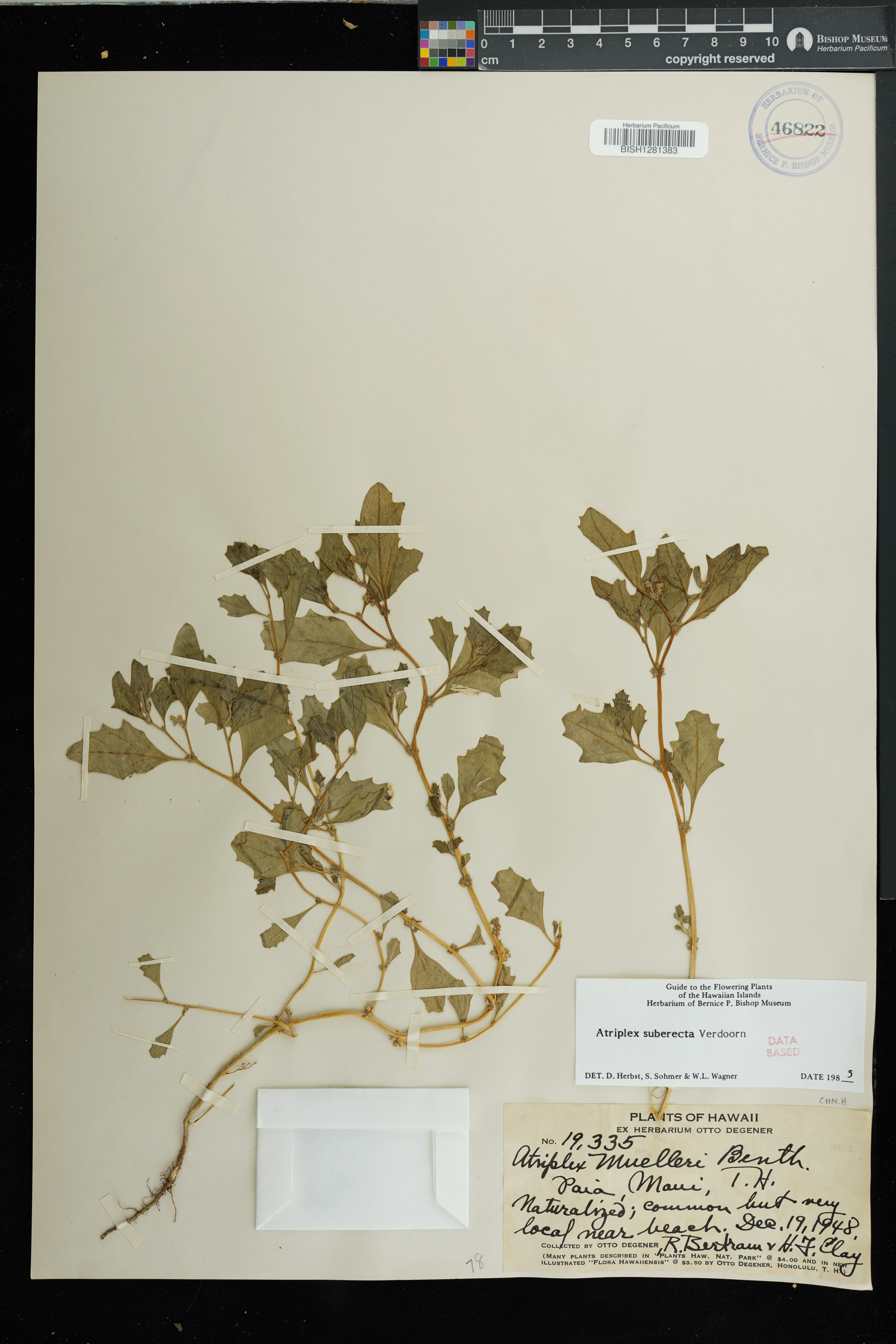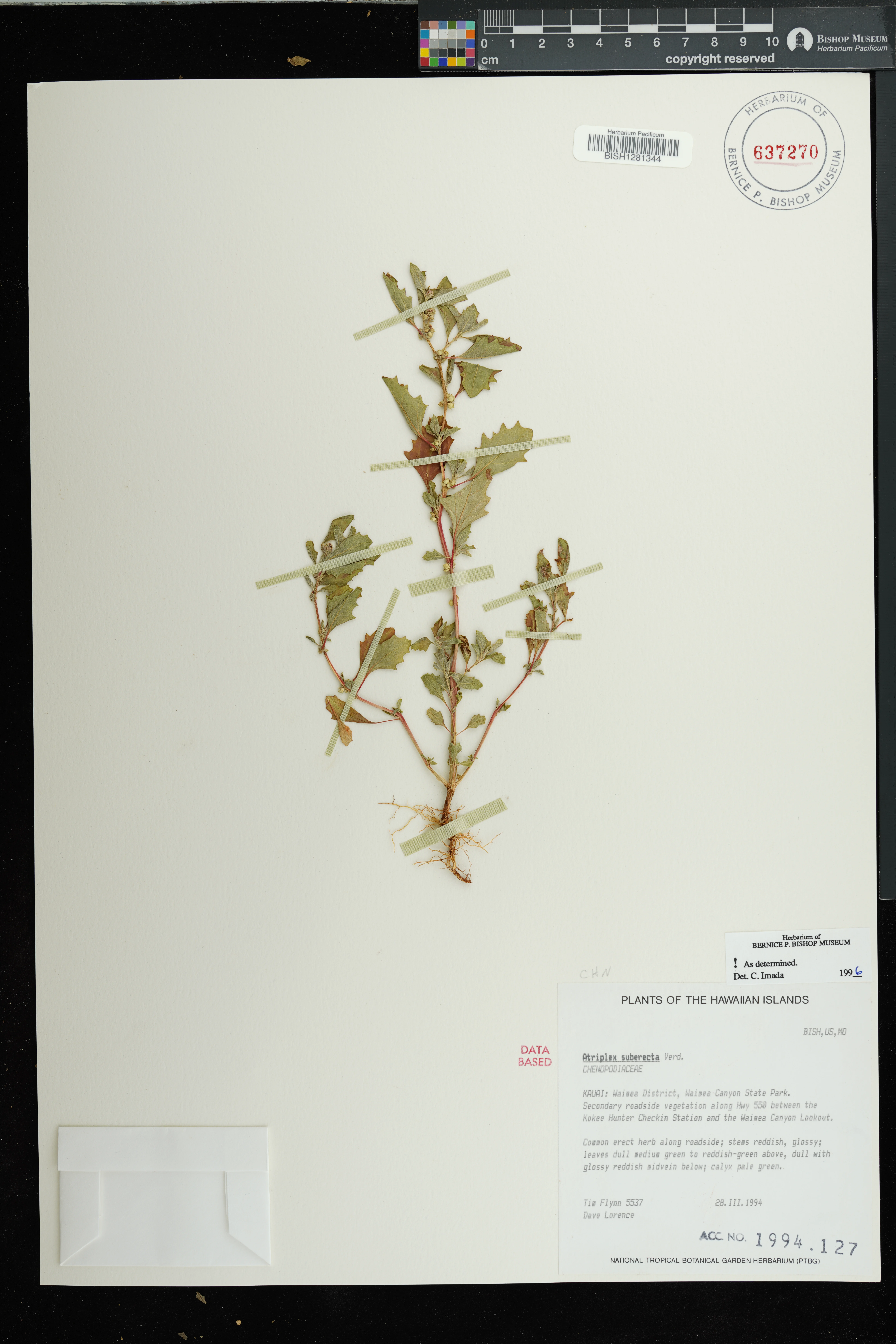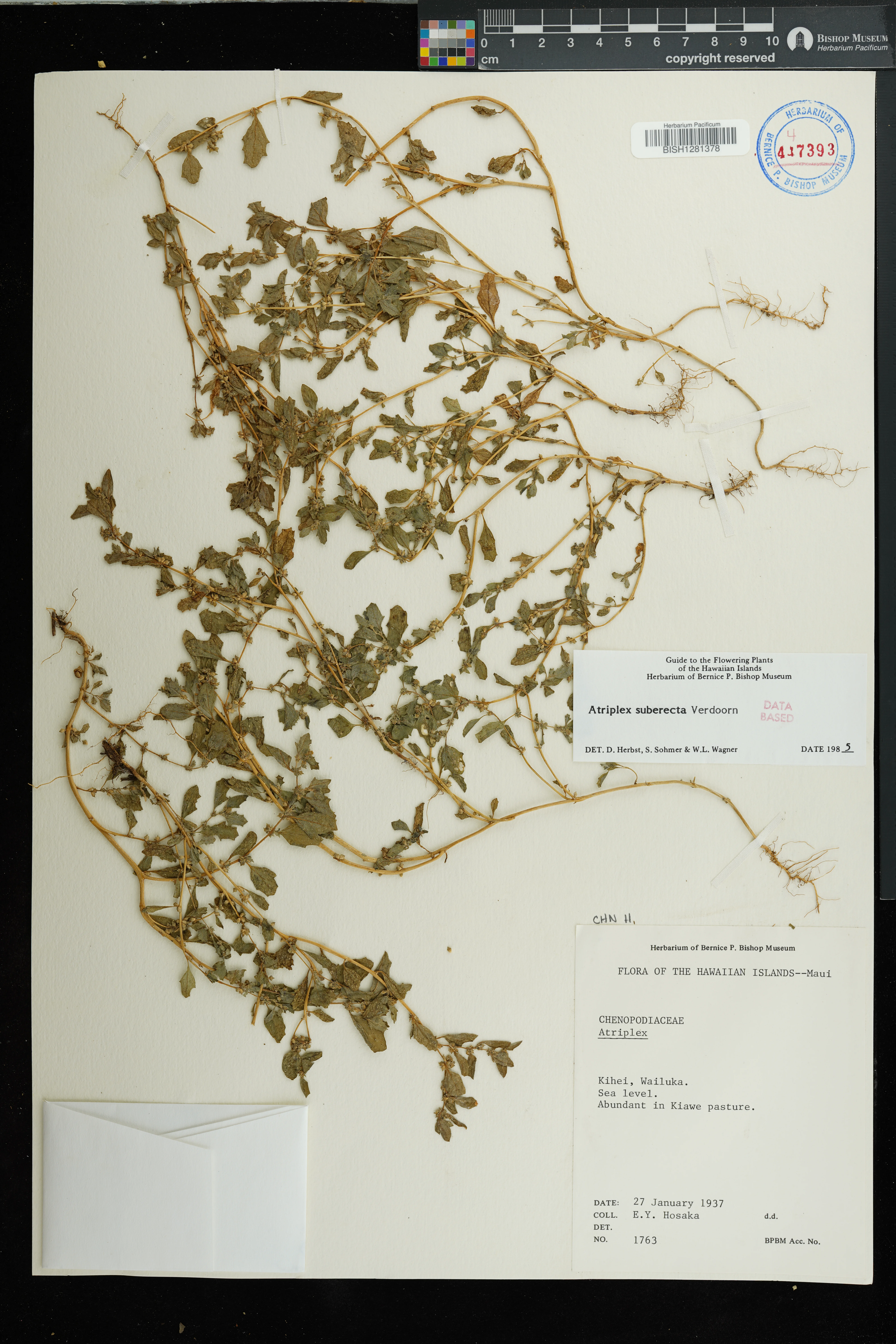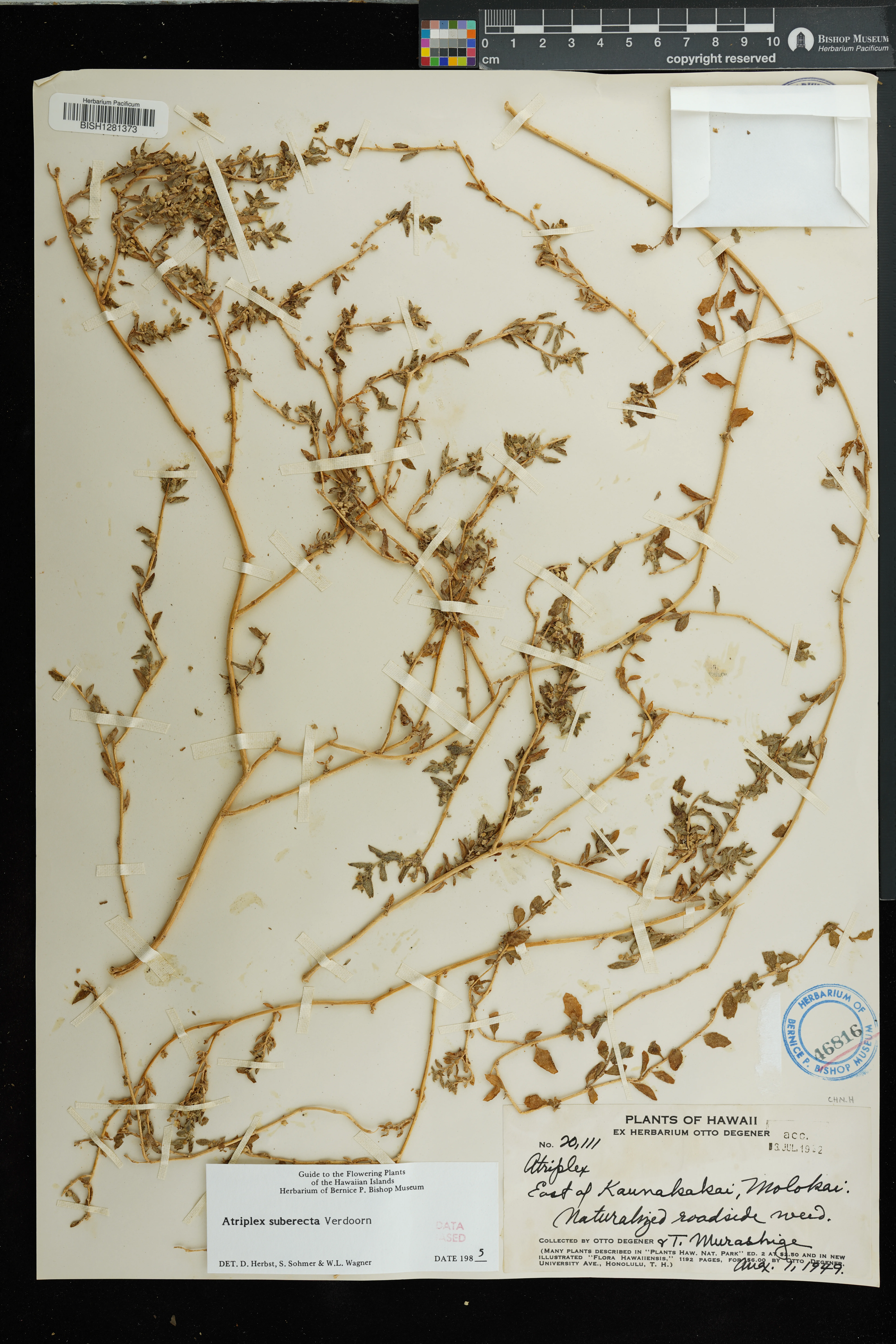 Naturalized small shrub, patchy in this area. Associated vegetation: Chenopodium oahuense, Ipomoea pes-caprae, Cocos nucifera, Tournefortia argentea, Chenopodium murale. |
