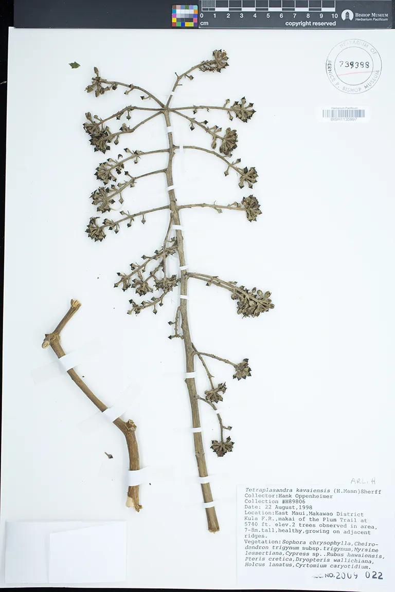 In Metrosideros-Nestegis lowland mesic forest with Dicranopteris, Wikstroemia, Broussaisia, Cibotium, Myrsine, Coprosma, Hedyotis, Cheirodendron, Clermontia, Cyanea, Labordia, Psychotria, Pittosporum & Myrica. |