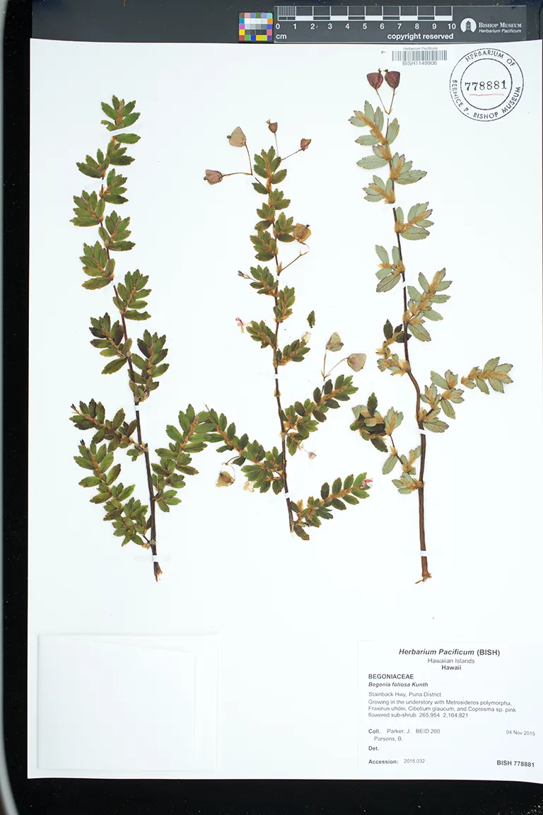 Growing in the understory with Metrosideros polymorpha, Fraxinus uhdei, Cibotium glaucum, and Coprosma sp. |