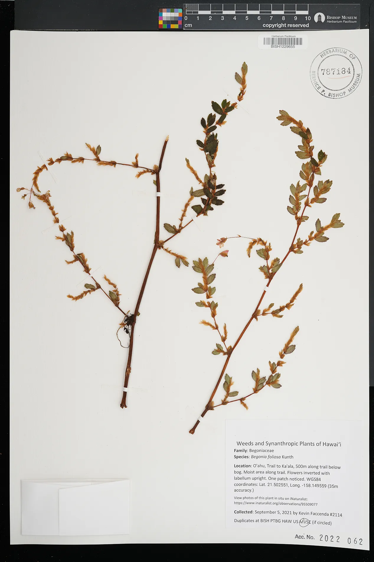 Ment (sp?) Metrosideros-Cibotium woods, established along trail. Escaped from cultivation. |