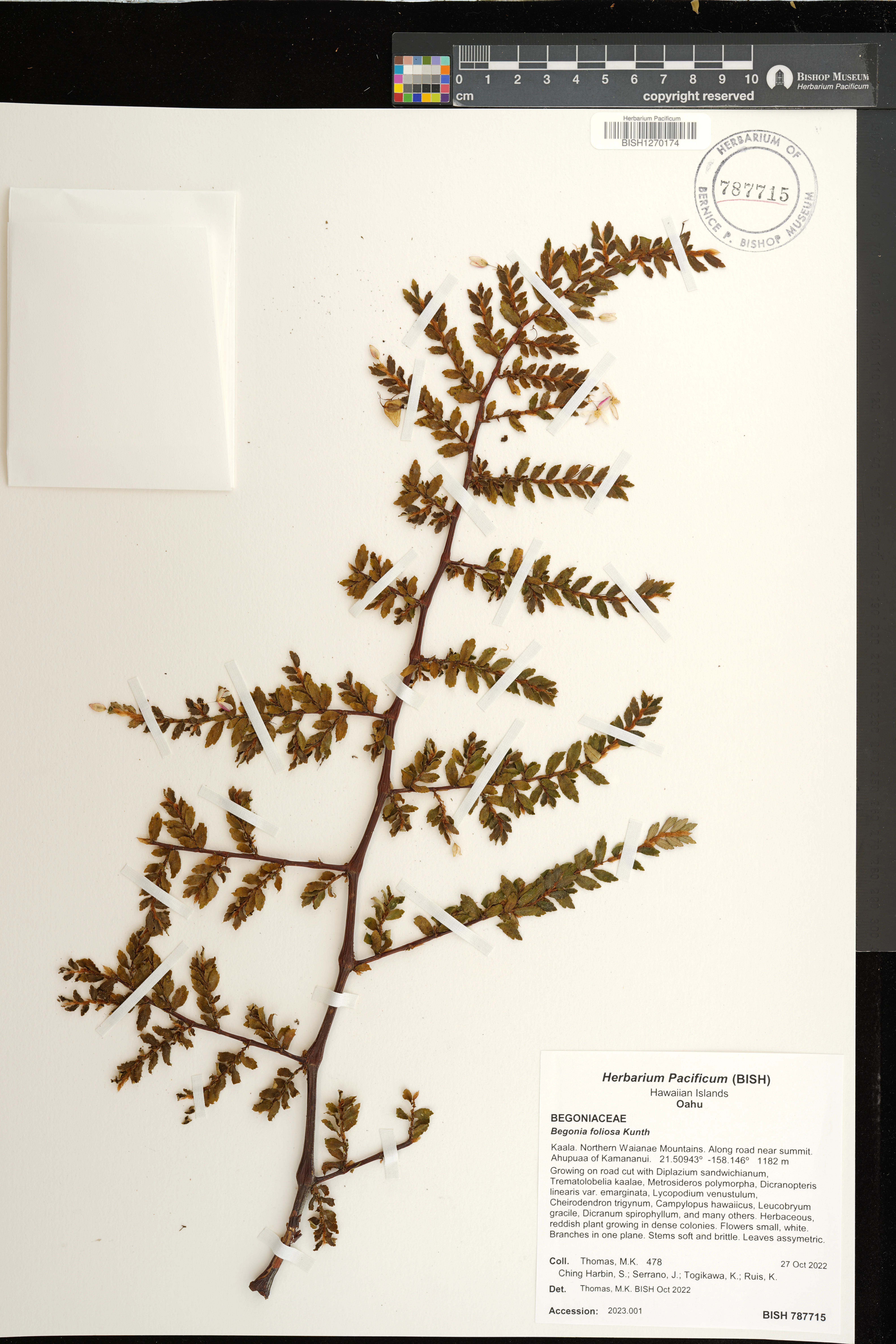 Waianae Mts, slopes on southeast side of Mt. Kaala. Wet walls just S. of stream and waterfall, with Metrosideros, Broussaisia, Cheirodendron, Phyllostegia grandiflora, Melicope peduncularis, Melicope clusifolia, Coprosma longifolia, Machaerina, |