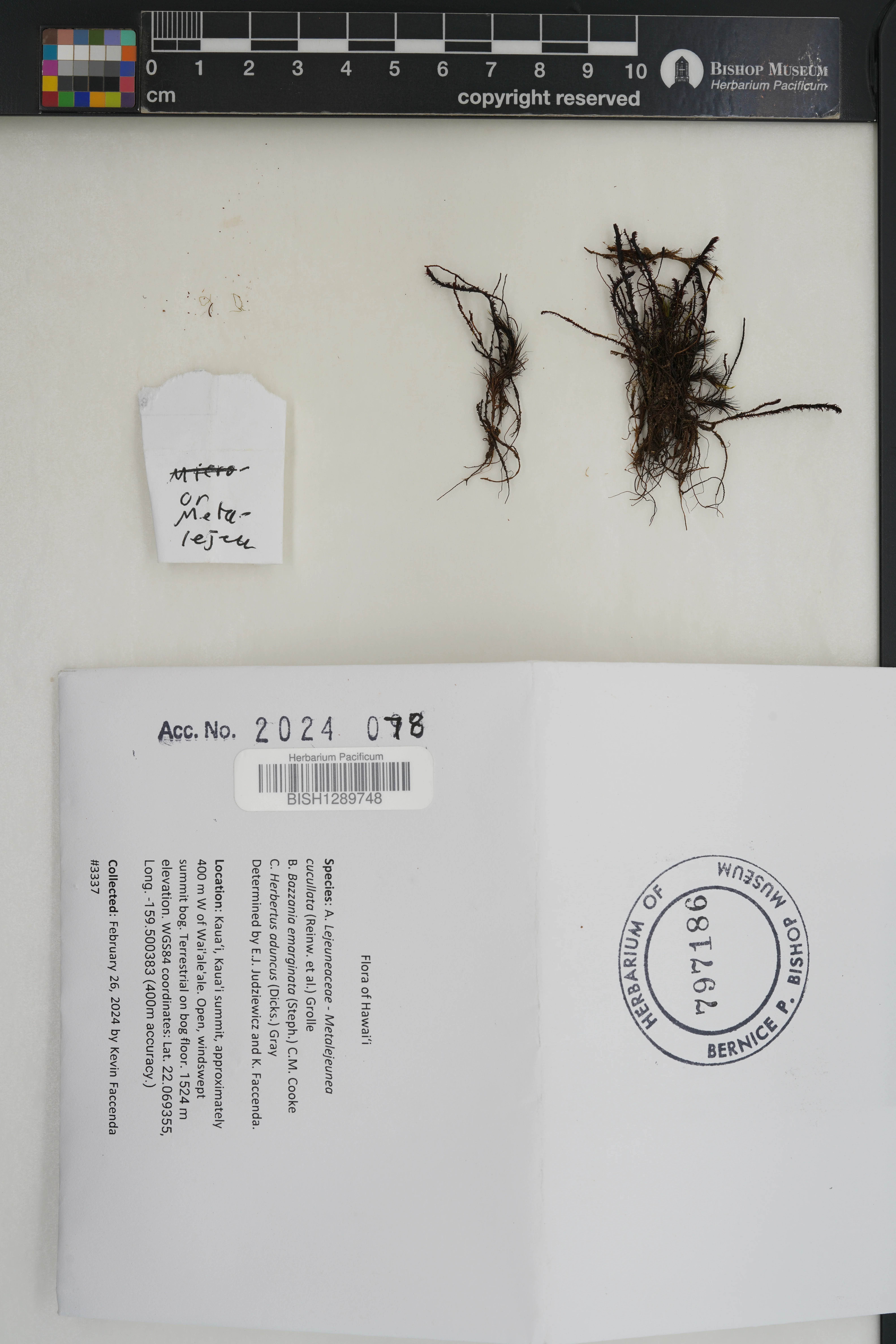 Kingdom: Viridiplantae Phylum: Marchantiophyta Class/Clade: Jungermanniopsida Order: Porellales Family: Lejeuneaceae Genus: