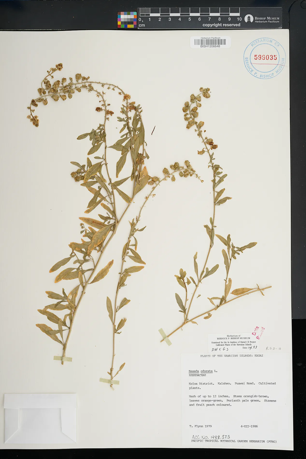 | 1 | Reseda odorata | L. | Koloa, Kalaheo, Puuwai Rd | PRESERVED_SPECIMEN | Flynn, T. | 1979 | Kauai | BISH | 12/4/1986 | |
