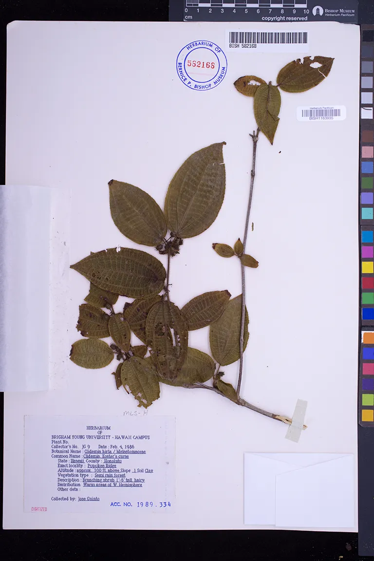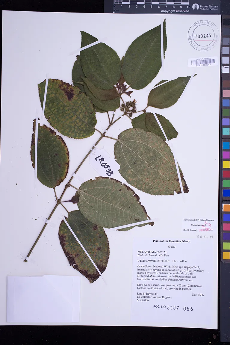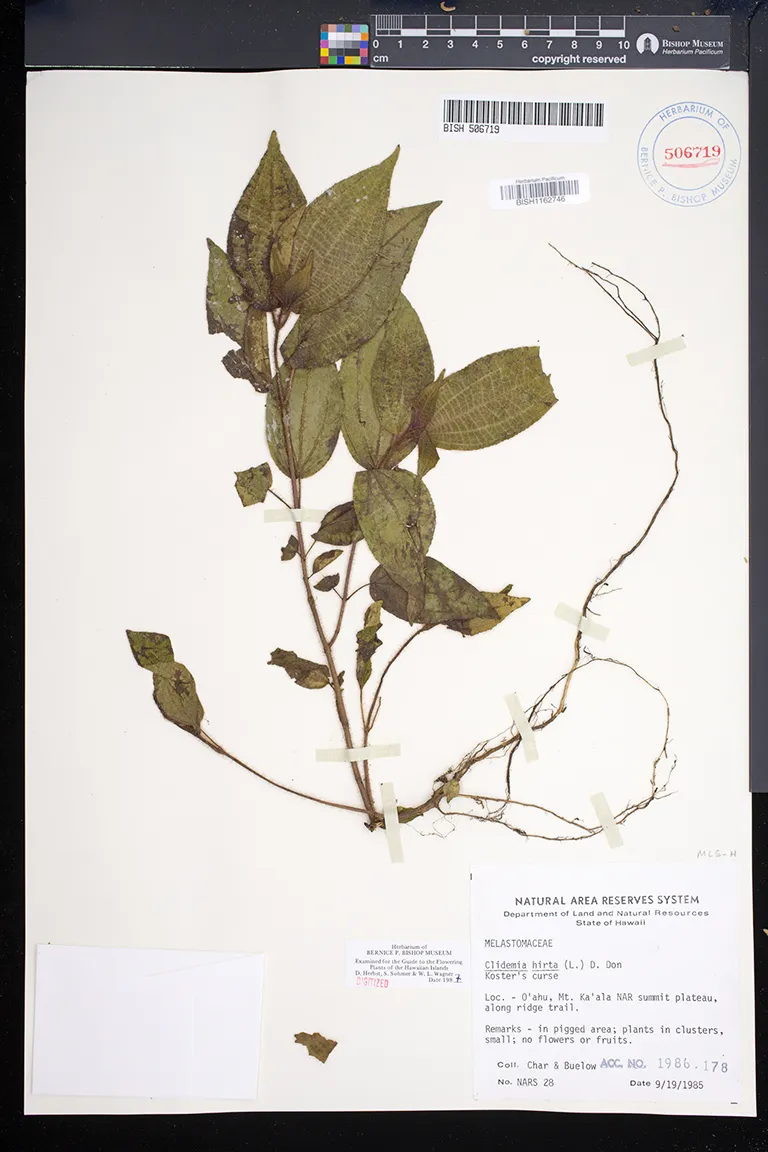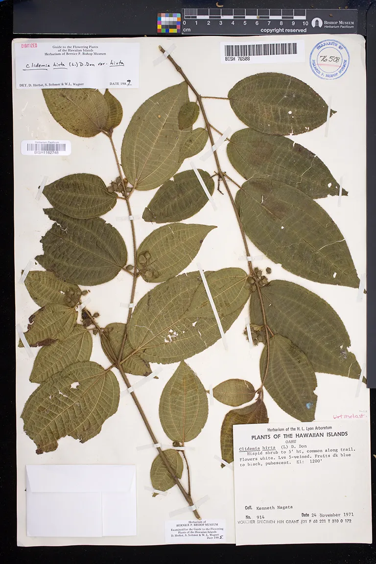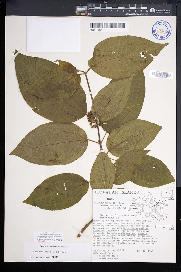 Associated Vegetation: Metrosideros, Dicranopteris, Coprosma, Diplopterygium, Scaevola, Morella, Leptospermum, Psidium, Cyanea, Tibouchina, Clermontia. |