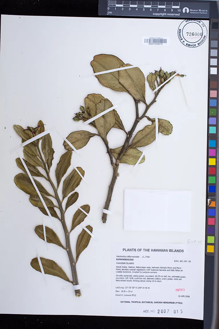 Collected as part of KISC 2007 Early Detection Roadside Survey. KISC # 20070605A008. Associated with/ Schinus, Tetragonia, Casuarina. |