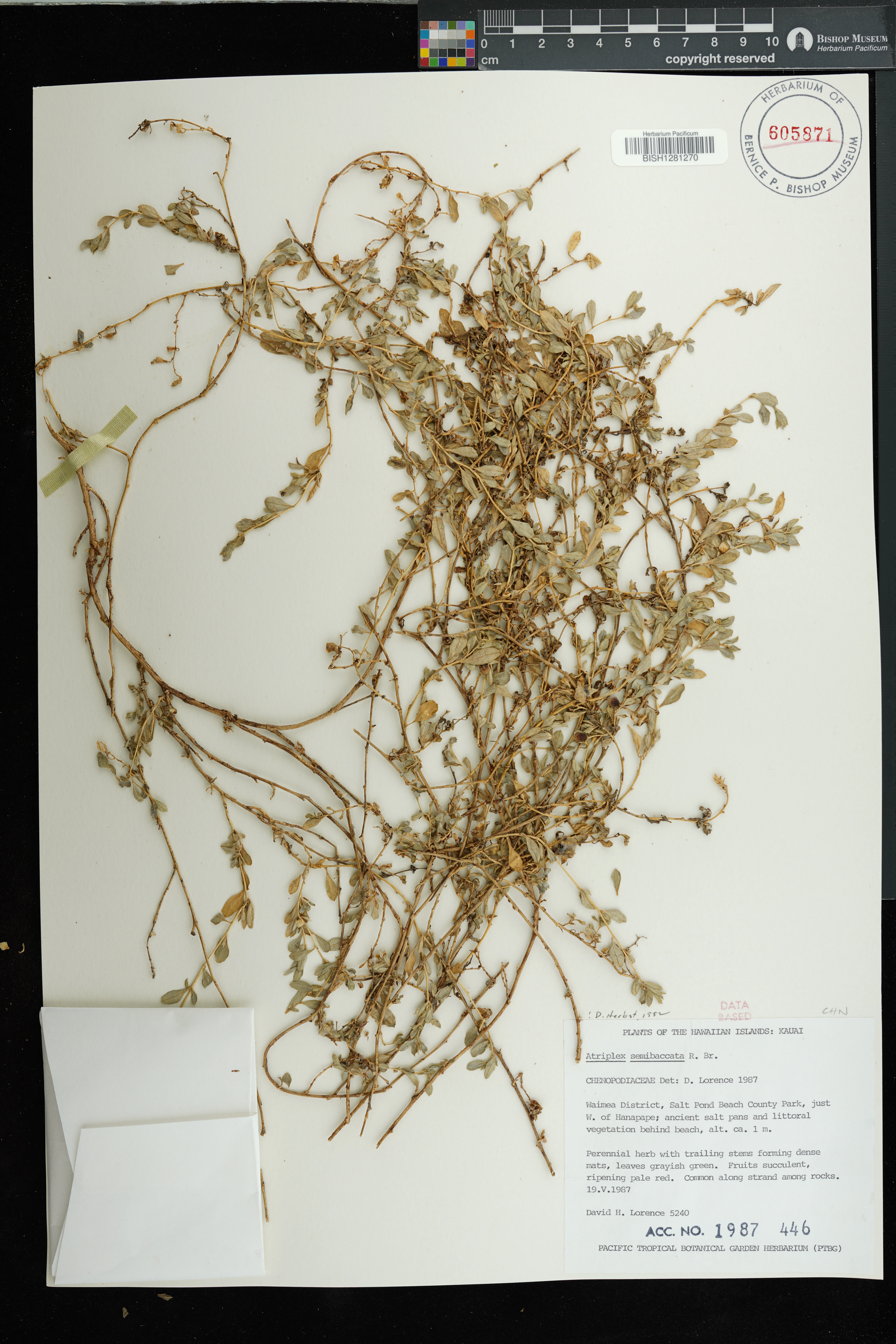 Native strand vegetation with Sporobolus virginicus growing in coral sand between lava rocks. |