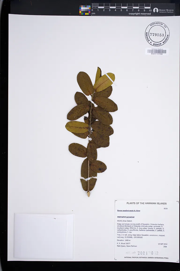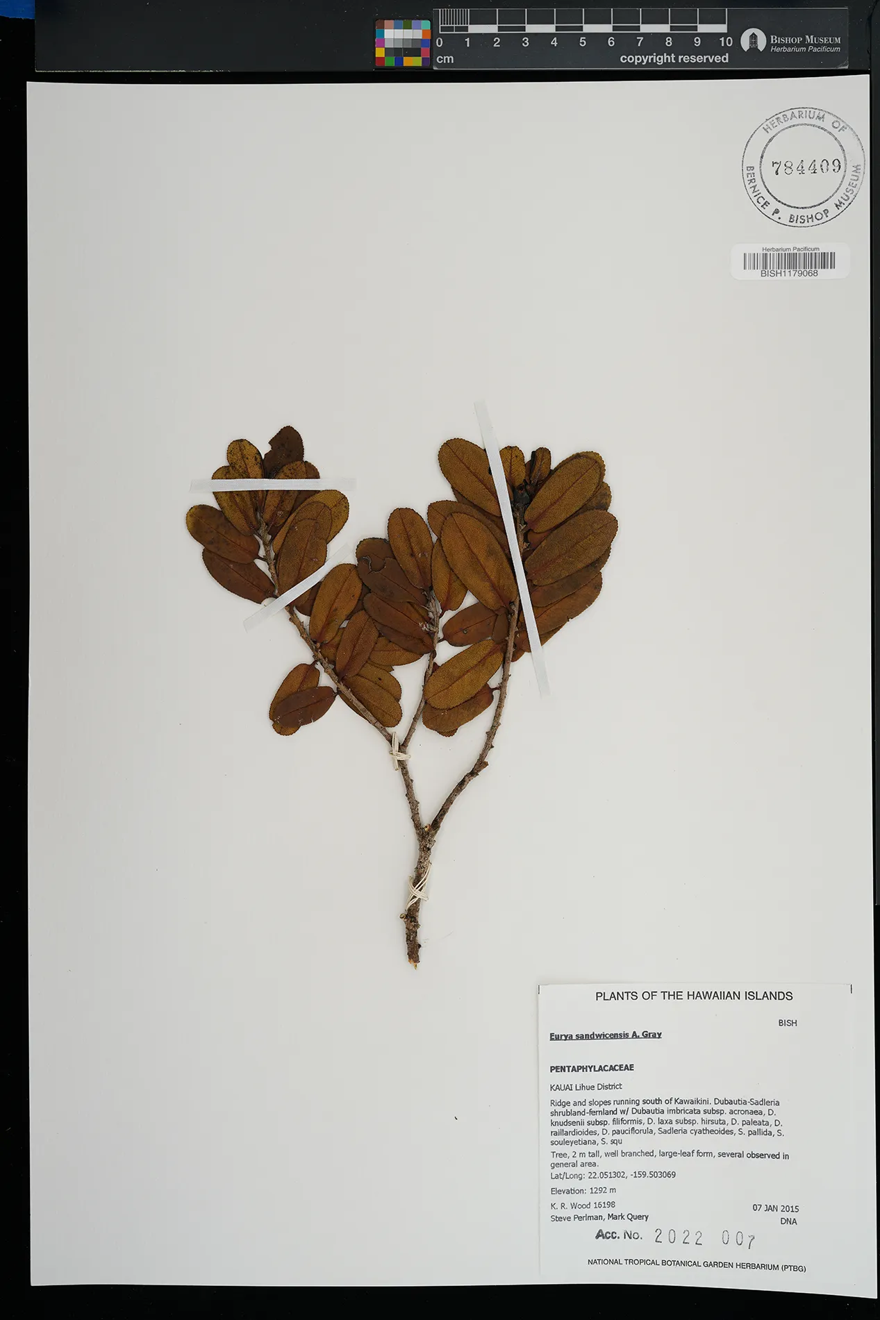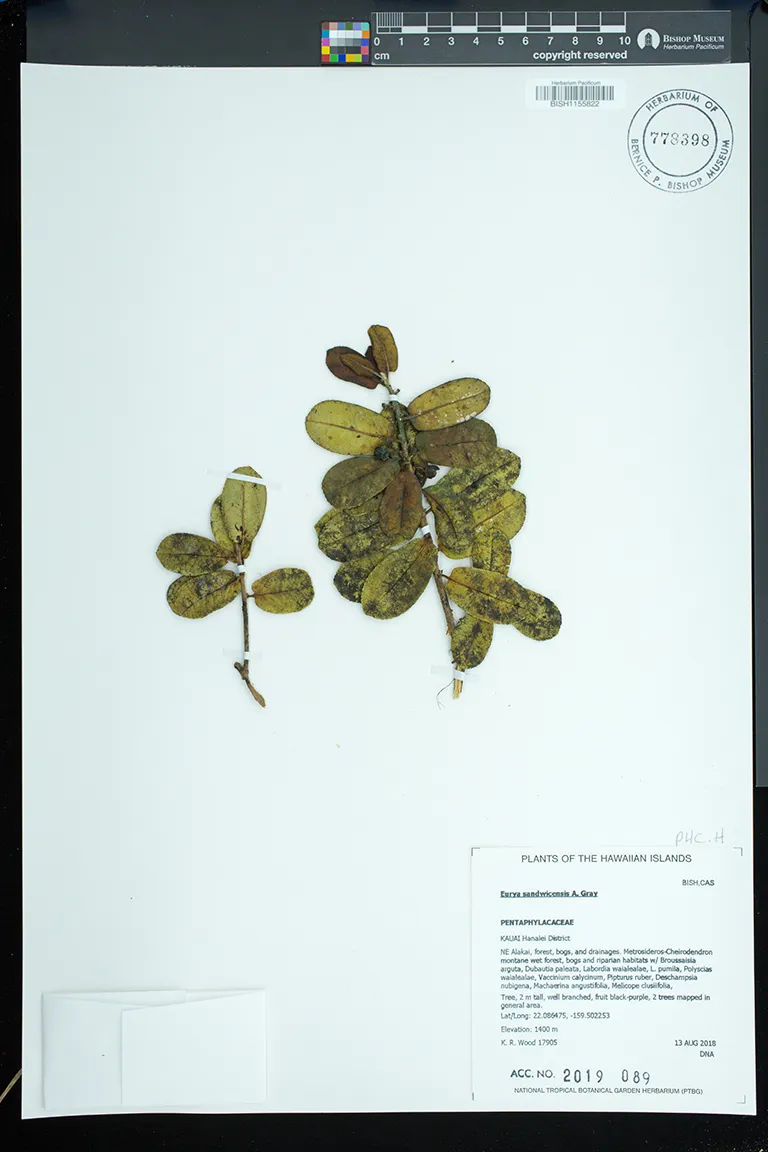 Metrosideros-Cheirodendron-Dicranopteris lowland wet forest and shrubland with Cheirodendron fauriei, C. platyphullum, Broussaisia arguta, Melicope feddei, Psychotria mariniana, P. hexandra, P. wawrae, Kadua affinis, Antidesma platyphylla, Alyxia stellata, Syzygium sandwice |