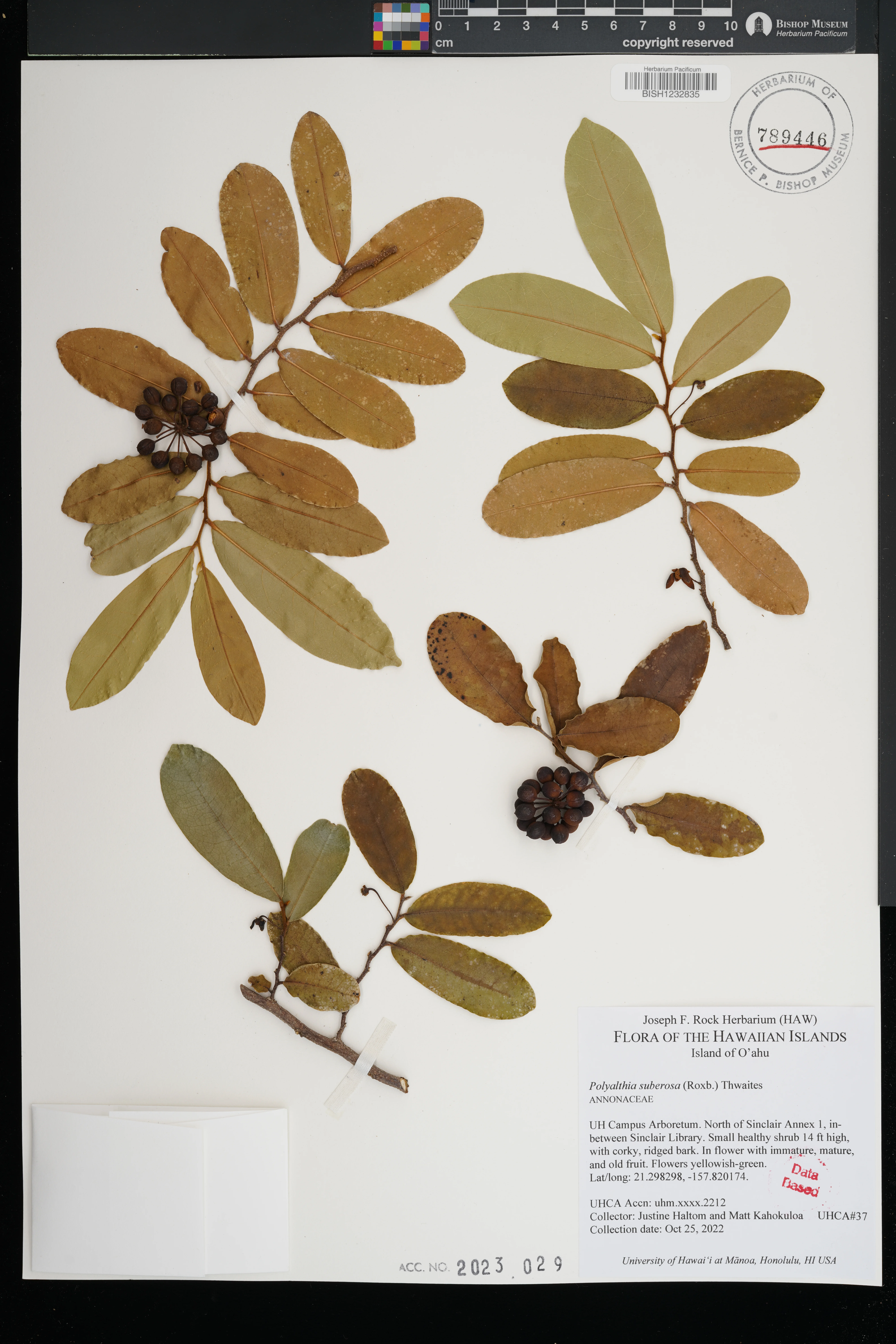 | 24 | Polyalthia suberosa | (Roxb.) Thwaites | Honolulu | PRESERVED_SPECIMEN | Rock, J.F.C. | Oahu | BISH | 2/1/1917 | ||