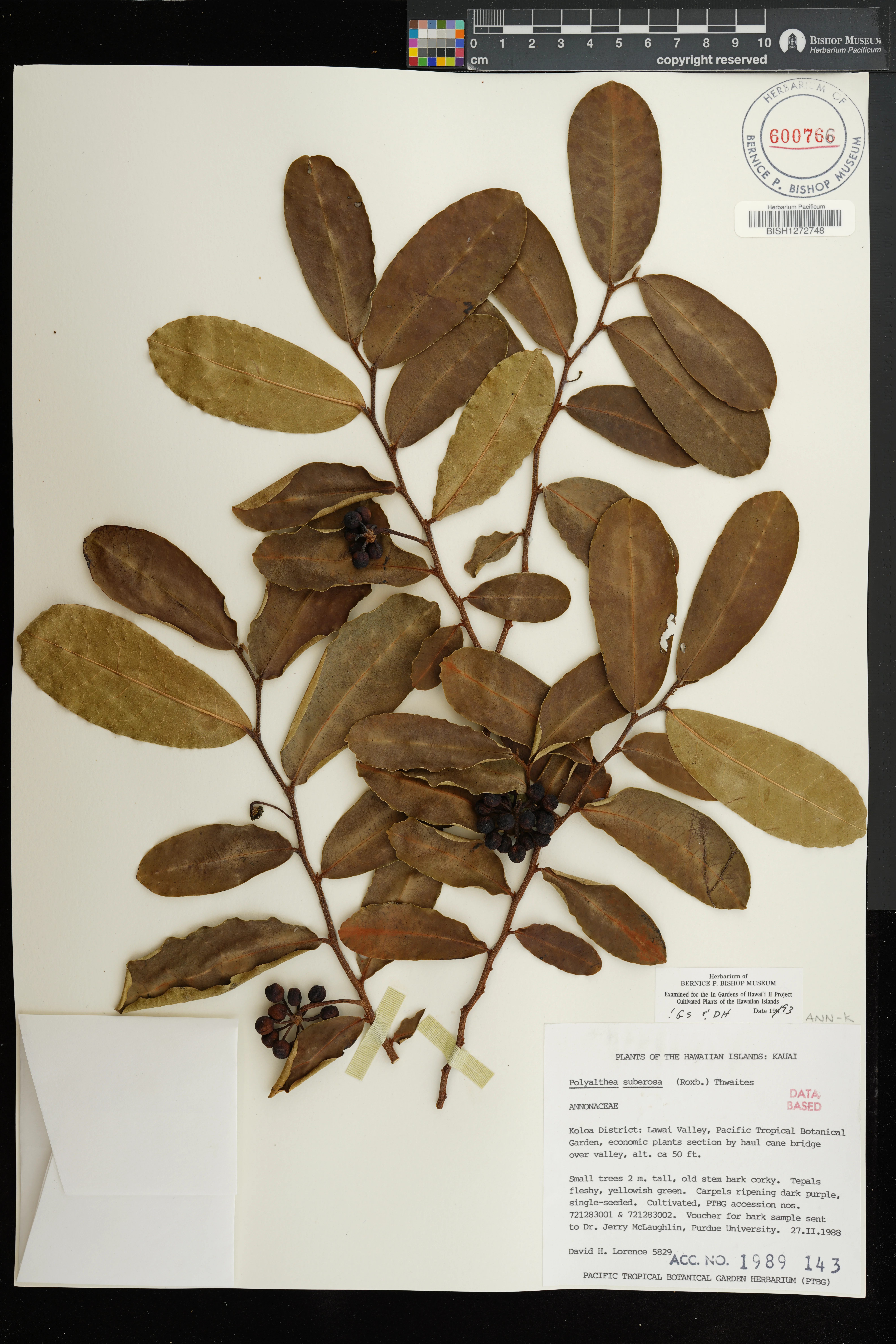 | 35 | Polyalthia suberosa | (Roxb.) Thwaites | Lawai Valley, Pacific Tropical Botanical Garden, economic plants section by haul cane bridge over valley | PRESERVED_SPECIMEN | Lorence, D. H. | 5829 | Kauai | US | 2/27/1988 | |