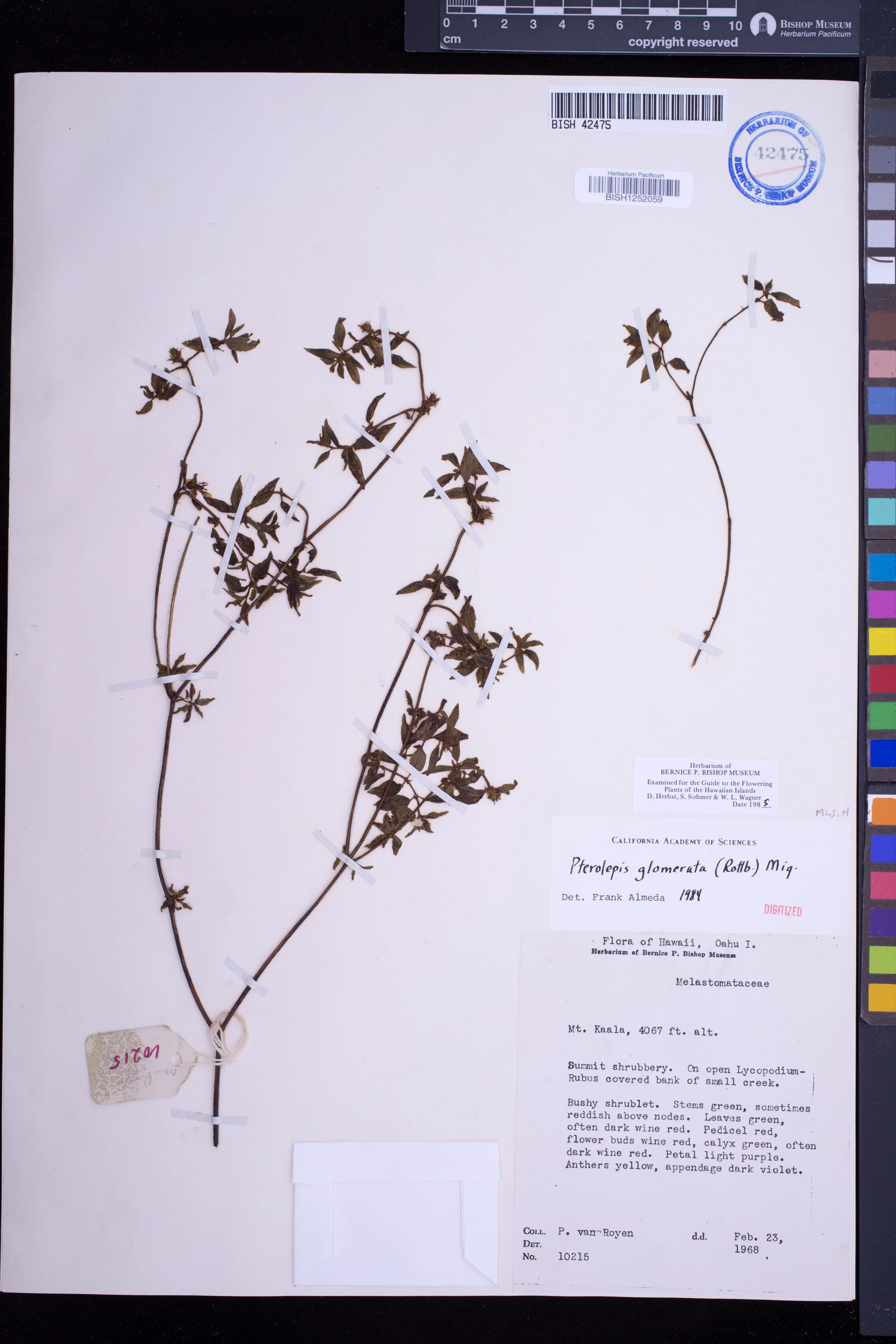 Summit shrubbery, on open Lycopodium-Rubus covered bank of small stream. |