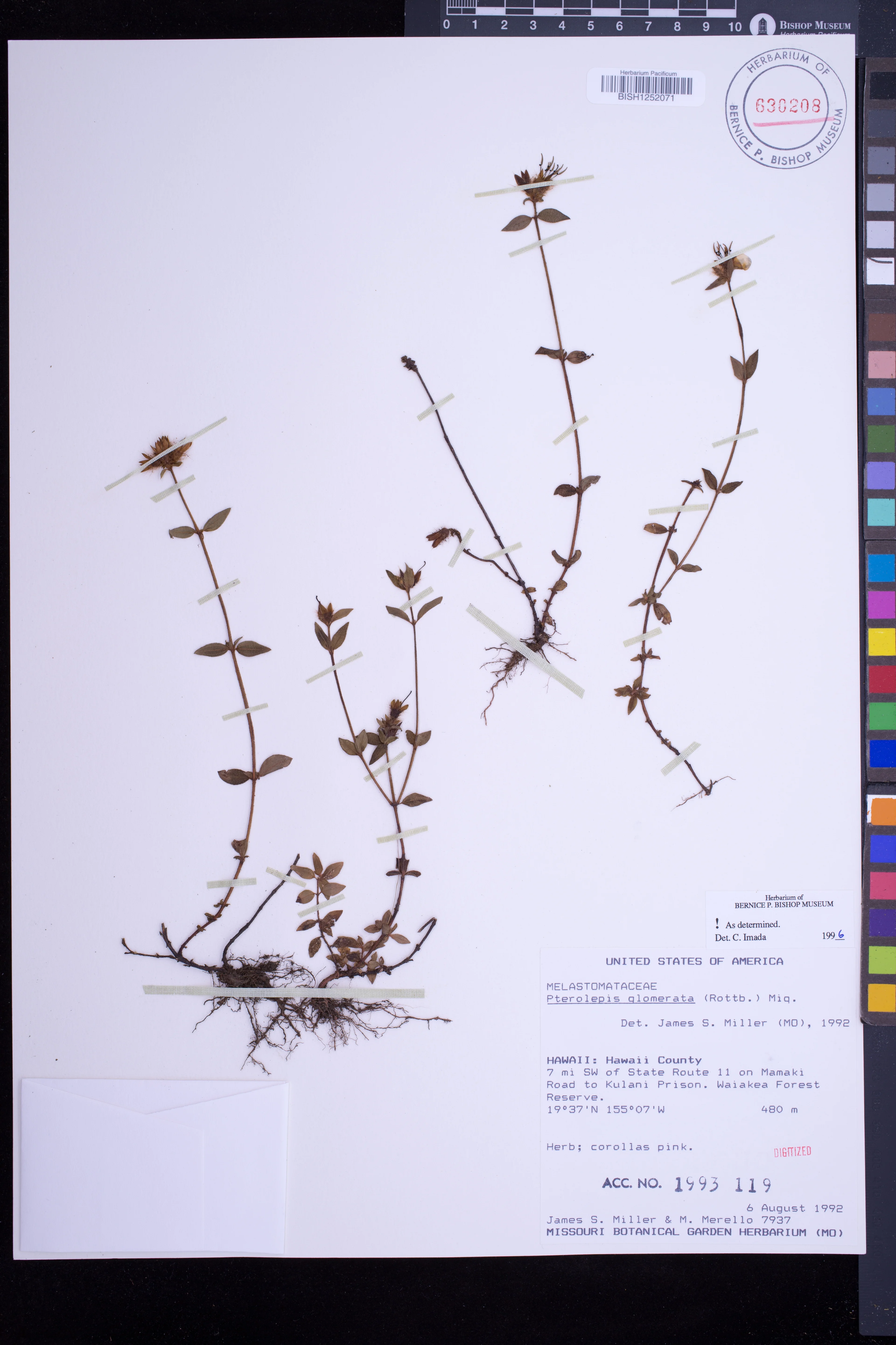 Growing with Andropogon beside trail in open Metrosideros forest. |