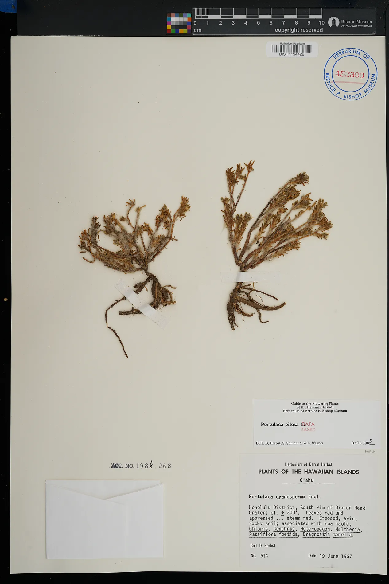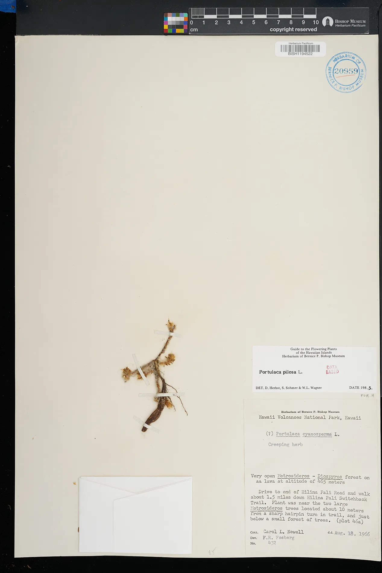volcanoes national park: 1.5 mi from end of hilina pali rd., down hilina pali switchback. near two large metrosideros trees 10 m from sharp turn in trail, just below small forest of trees. (plot46a) |