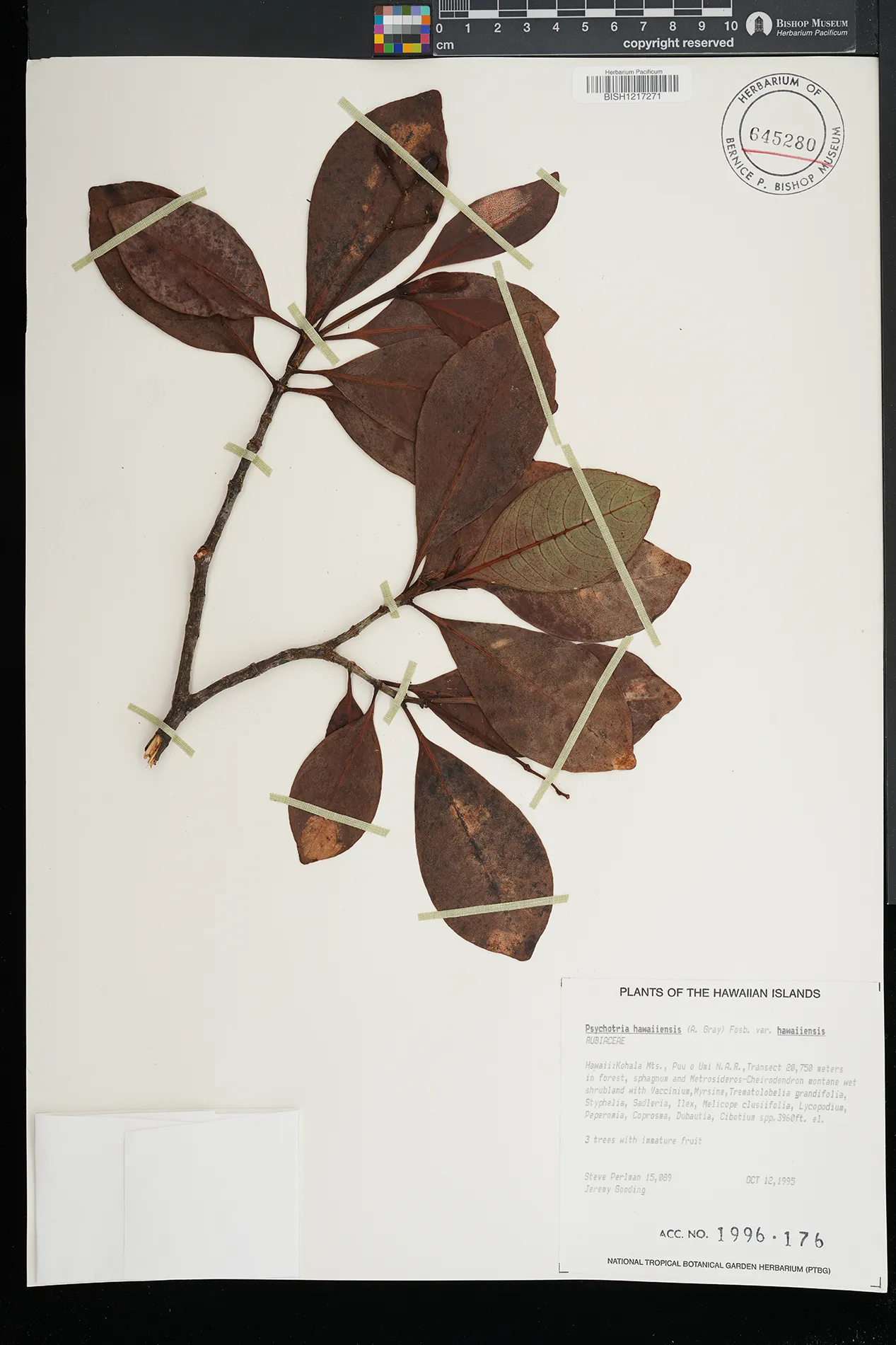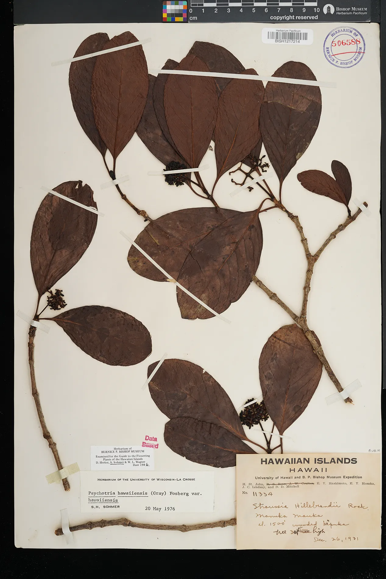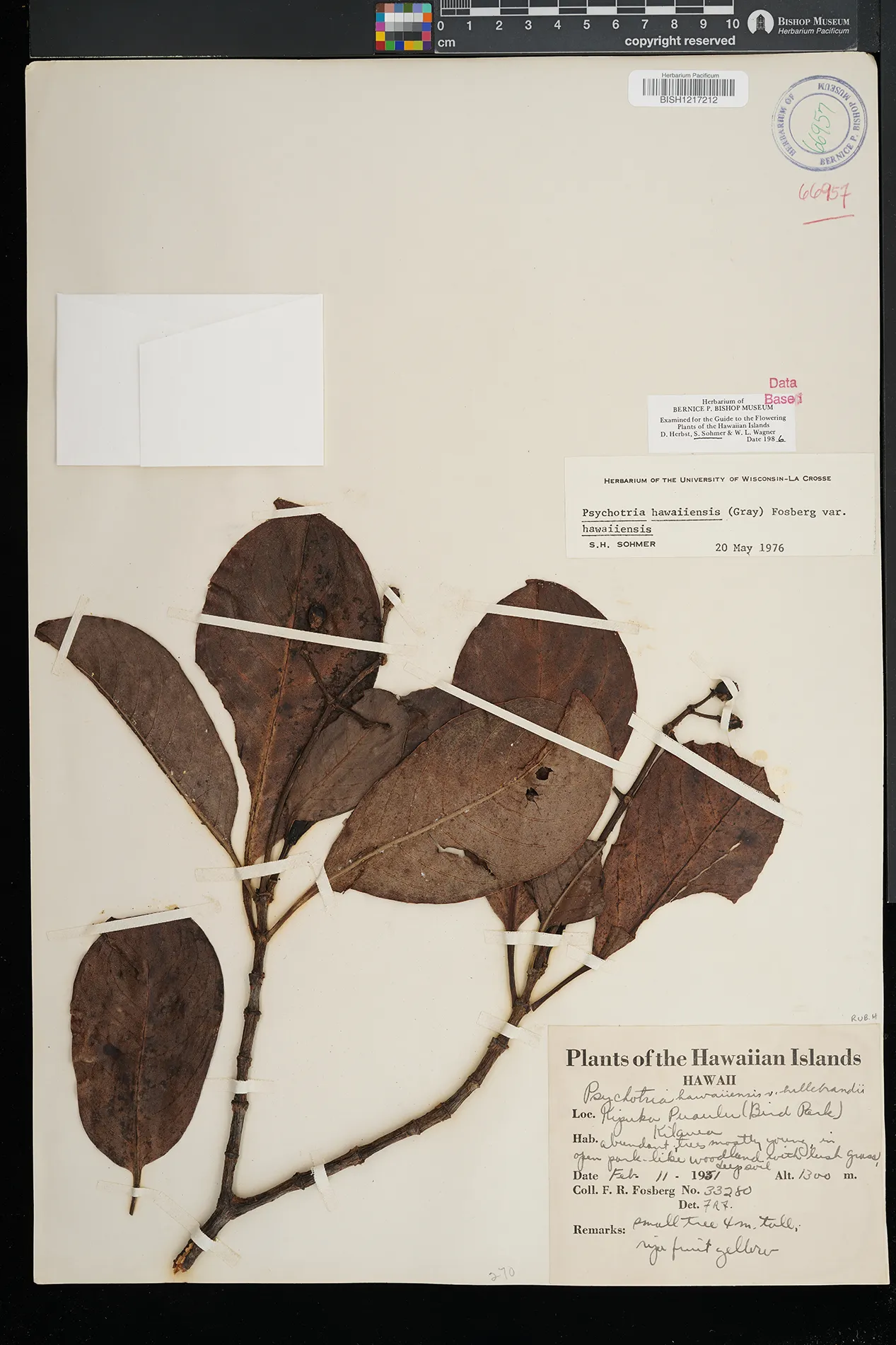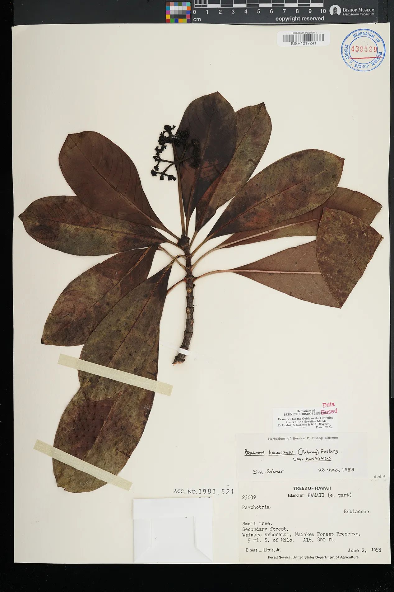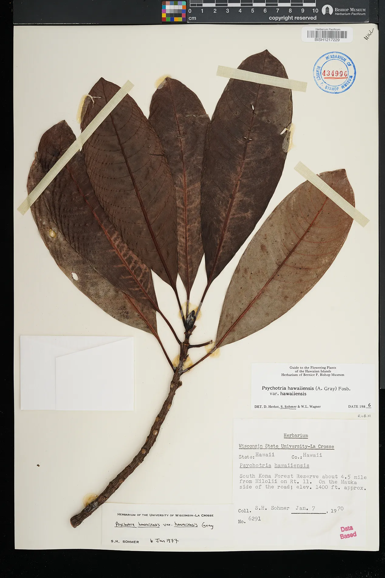 HAWAII: Kau District; Honomalino. 2300 ft. elev. transect for TNC survey (700 m); Metrosideros lowland mesic forest with Pisonia sandwicensis, Wikstroemia, Psychotria hawaiiensis vars. hawaiiensis & hillebrandii, Flueggea, Cyrtandra menziesii, Cyrtomium caryotidium & falcatum, Hedyotis acuminata, Stenogyne, Melicope, Pteris, Microlepia strigosa, Pittosporum hosmeri & hawaiiense. Elev. 700-750 m. |