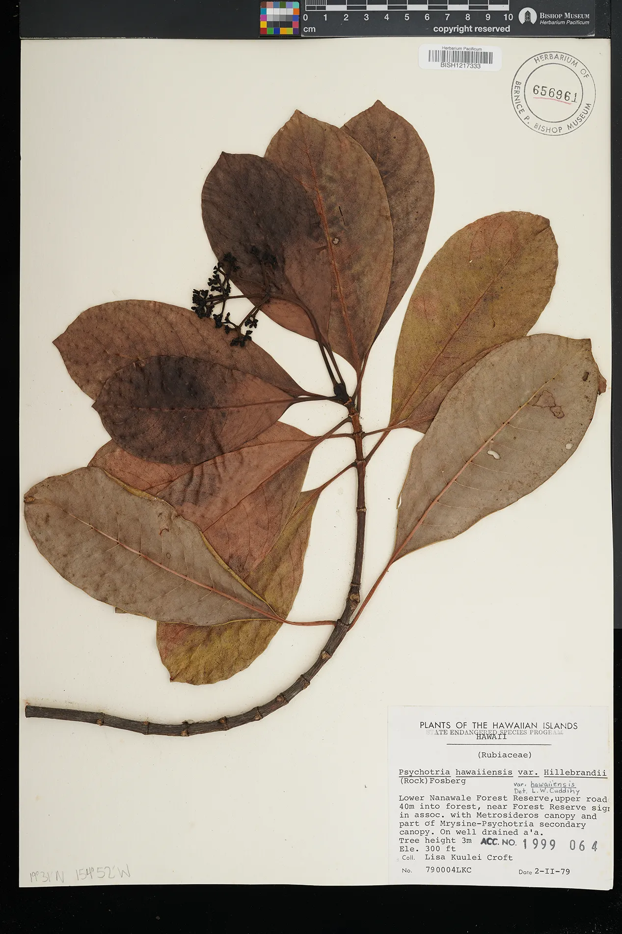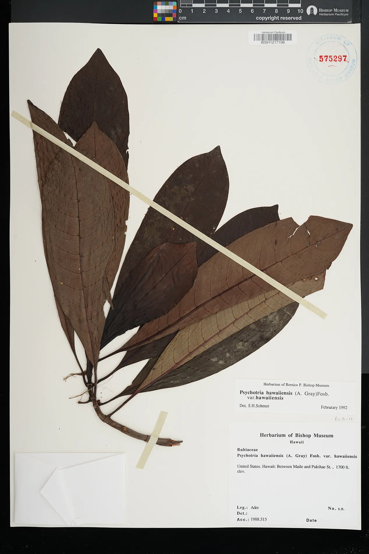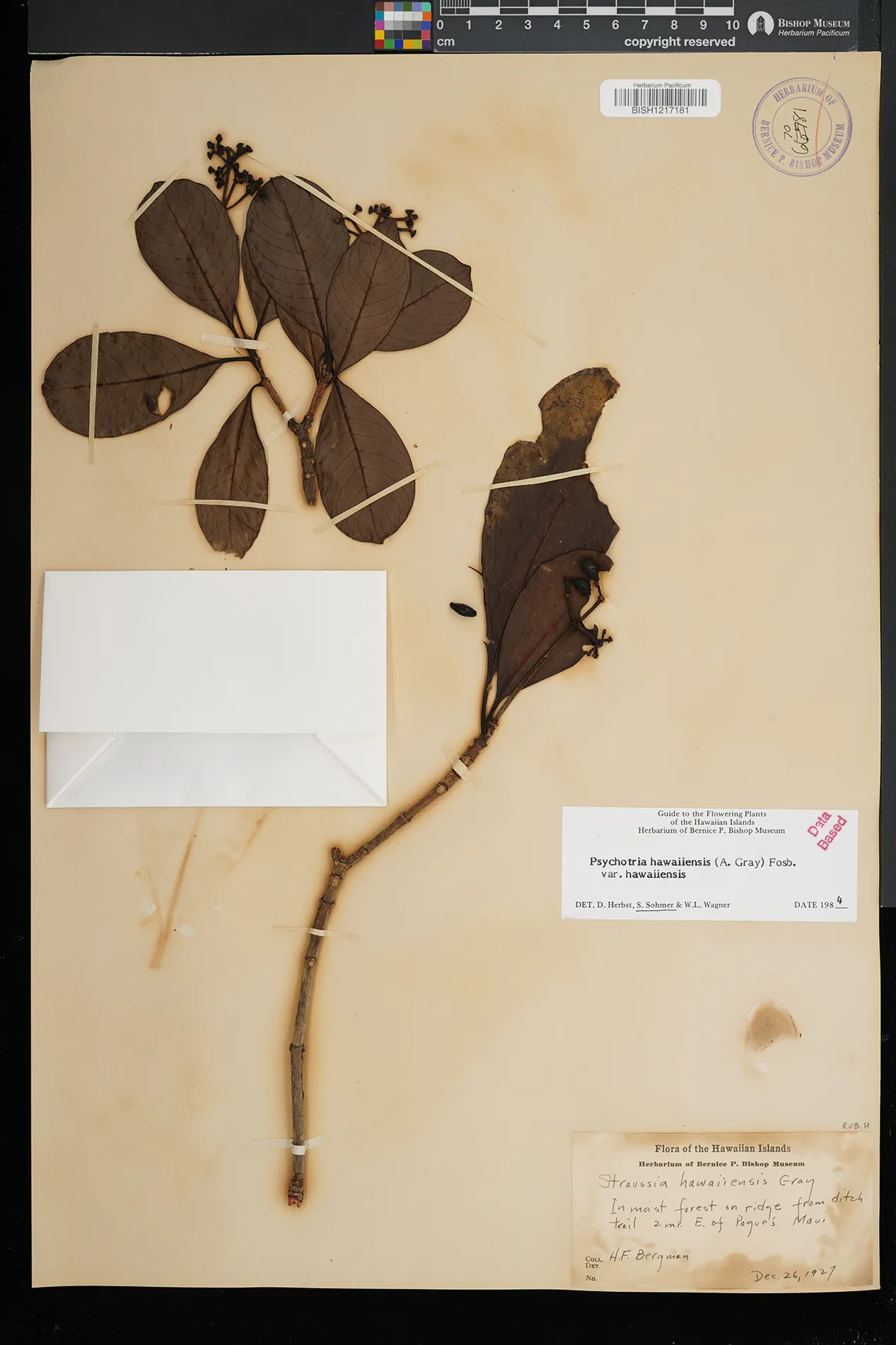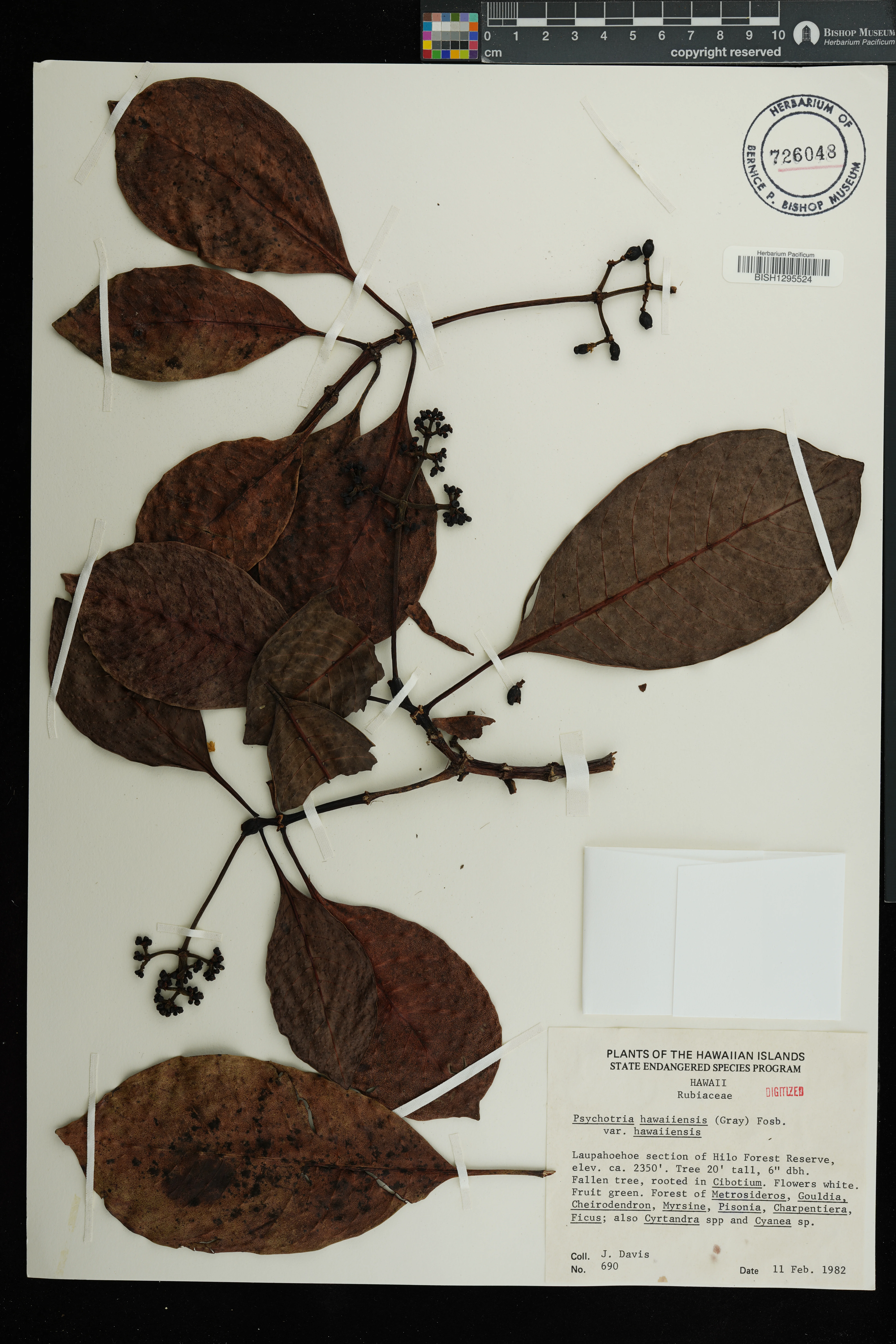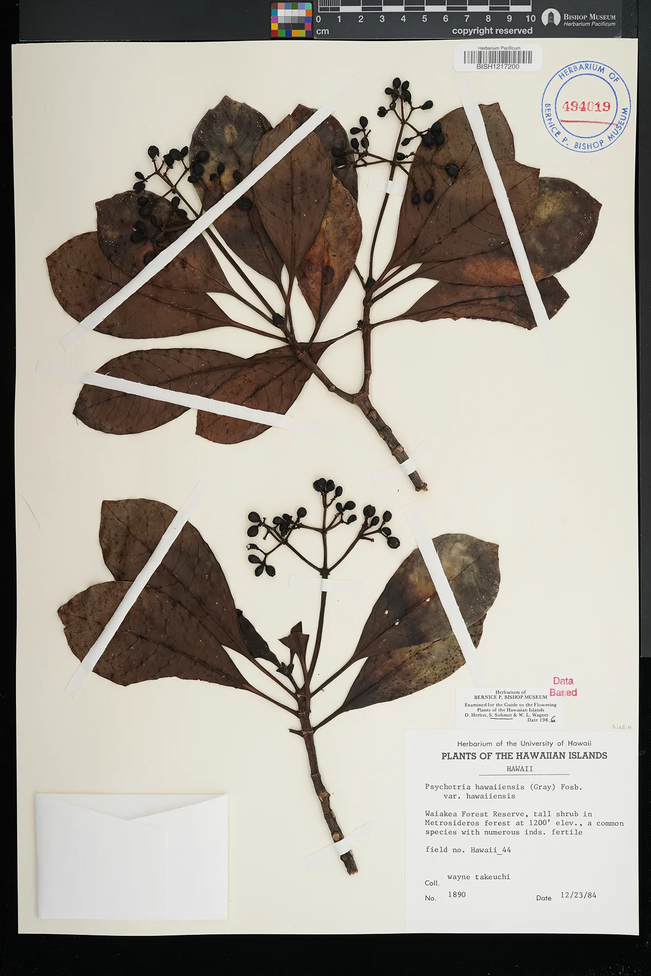 HAWAII: Kau District; Honomalino. 2300 ft. elev. transect for TNC survey (700 m); Metrosideros lowland mesic forest with Pisonia sandwicensis, Wikstroemia, Psychotria hawaiiensis vars. hawaiiensis & hillebrandii, Flueggea, Cyrtandra menziesii, Cyrtomium caryotidium & falcatum, Hedyotis acuminata, Stenogyne, Melicope, Pteris, Microlepia strigosa, Pittosporum hosmeri & hawaiiense. Elev. 700-750 m. |