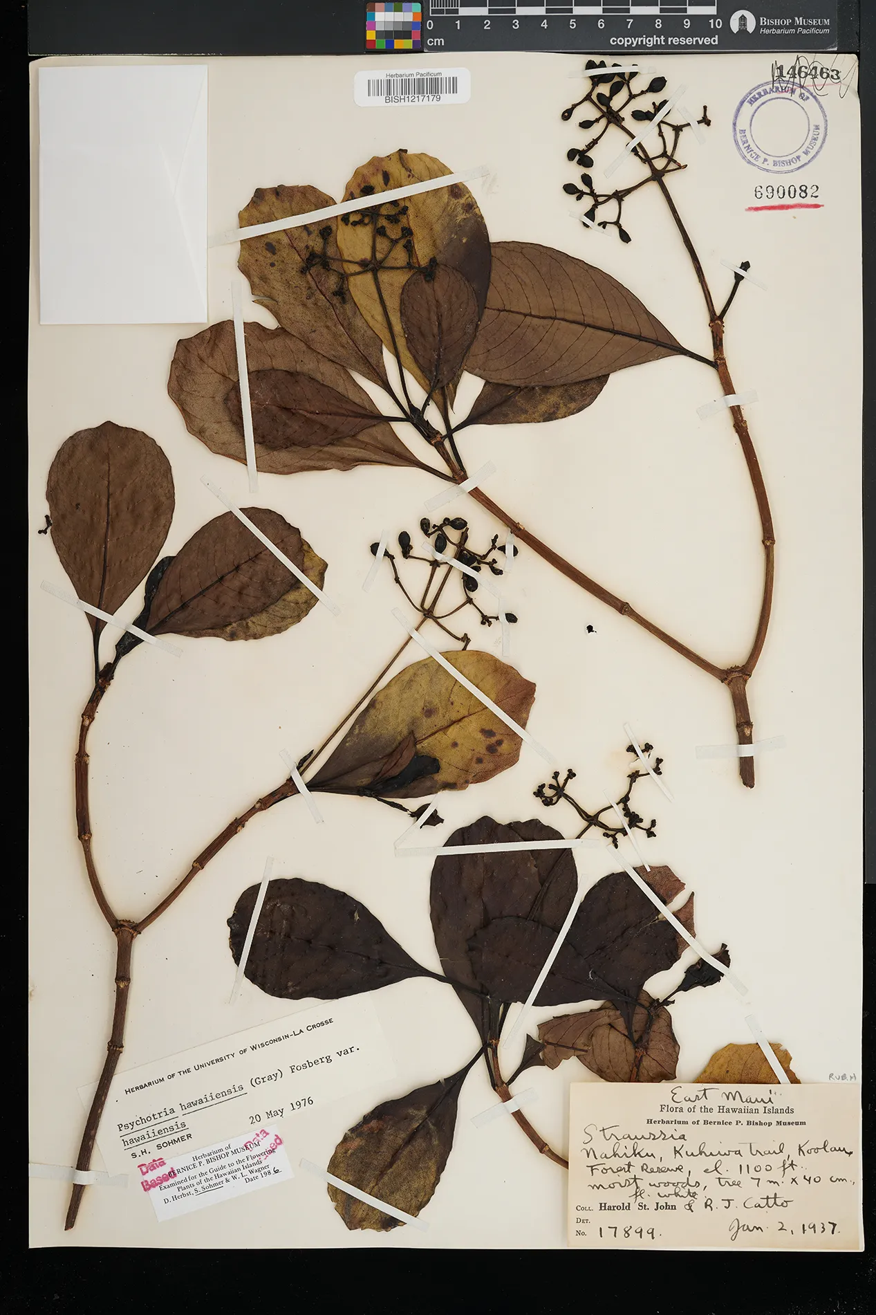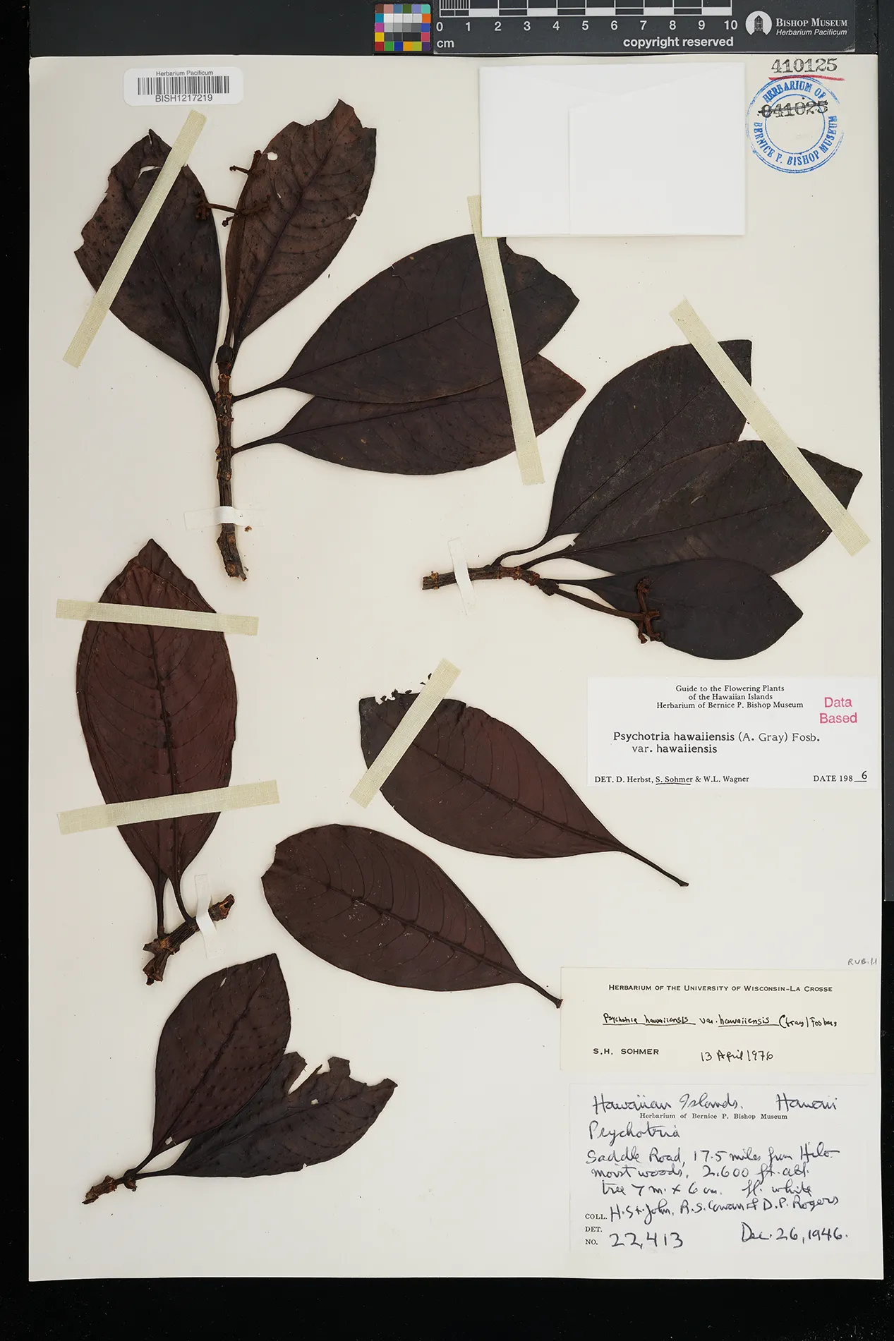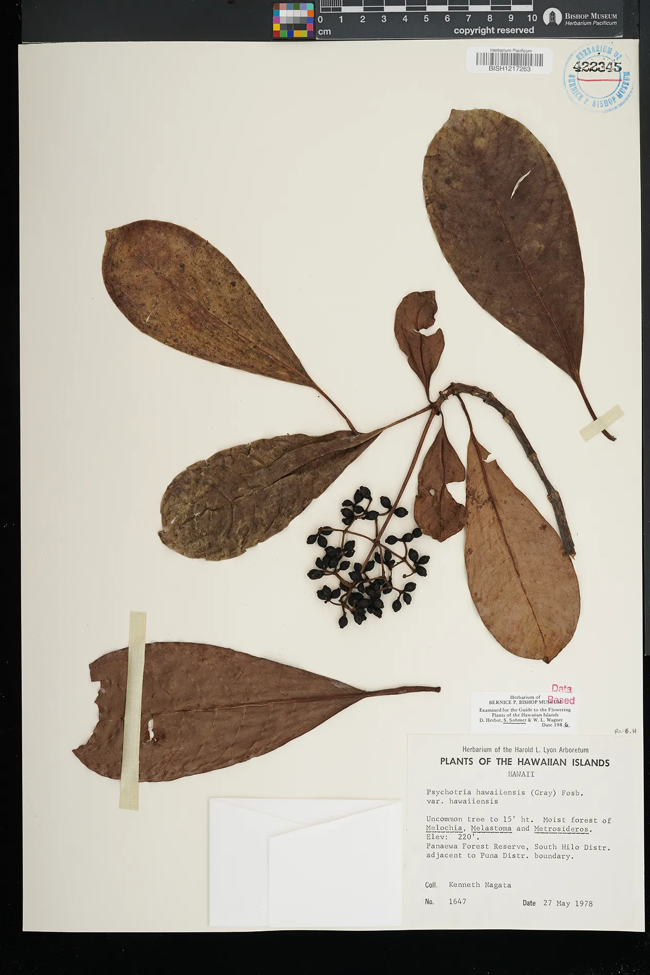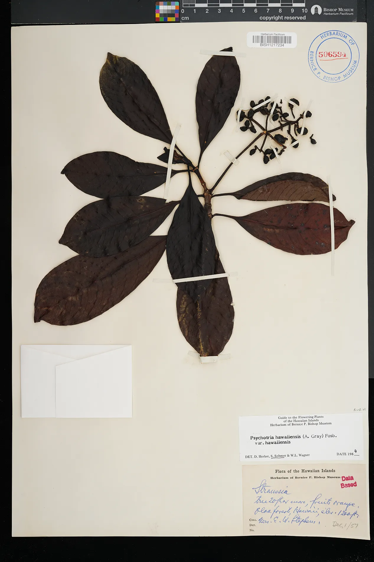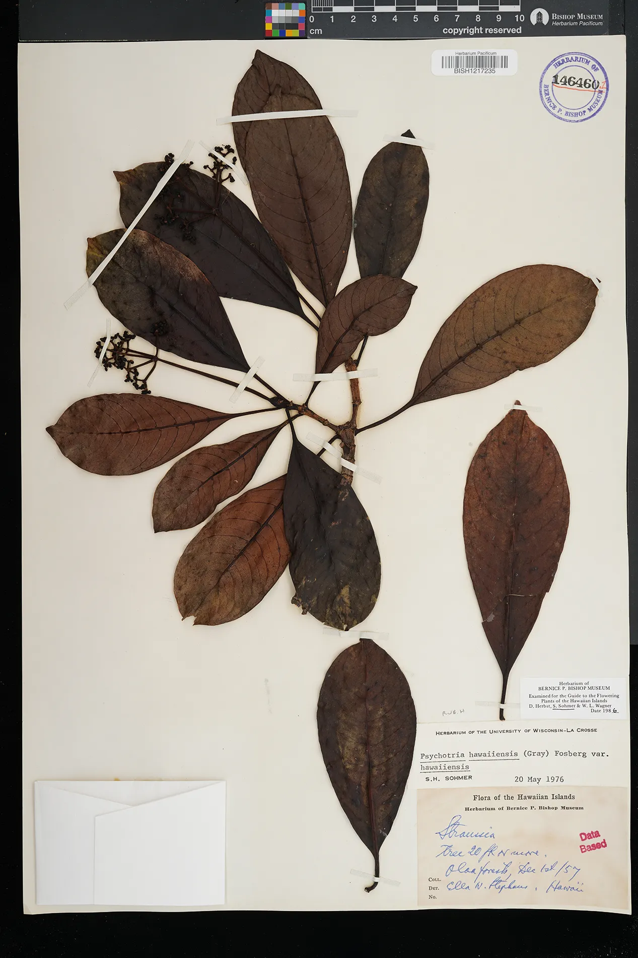 HAWAII: Kau District; Honomalino. 2300 ft. elev. transect for TNC survey (700 m); Metrosideros lowland mesic forest with Pisonia sandwicensis, Wikstroemia, Psychotria hawaiiensis vars. hawaiiensis & hillebrandii, Flueggea, Cyrtandra menziesii, Cyrtomium caryotidium & falcatum, Hedyotis acuminata, Stenogyne, Melicope, Pteris, Microlepia strigosa, Pittosporum hosmeri & hawaiiense. Elev. 700-750 m. |