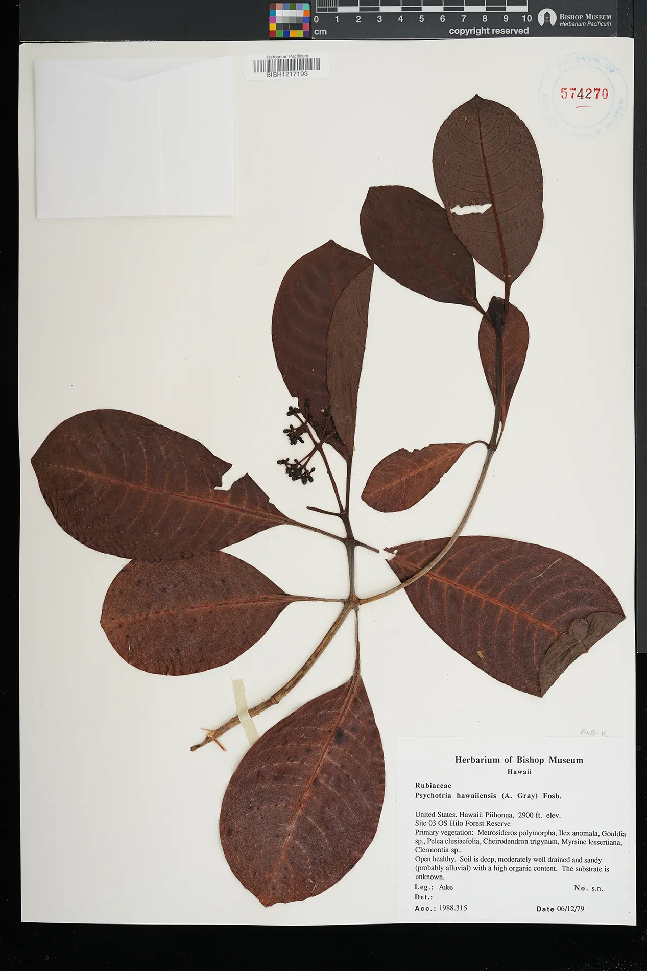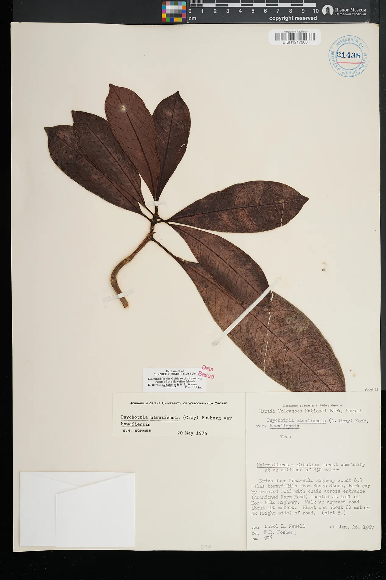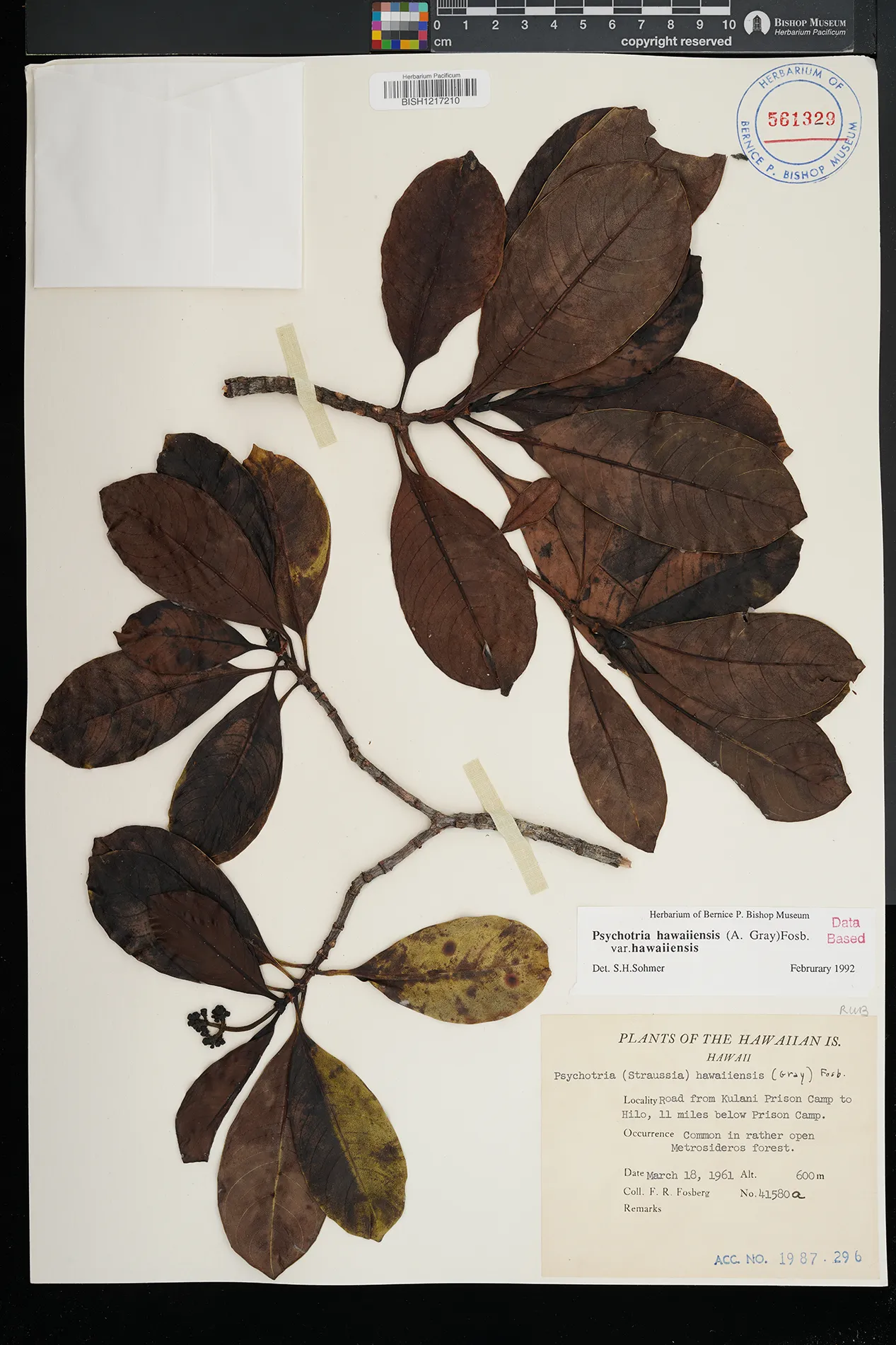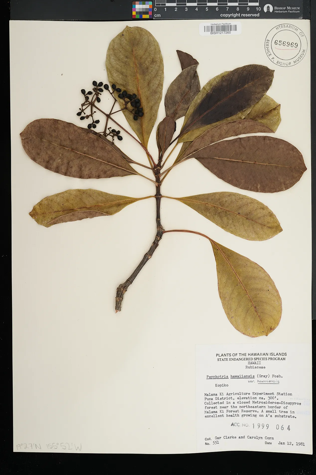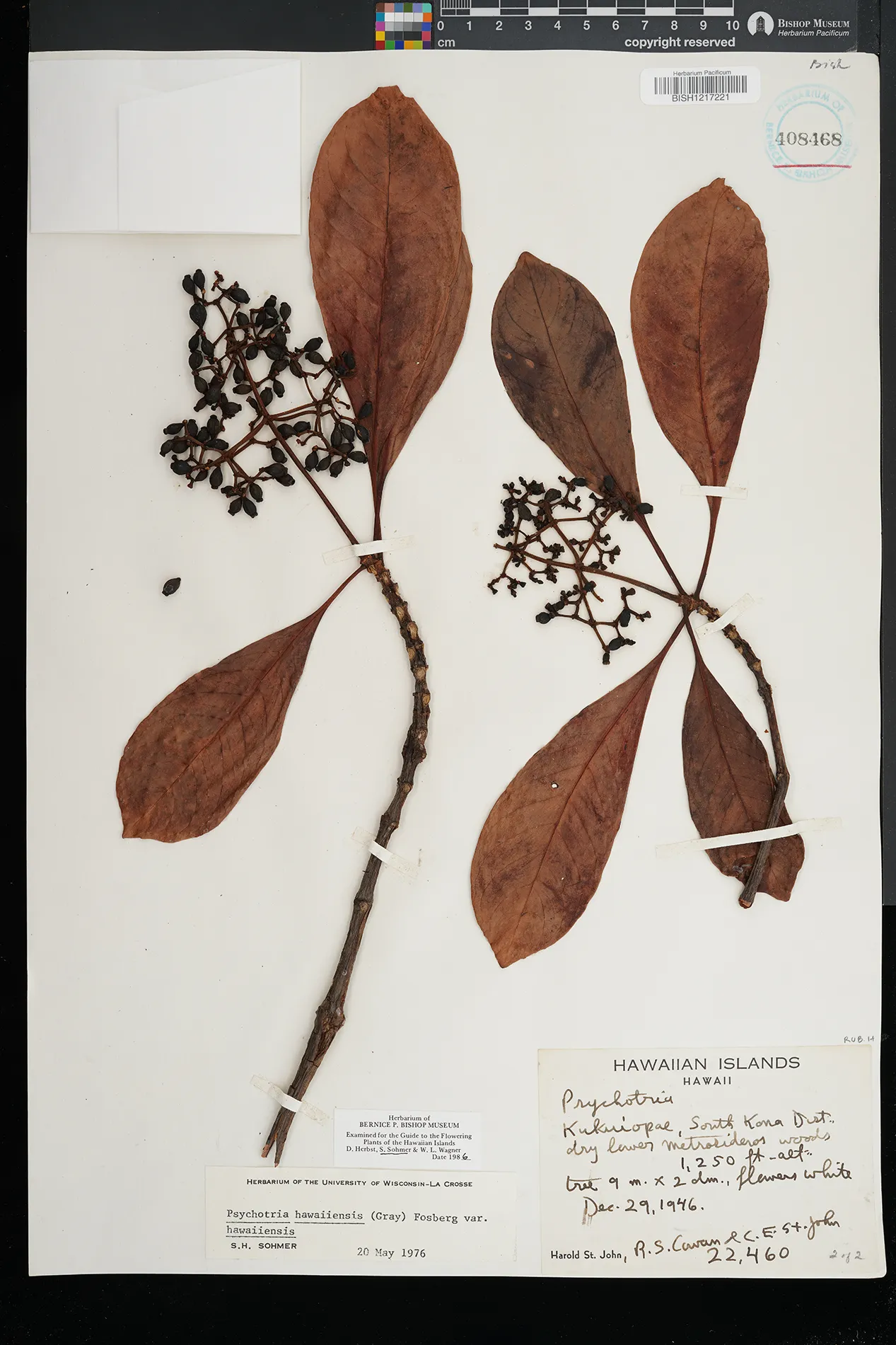 HAWAII: Kau District; Honomalino. 2300 ft. elev. transect for TNC survey (700 m); Metrosideros lowland mesic forest with Pisonia sandwicensis, Wikstroemia, Psychotria hawaiiensis vars. hawaiiensis & hillebrandii, Flueggea, Cyrtandra menziesii, Cyrtomium caryotidium & falcatum, Hedyotis acuminata, Stenogyne, Melicope, Pteris, Microlepia strigosa, Pittosporum hosmeri & hawaiiense. Elev. 700-750 m. |