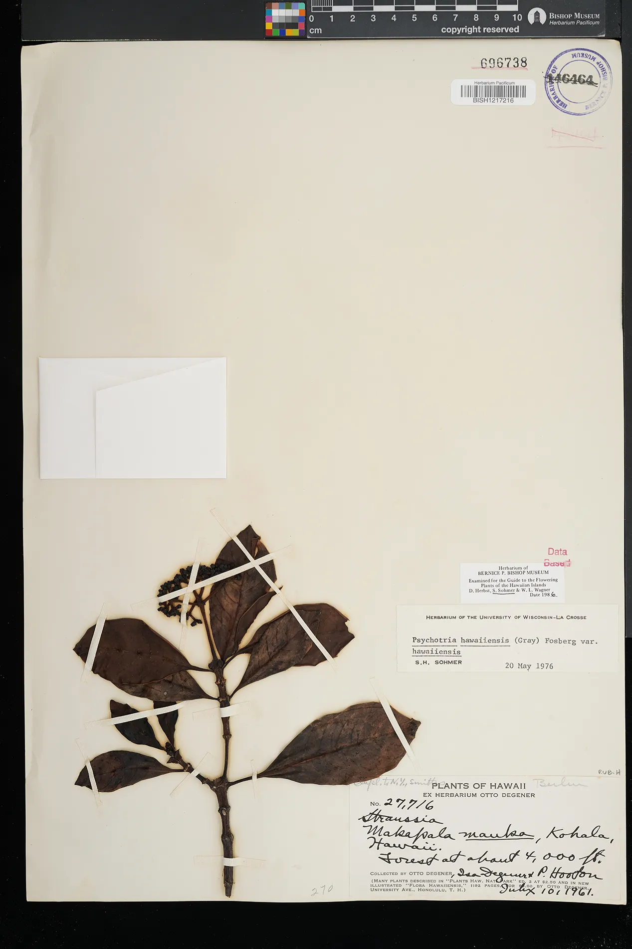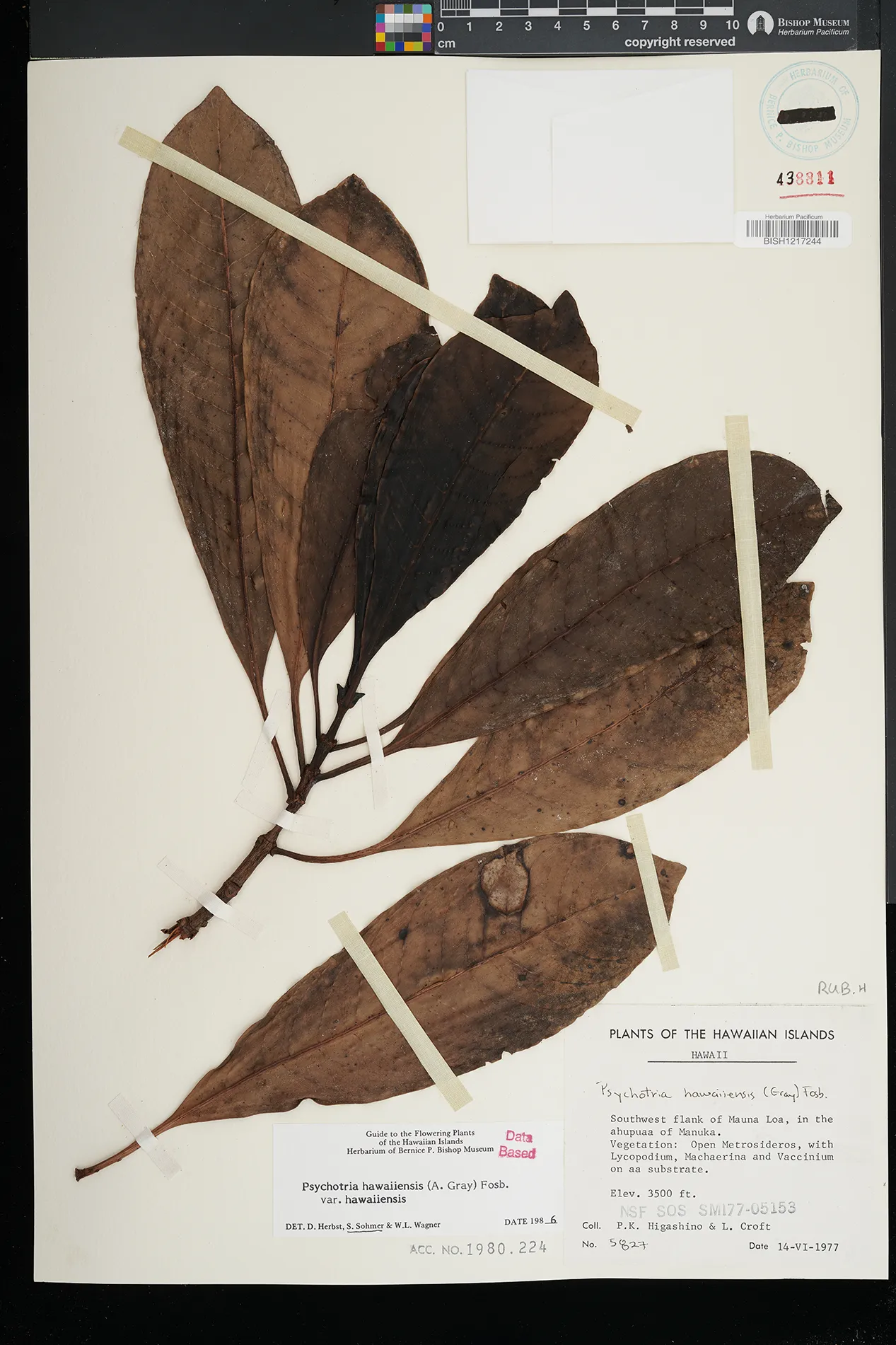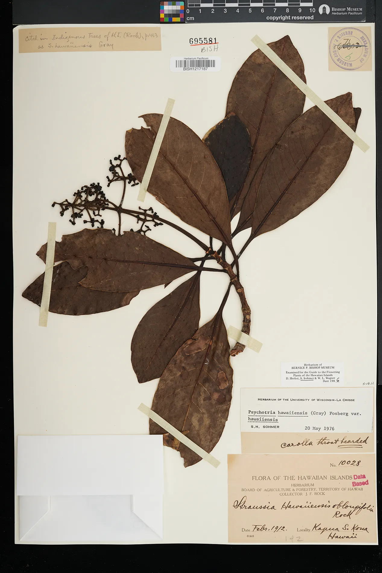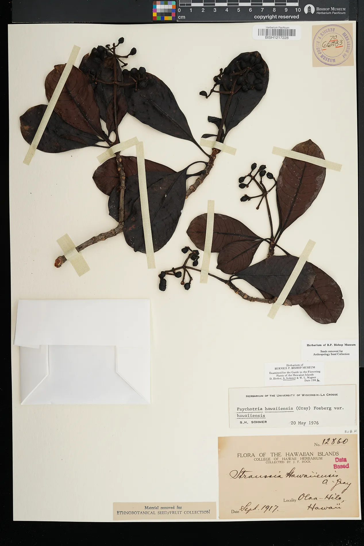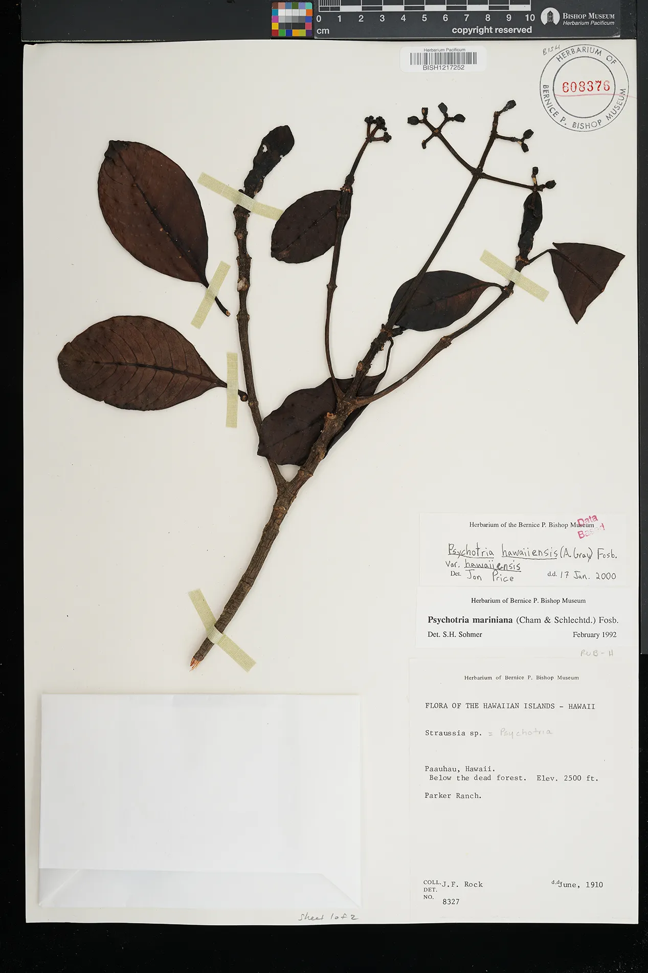 HAWAII: Kau District; Honomalino. 2300 ft. elev. transect for TNC survey (700 m); Metrosideros lowland mesic forest with Pisonia sandwicensis, Wikstroemia, Psychotria hawaiiensis vars. hawaiiensis & hillebrandii, Flueggea, Cyrtandra menziesii, Cyrtomium caryotidium & falcatum, Hedyotis acuminata, Stenogyne, Melicope, Pteris, Microlepia strigosa, Pittosporum hosmeri & hawaiiense. Elev. 700-750 m. |