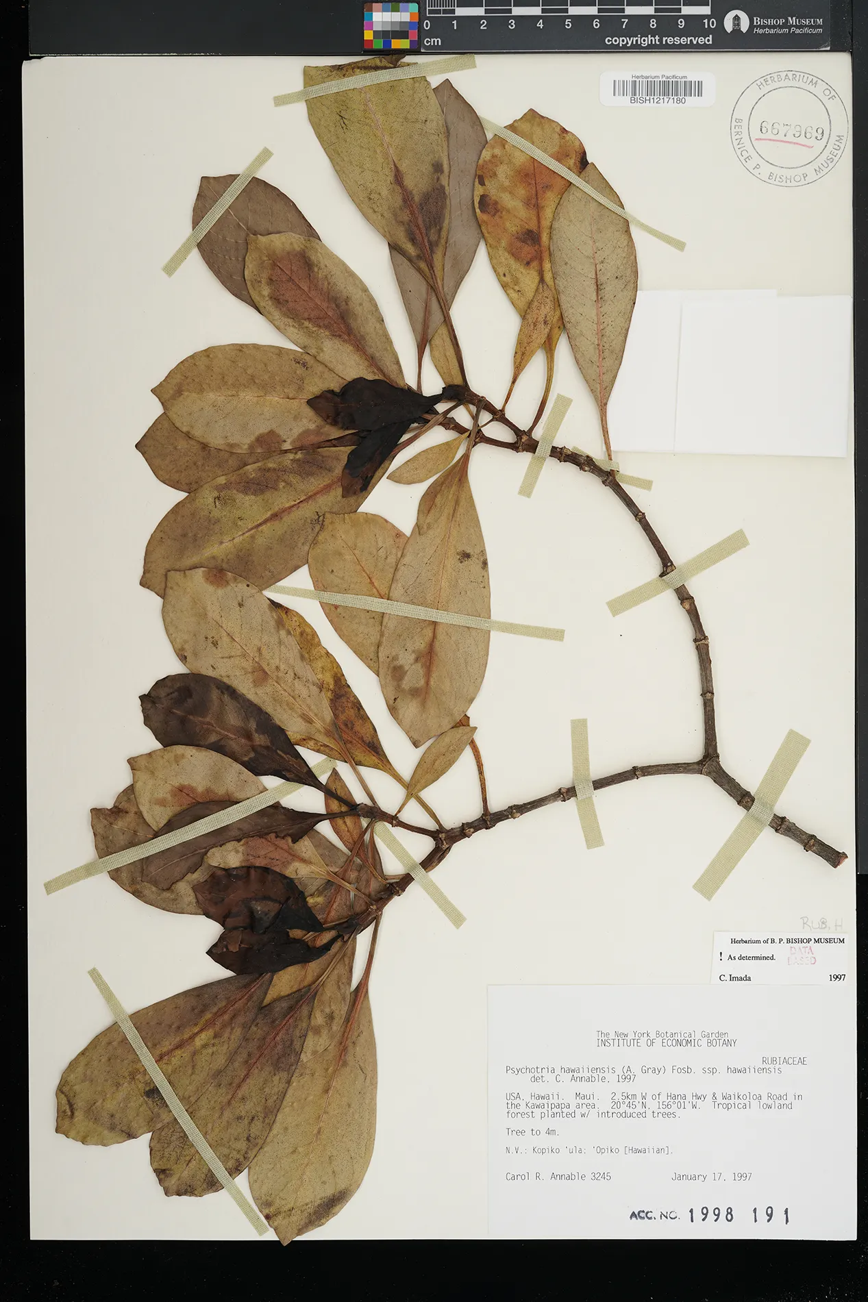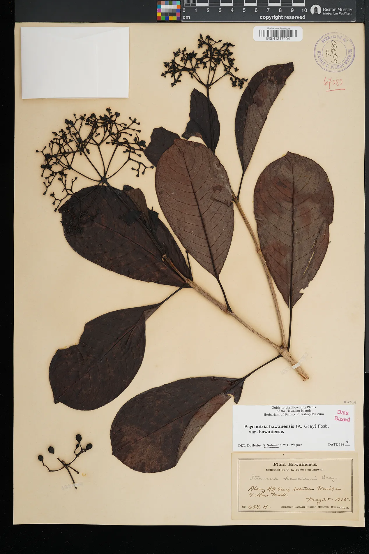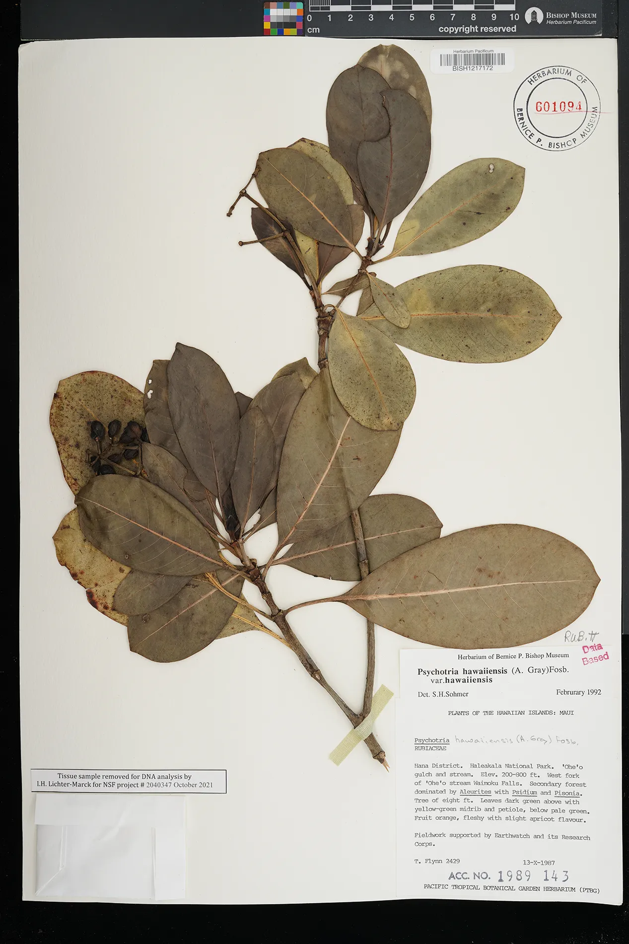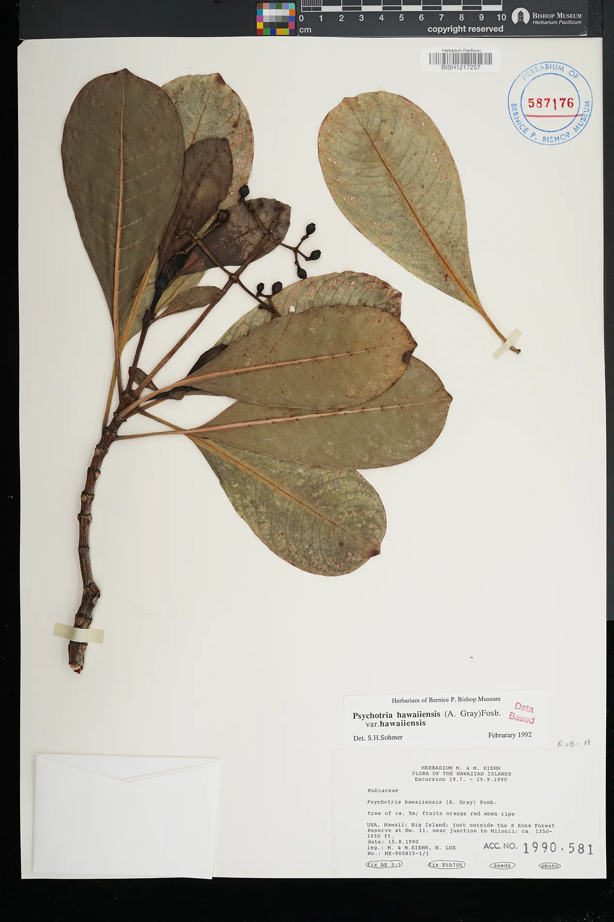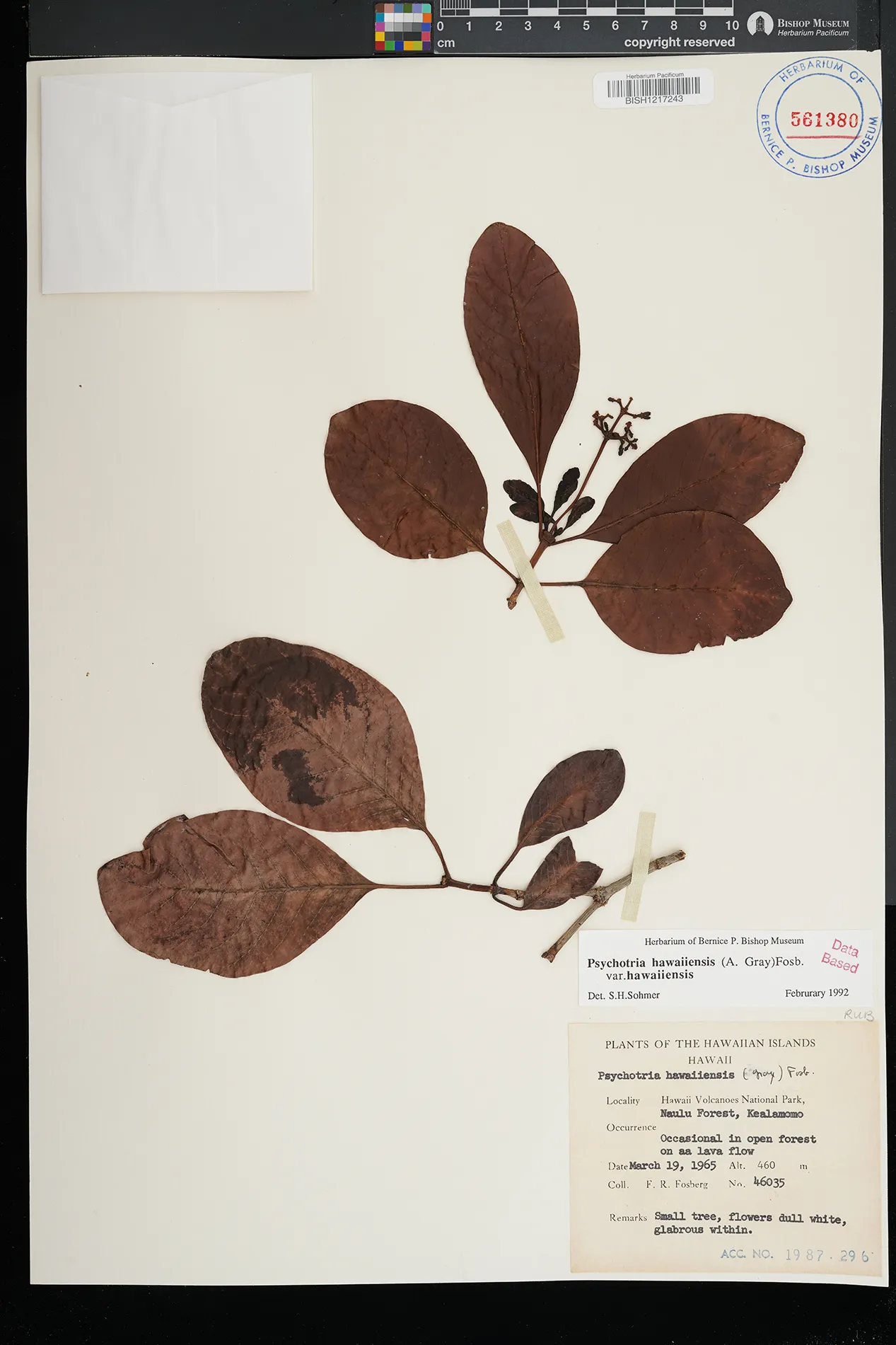 HAWAII: Kau District; Honomalino. 2300 ft. elev. transect for TNC survey (700 m); Metrosideros lowland mesic forest with Pisonia sandwicensis, Wikstroemia, Psychotria hawaiiensis vars. hawaiiensis & hillebrandii, Flueggea, Cyrtandra menziesii, Cyrtomium caryotidium & falcatum, Hedyotis acuminata, Stenogyne, Melicope, Pteris, Microlepia strigosa, Pittosporum hosmeri & hawaiiense. Elev. 700-750 m. |