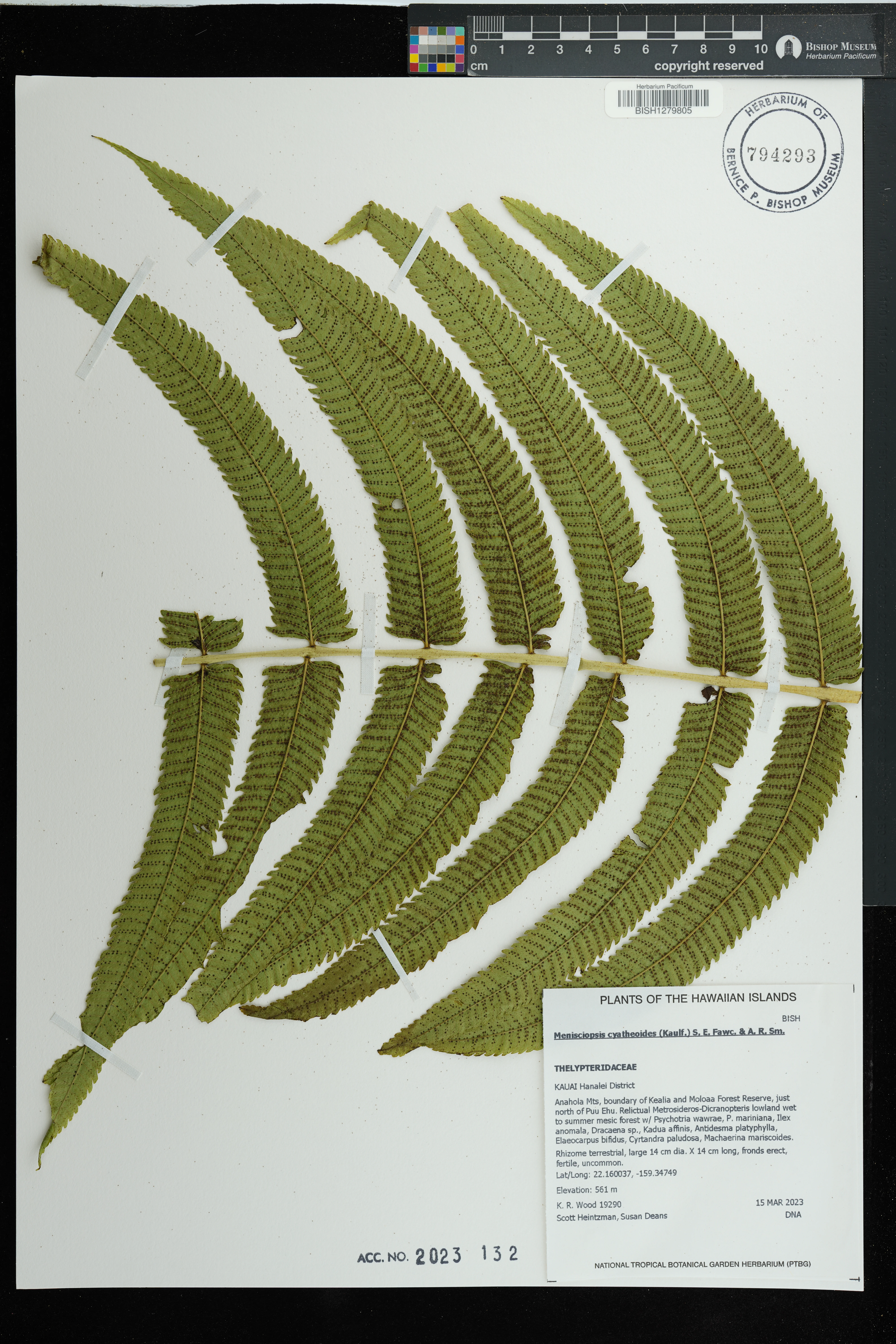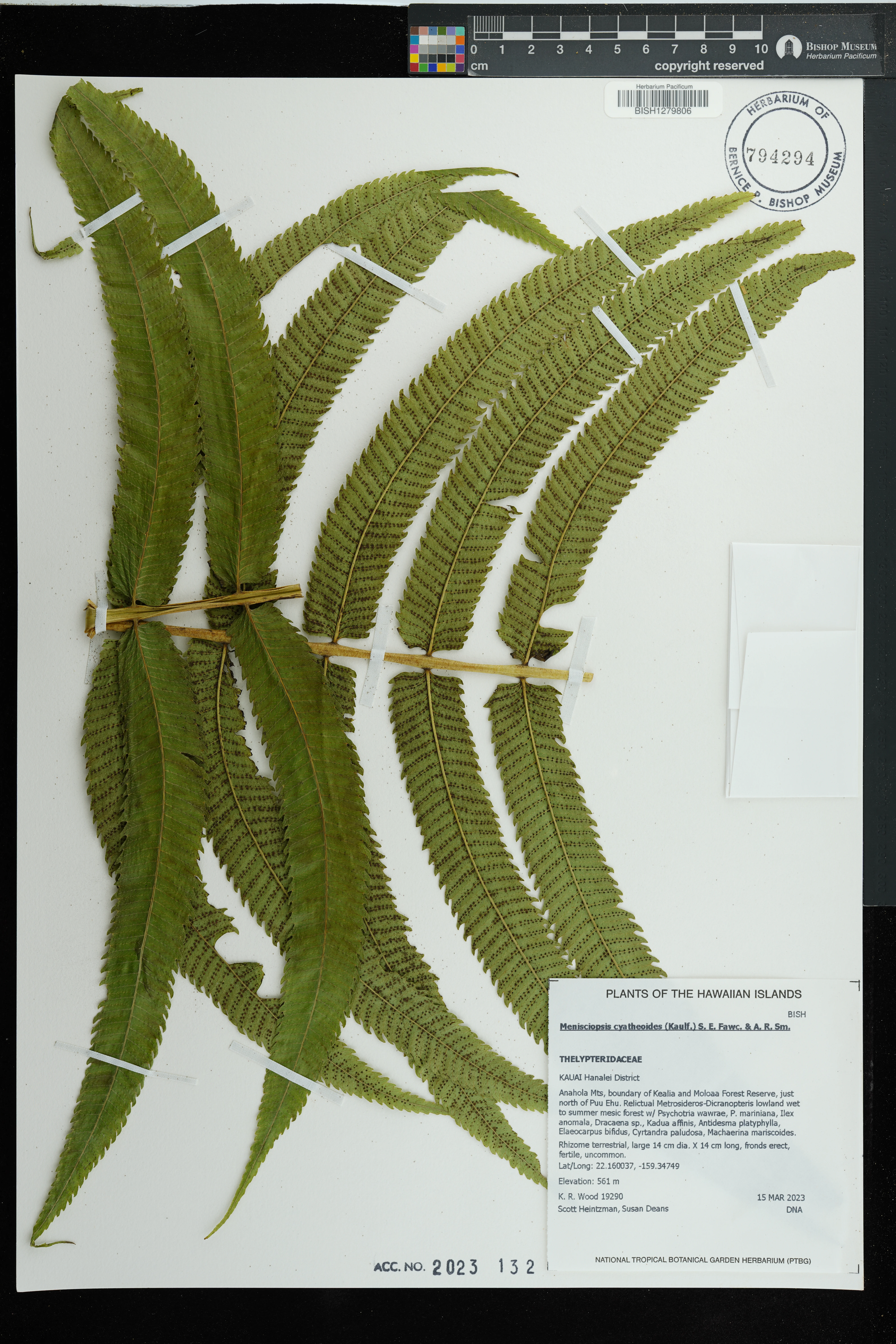 Kingdom: Viridiplantae Phylum: Pteridophyta Class/Clade: Polypodiopsida Order: Polypodiales Family: Thelypteridaceae Genus: Menisciopsis