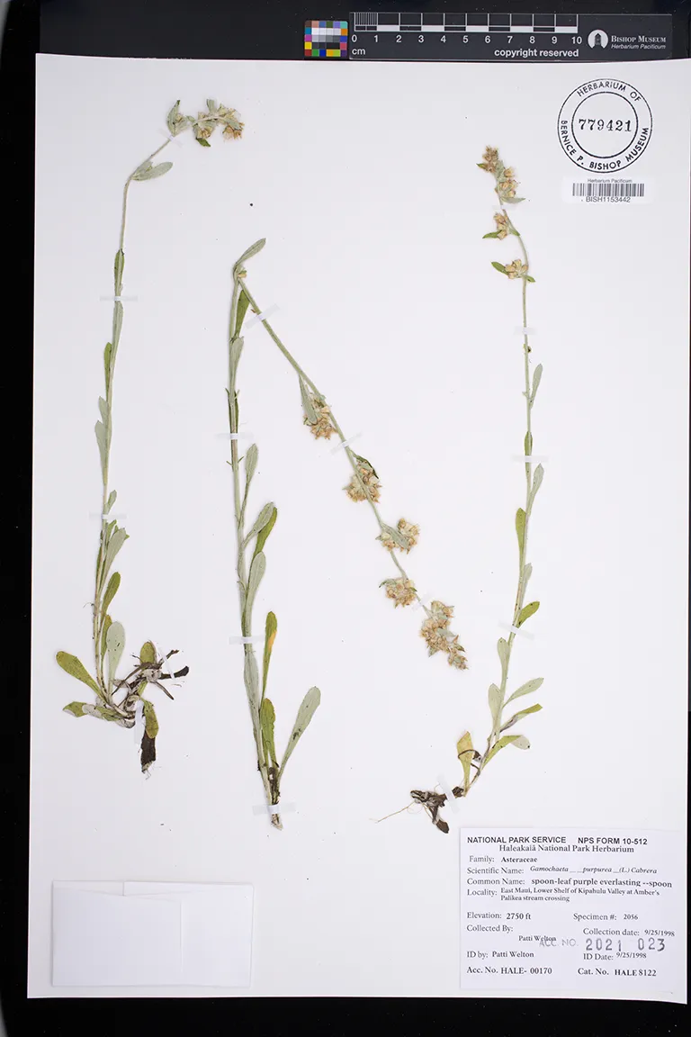 End of Hilina Pali Road, 1.5 mi down Hilina Pali Switchback Trail. Found near two large Metrosideros trees located about 10 m. from a sharp hairpin turn in trail and just below a small forest of trees |