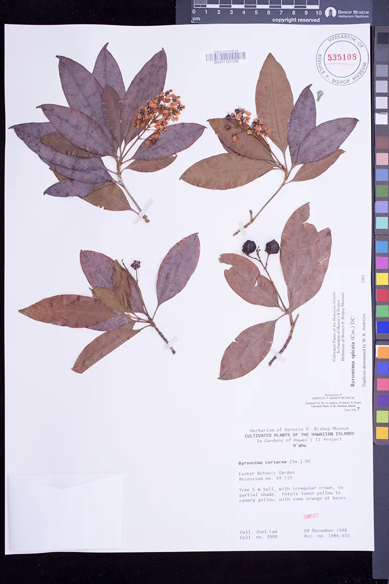 Kingdom: Viridiplantae Phylum: Magnoliophyta Class/Clade: Eudicot-Rosids Order: Malpighiales Family: Malpighiaceae Genus: Byrsonima