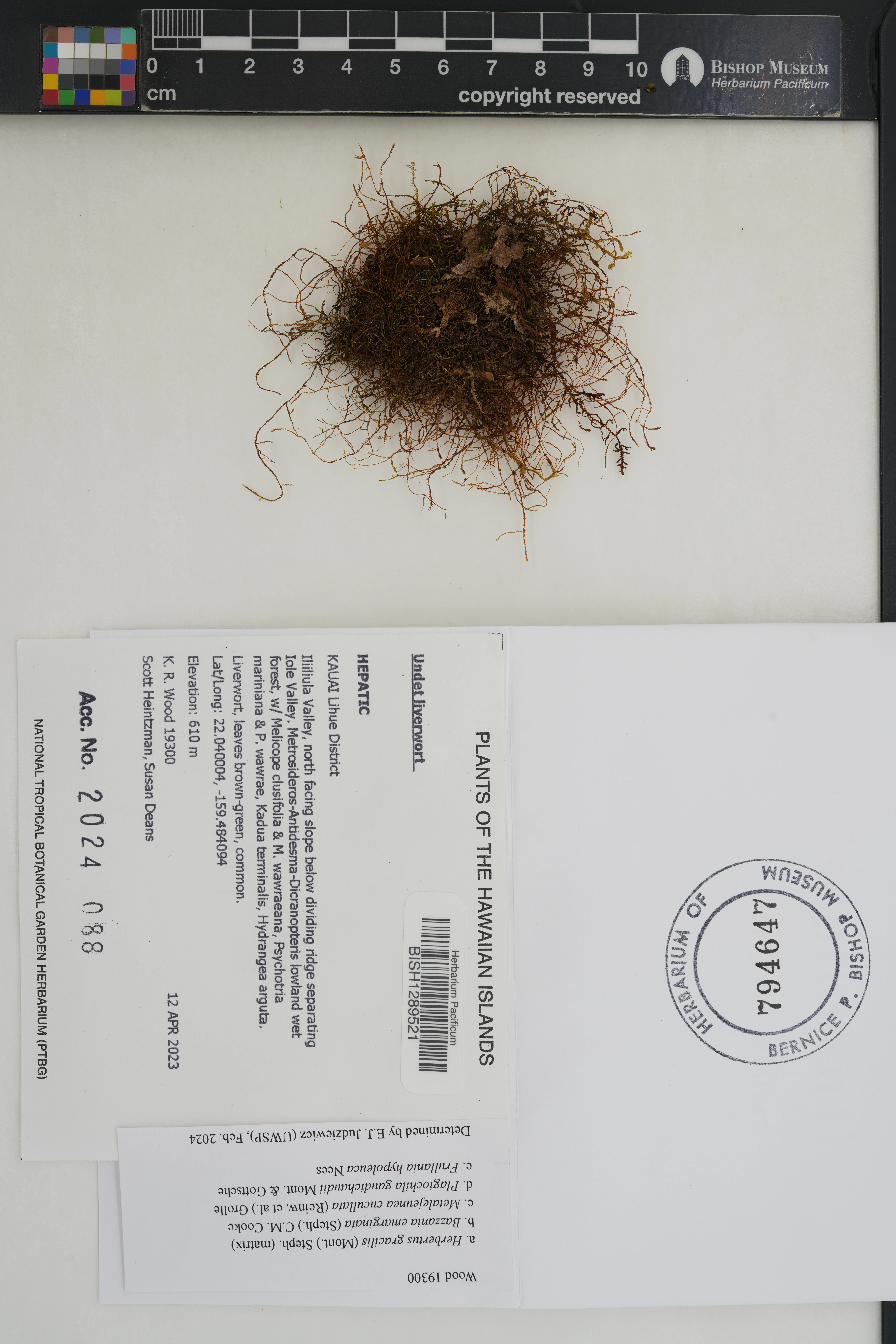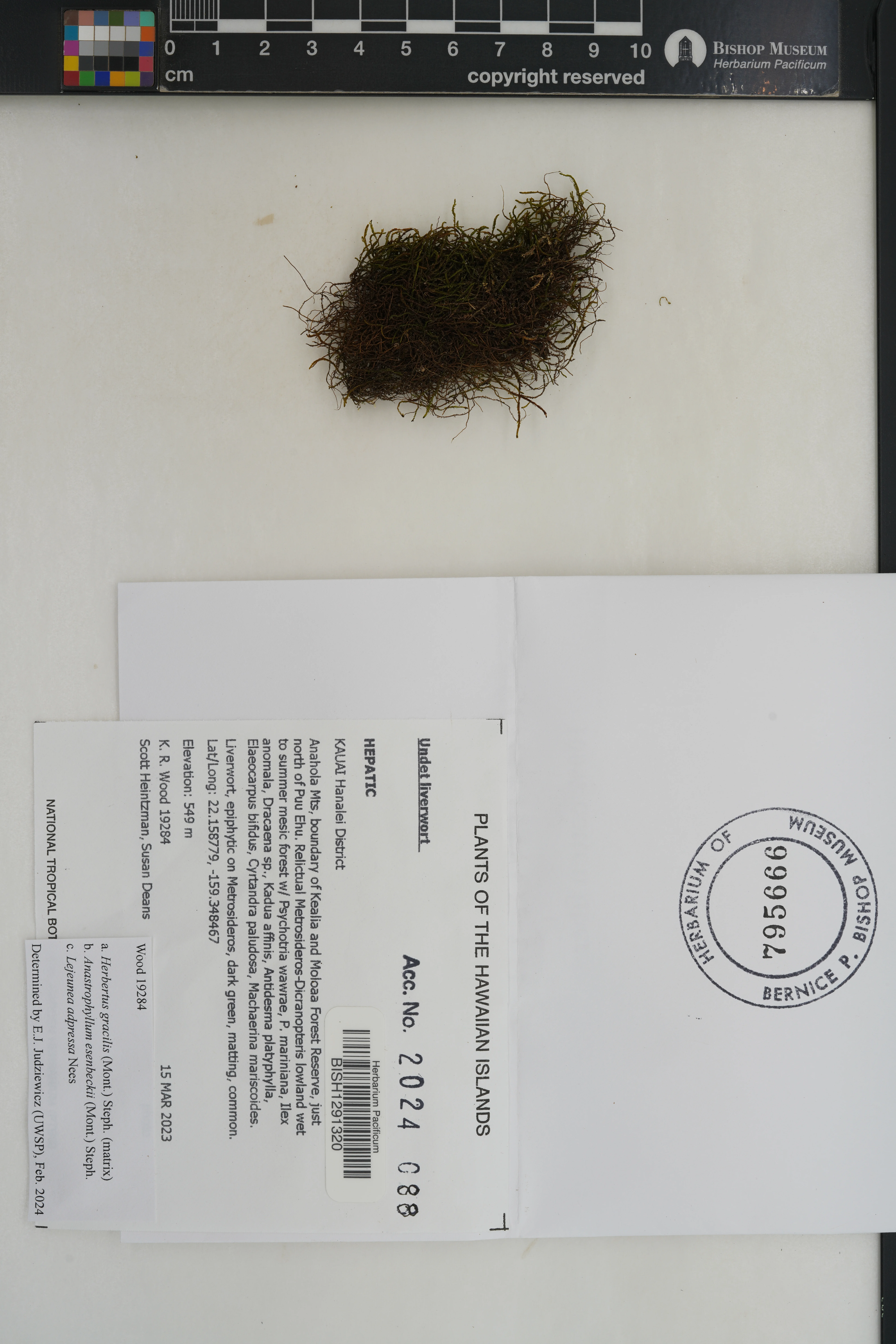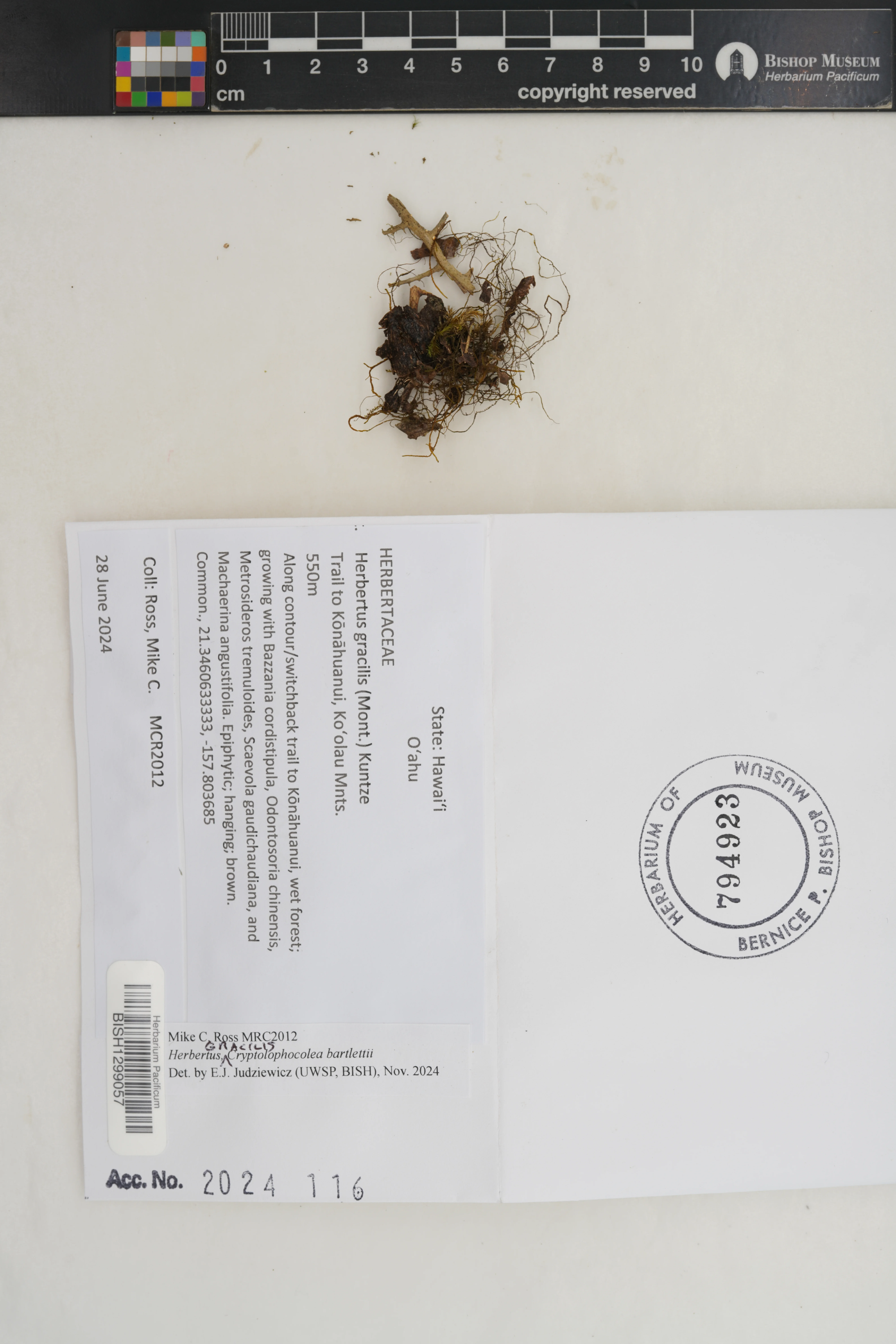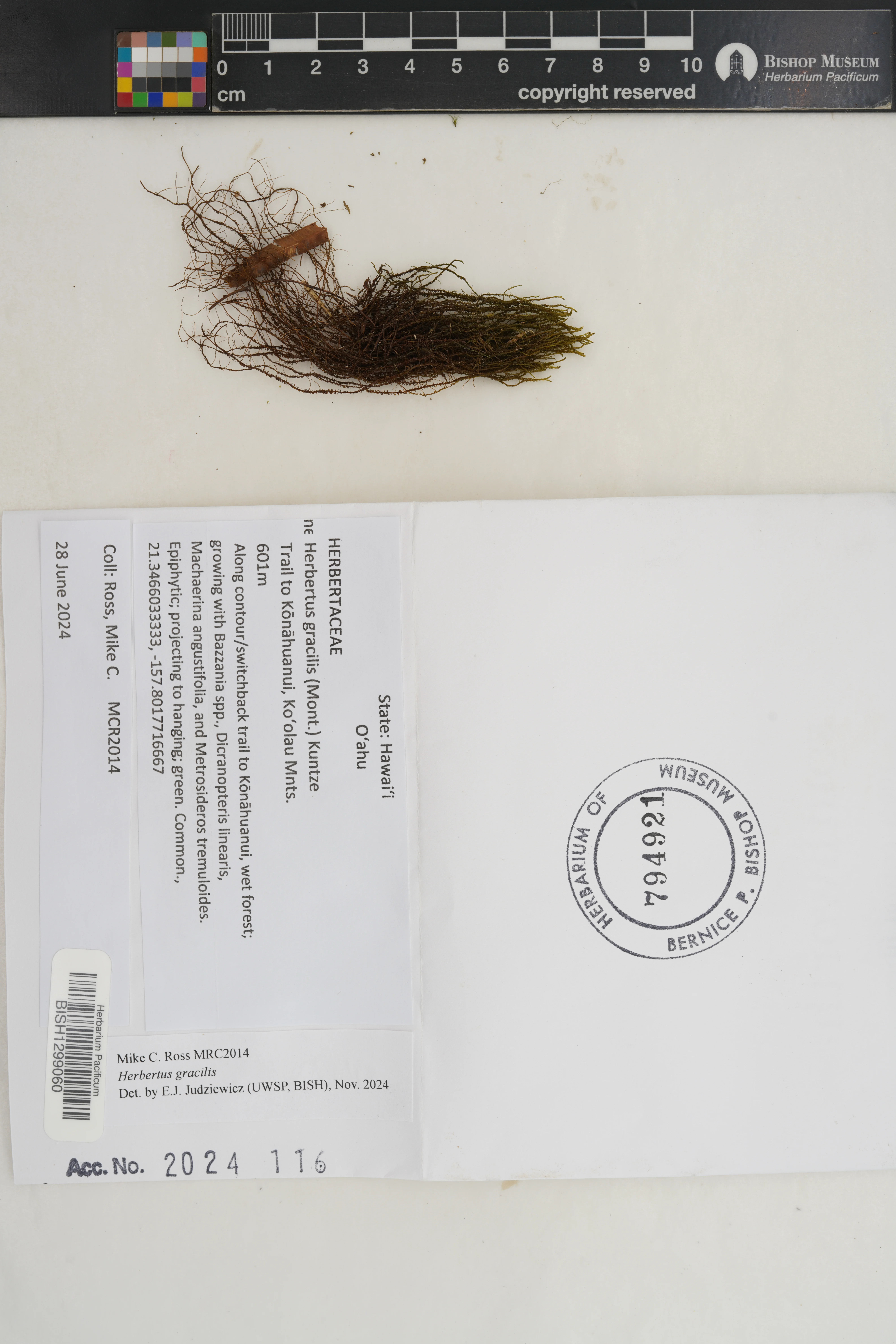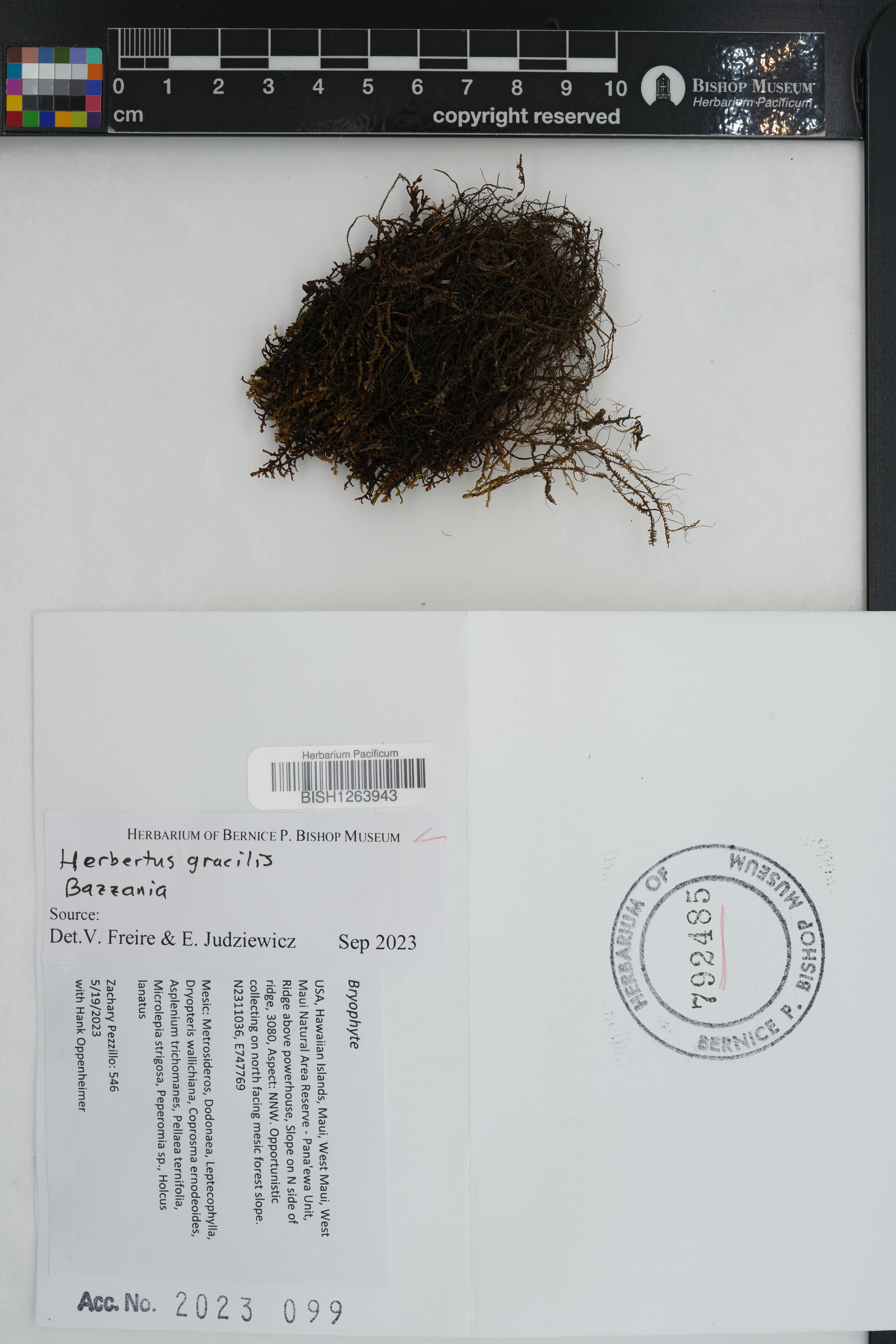 Kingdom: Viridiplantae Phylum: Marchantiophyta Class/Clade: Jungermanniopsida Order: Jungermanniales Family: Herbertaceae Genus: Herbertus