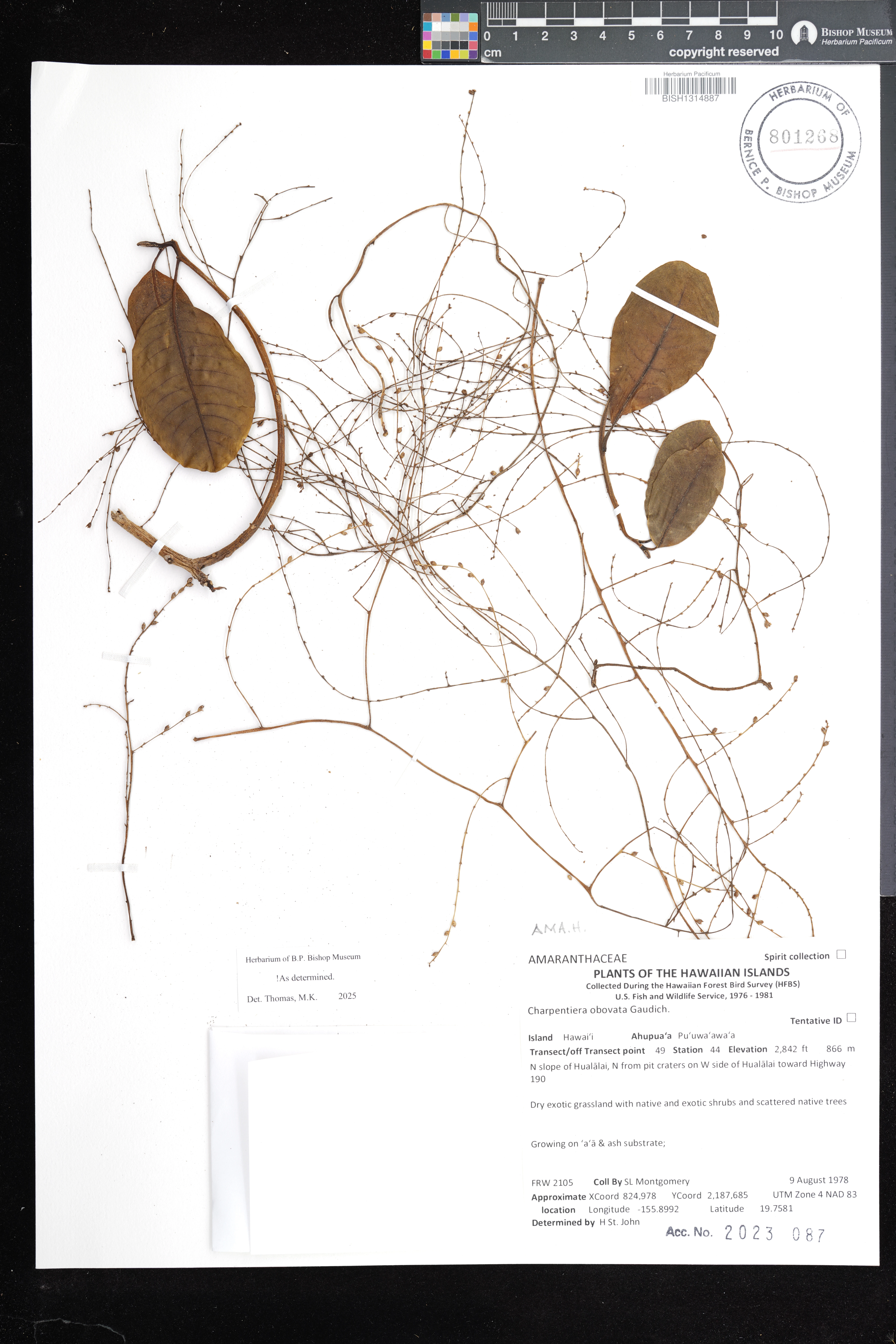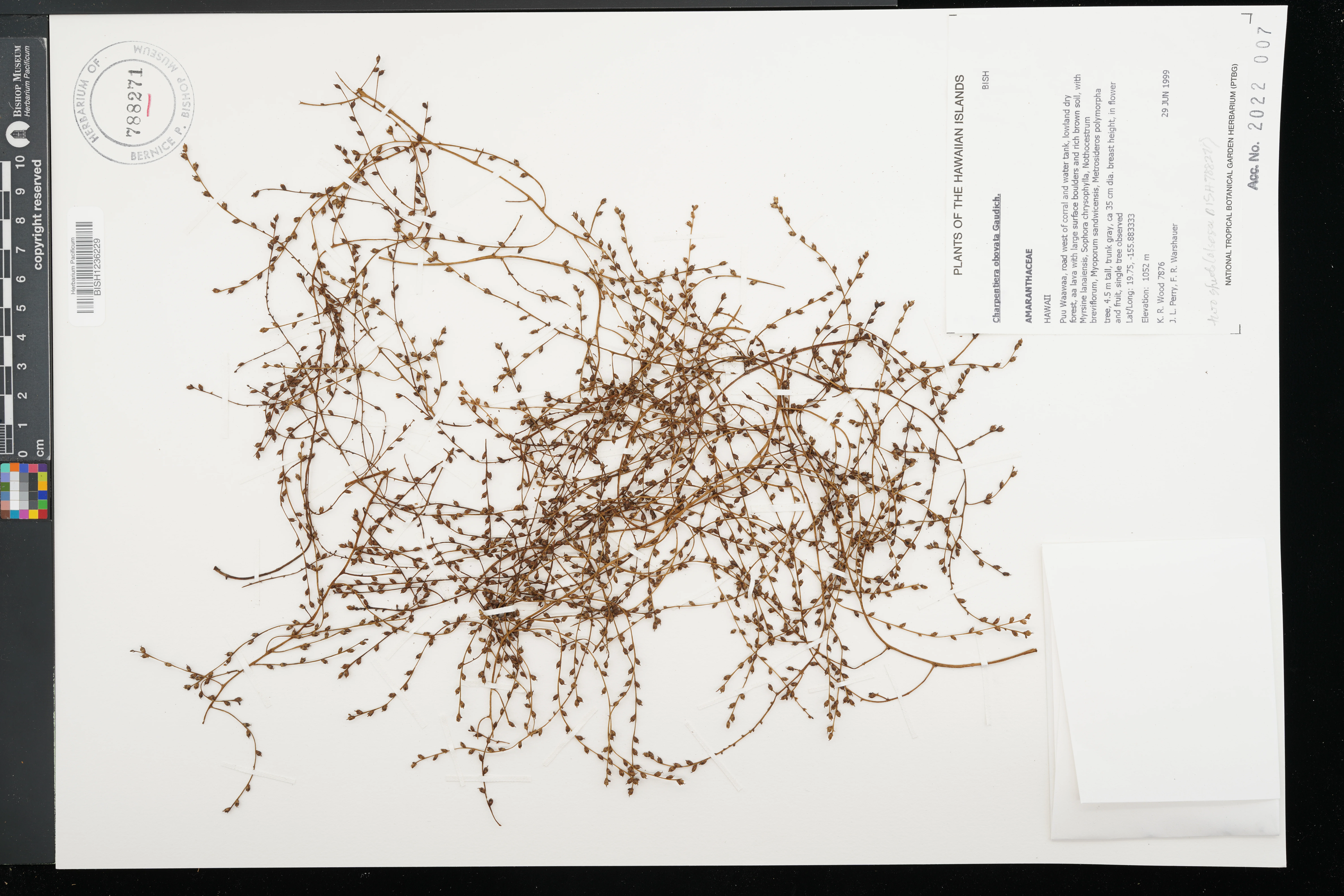 On `a`a lava, 50' from highway. Growing in disturbed dry forest with Drypetes, Canthium, Diospyros, Pittosporum and Schinus. |